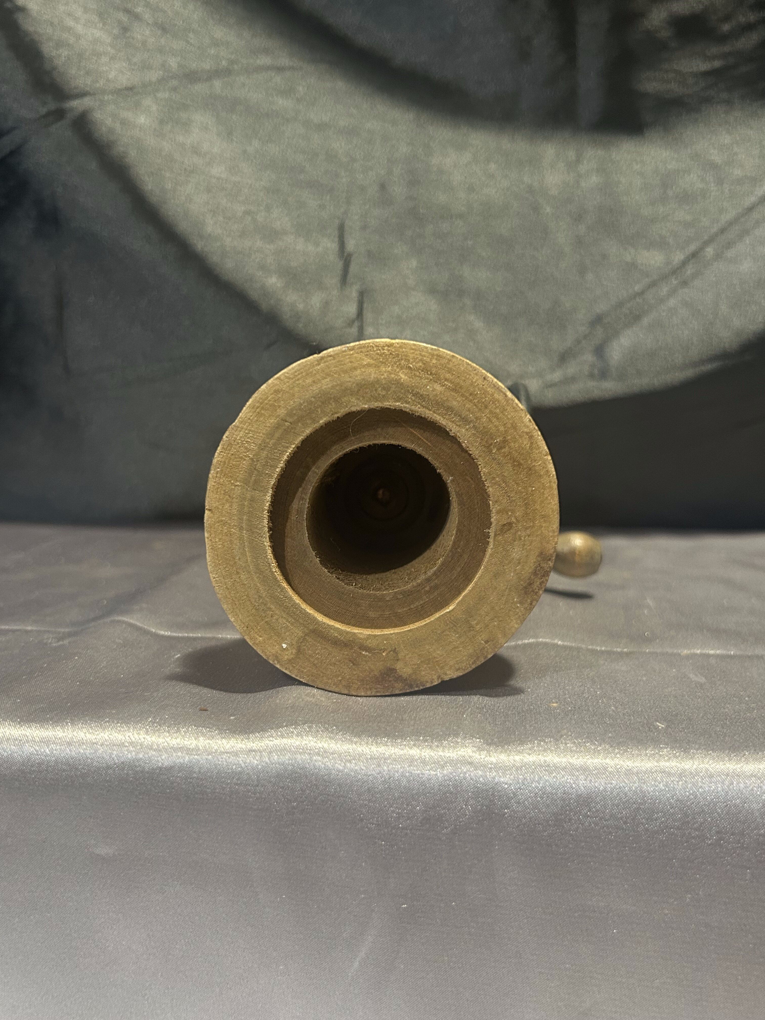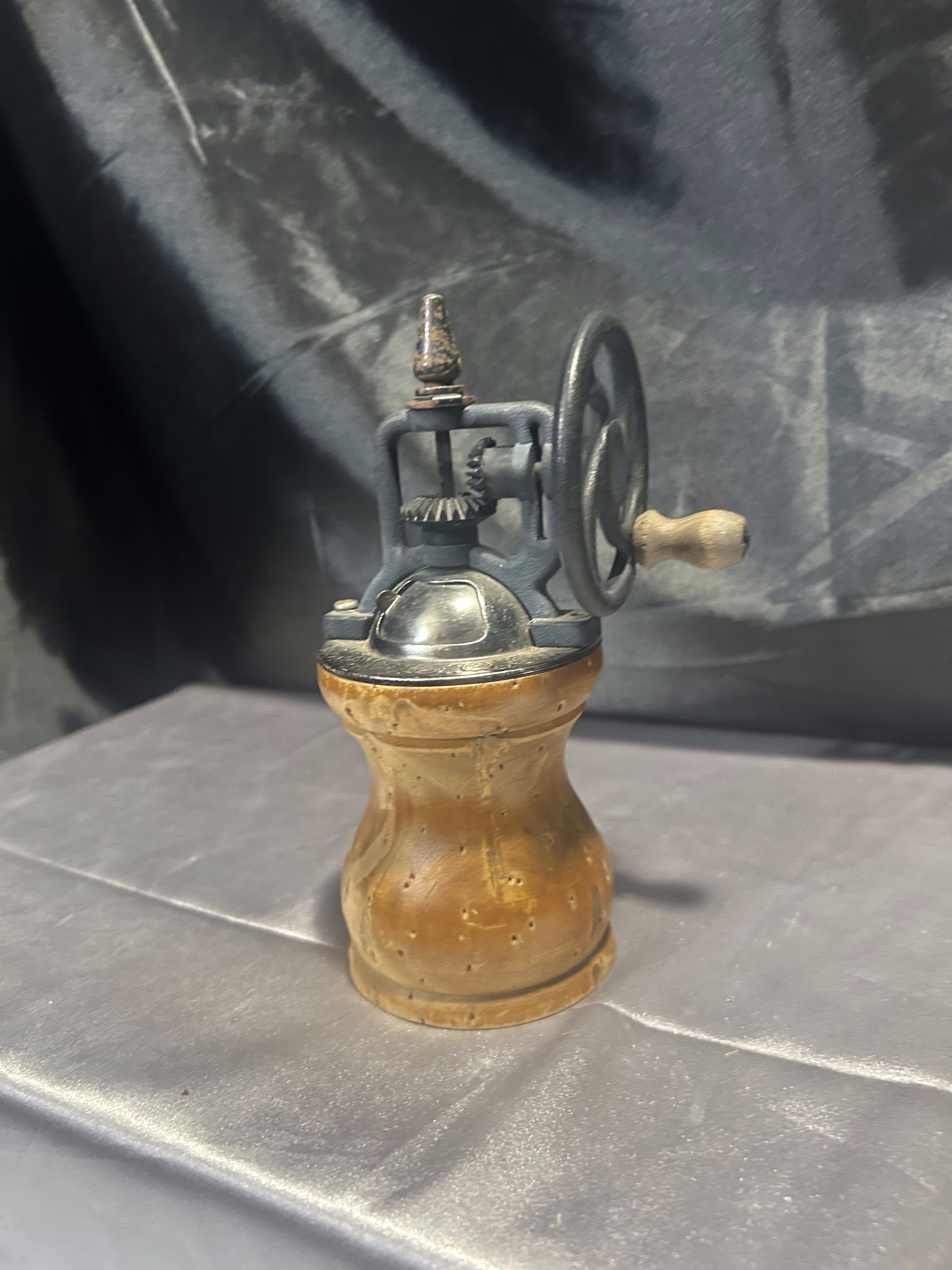 Ten drewniany młynek do pieprzu z bocznym kołowrotkiem to nie tylko praktyczne narzędzie, ale również stylowa ozdoba kuchni. Jego oryginalna forma i solidne wykonanie nadają mu wyjątkowego charakteru. Świetny do codziennego użytku lub jako element kolekcji retro dodatków kuchennych.