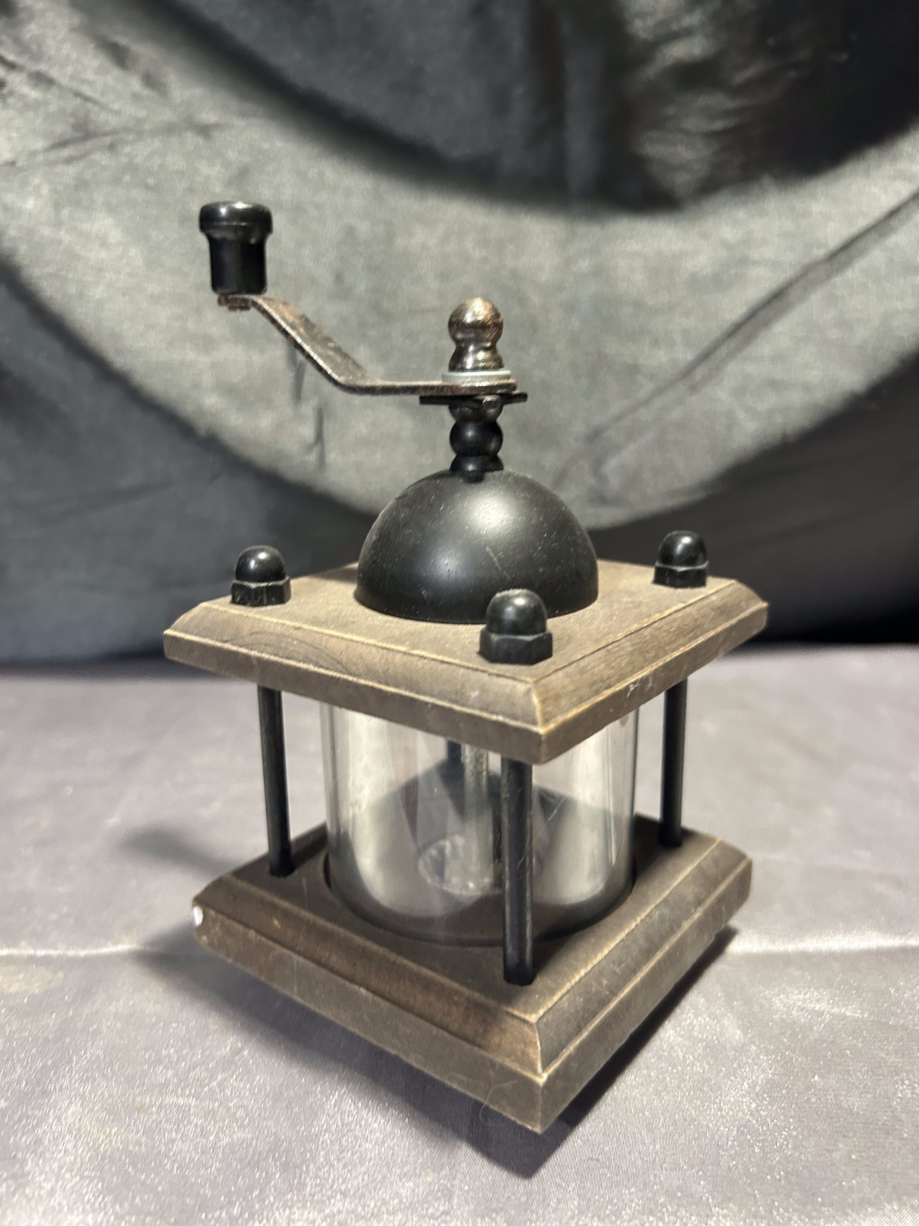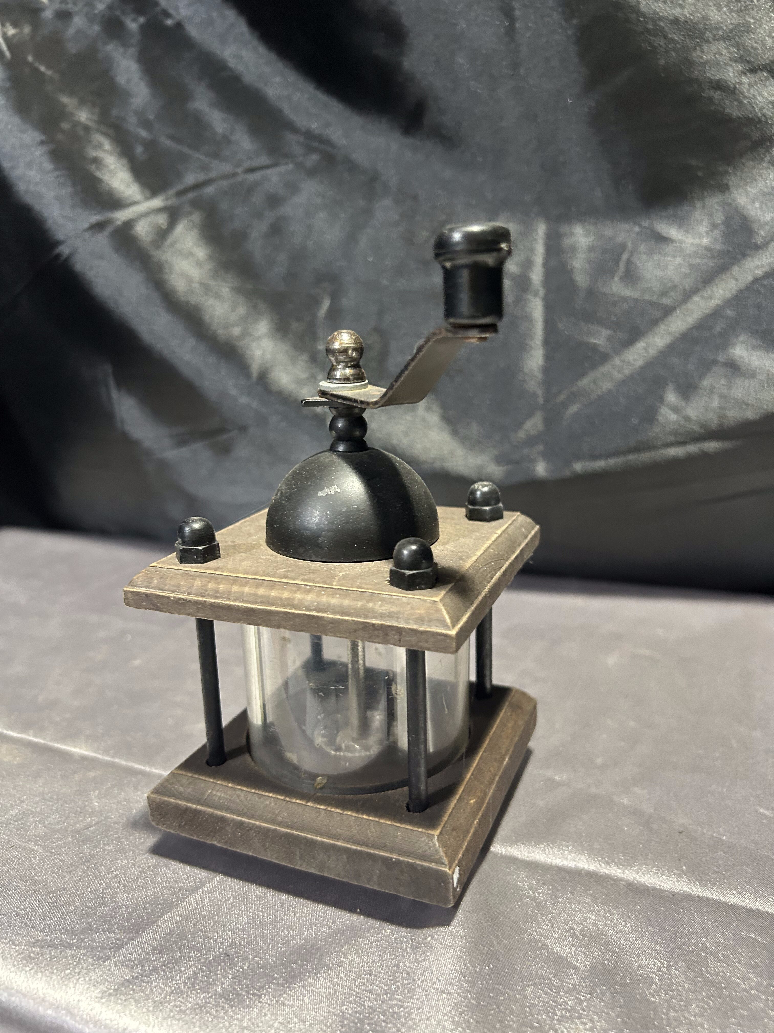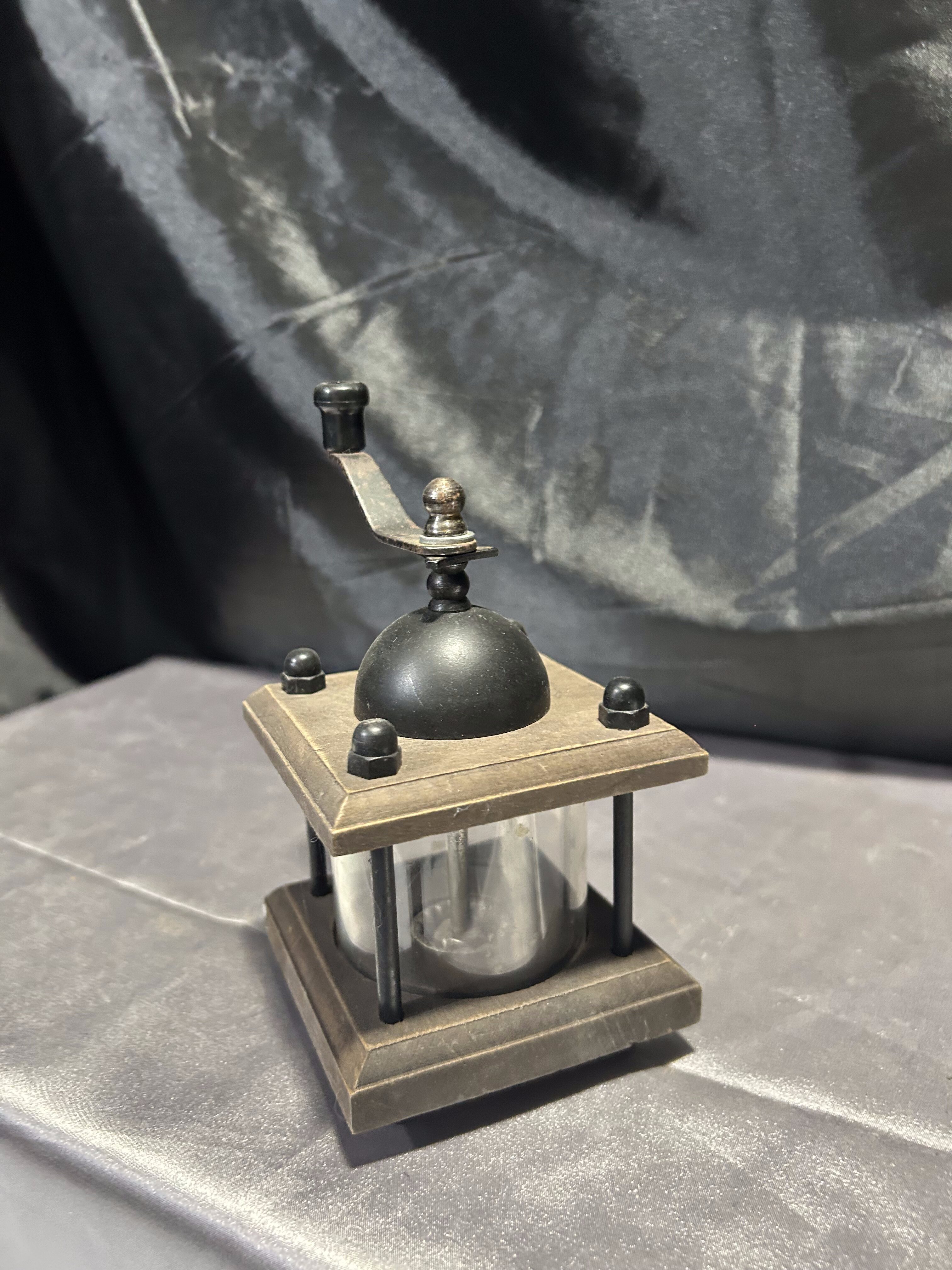 - Młynek do pieprzu – Drewno i szkło – Widoczne ziarna, korbka u góry
