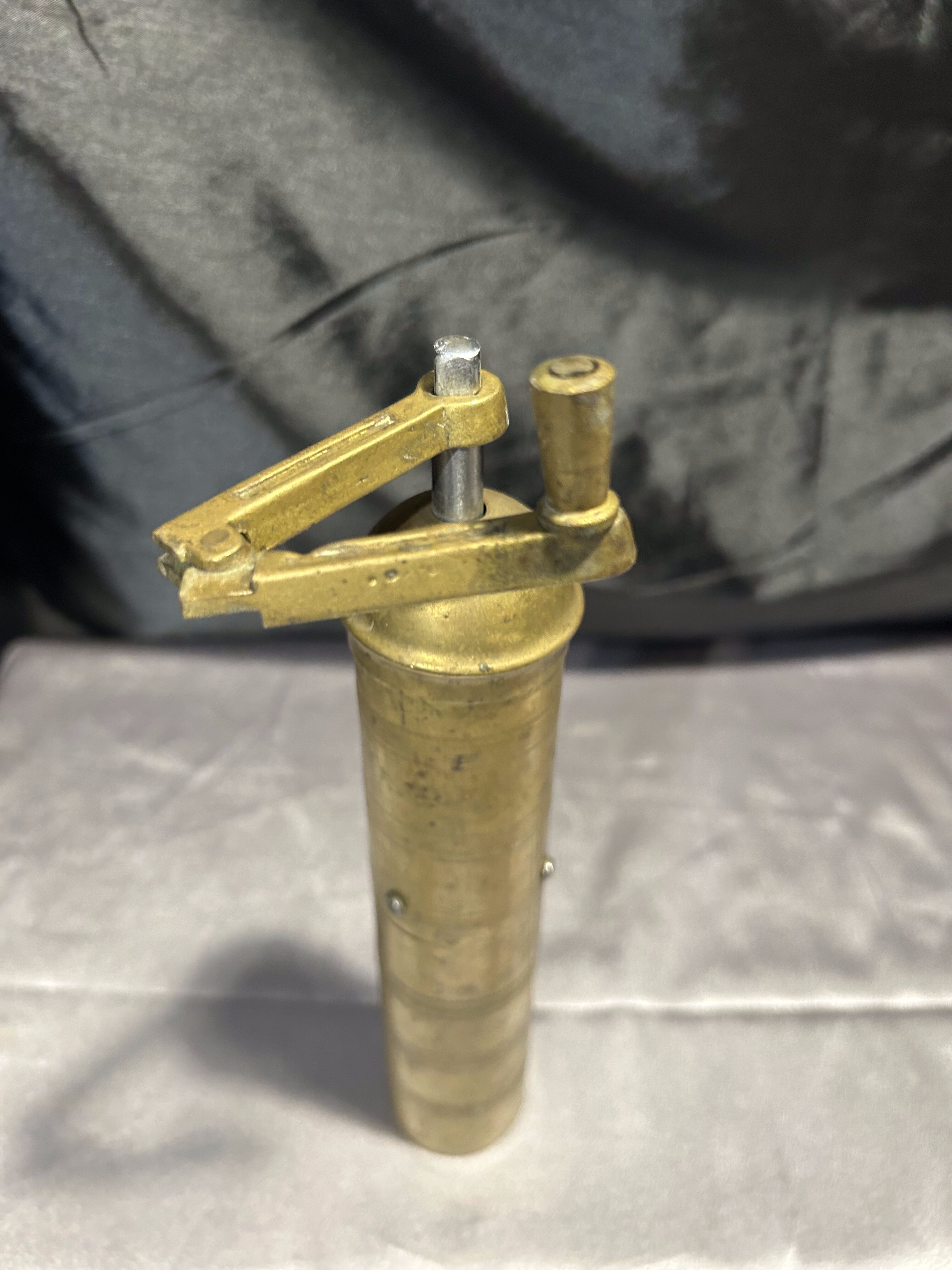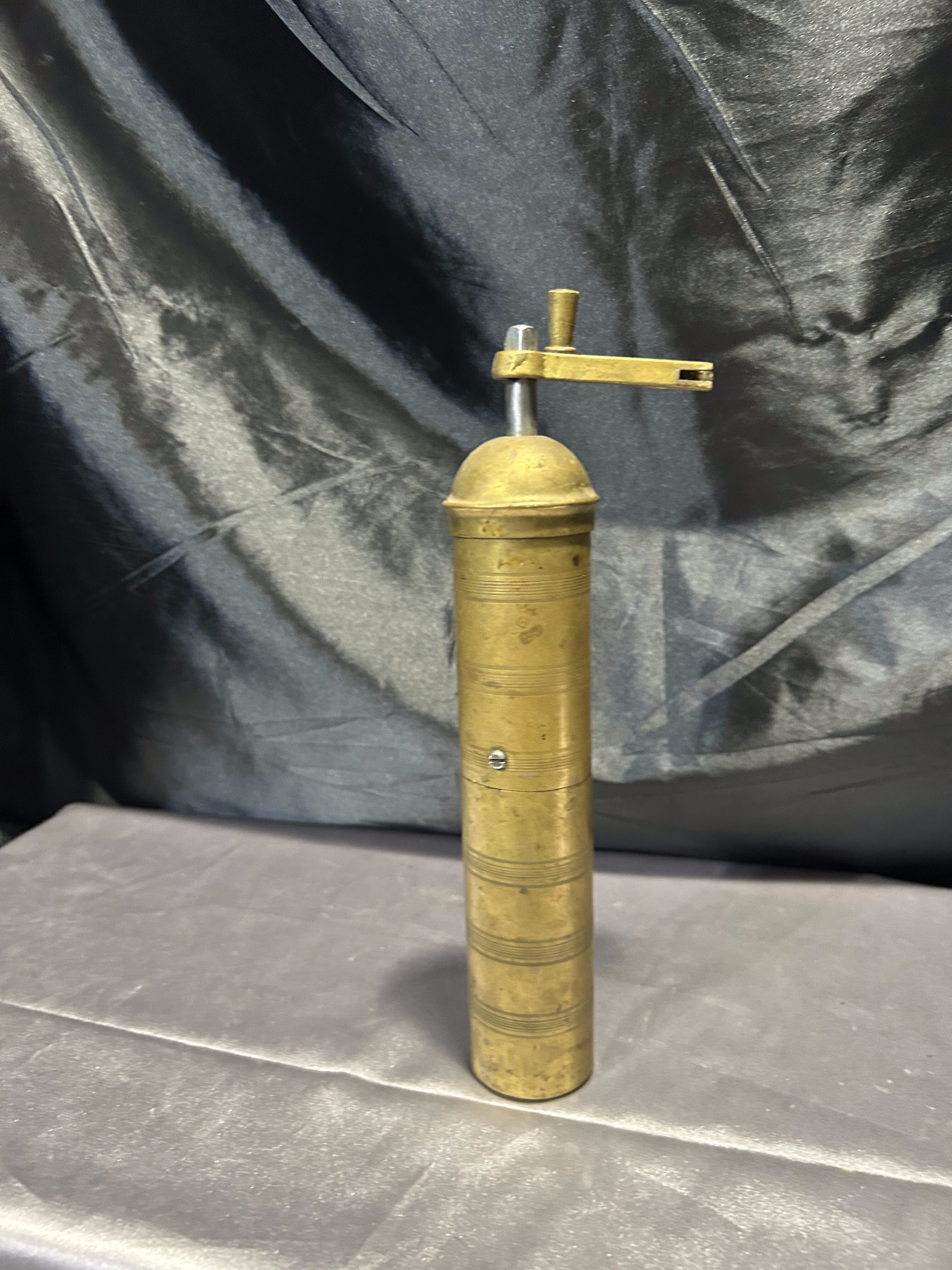 Na sprzedaż dekoracyjny i funkcjonalny mosiężny młynek do przypraw, wykonany w Albanii. Klasyczny, smukły kształt i solidna konstrukcja sprawiają, że młynek doskonale sprawdza się zarówno jako narzędzie kuchenne, jak i efektowna ozdoba w stylu orientalnym lub vintage.