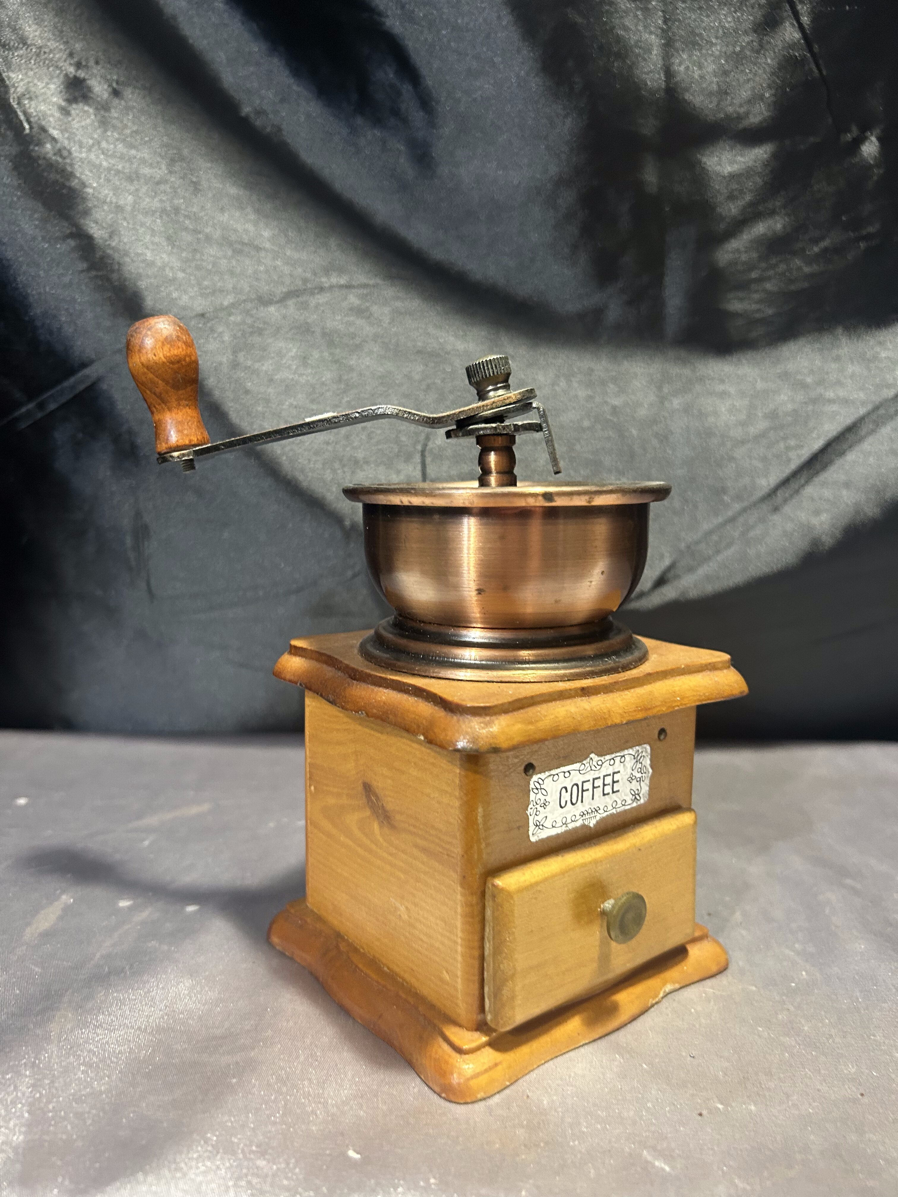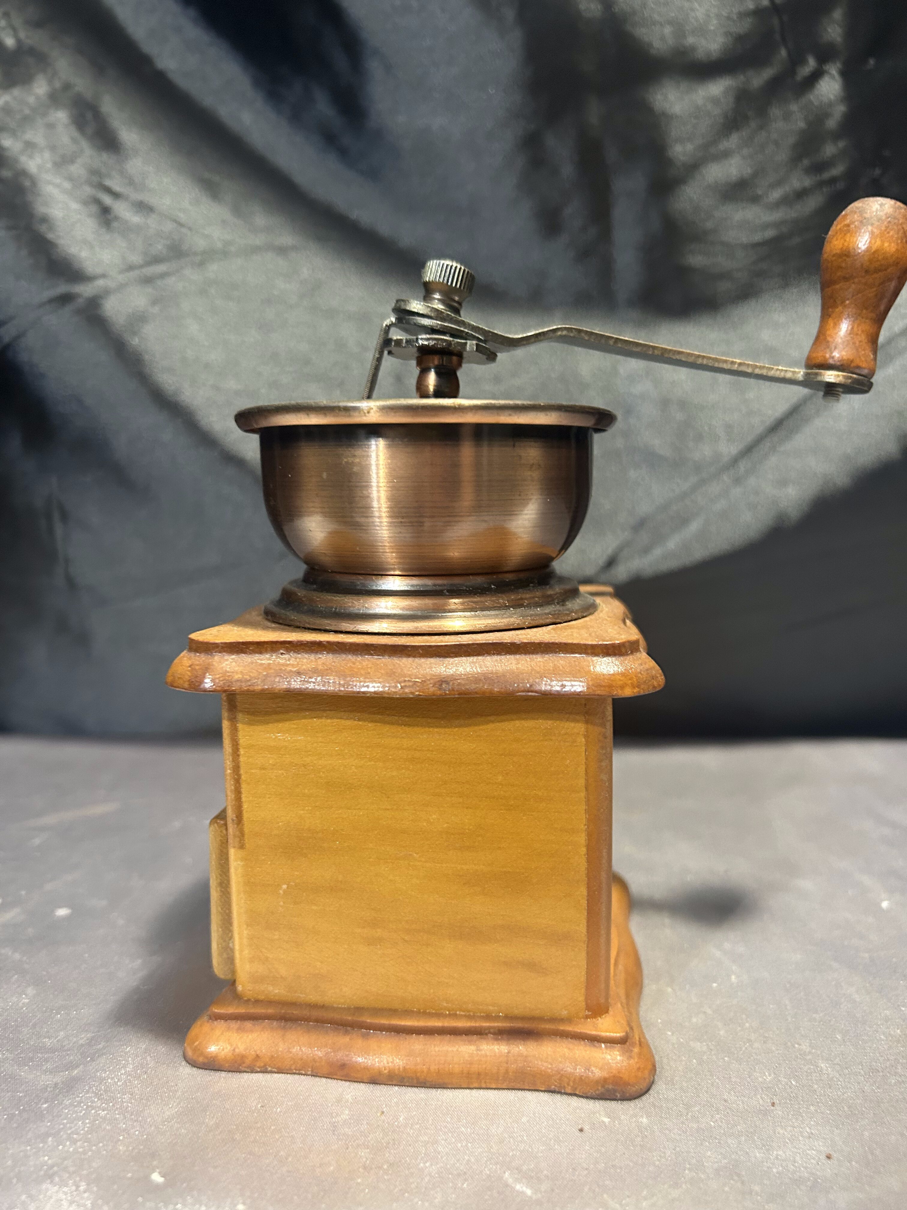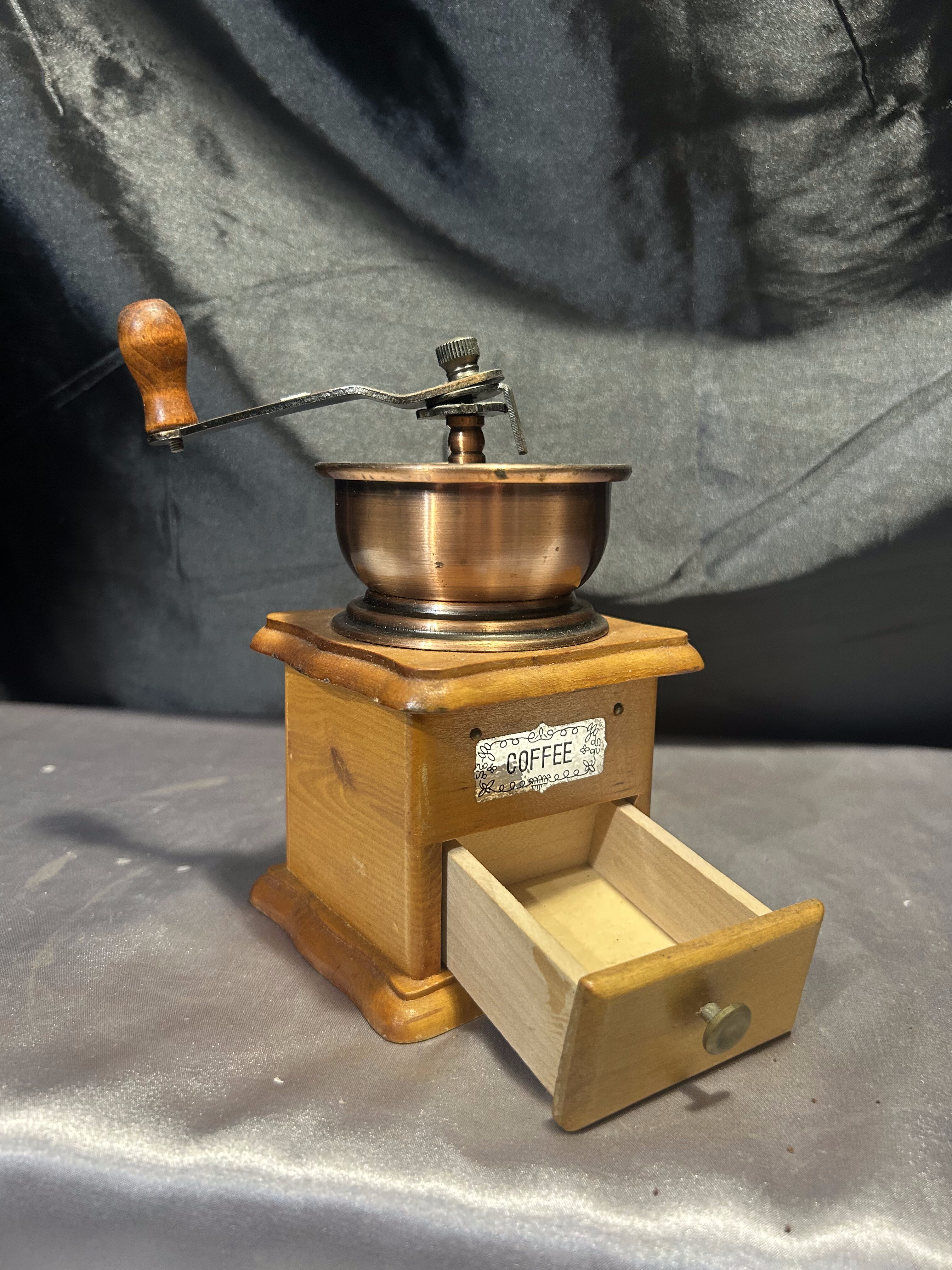 Młynek do kawy – Drewniany, stary – Z dorabianą szufladką – Styl retro