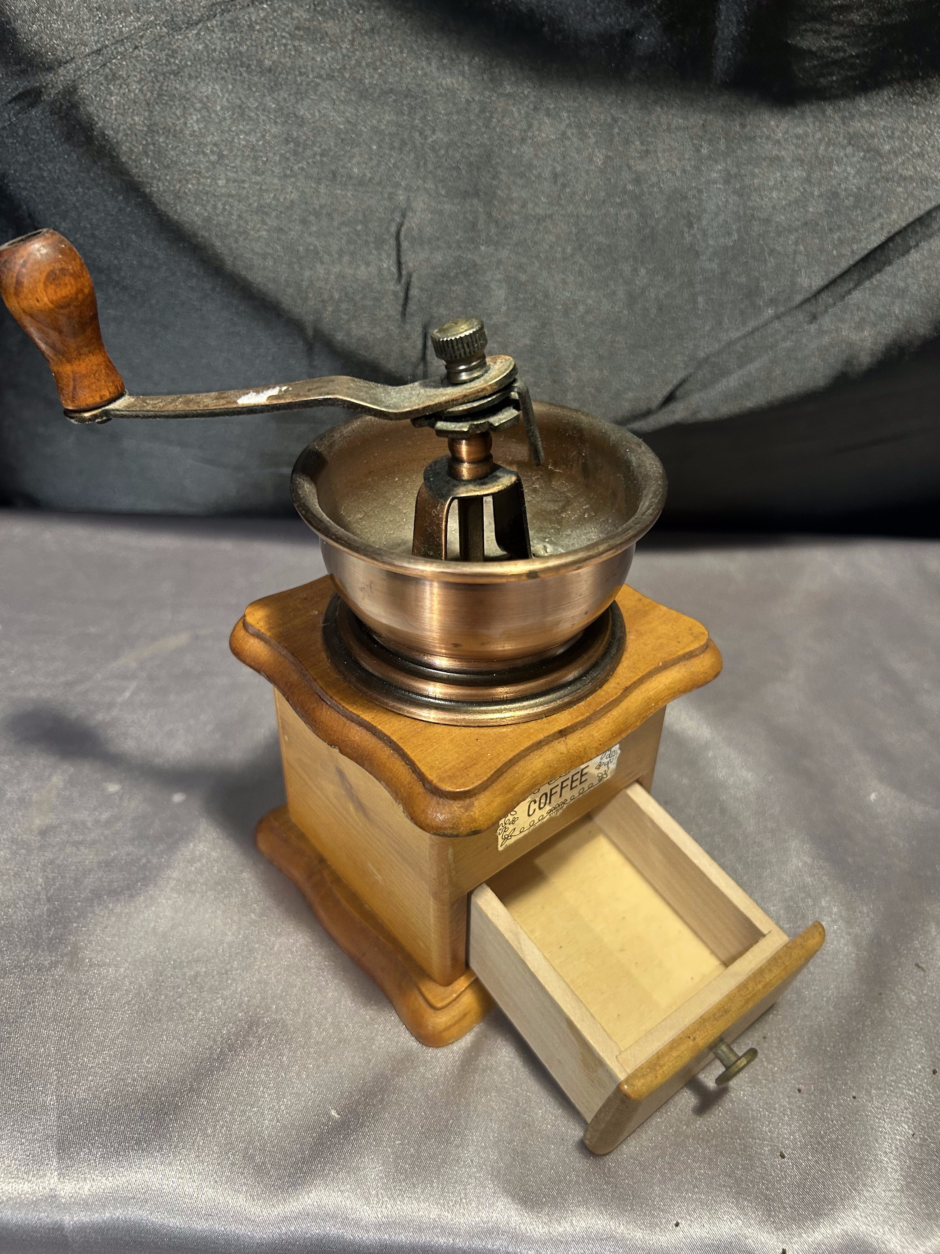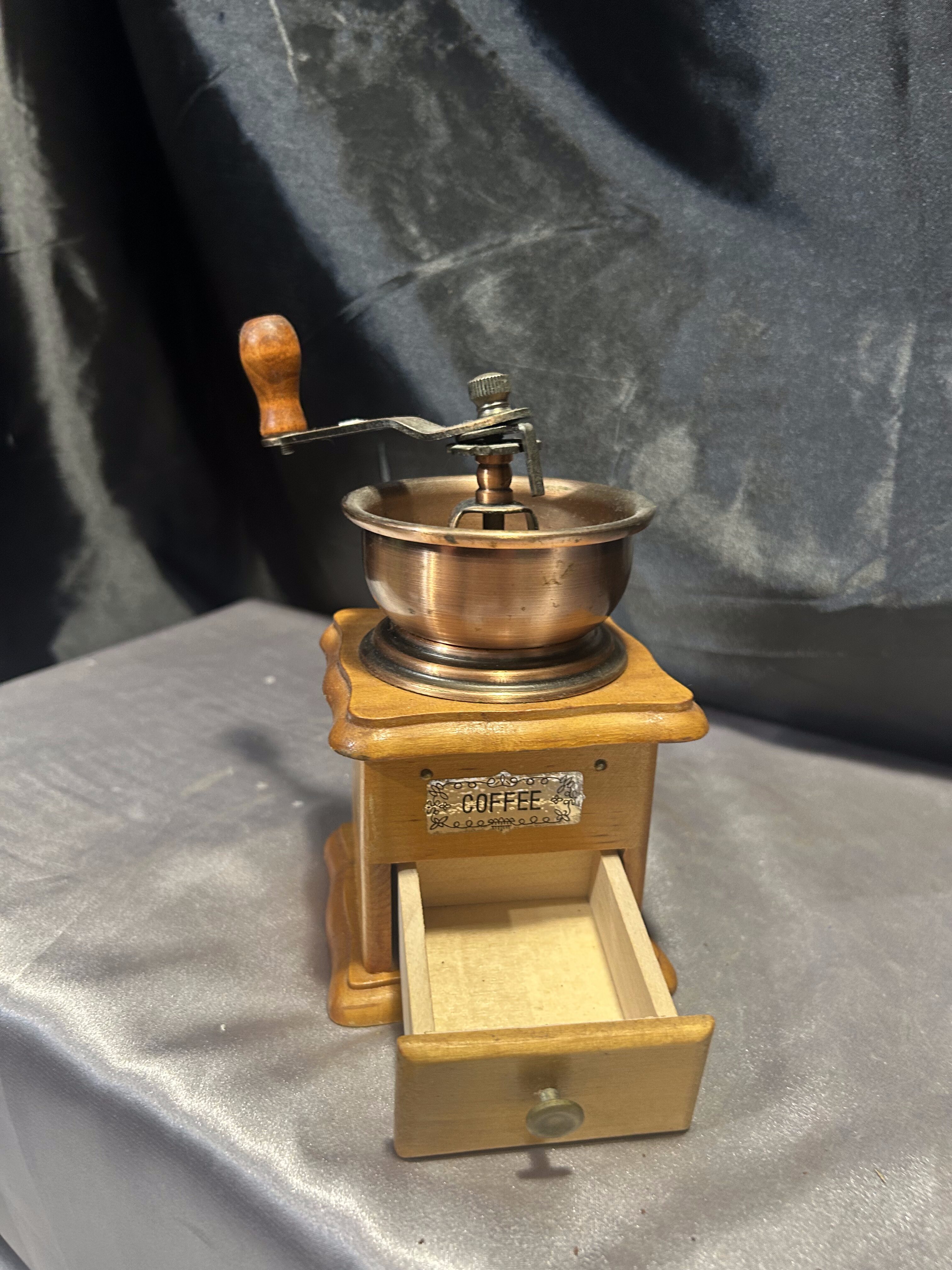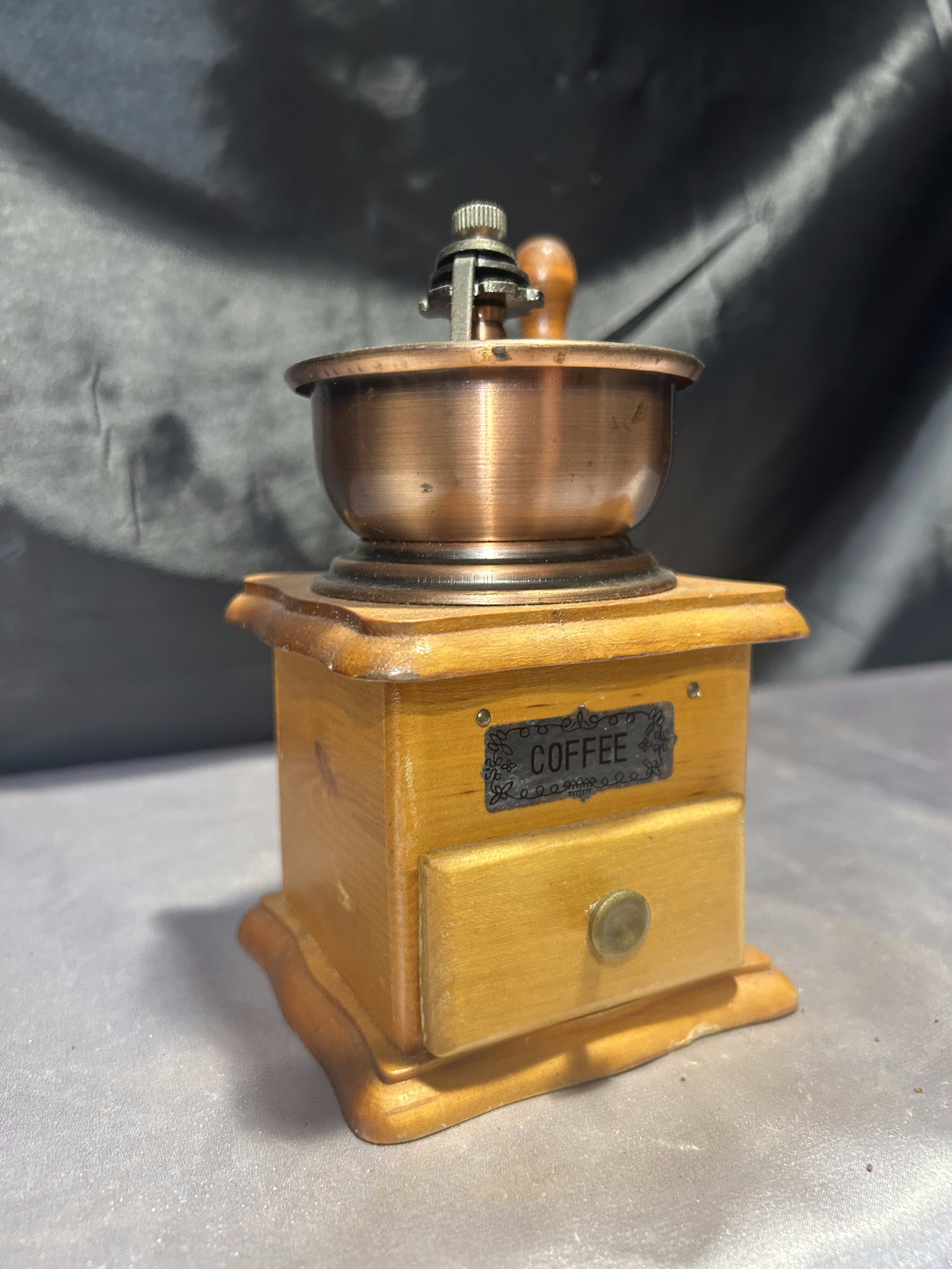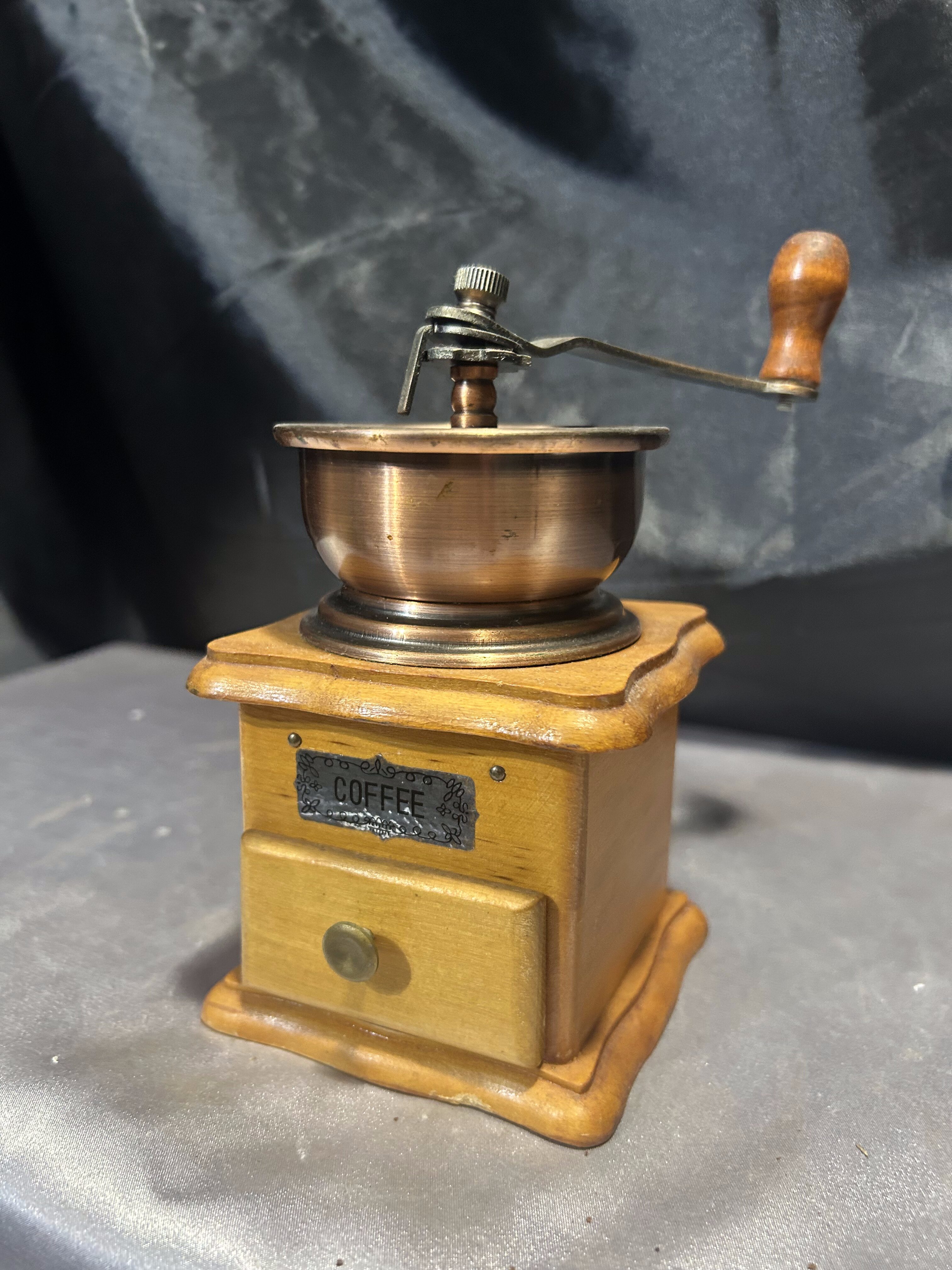 Młynek do kawy – Drewniany, stary – Z dorabianą szufladką – Styl retro