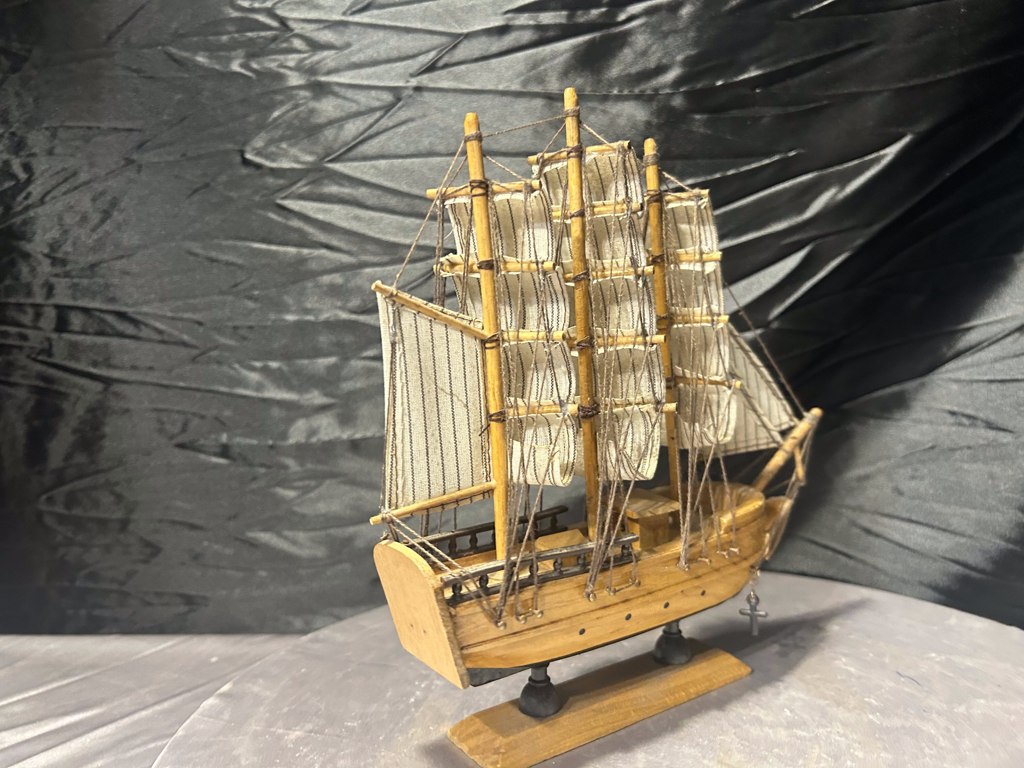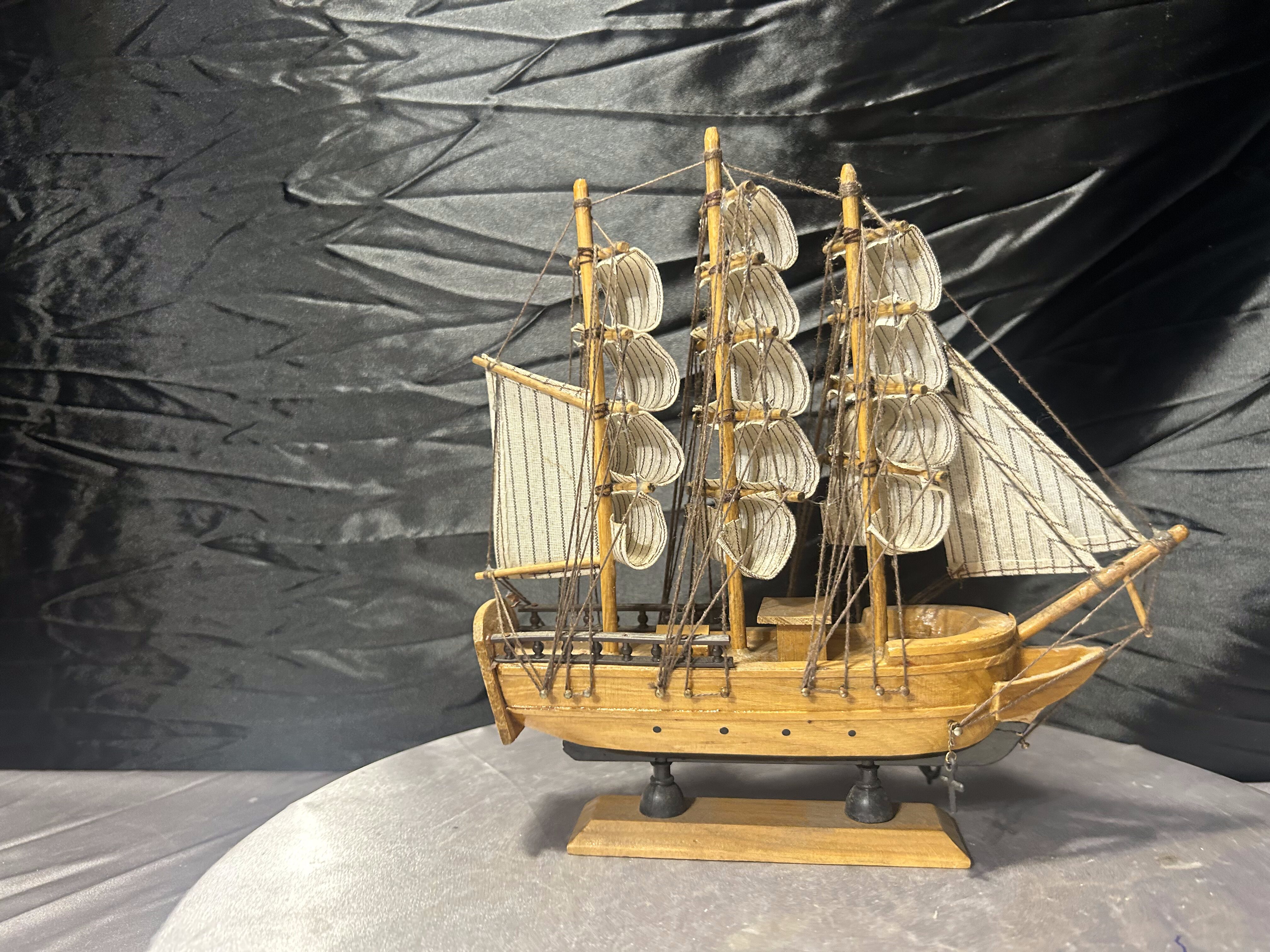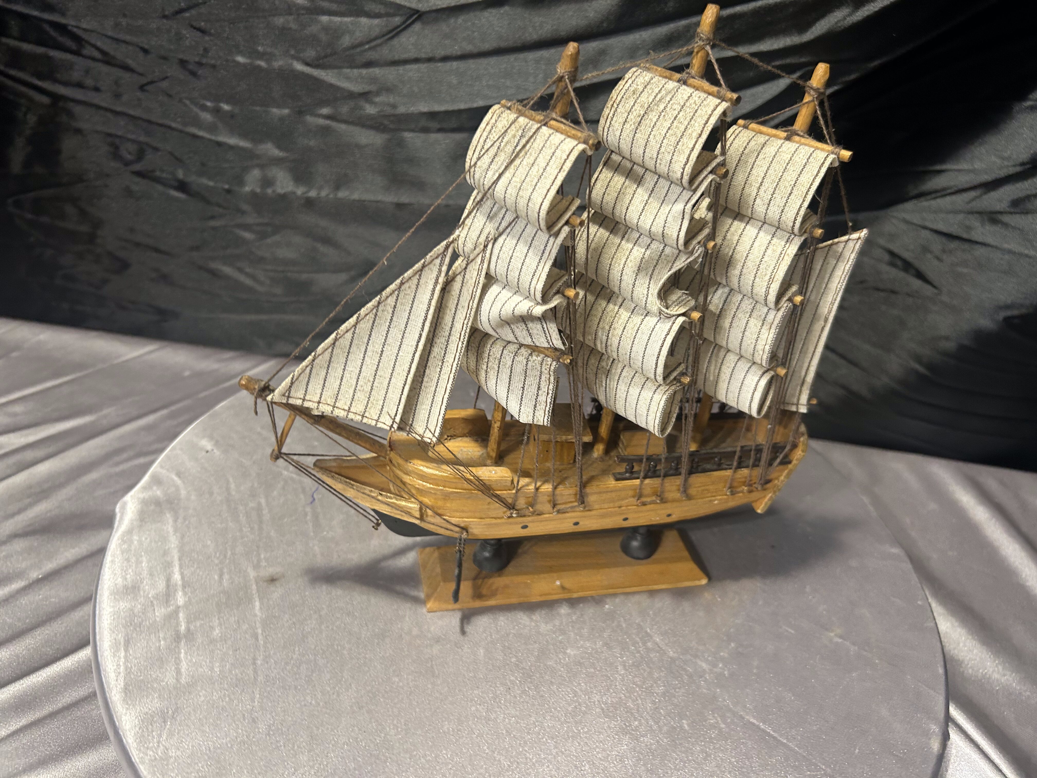 Model statku żaglowego – drewno i materiał – styl marynistyczny