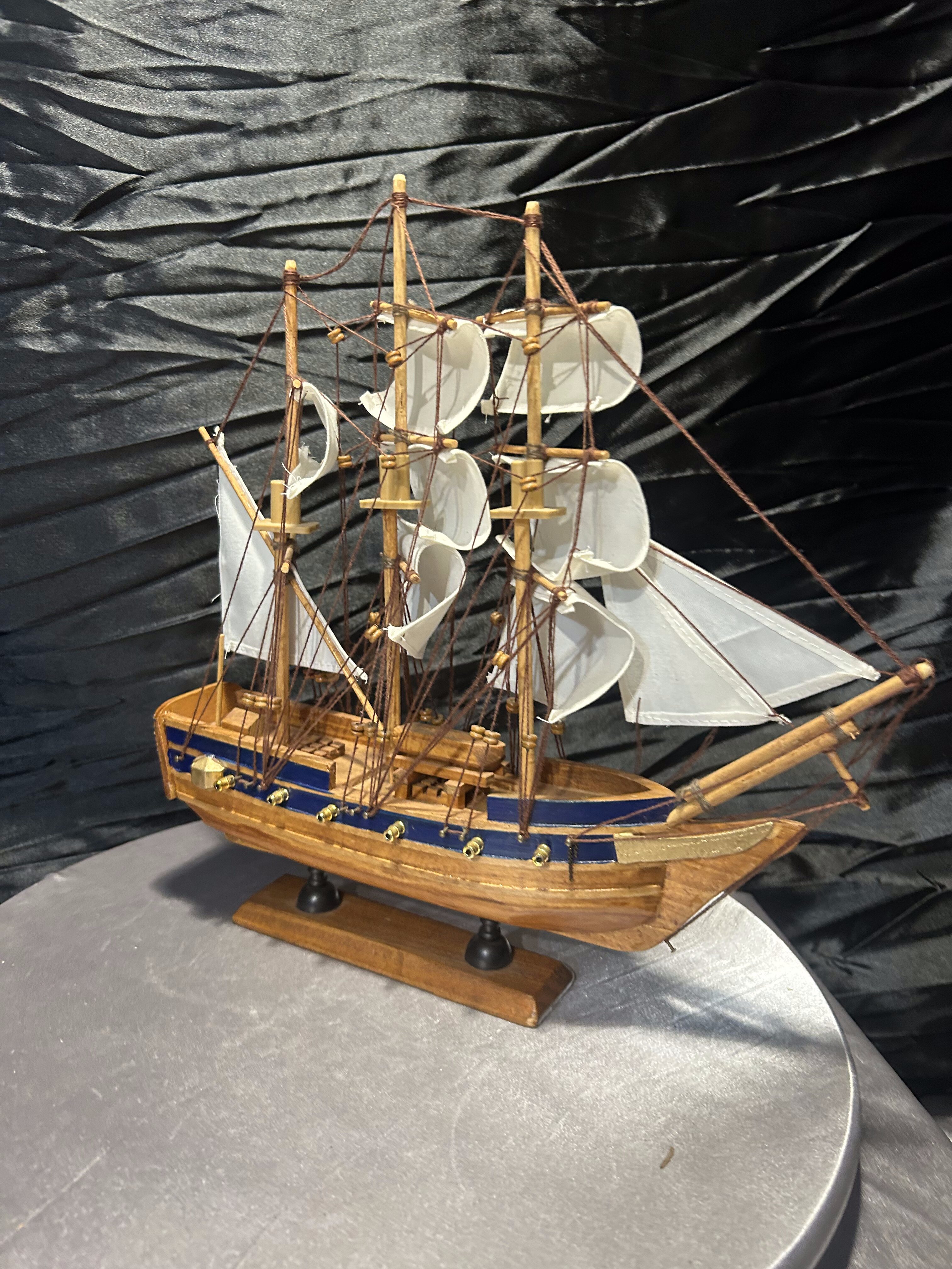 Drewniany Statek – Żaglowiec Fregata, 3 Maszty, Stonowane Kolory