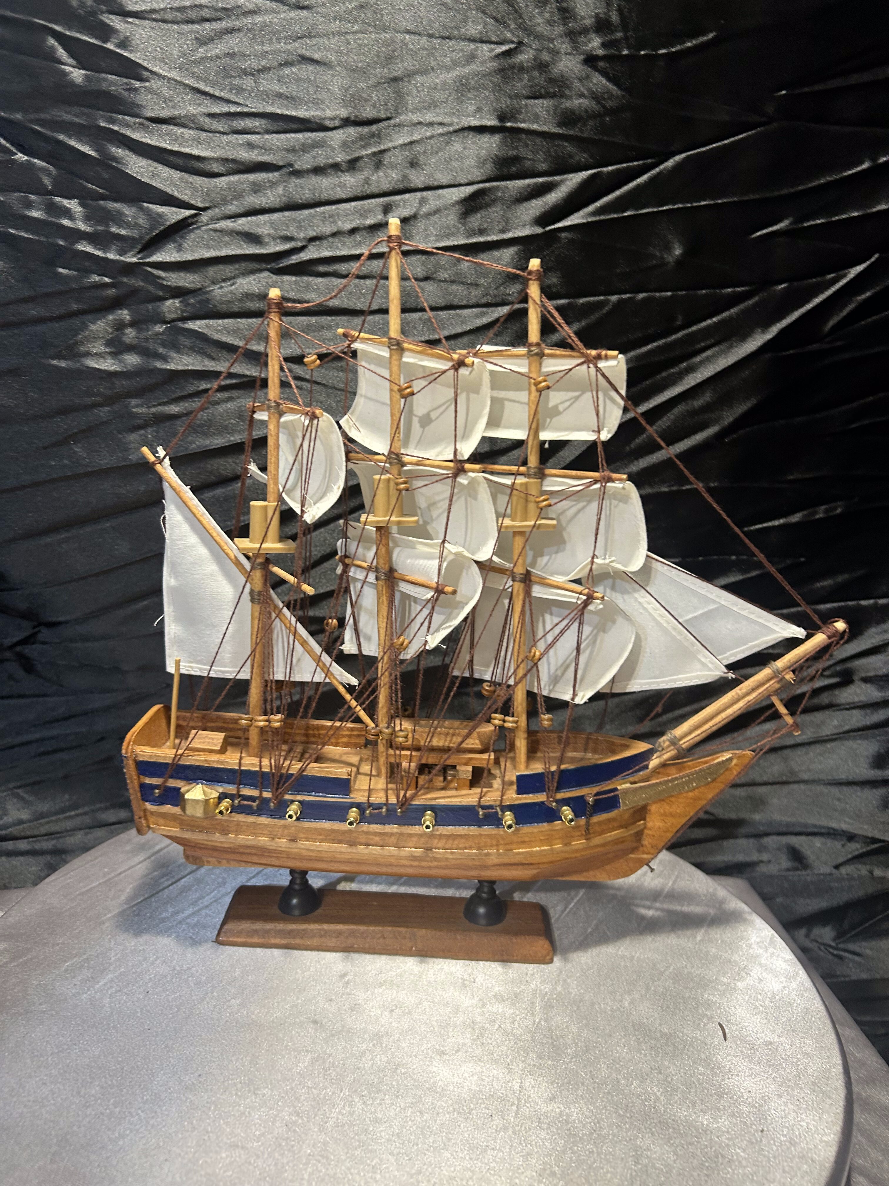Piękny model żaglowca o nazwie „Croatia”, wykonany z drewna z dbałością o detale. Smukła linia kadłuba, precyzyjnie odwzorowane olinowanie i białe żagle nadają mu autentycznego charakteru, przywołując klimat dawnych morskich podróży i odkryć.