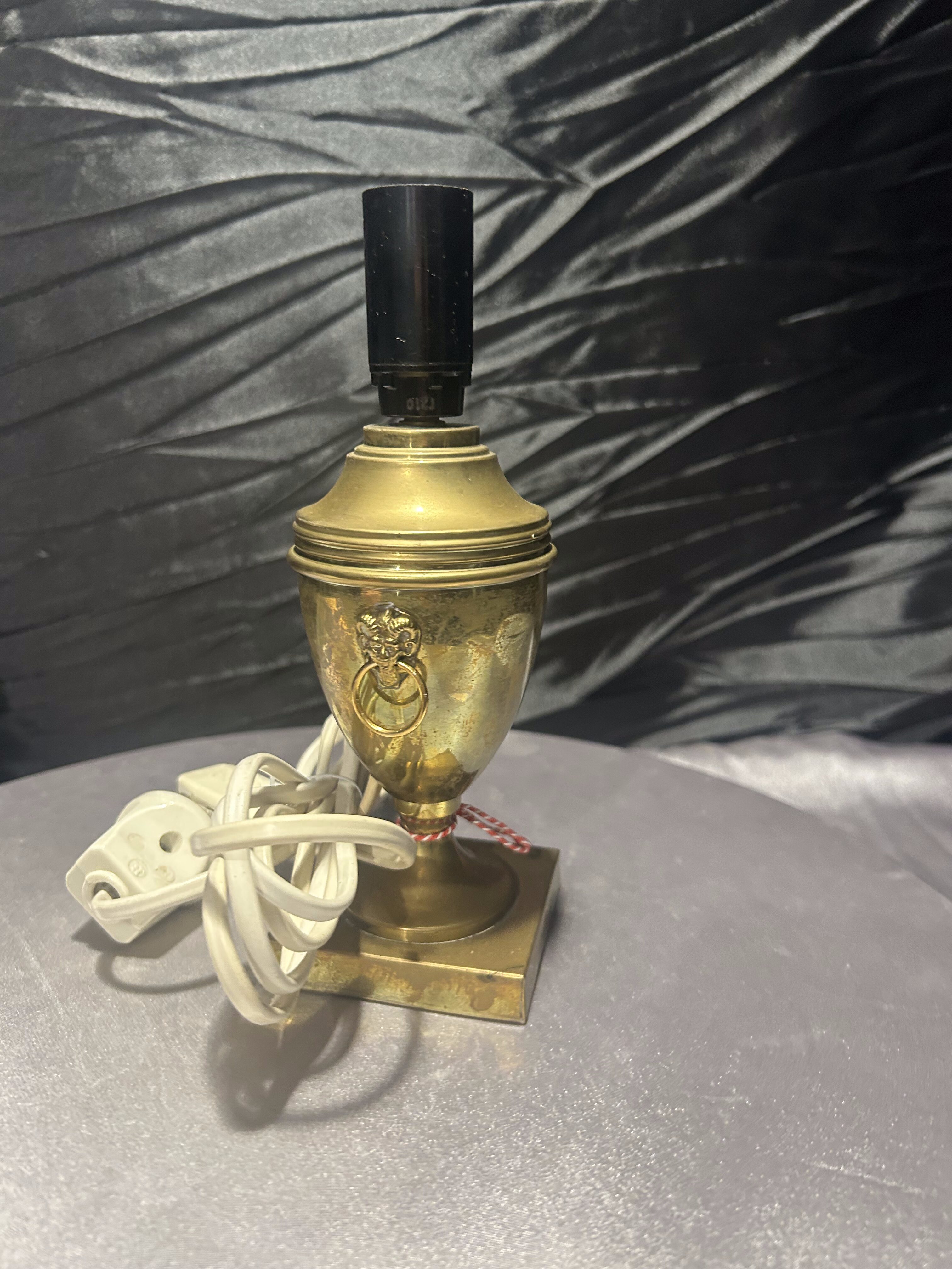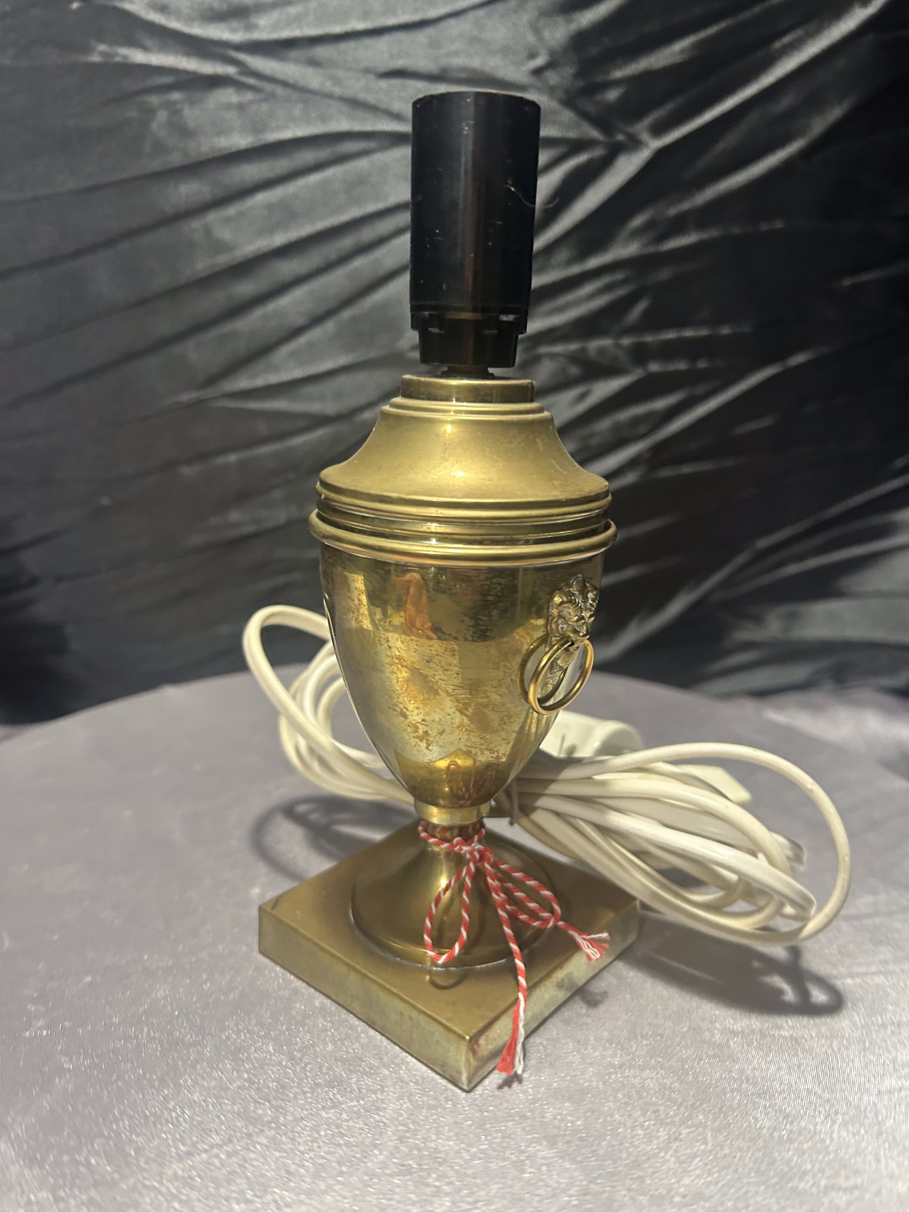 Elegancka, kompaktowa lampa stołowa wykonana z mosiądzu, utrzymana w ponadczasowym, klasycznym stylu. Jej smukła forma i delikatne zdobienia w postaci ozdobnych uchwytów nadają całości wyjątkowego charakteru. Lampa została wyposażona w przewód z włącznikiem, co czyni ją praktycznym i stylowym dodatkiem do biurka, stolika nocnego lub komody. Doskonale łączy funkcjonalność z dekoracyjną elegancją, wprowadzając do wnętrza ciepło i przytulny klimat.