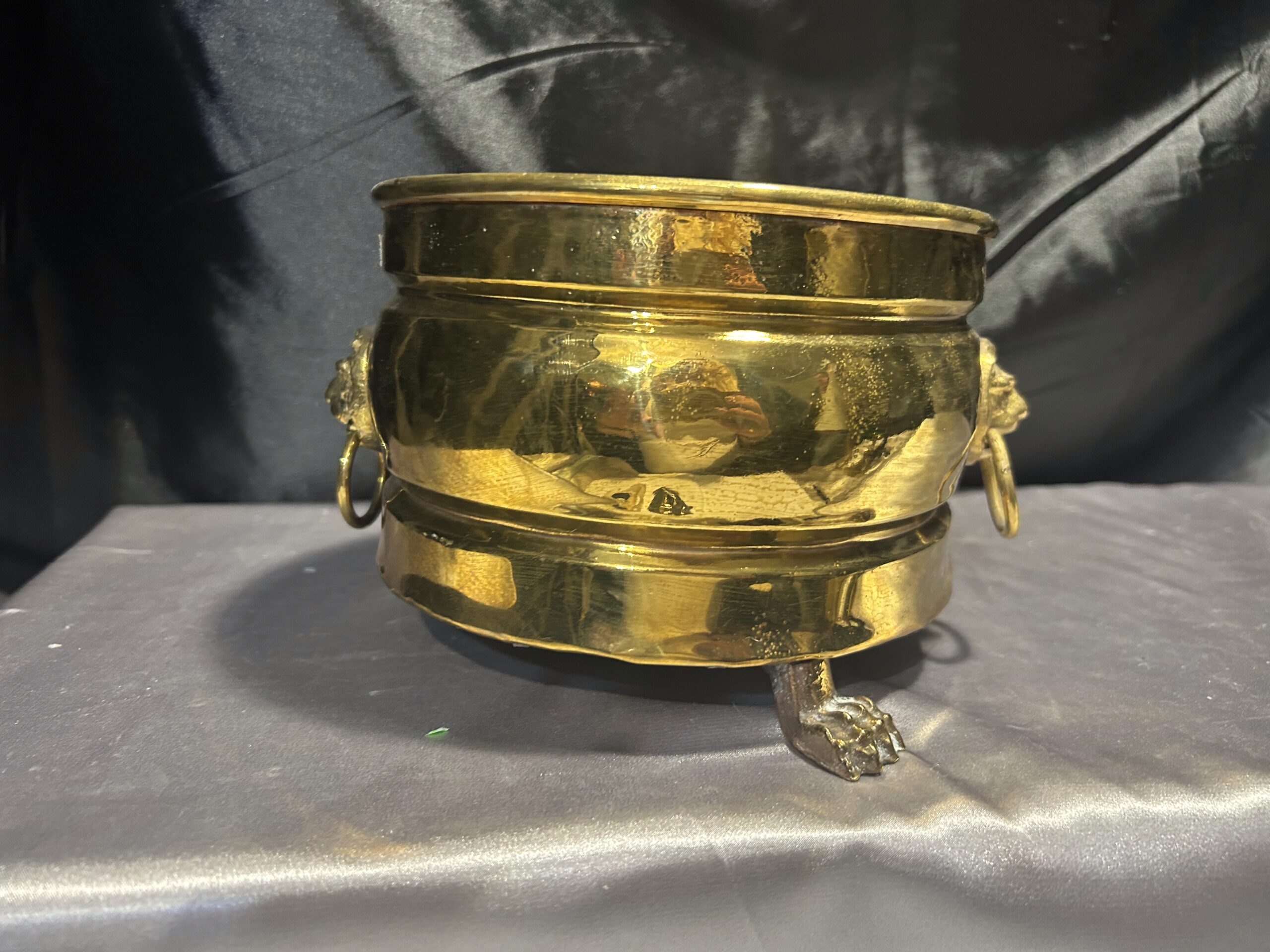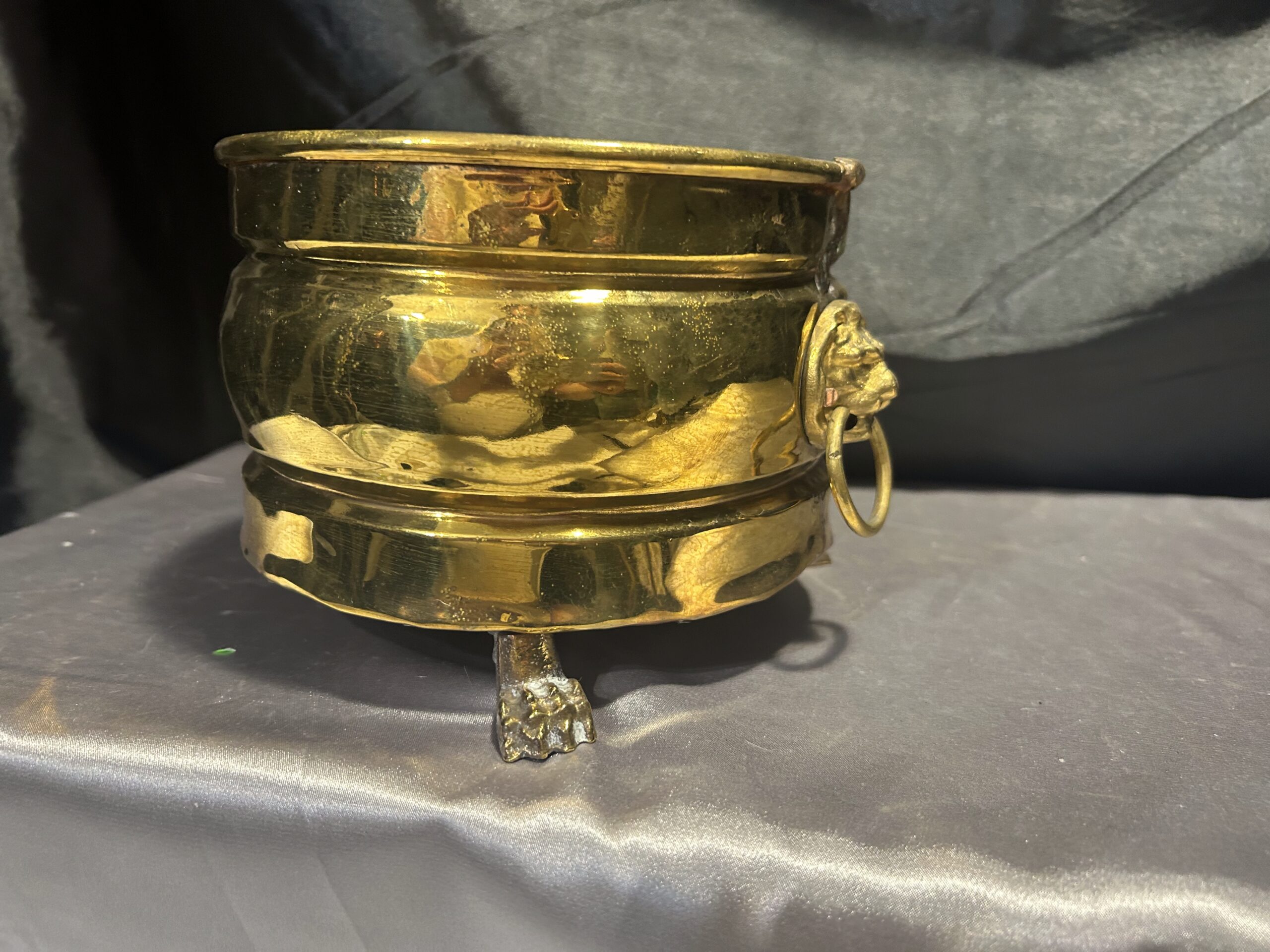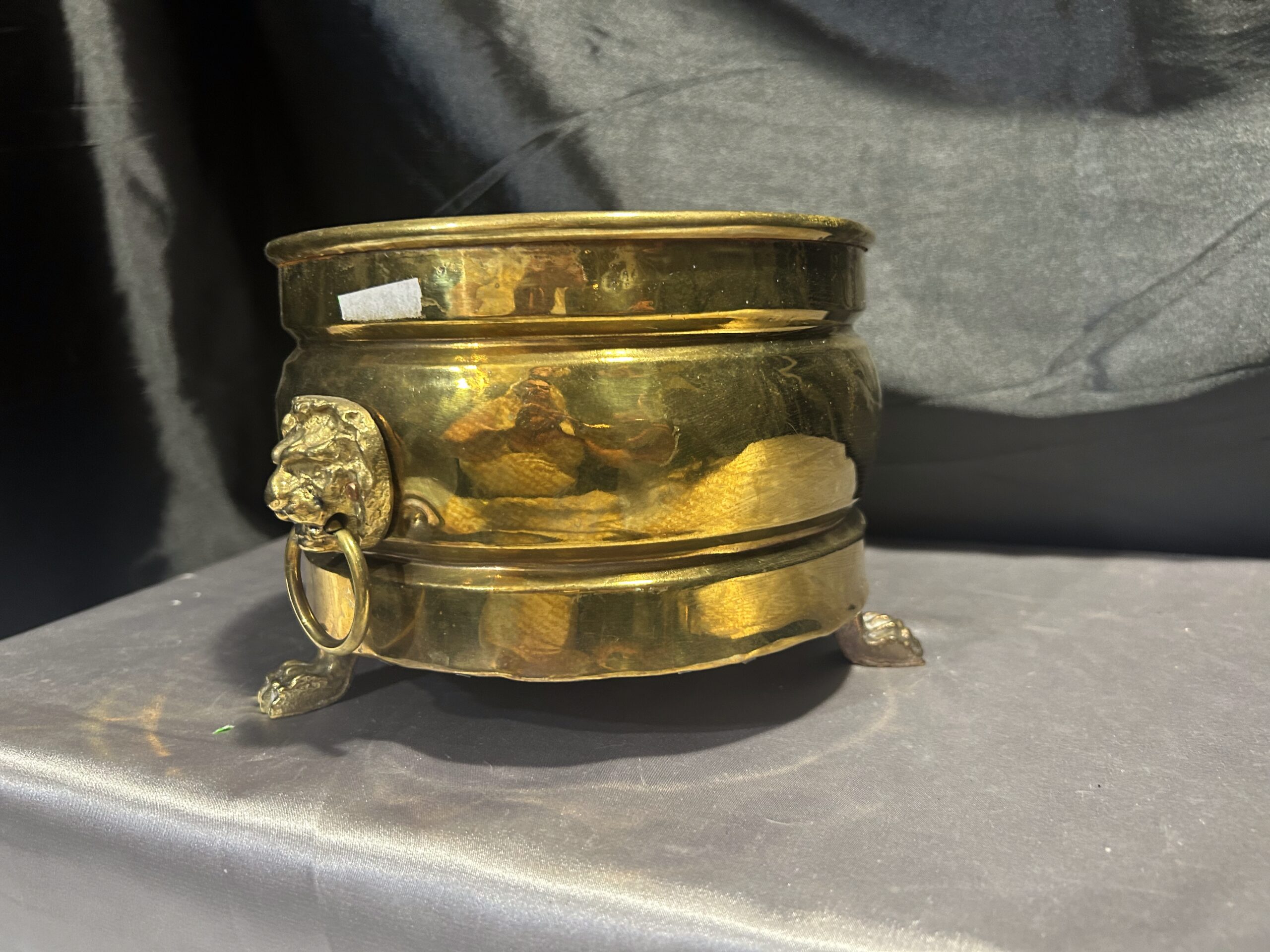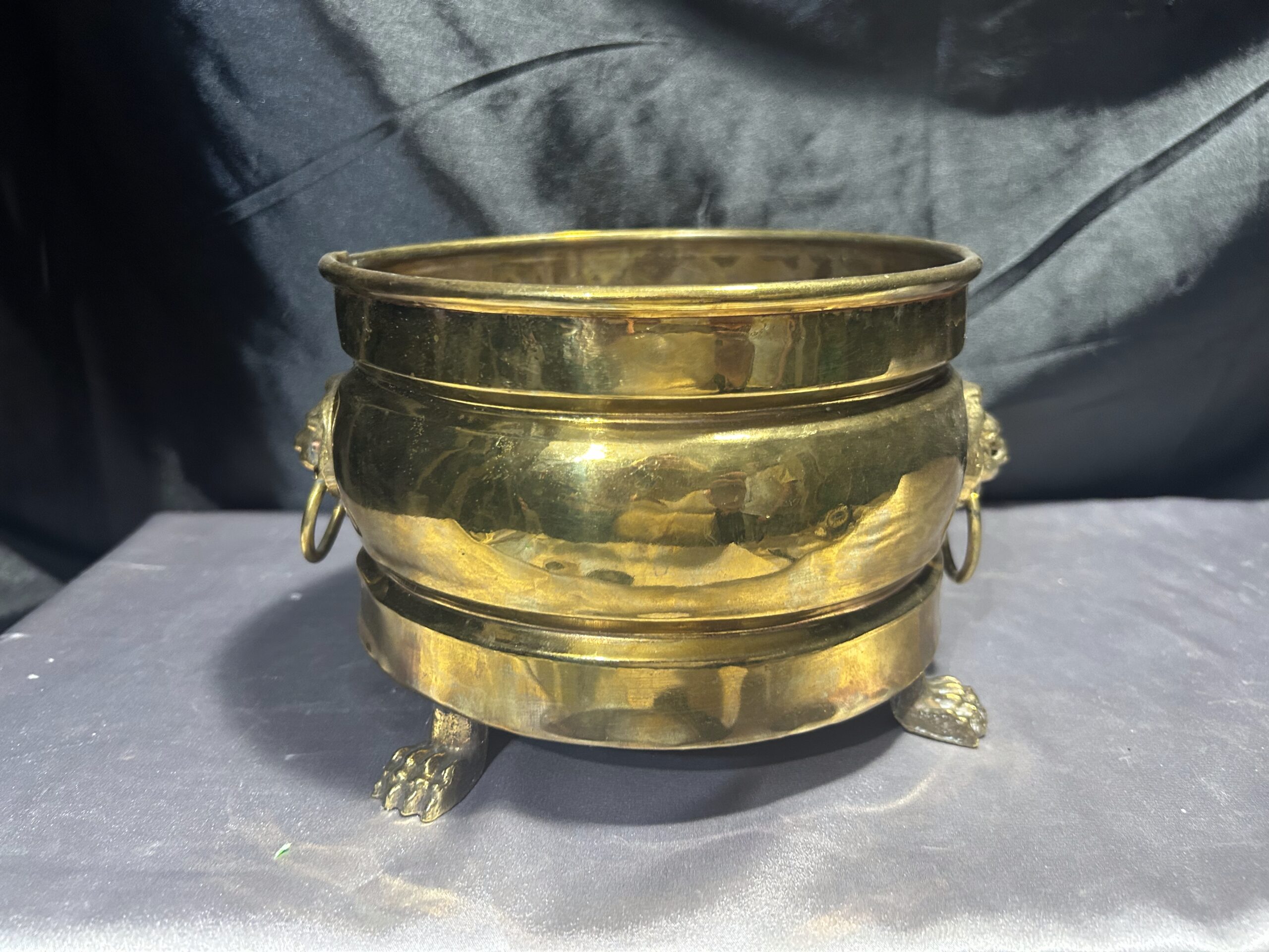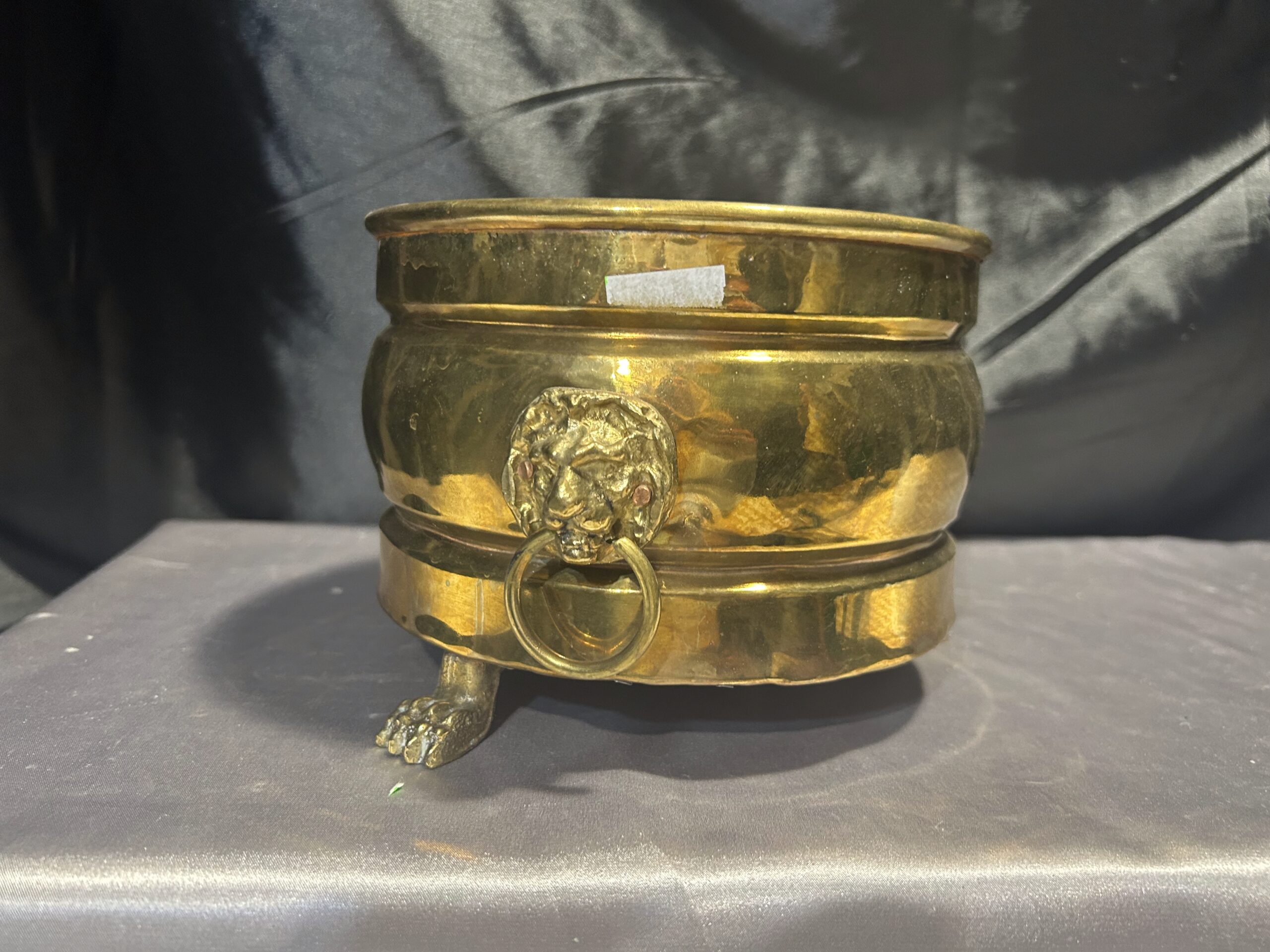 Mosiężna misa – patera lub kwietnik na lwich nogach z lwimi głowami