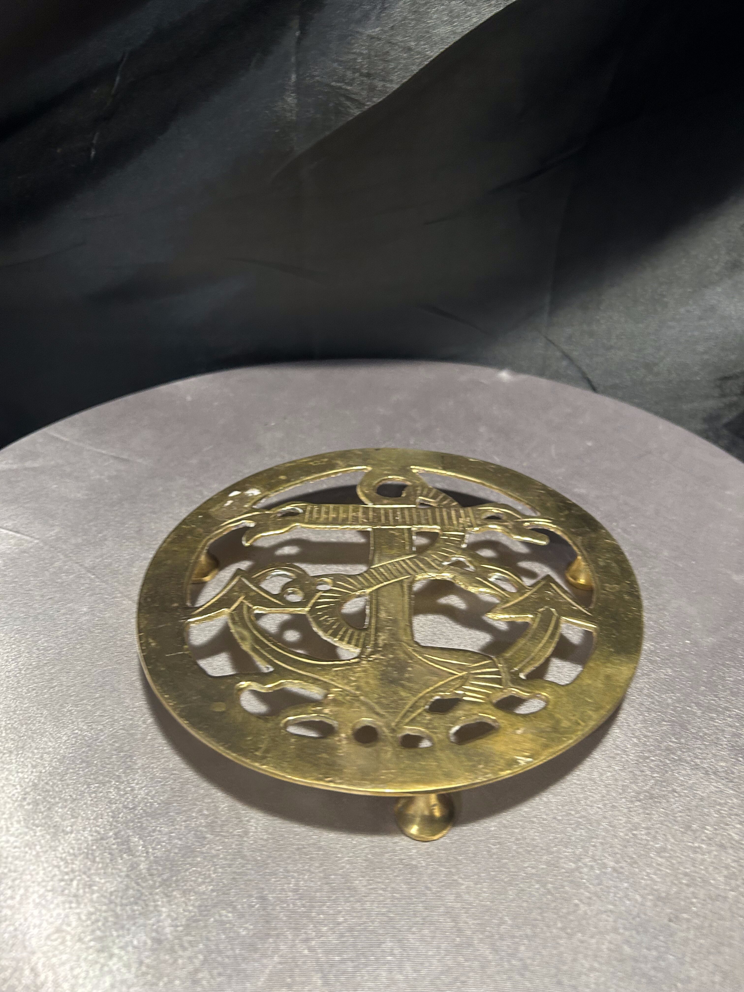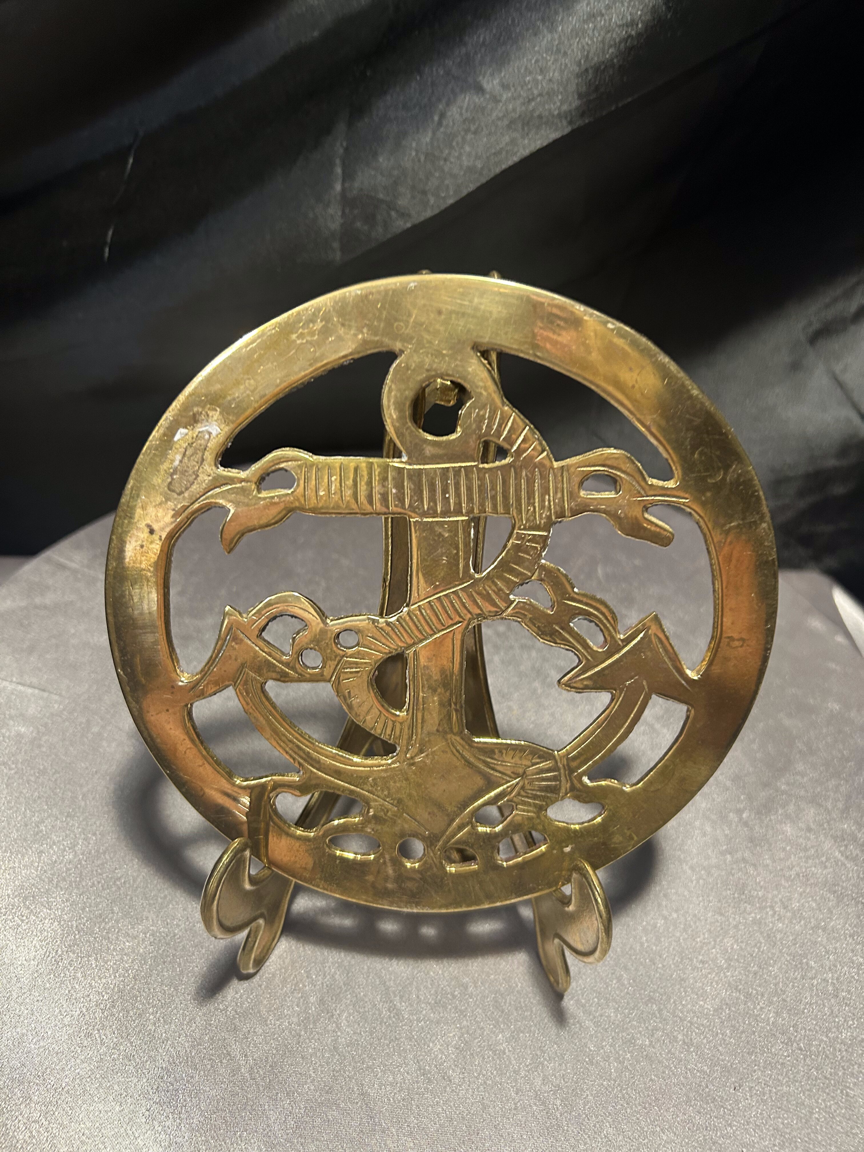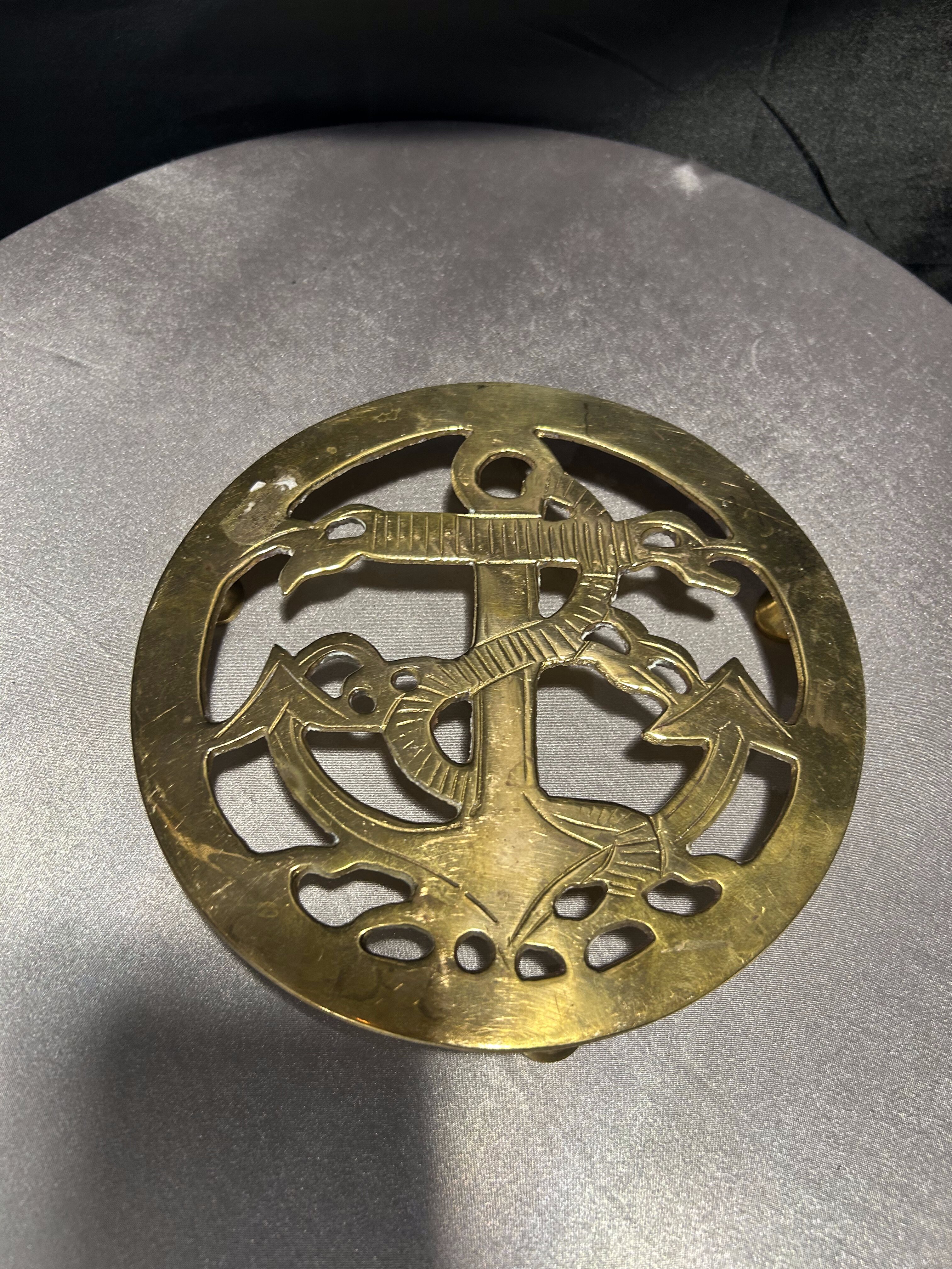 Mosiężna podstawka pod garnek – kotwica – marynistyczny styl