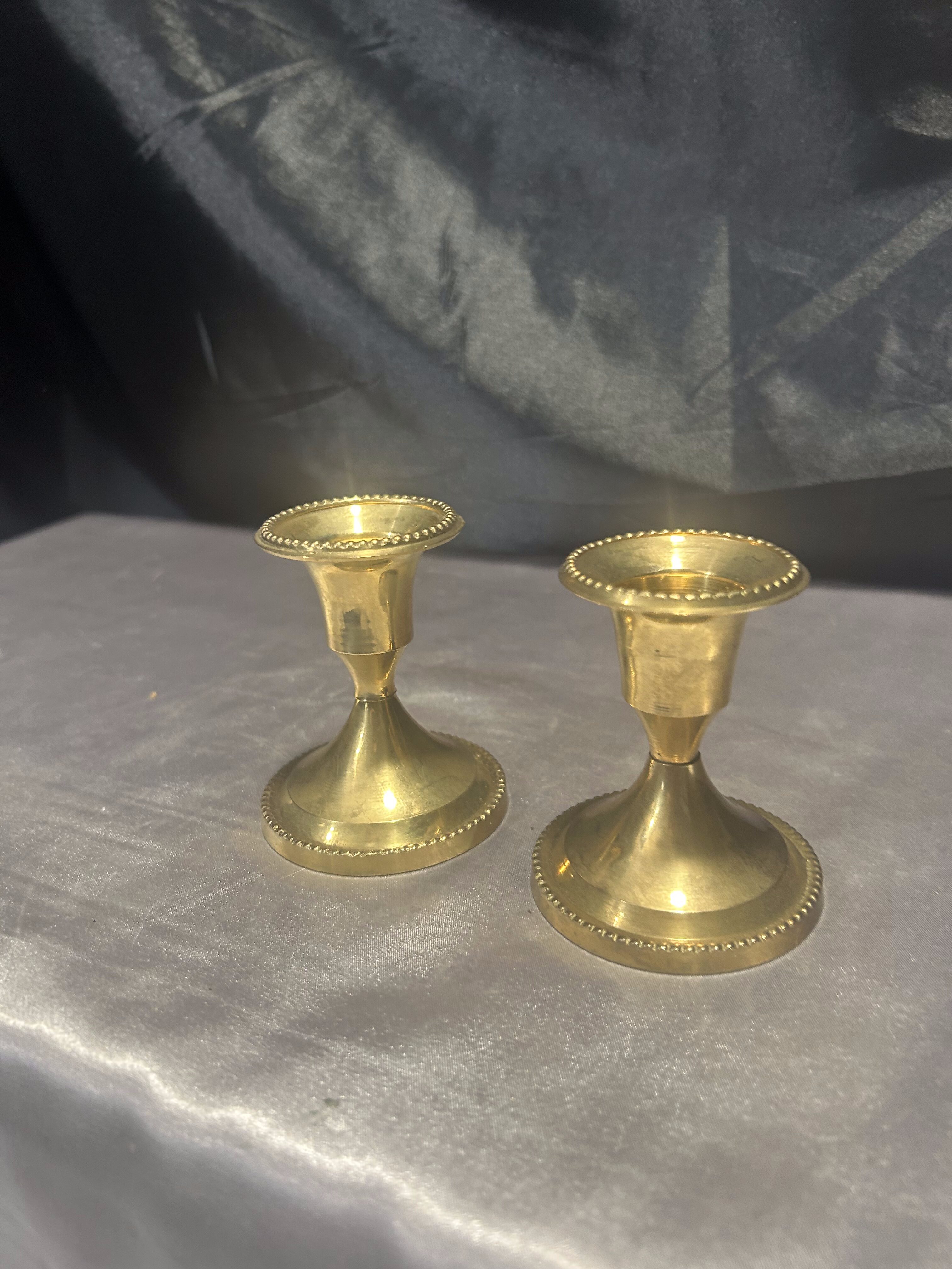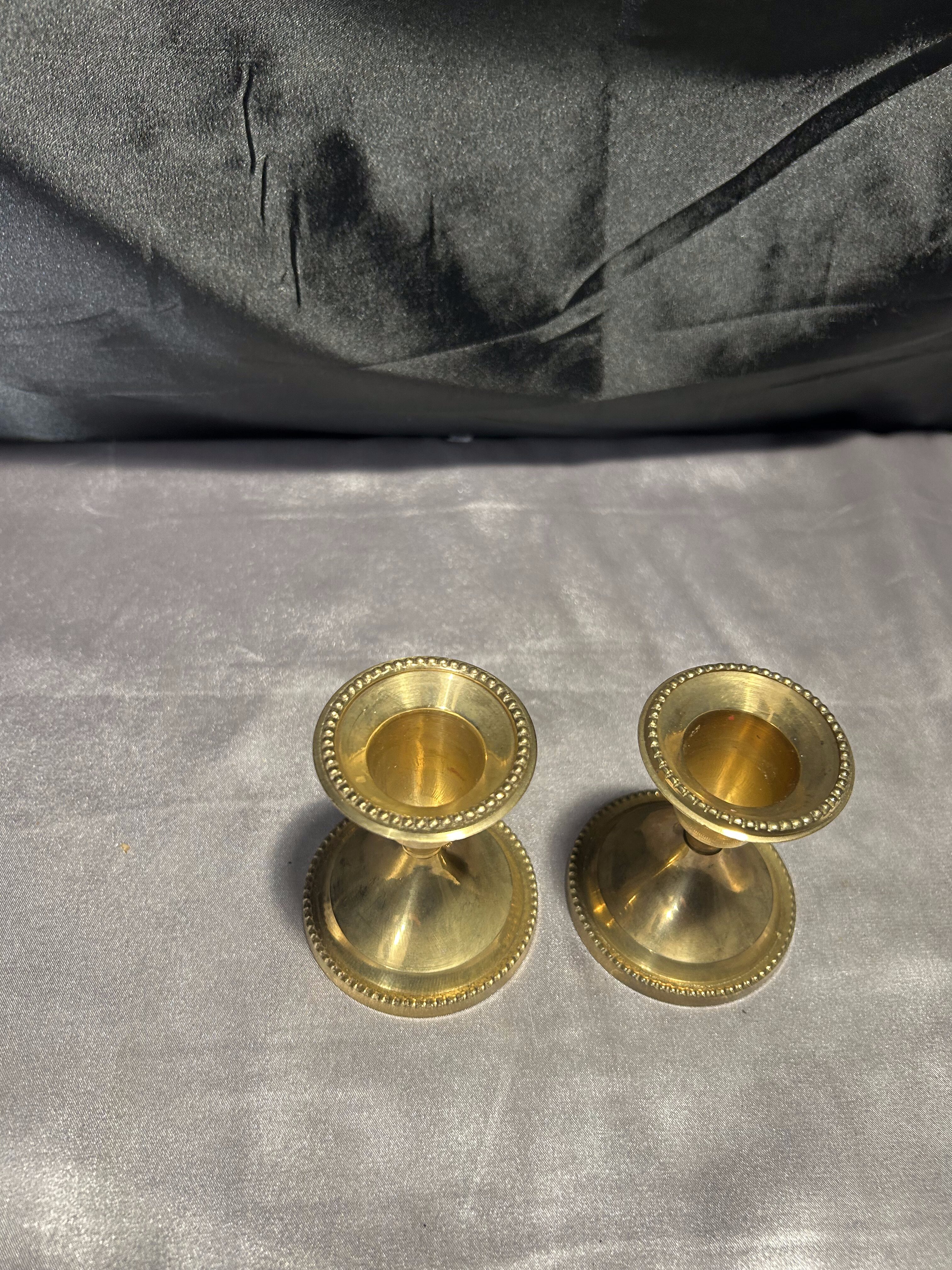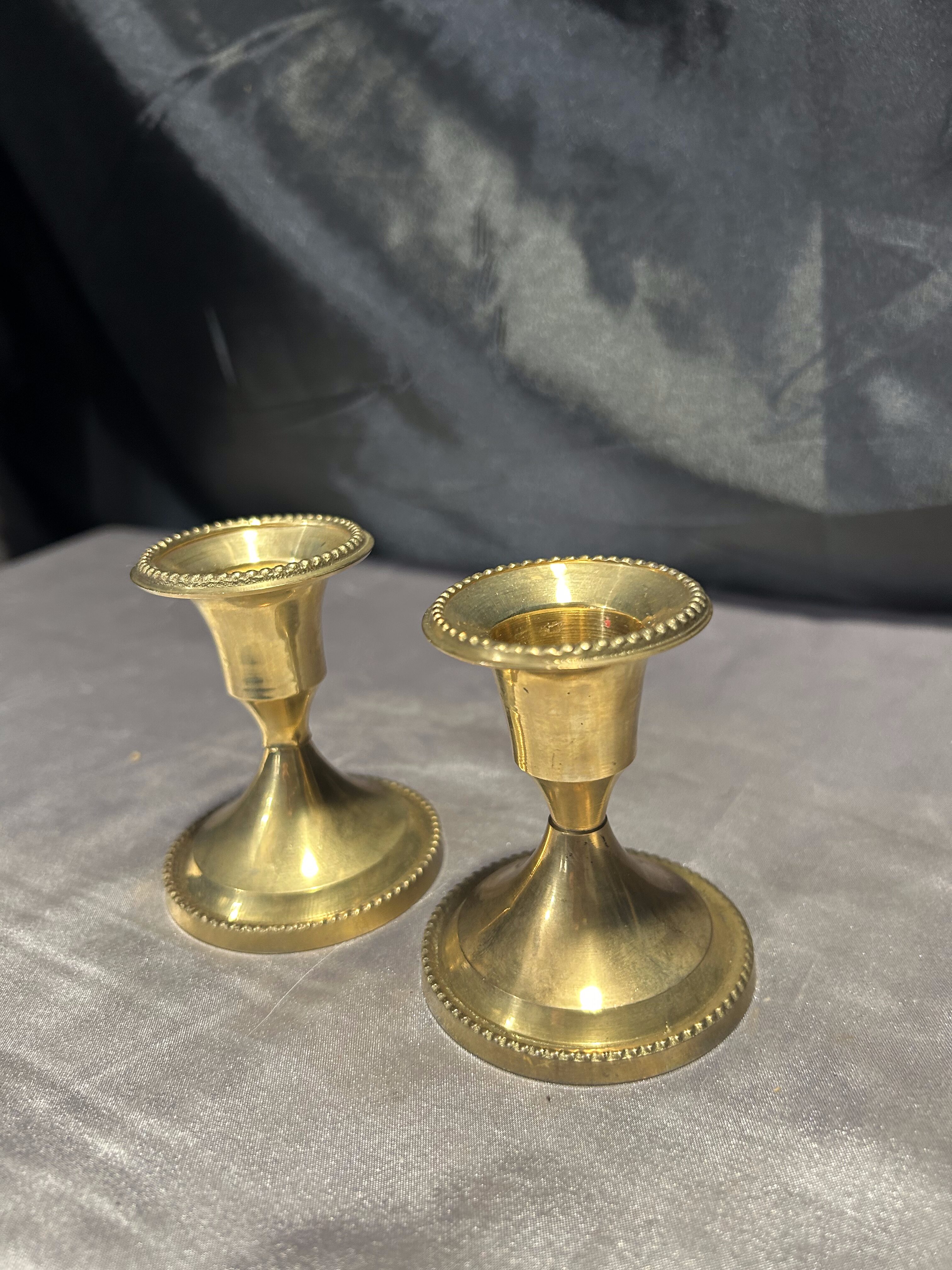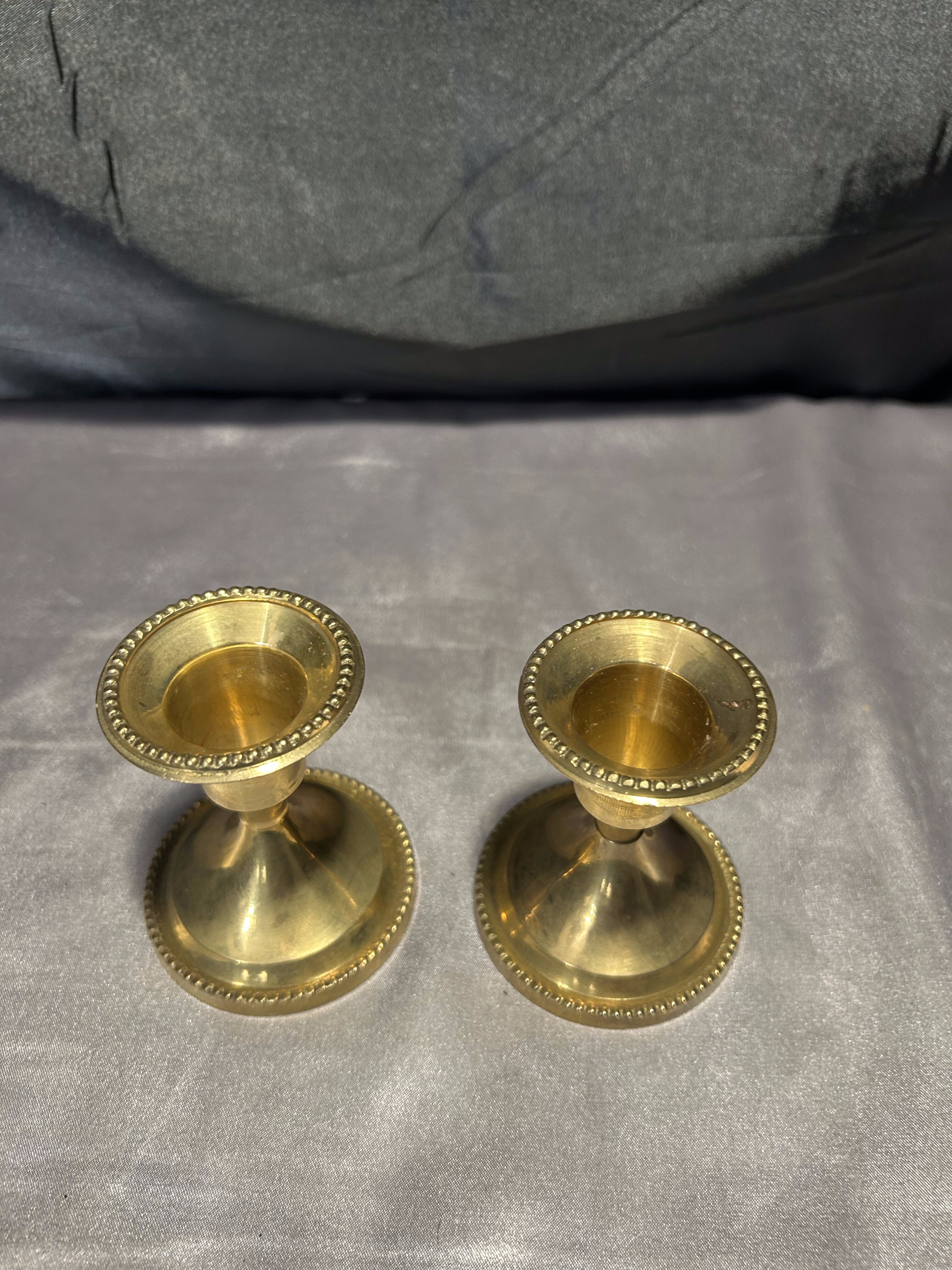 - Mosiężne lichtarze – komplet dwóch świeczników – vintage