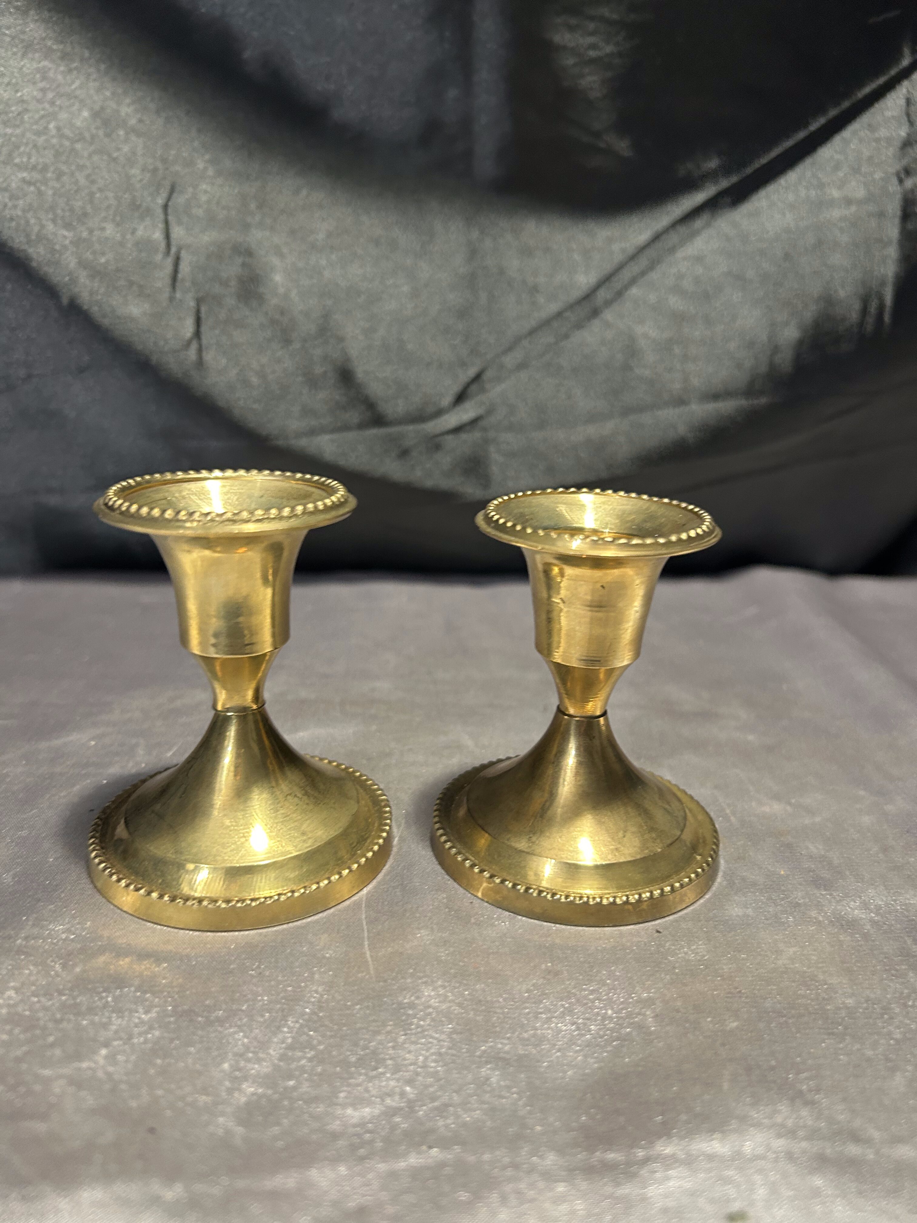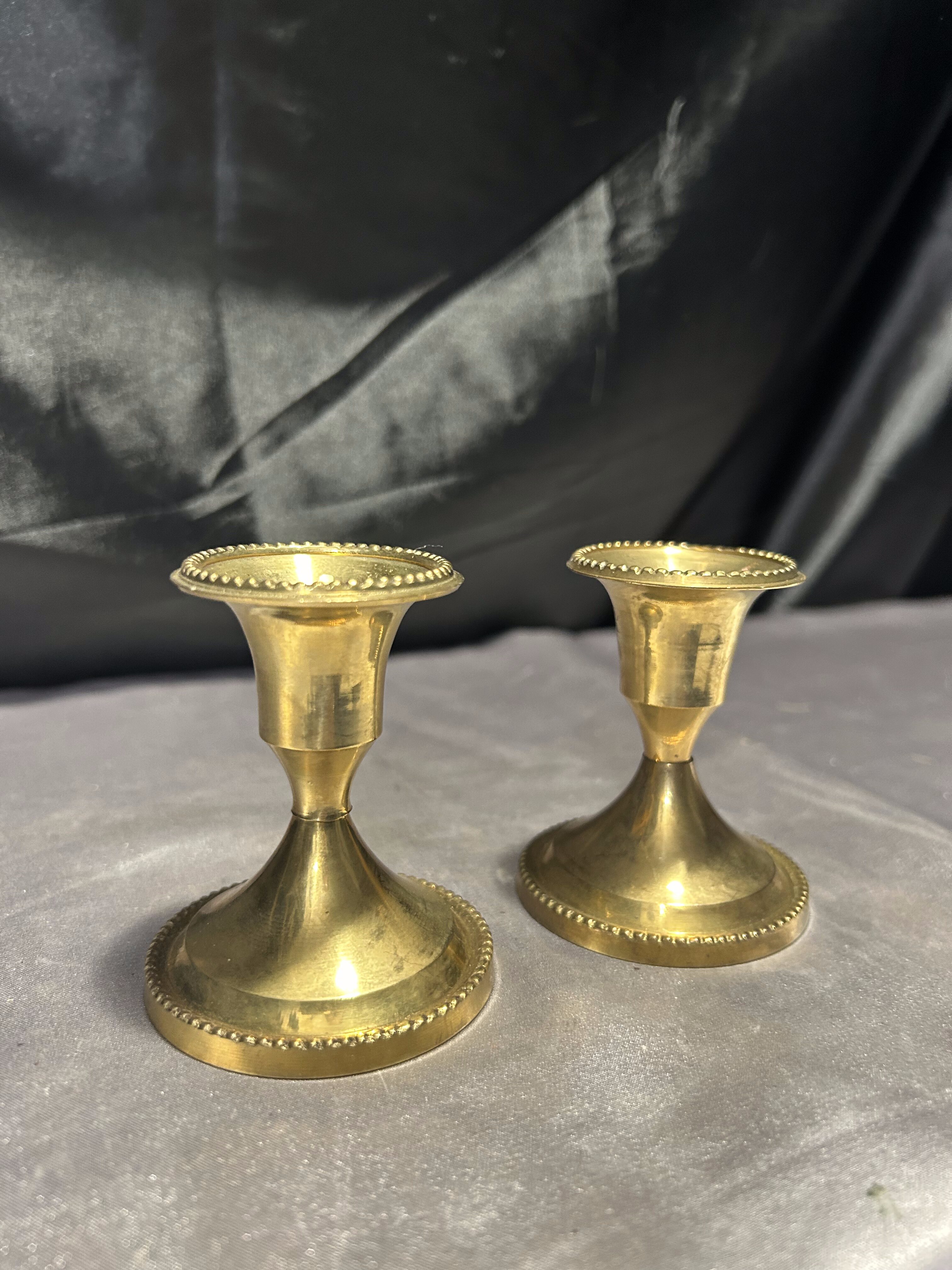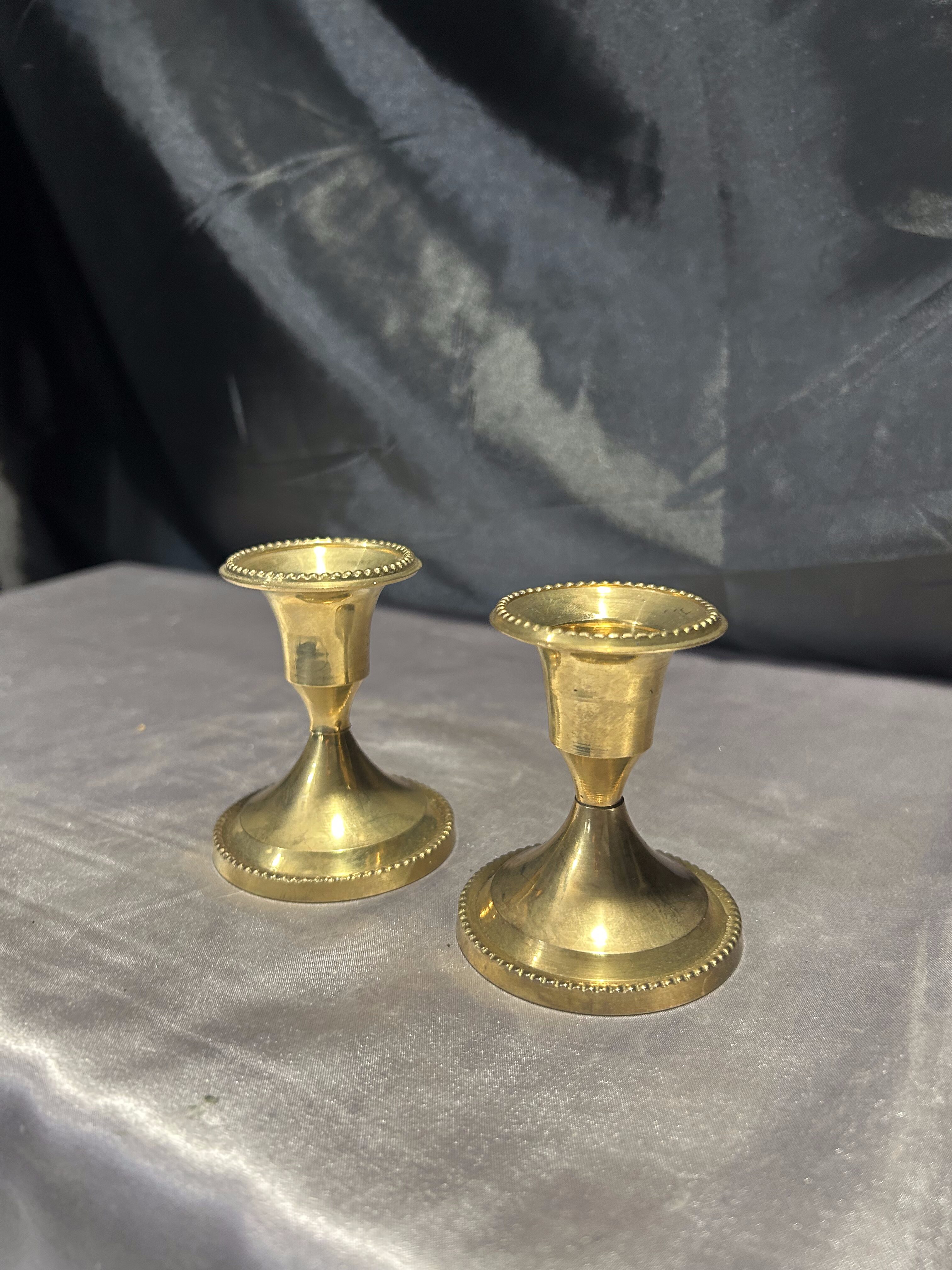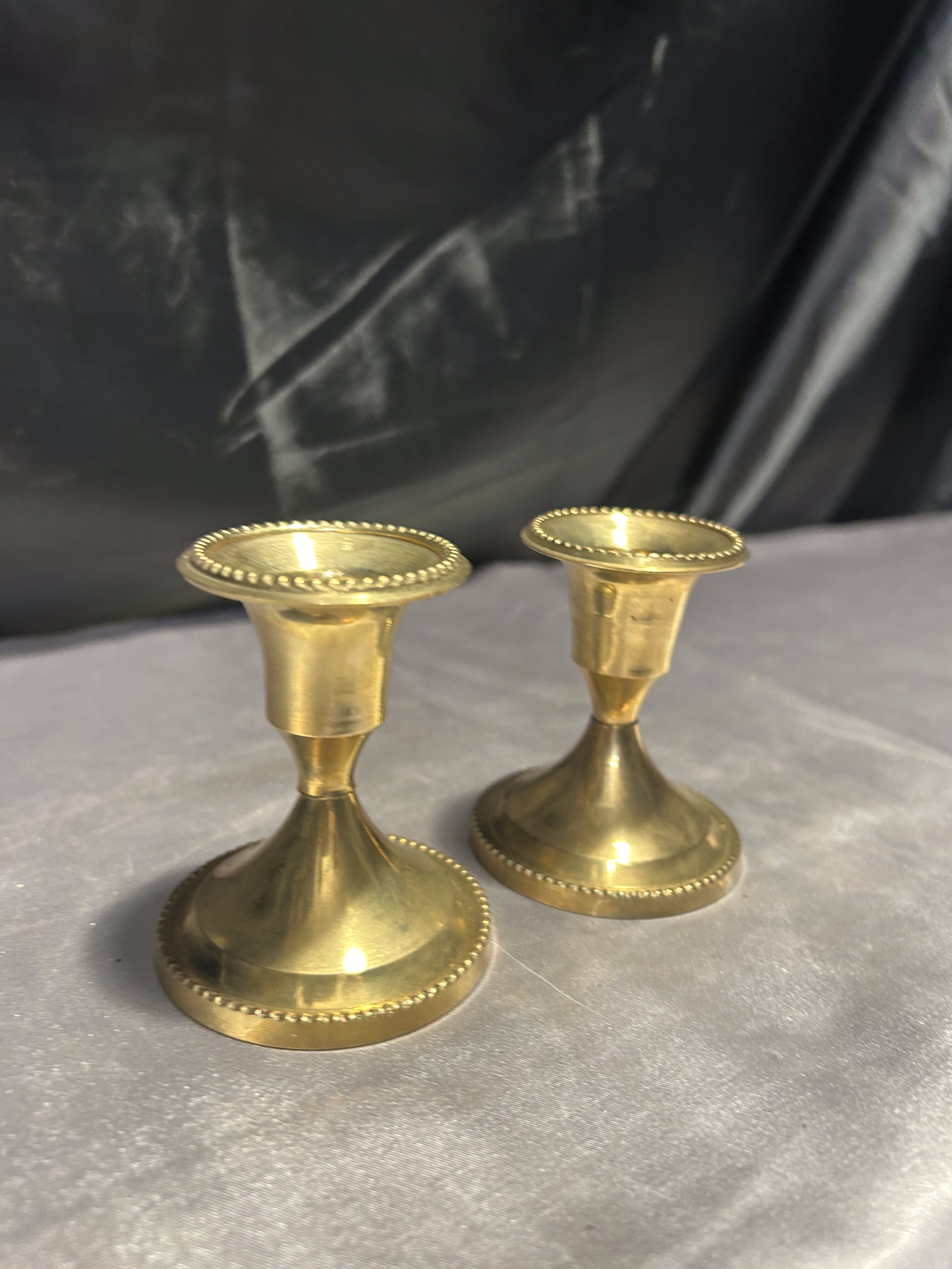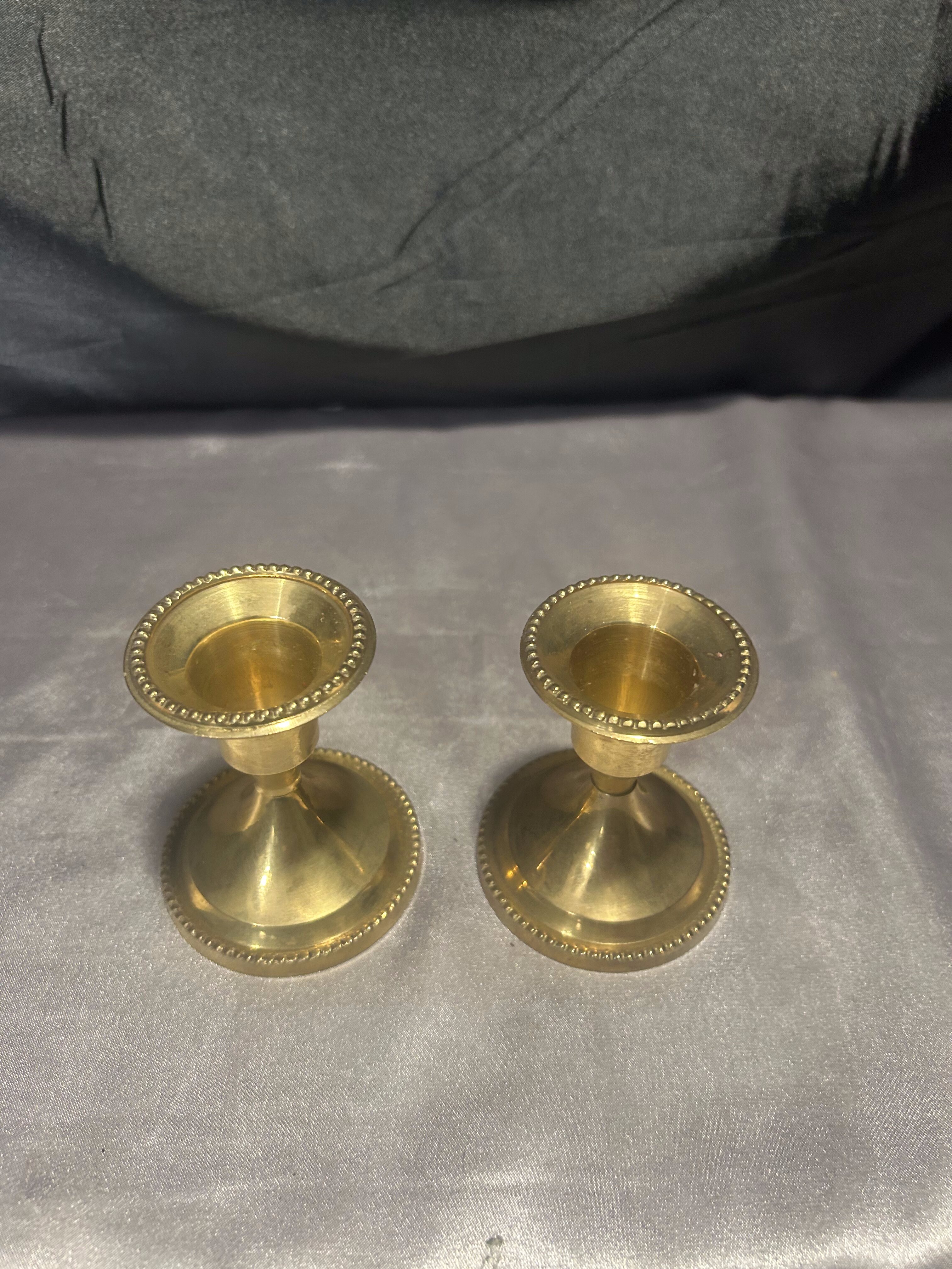 - Mosiężne lichtarze – komplet dwóch świeczników – vintage