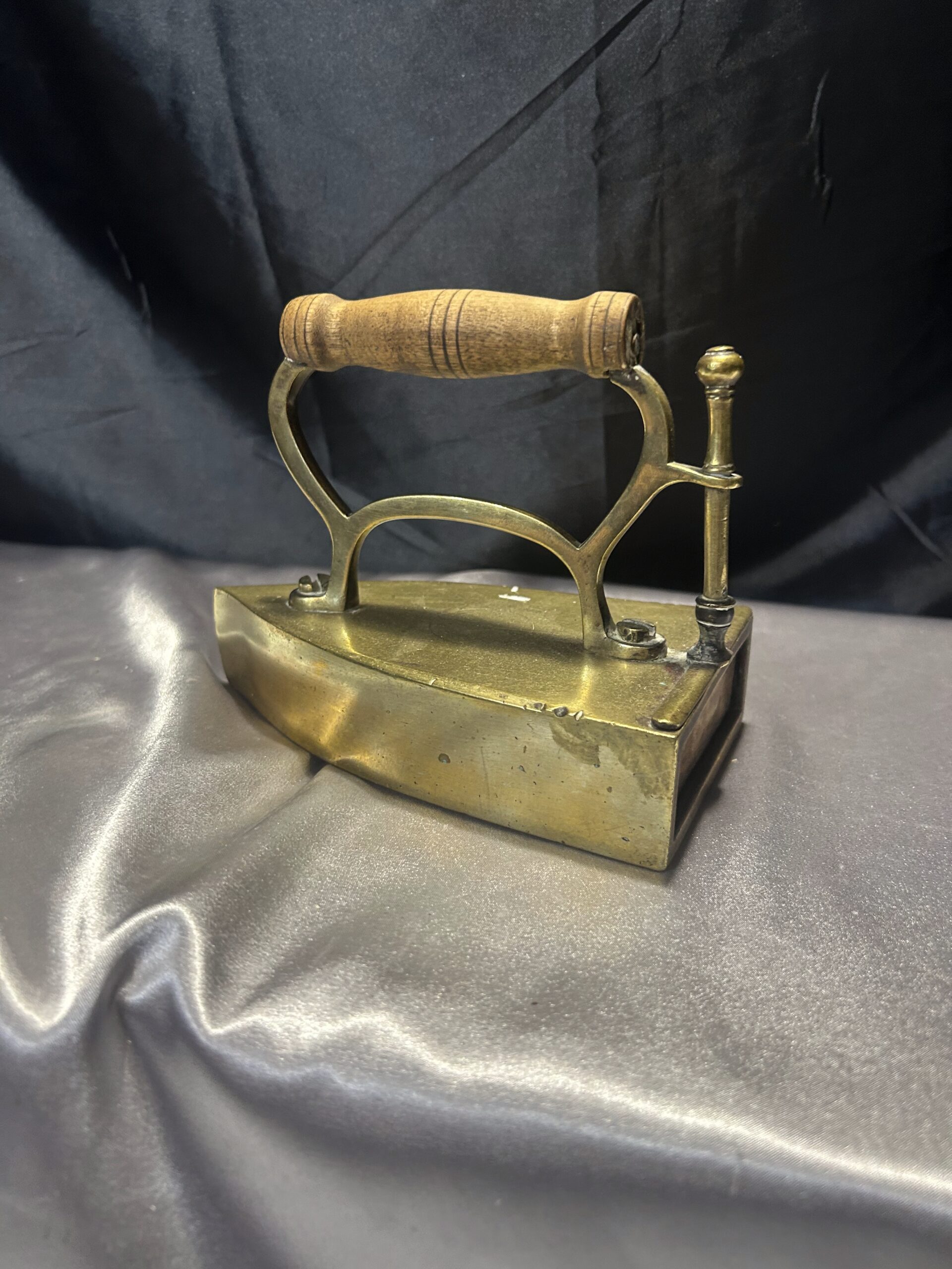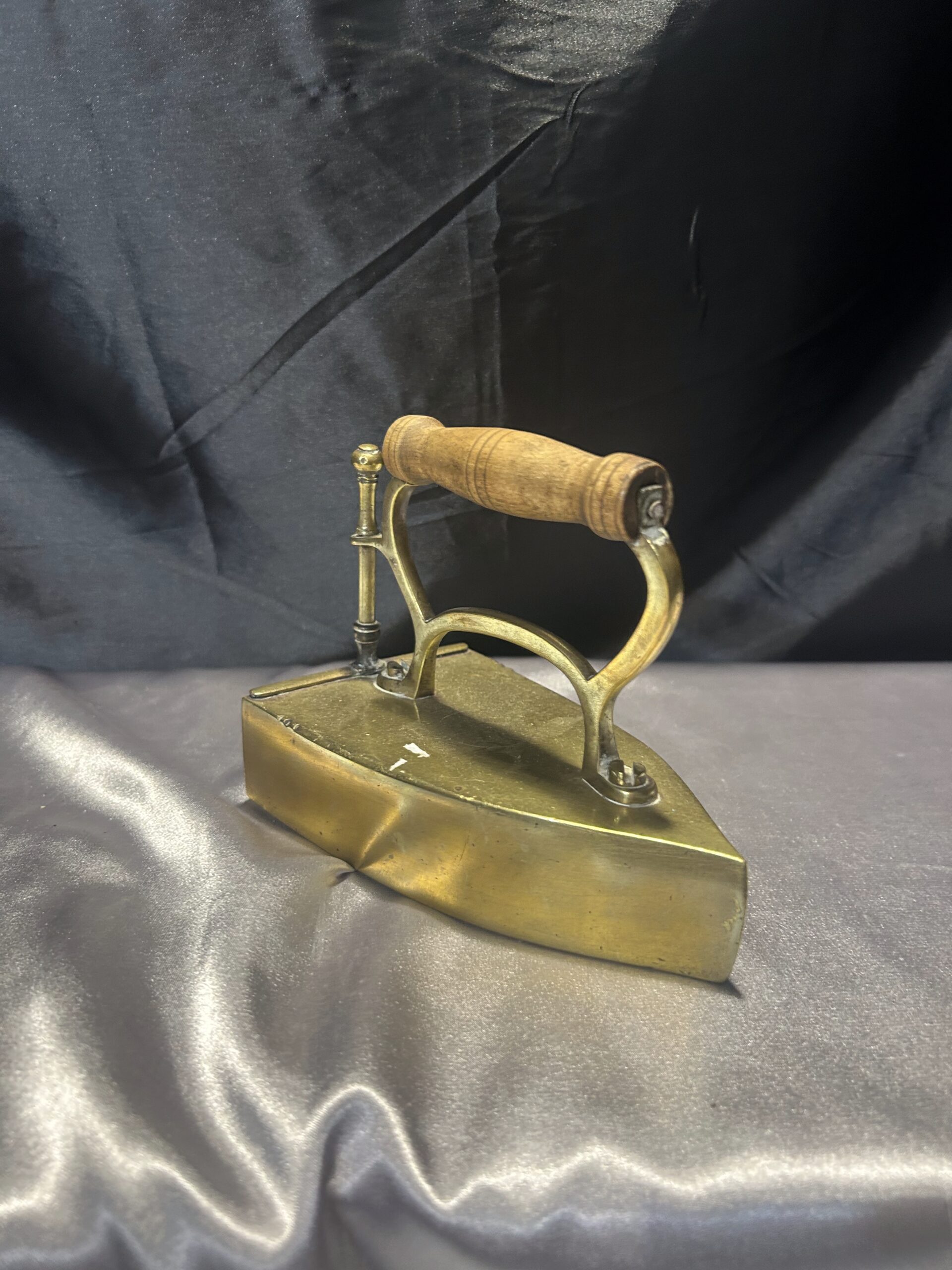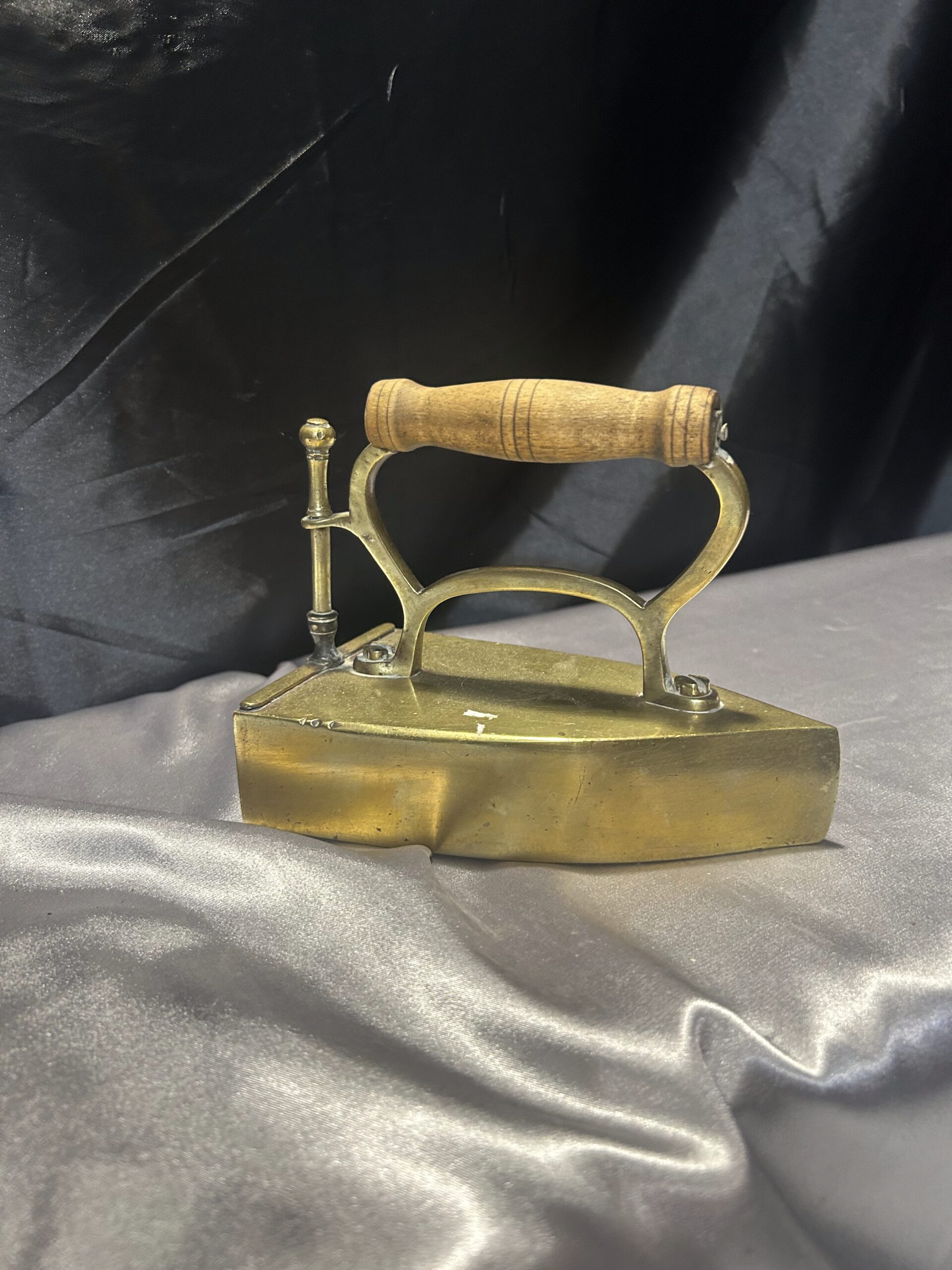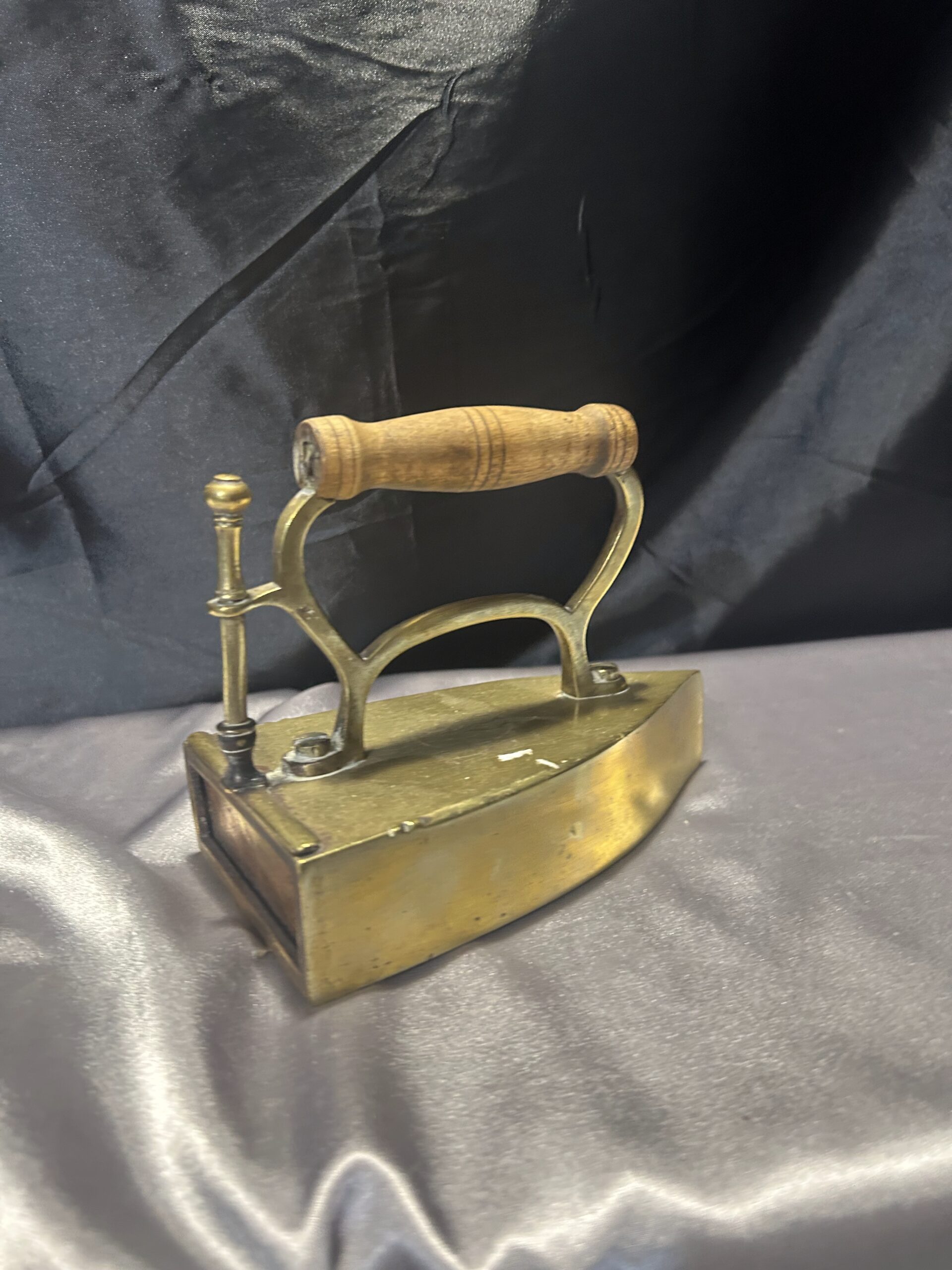 Mosiężne Żelazko Vintage – Z Miejscem na Duszę i Drewnianą Rączką