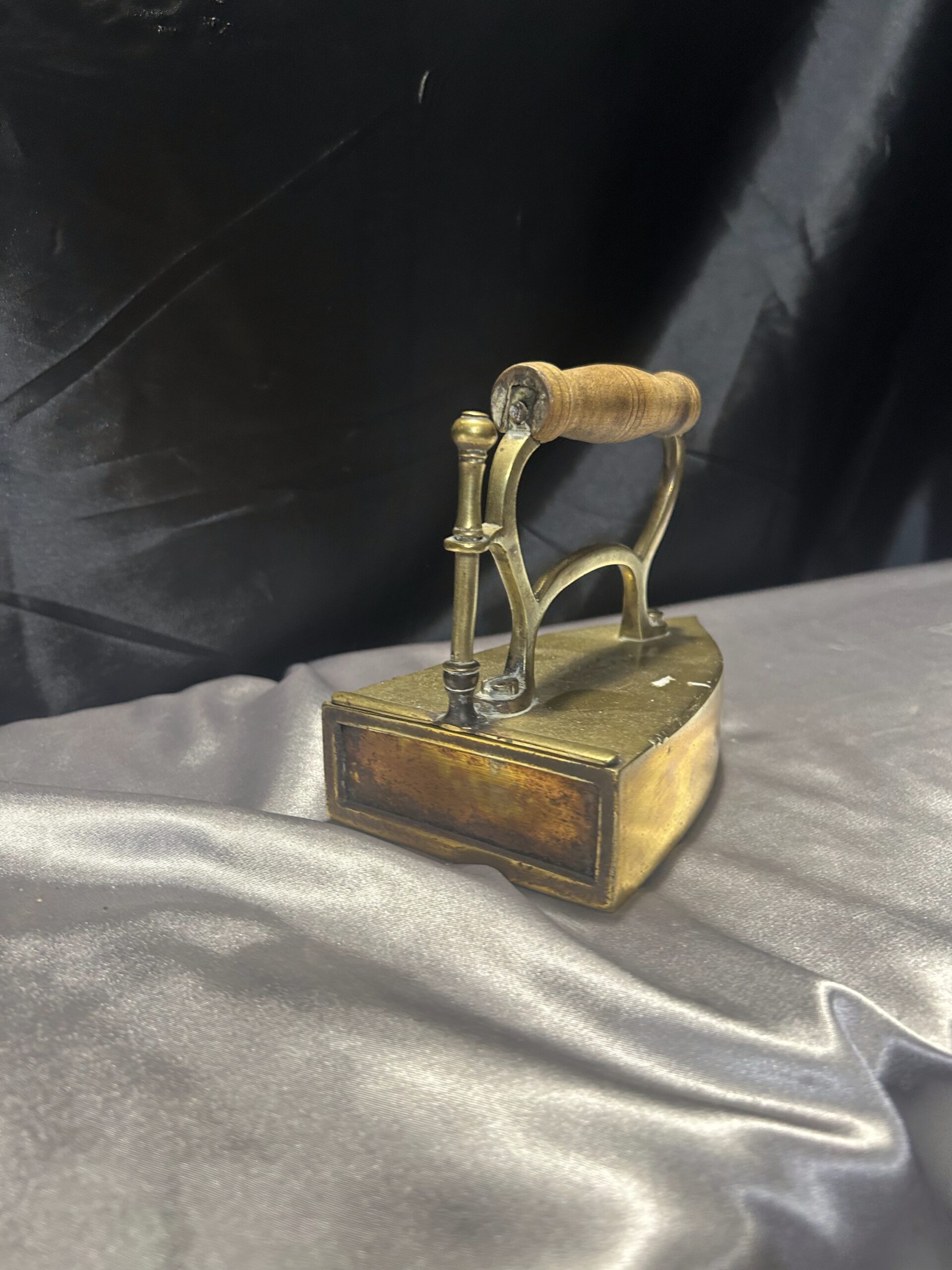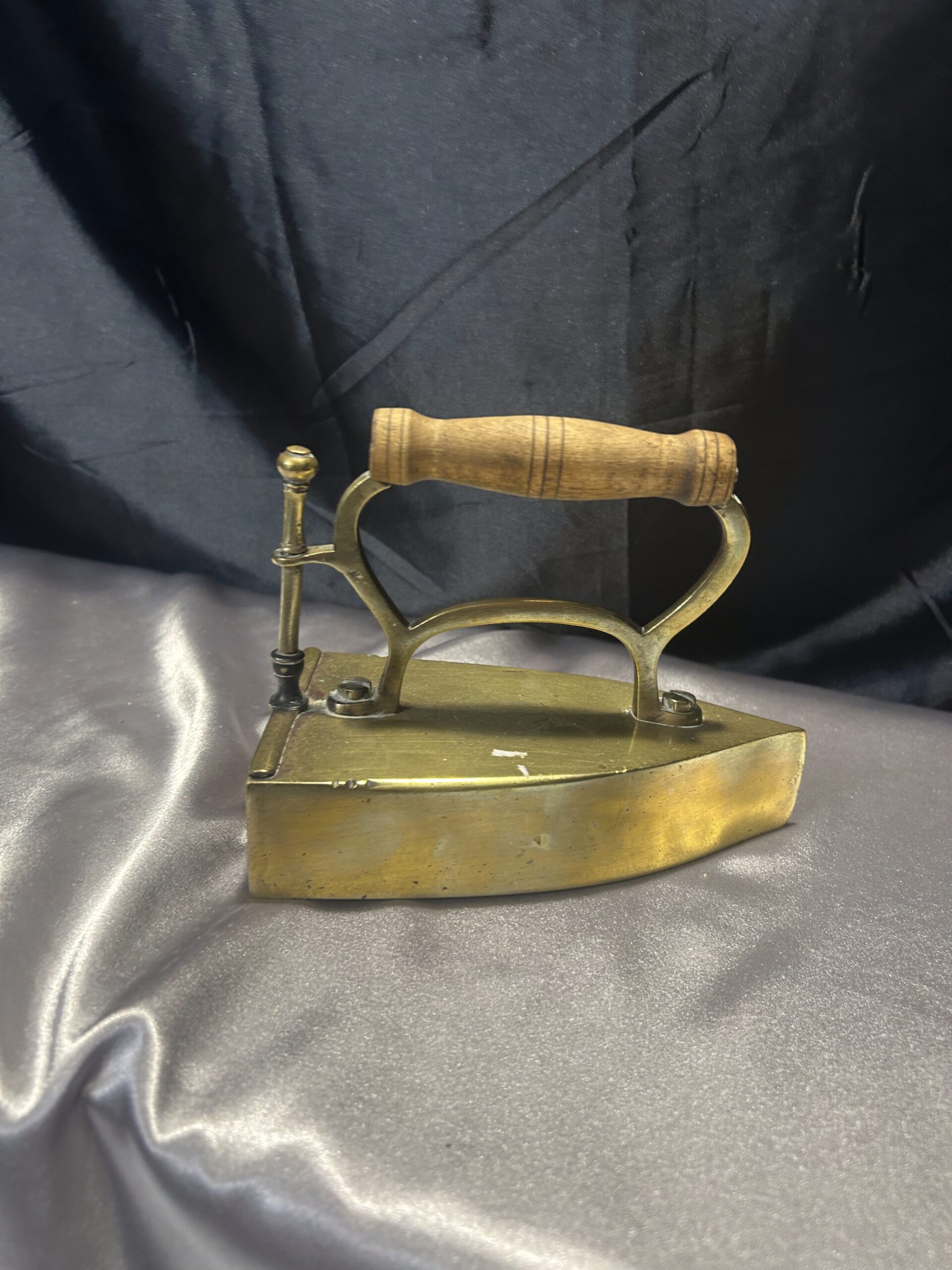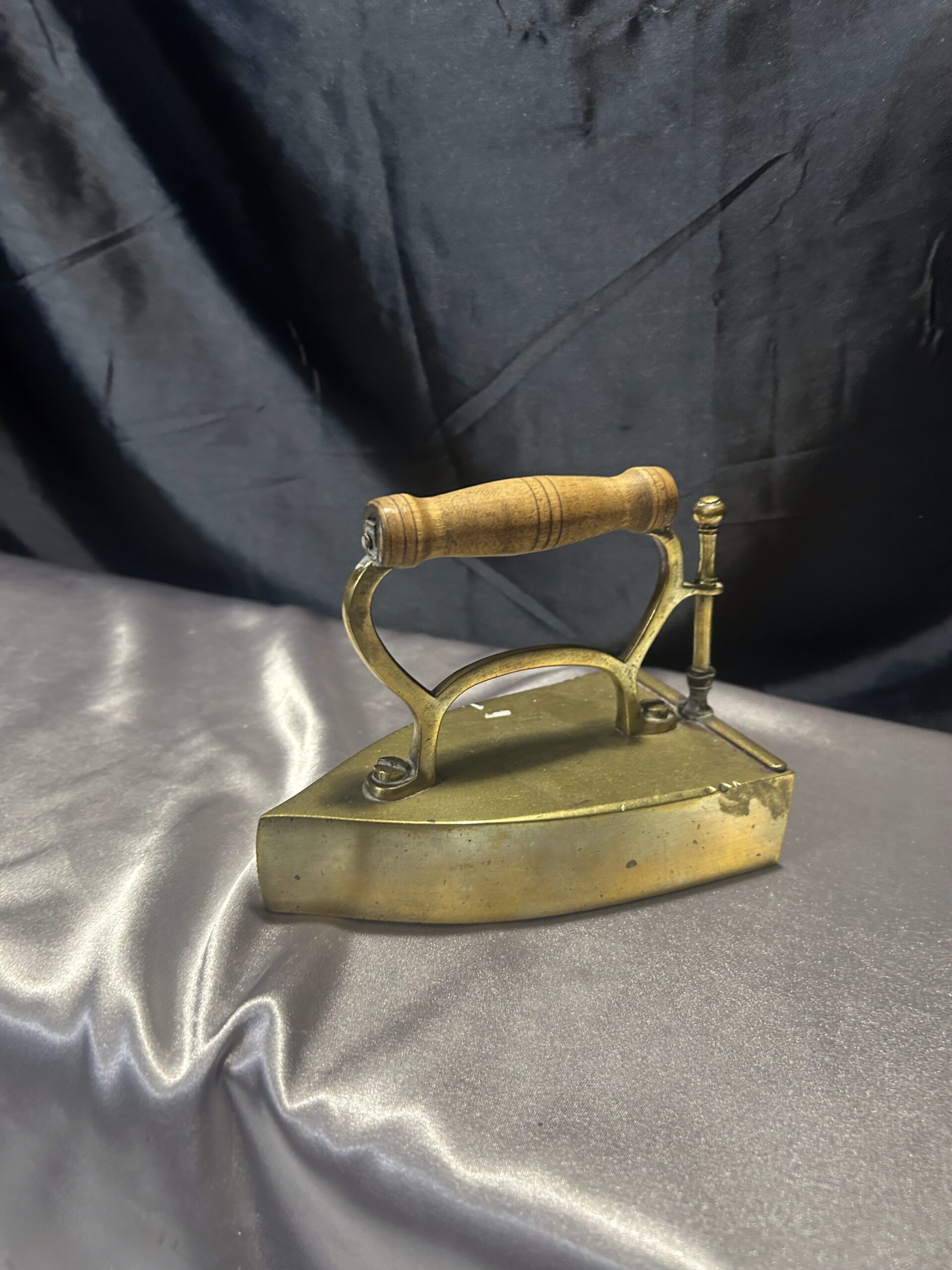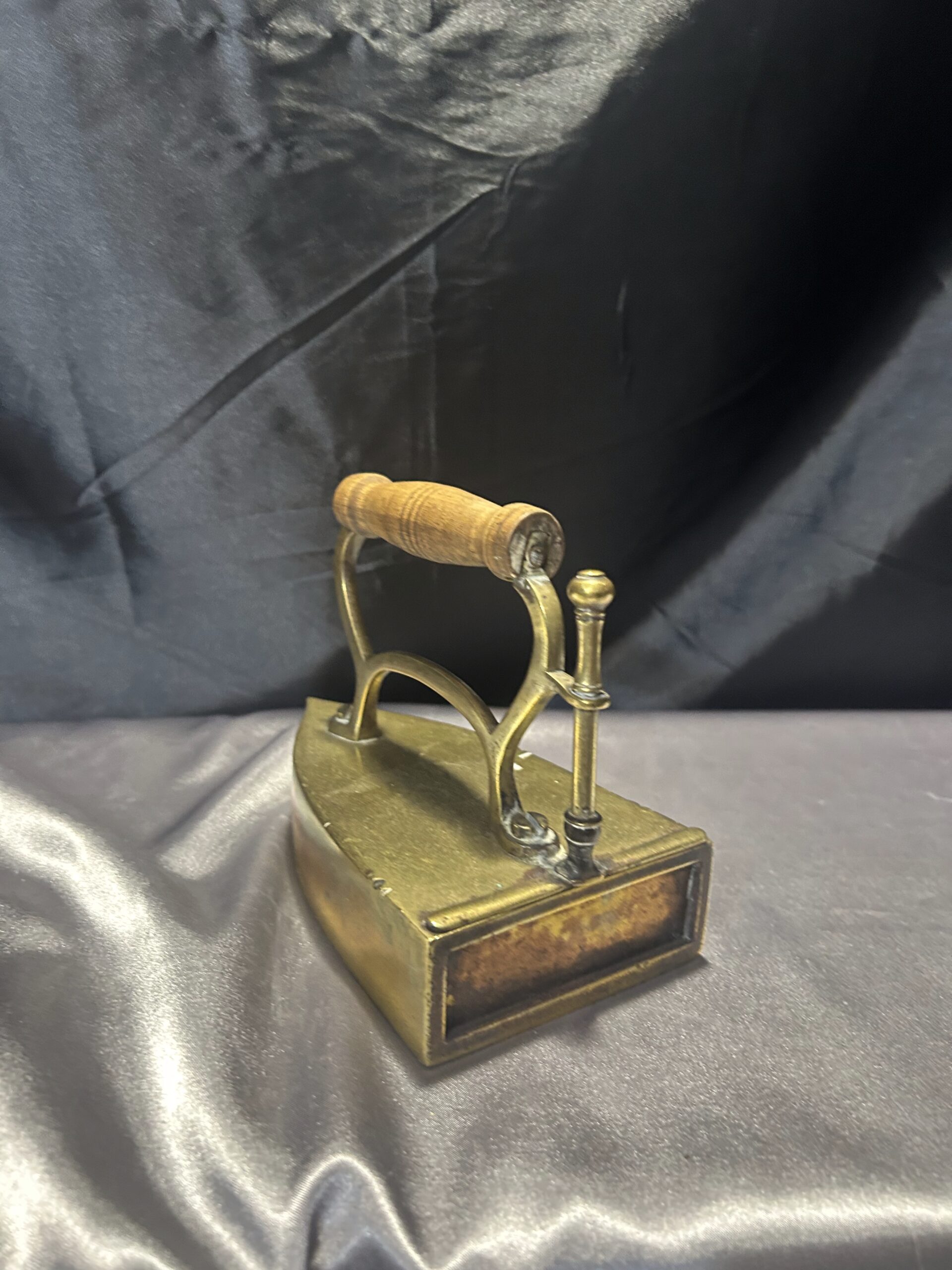 Mosiężne Żelazko Vintage – Z Miejscem na Duszę i Drewnianą Rączką