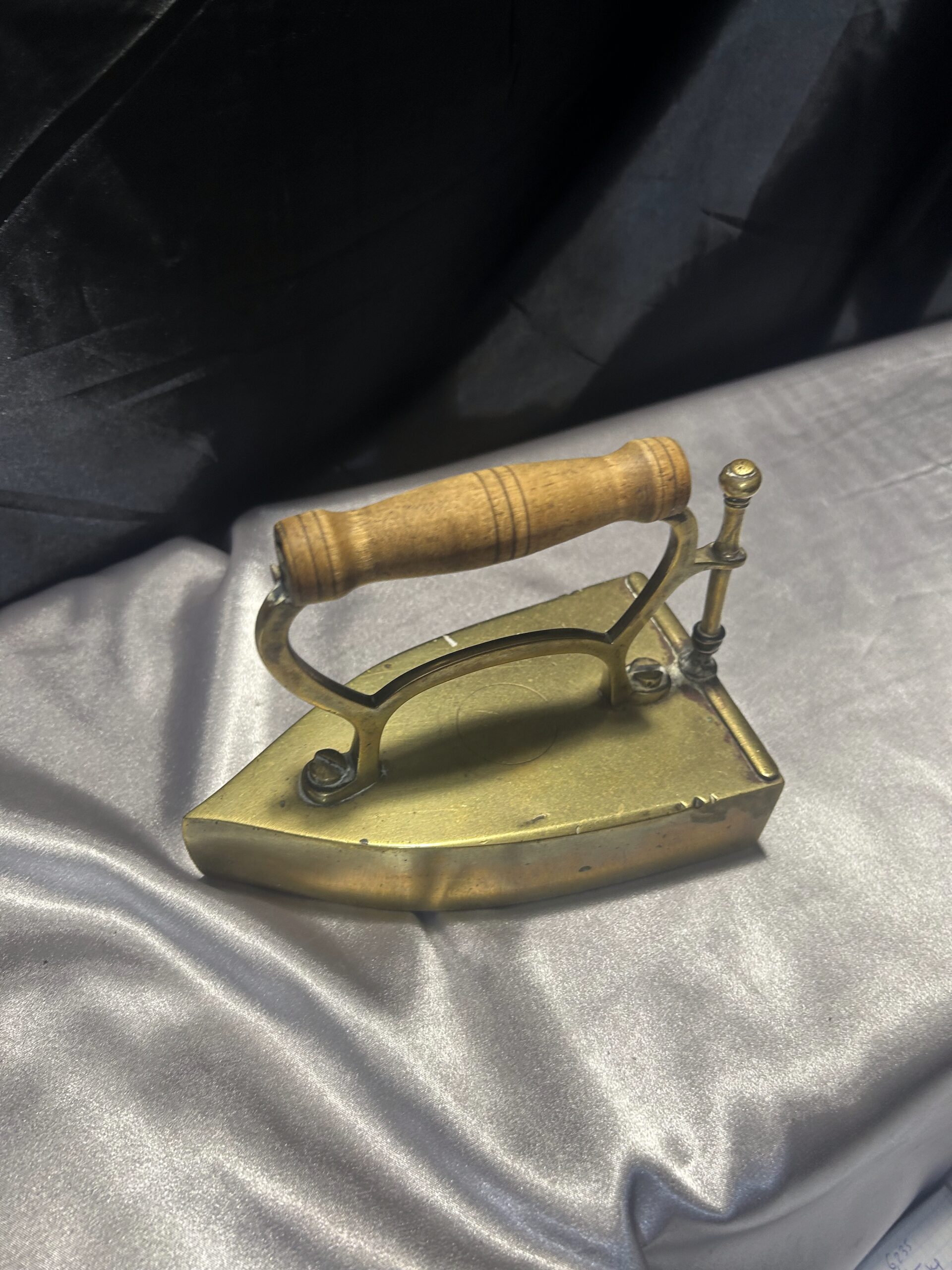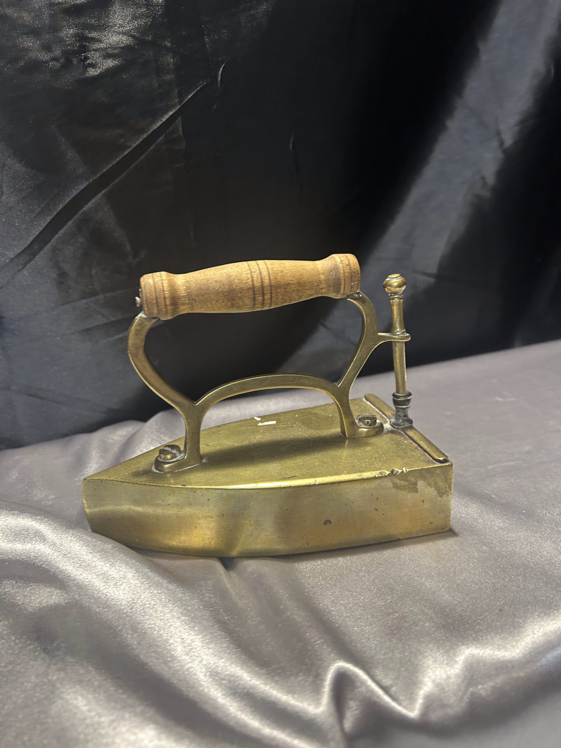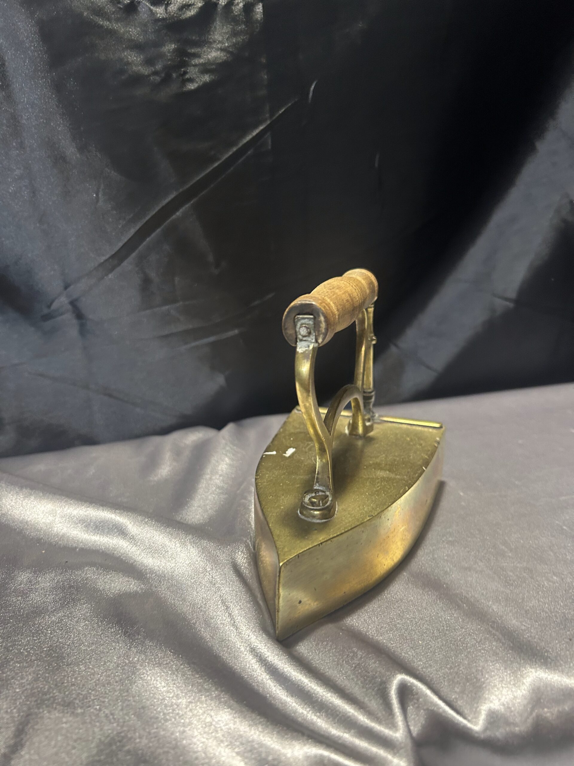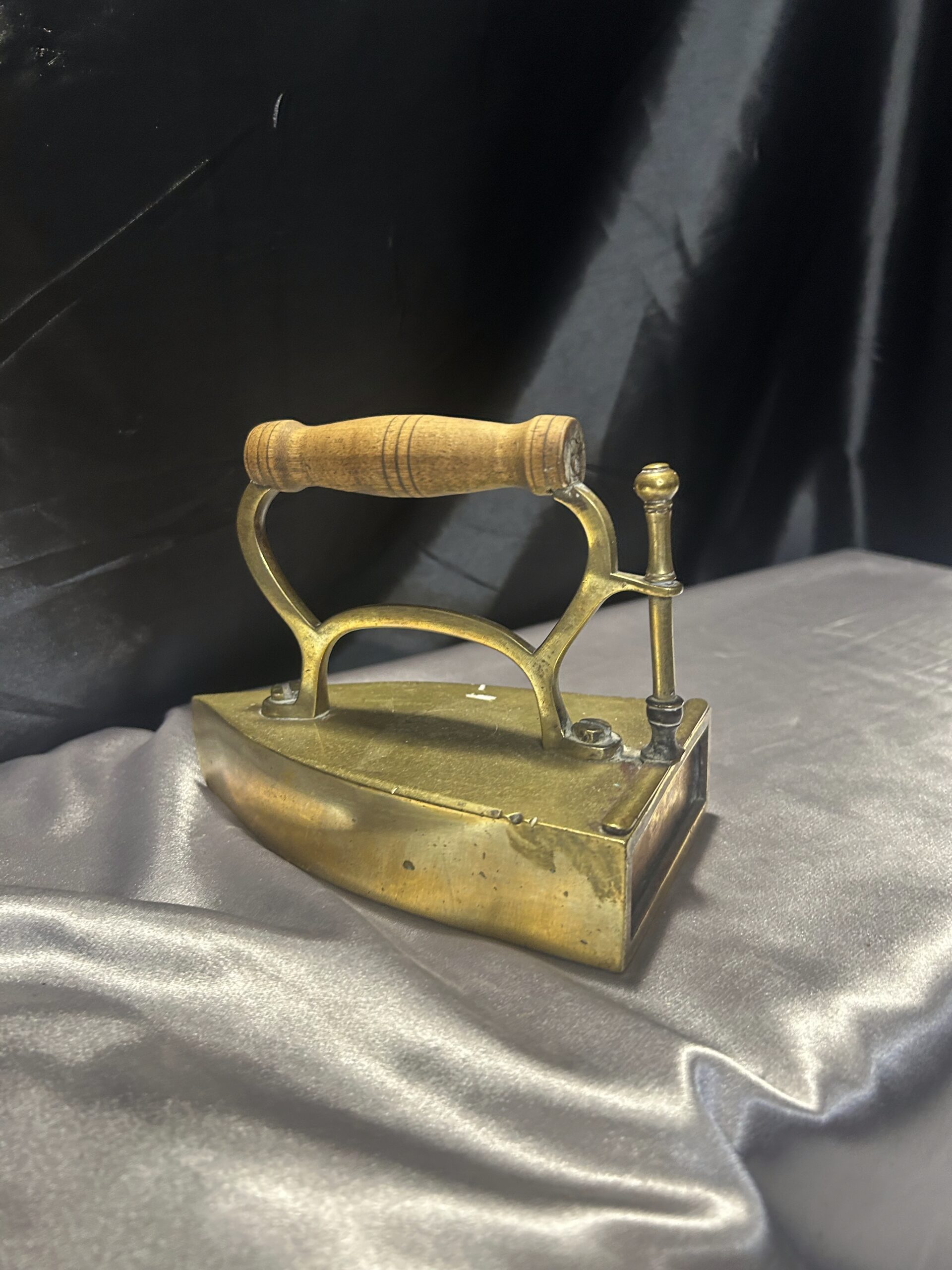 Mosiężne Żelazko Vintage – Z Miejscem na Duszę i Drewnianą Rączką
