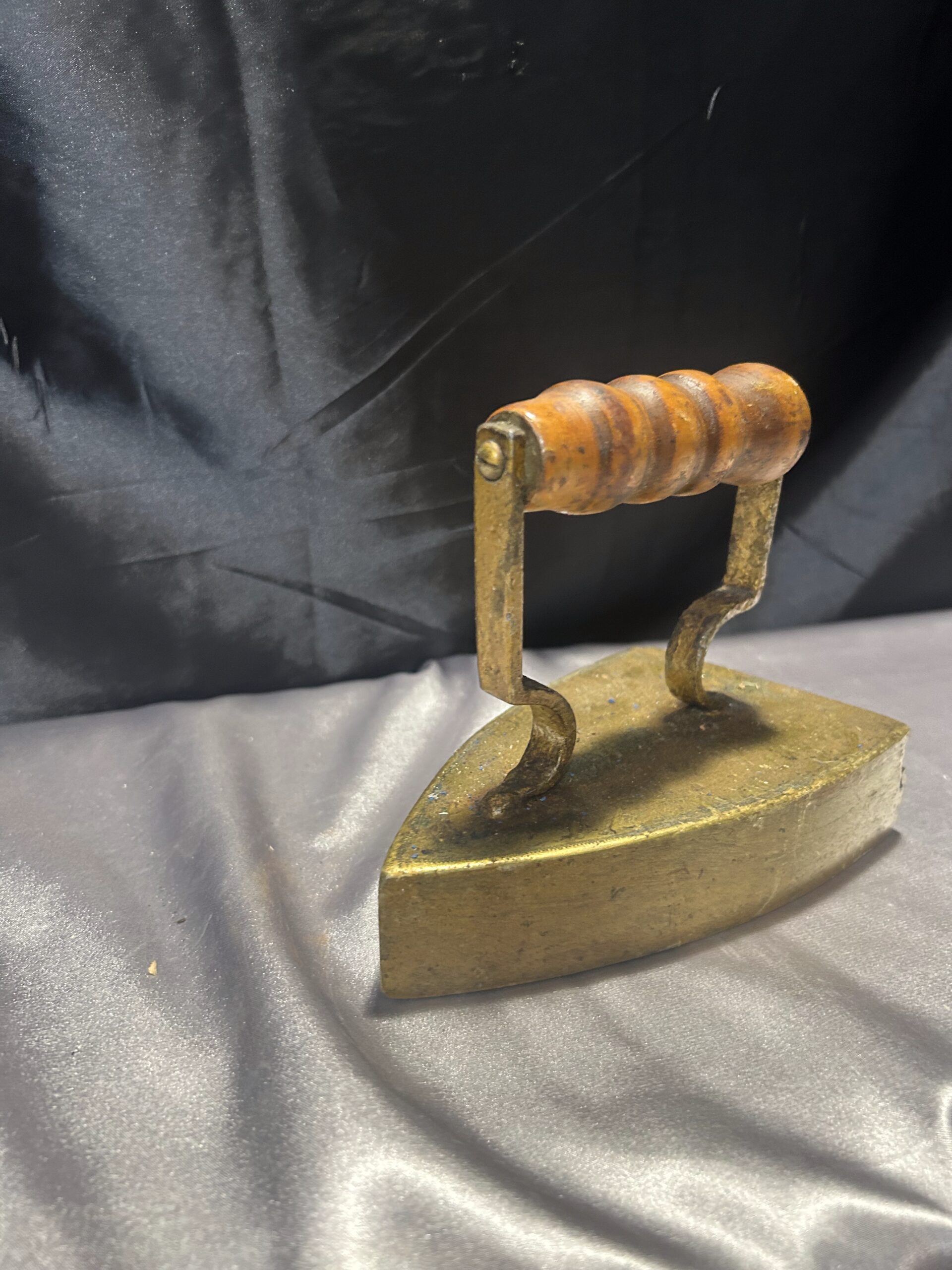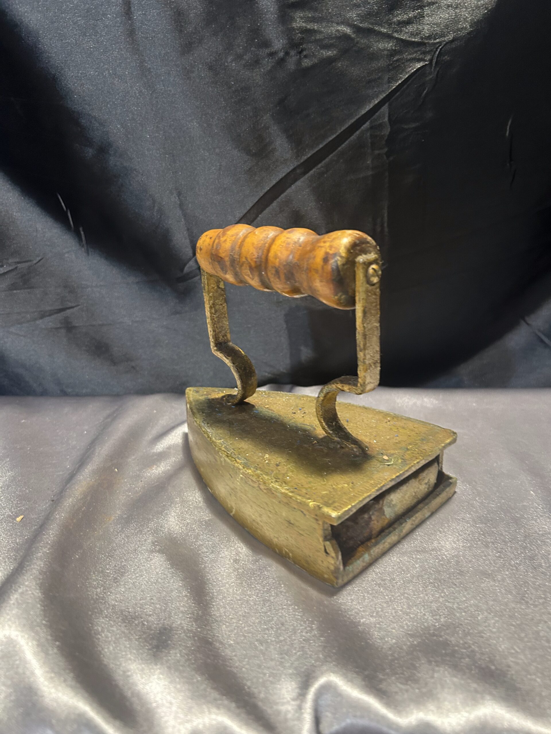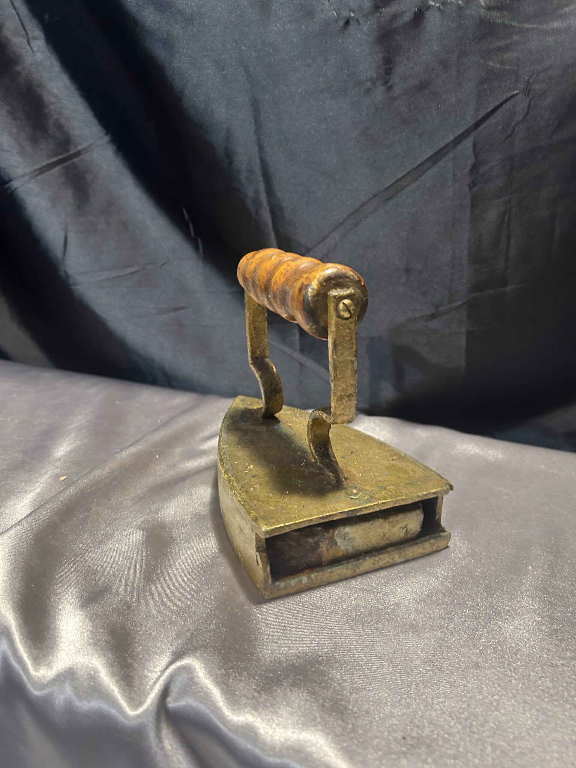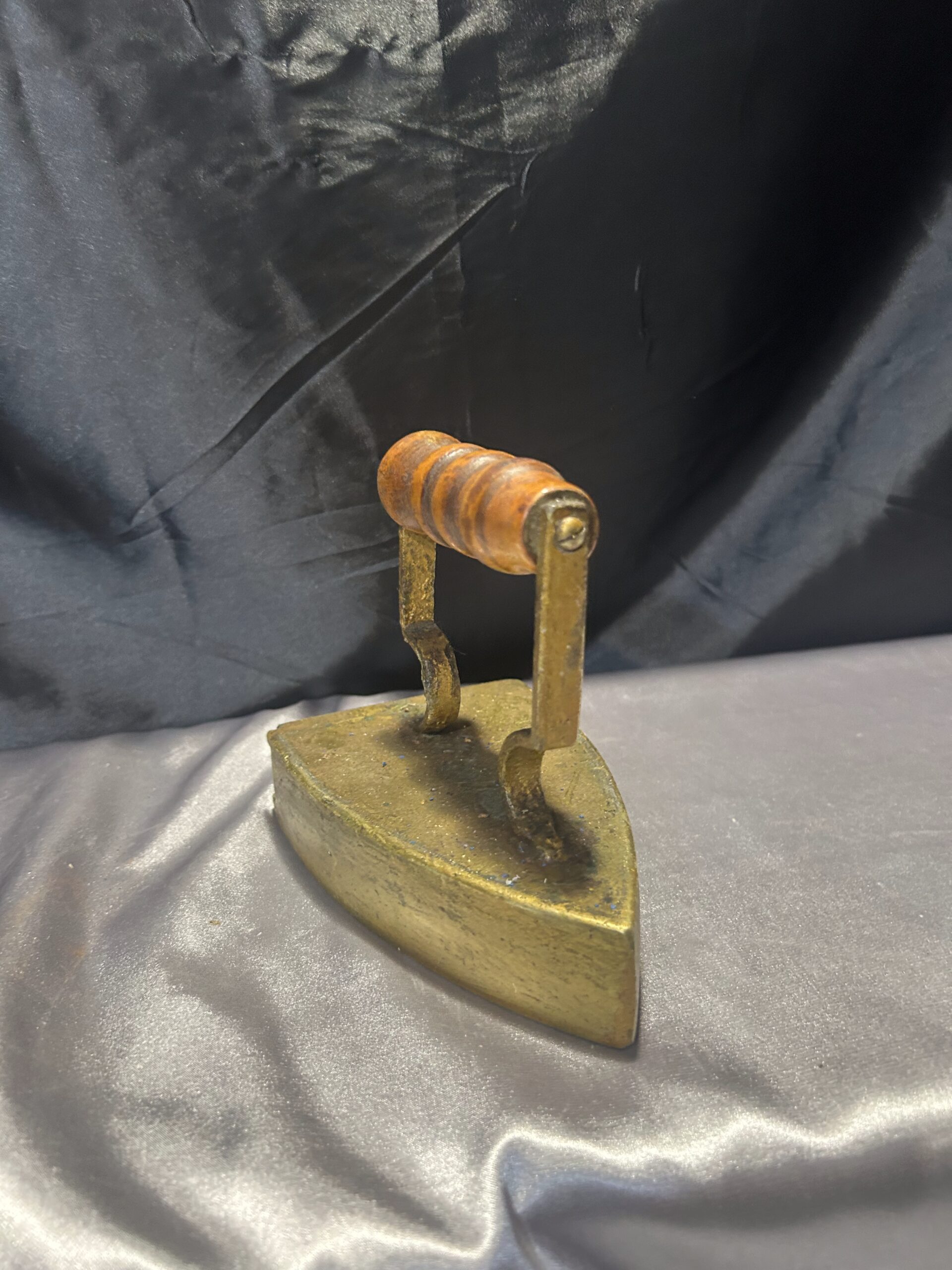 Stare Żelazko z Mosiądzu – Vintage z Drewnianą Rączką