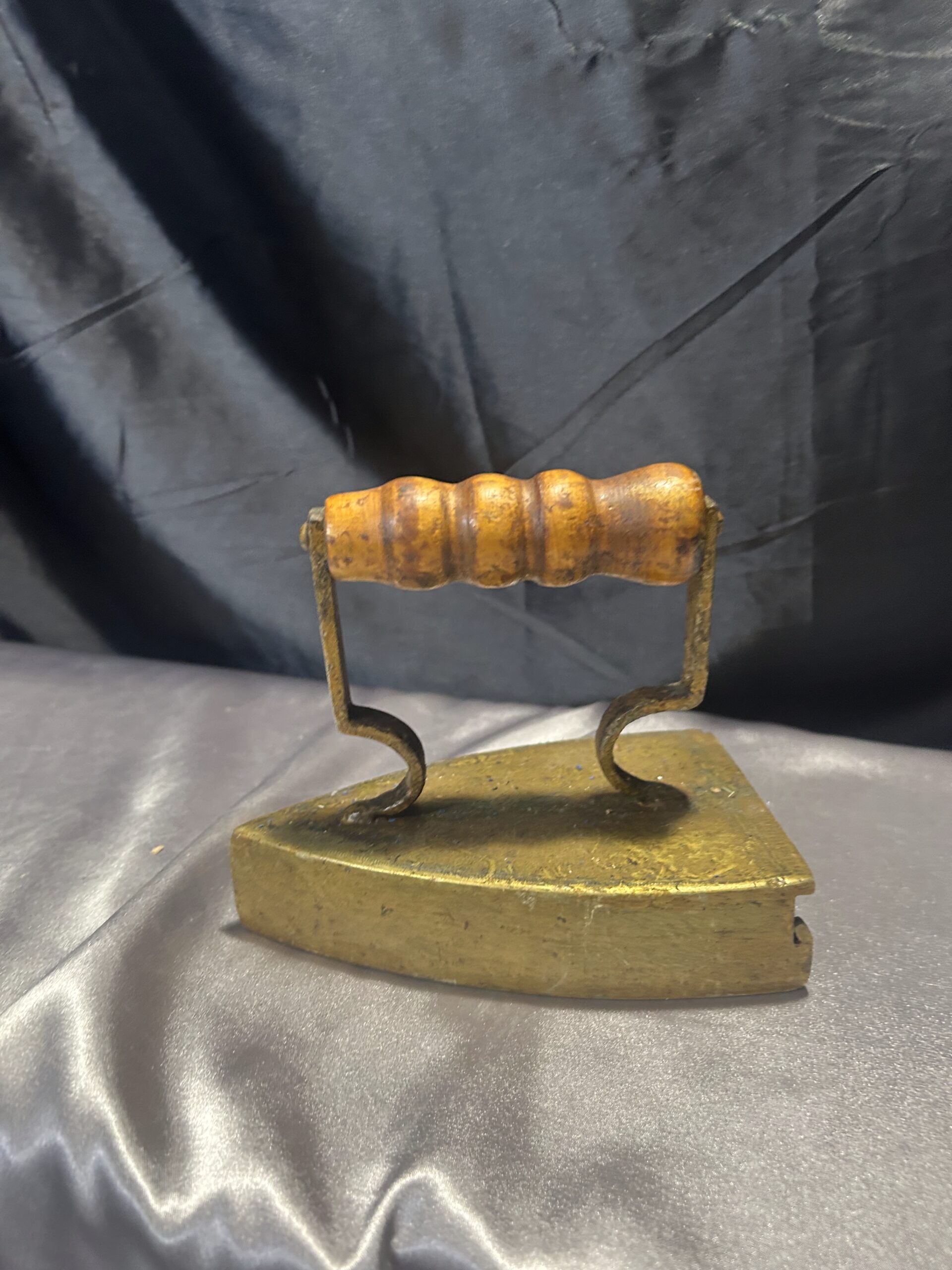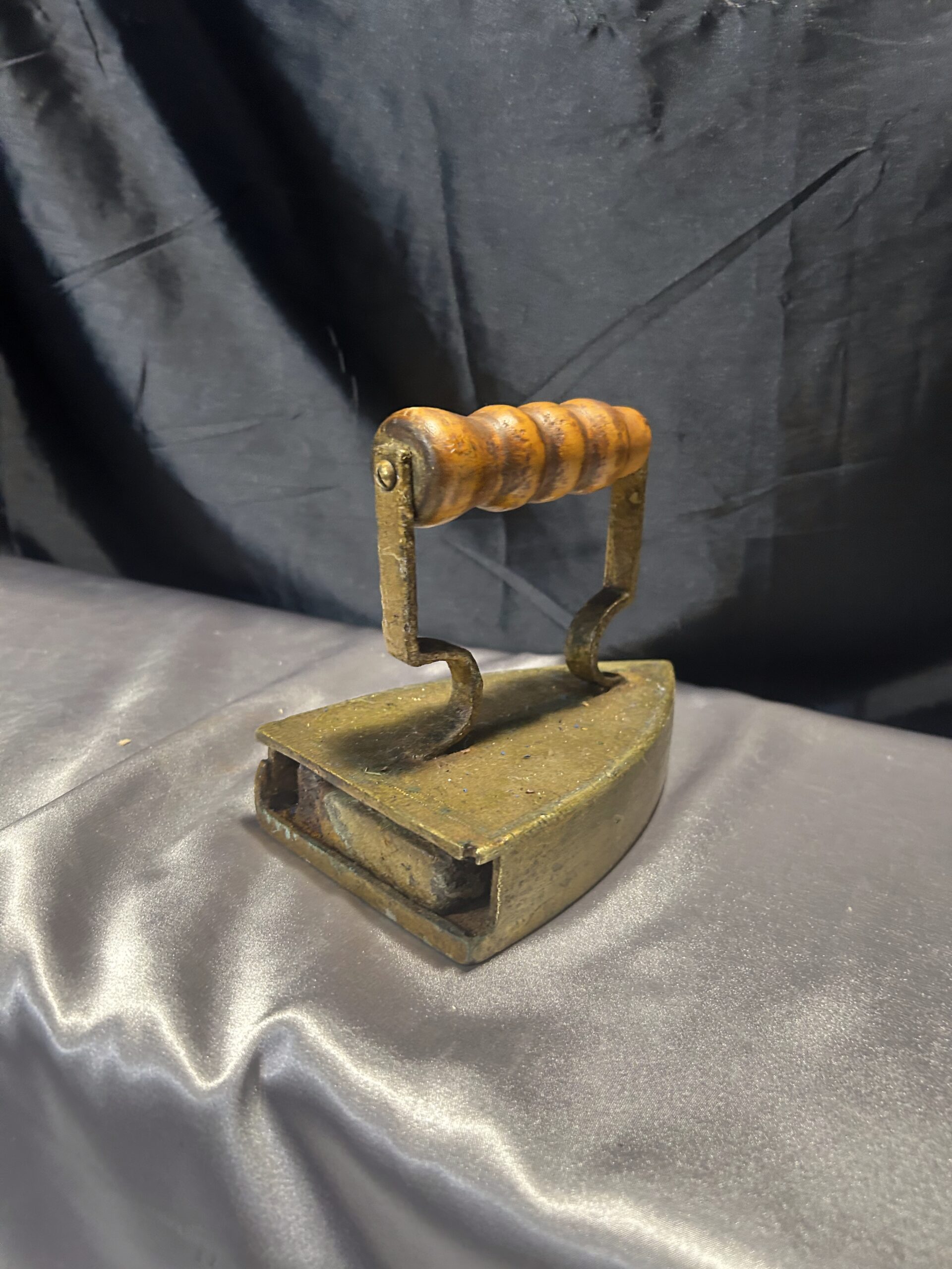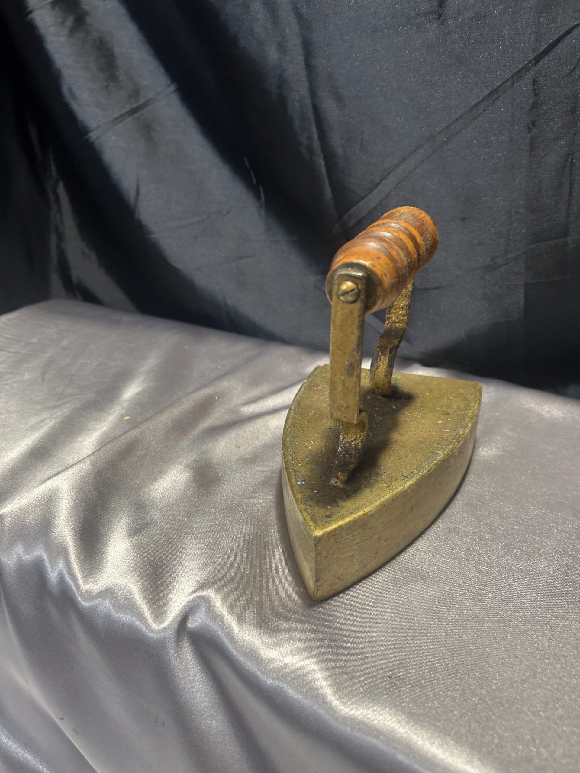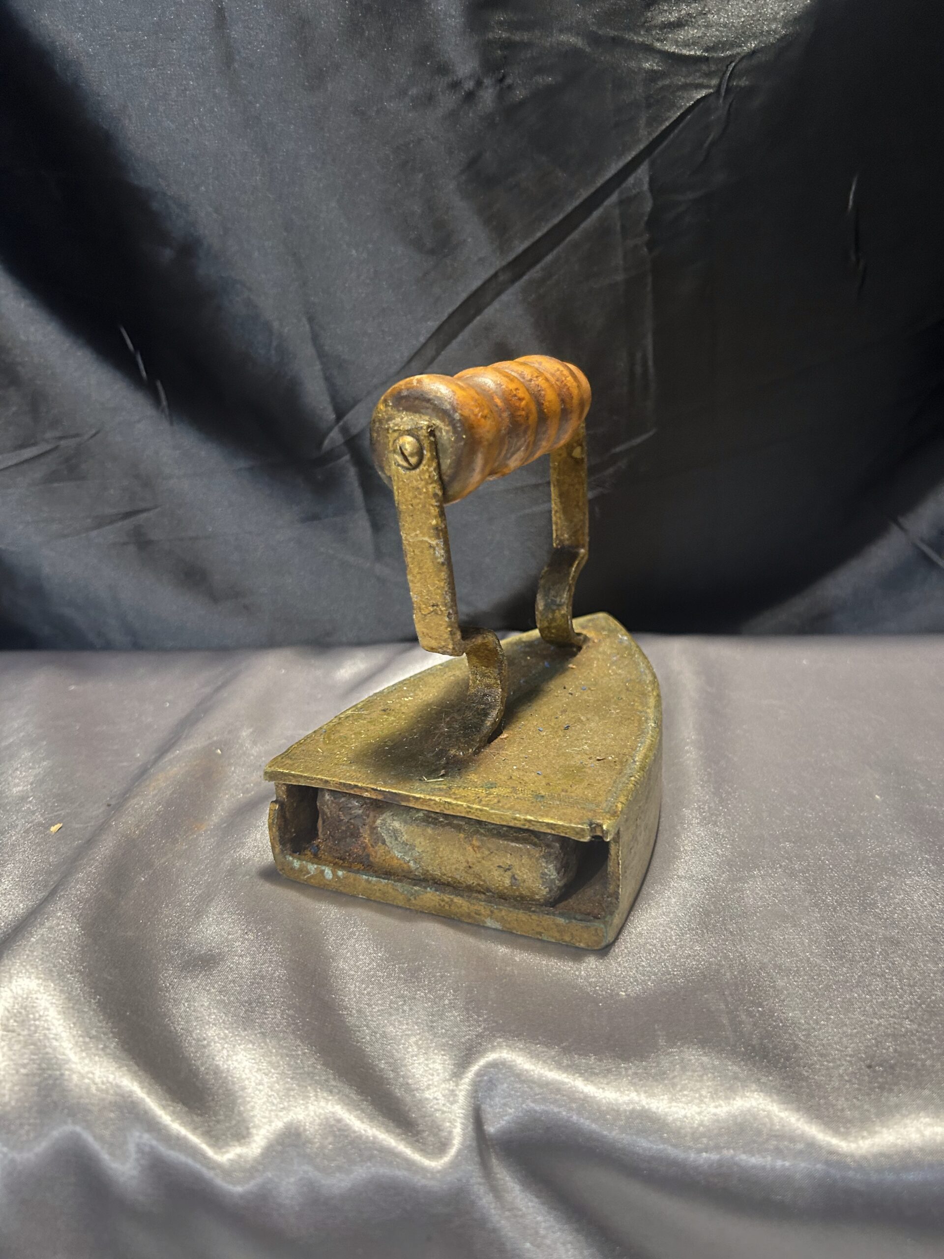 Stare Żelazko z Mosiądzu – Vintage z Drewnianą Rączką