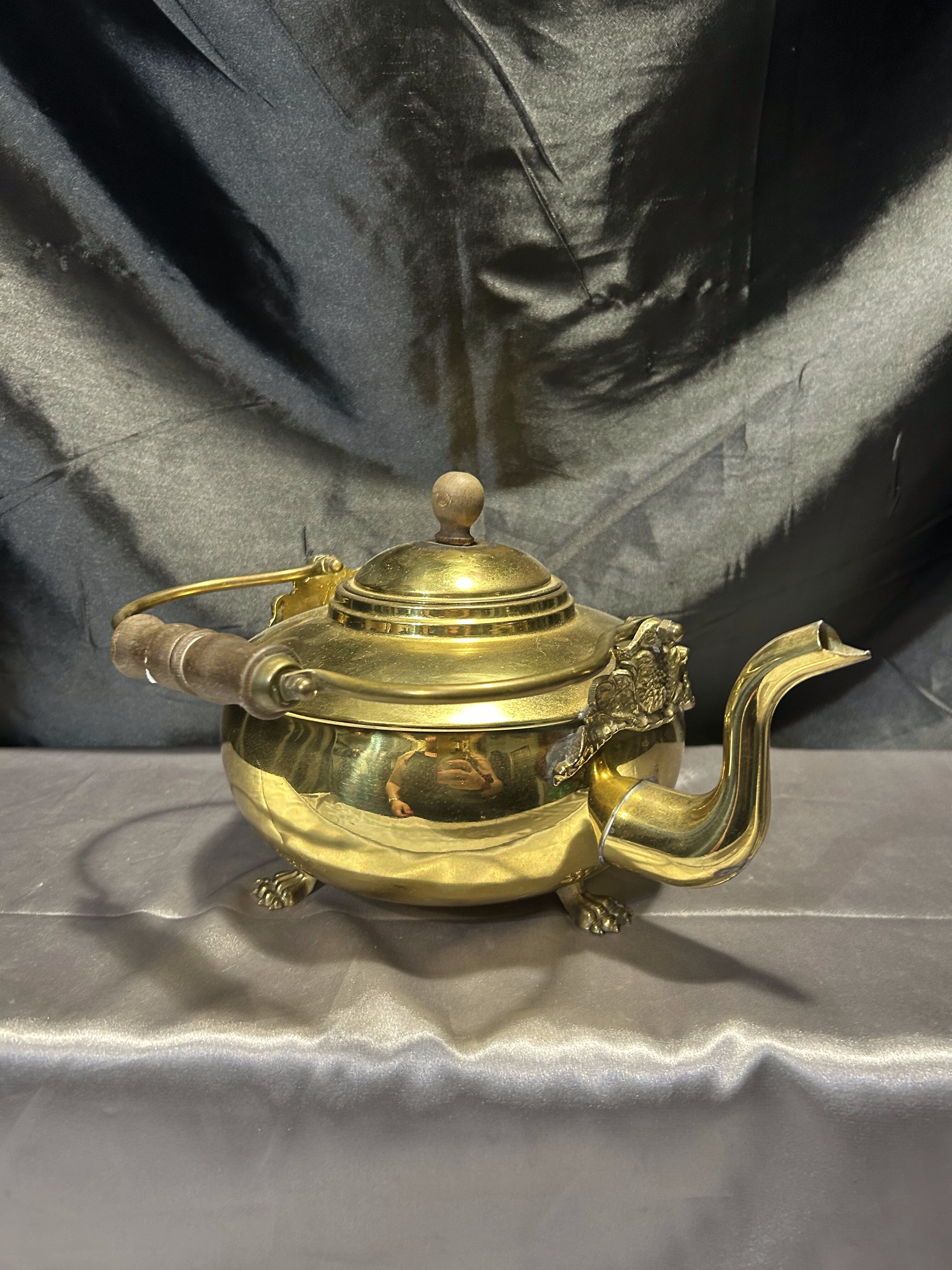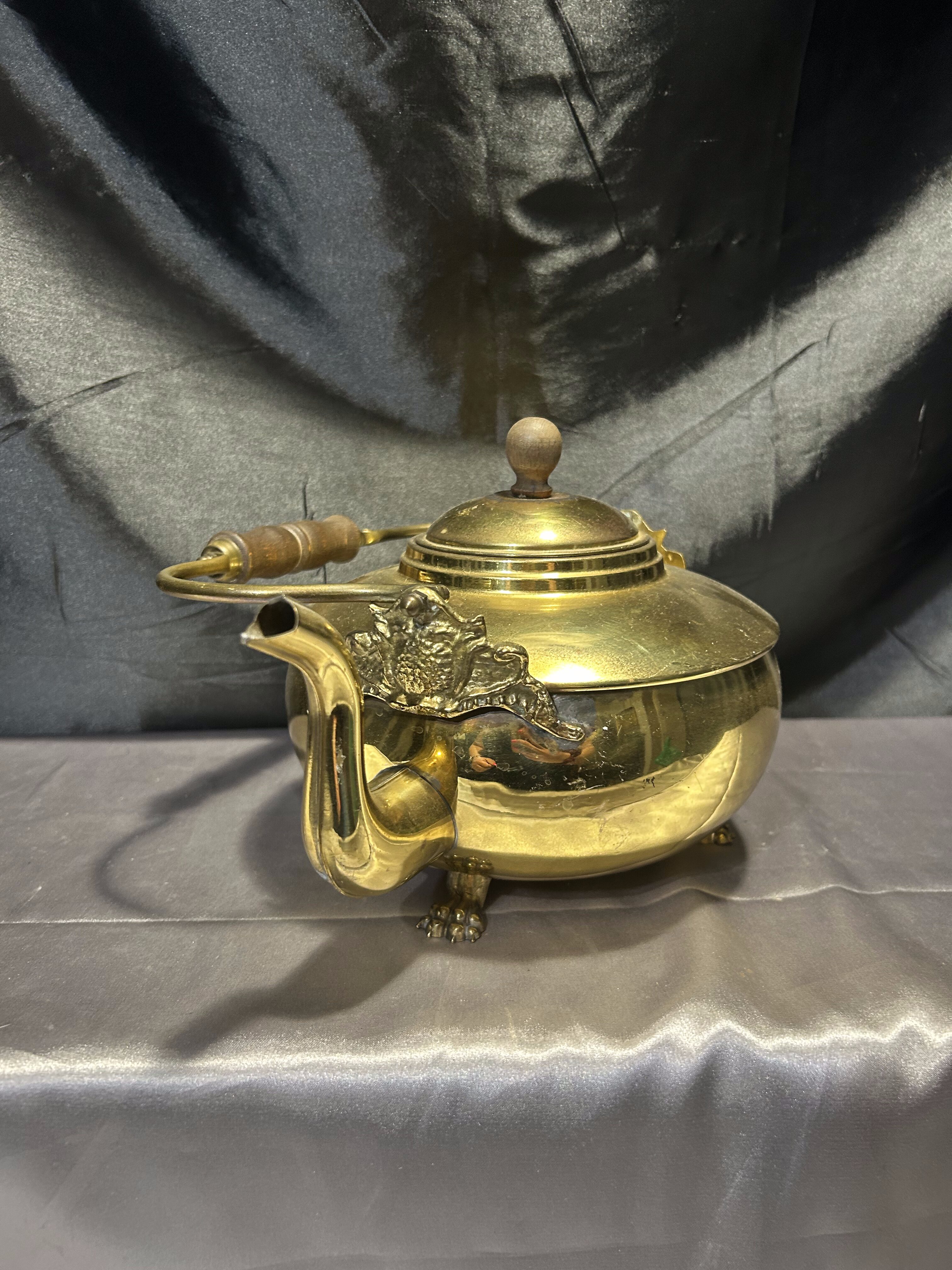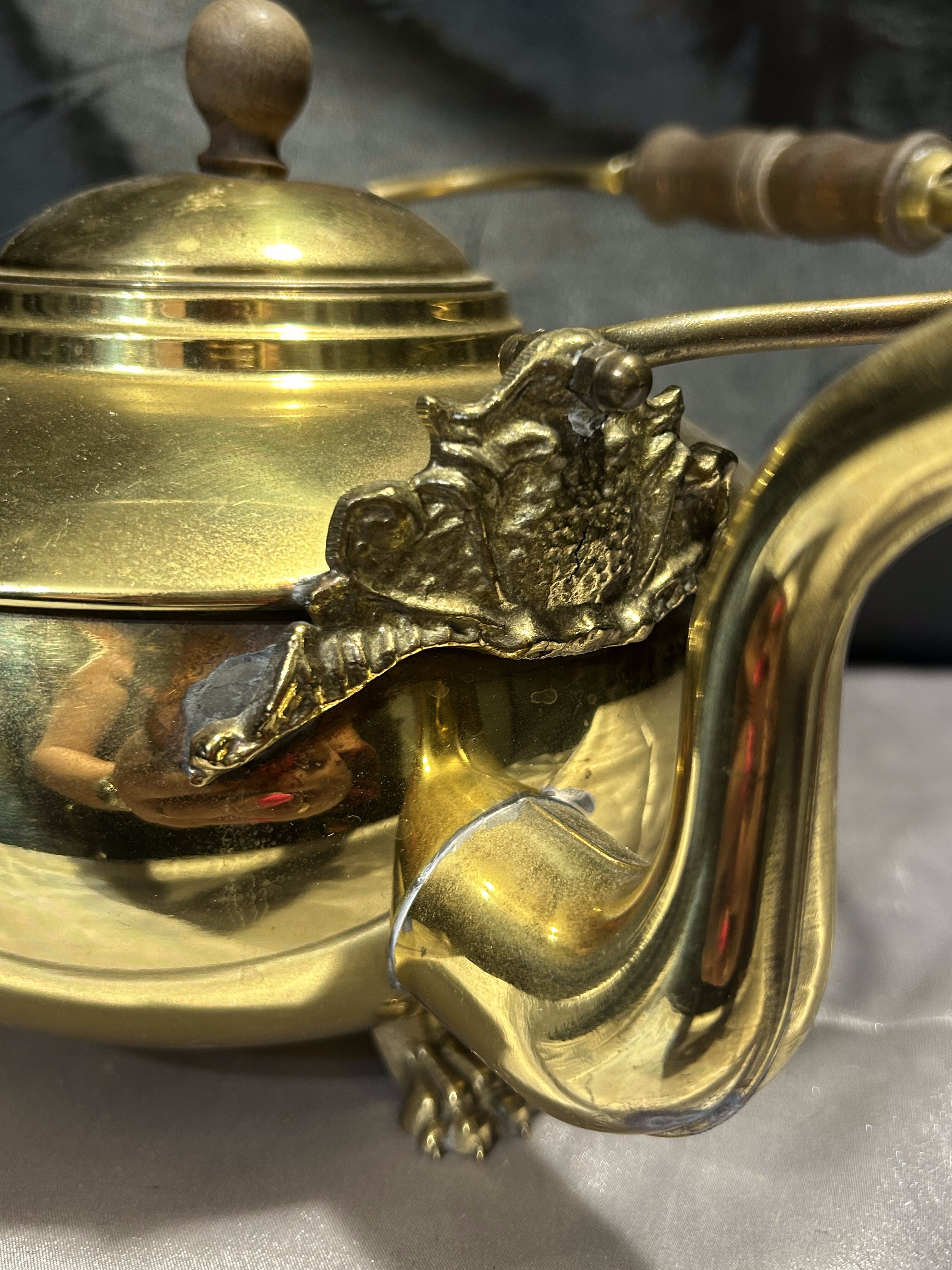 Mosiężny czajnik na lwich nogach – Zdobiony – Drewniana rączka – 2,3 l