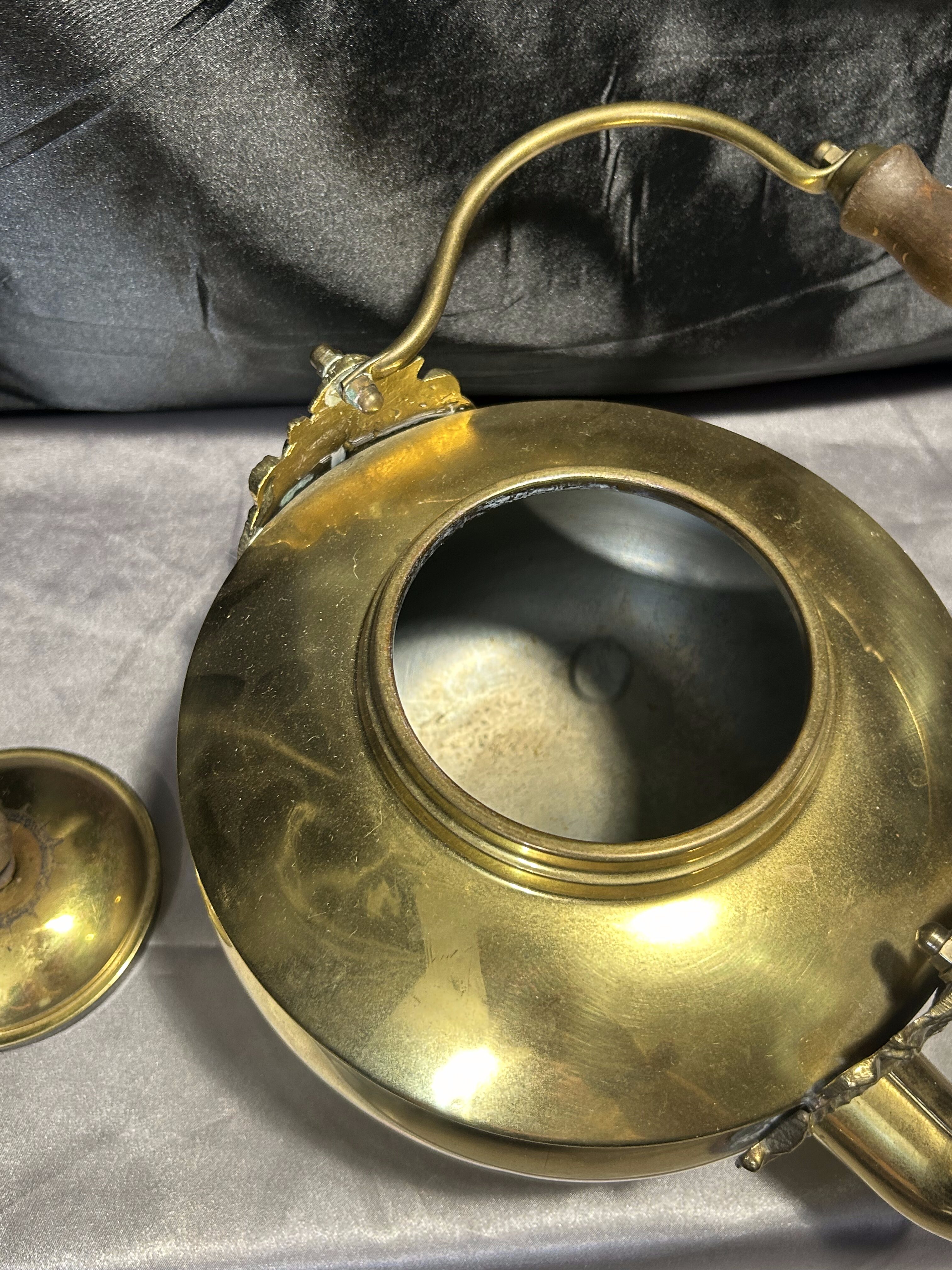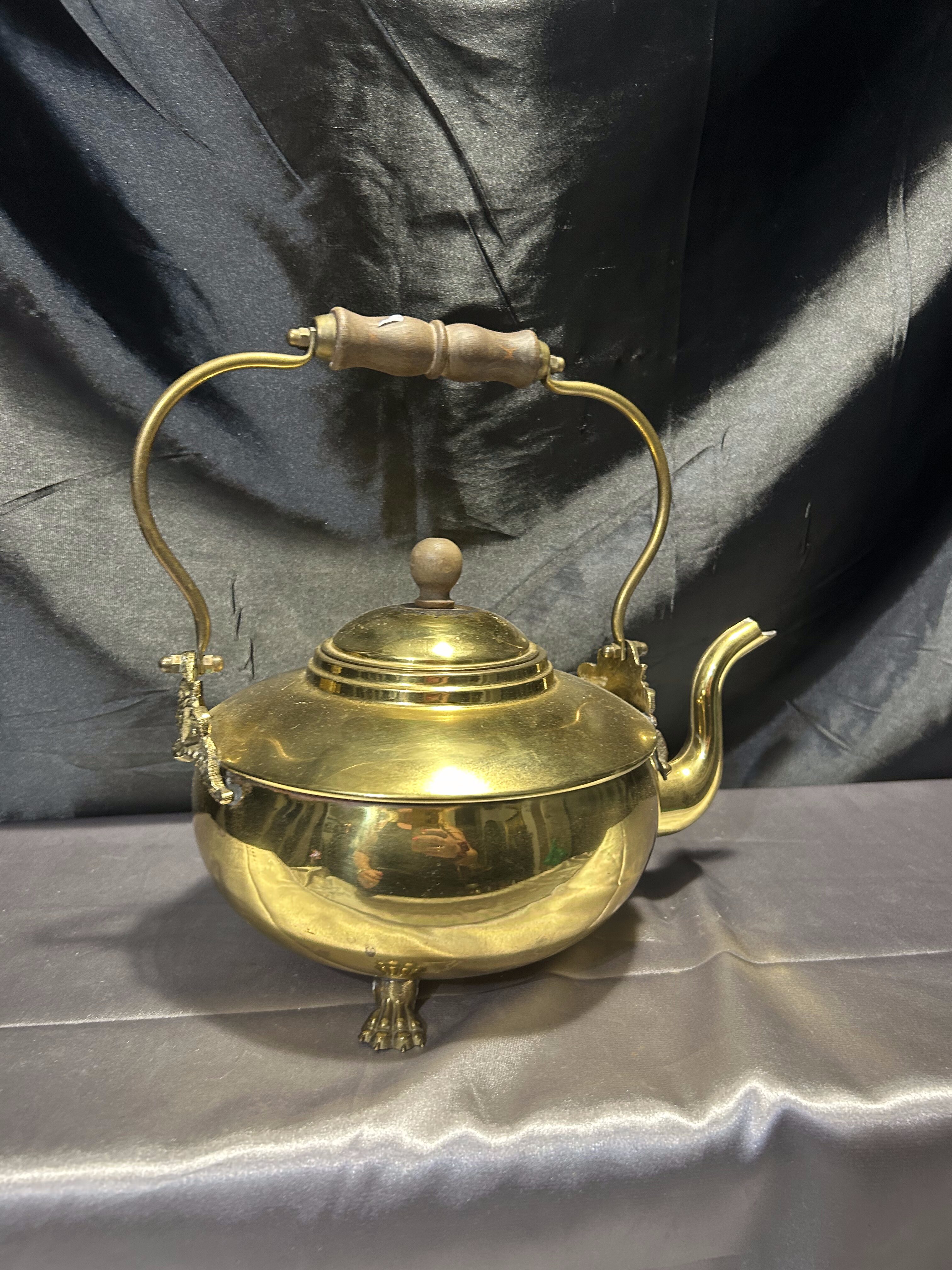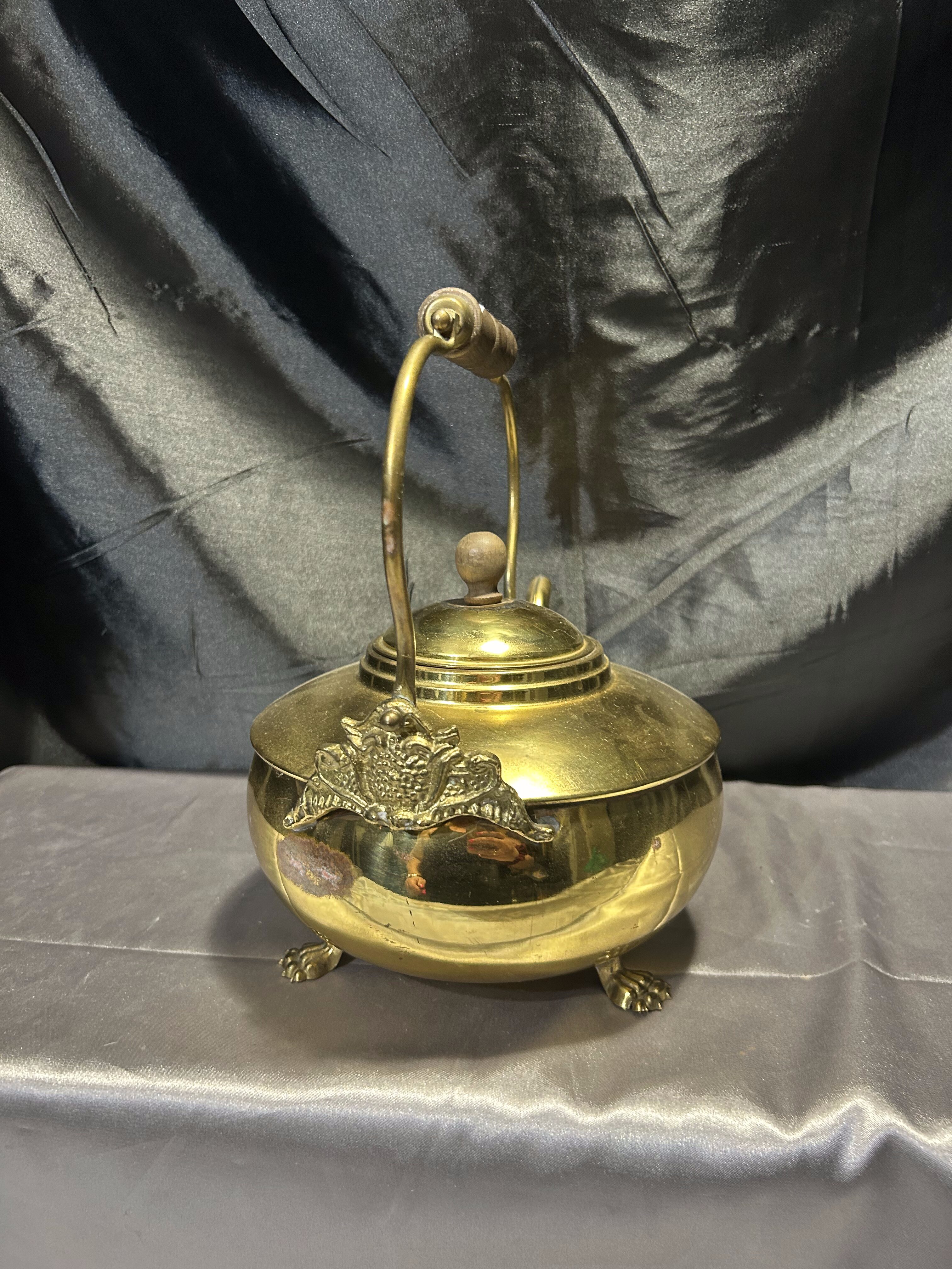 Mosiężny czajnik na lwich nogach – Zdobiony – Drewniana rączka – 2,3 l