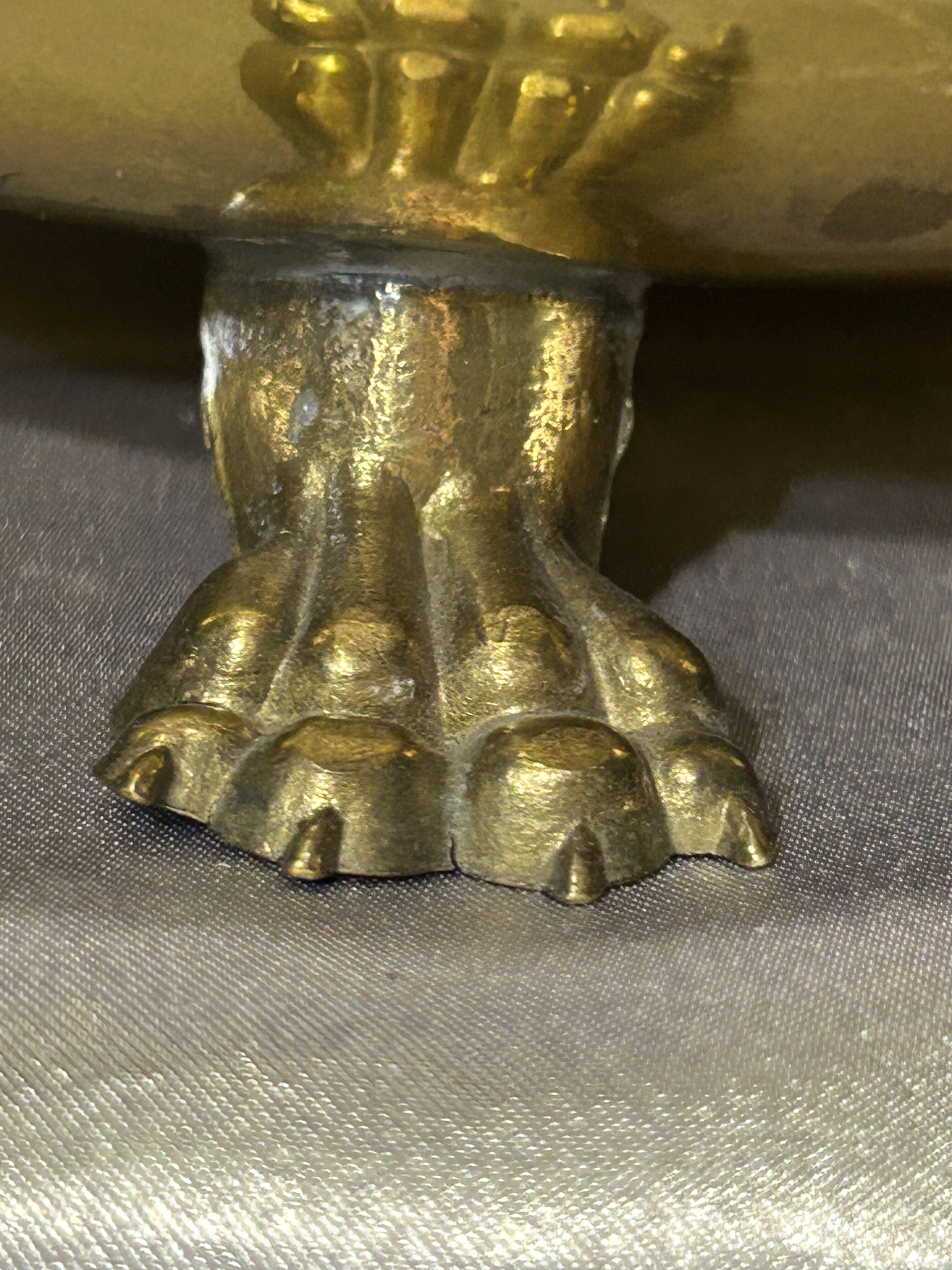 Na sprzedaż wyjątkowy czajnik wykonany z mosiądzu, osadzony na ozdobnych lwich nogach, z pięknymi zdobieniami i stylową, drewnianą rączką. Solidny, a zarazem elegancki, doskonale łączy funkcję użytkową z dekoracyjnym charakterem. Jego forma i detale przywołują atmosferę dawnych wnętrz, pełnych ciepła i klasy.