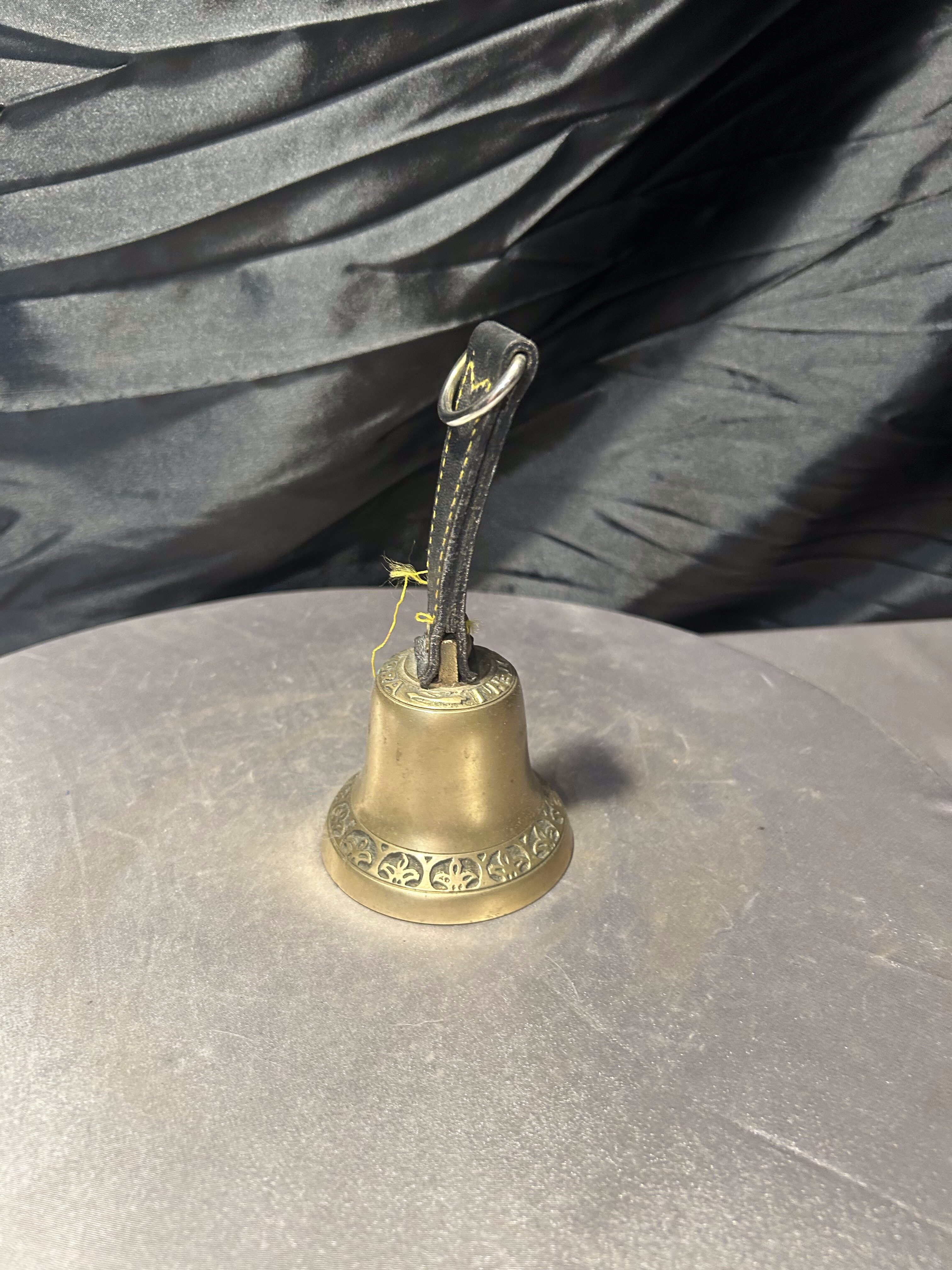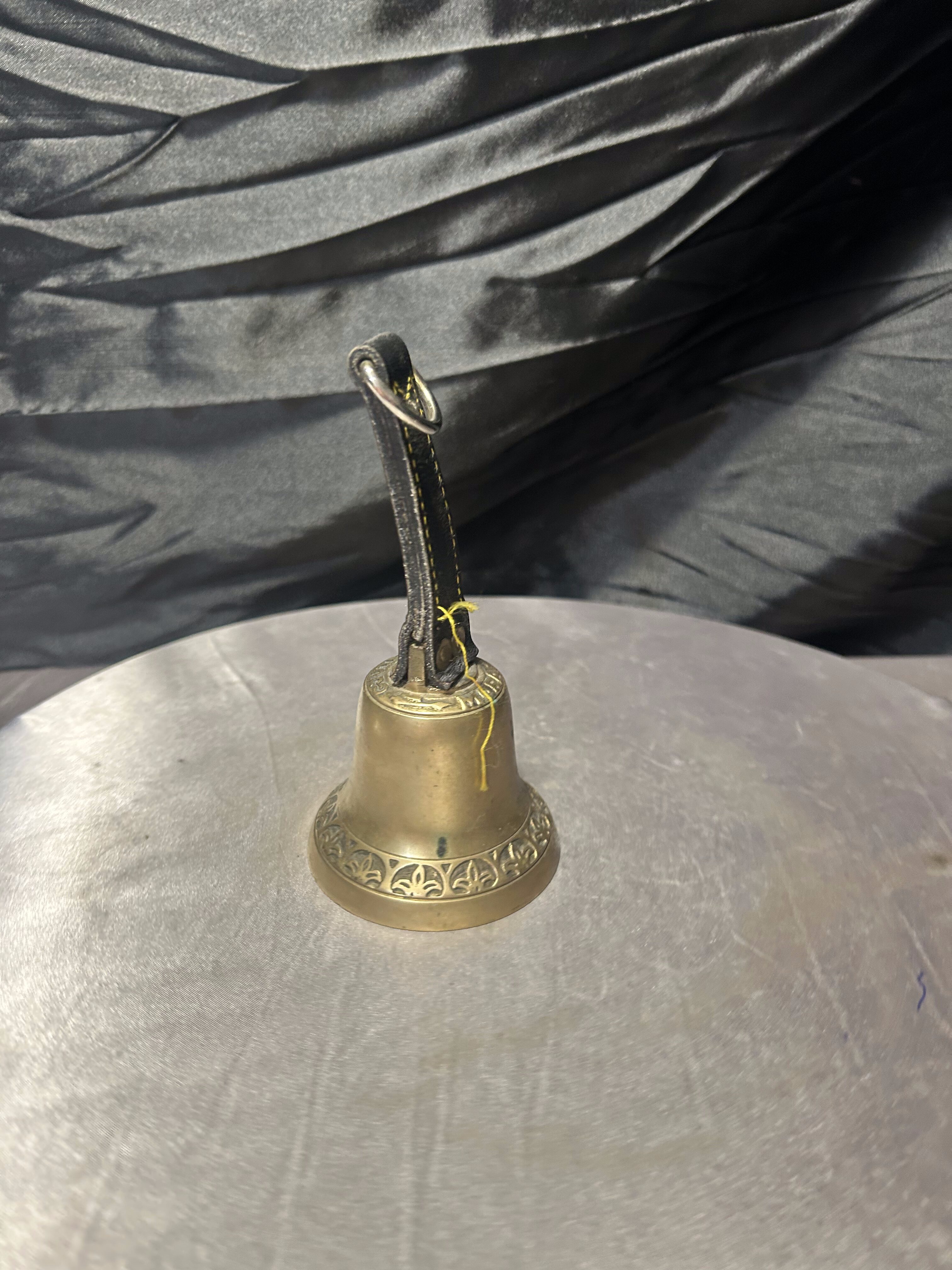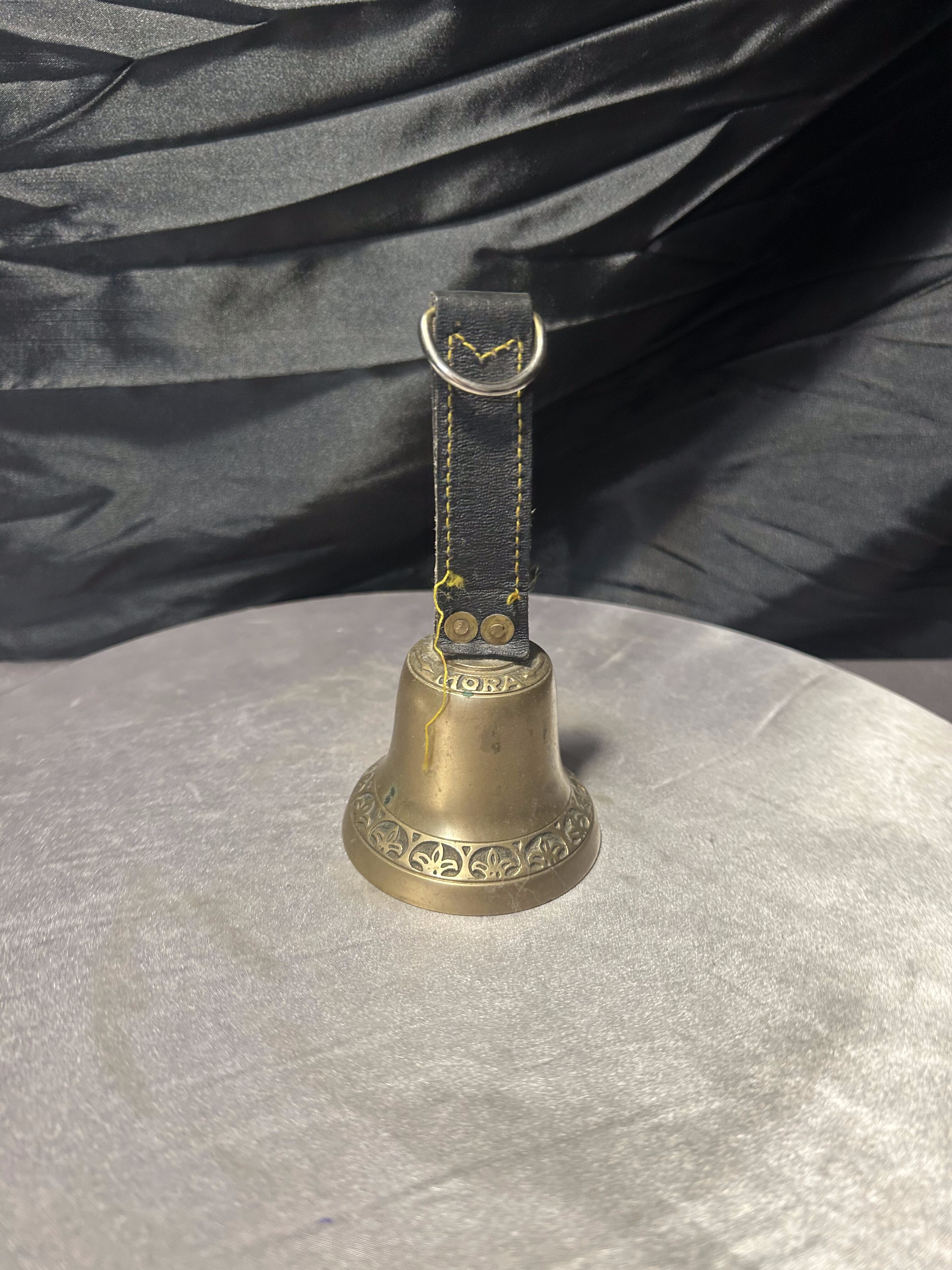 Mosiężny dzwonek GJUTEN I MORA – skandynawski dzwonek z skórzaną rączką
