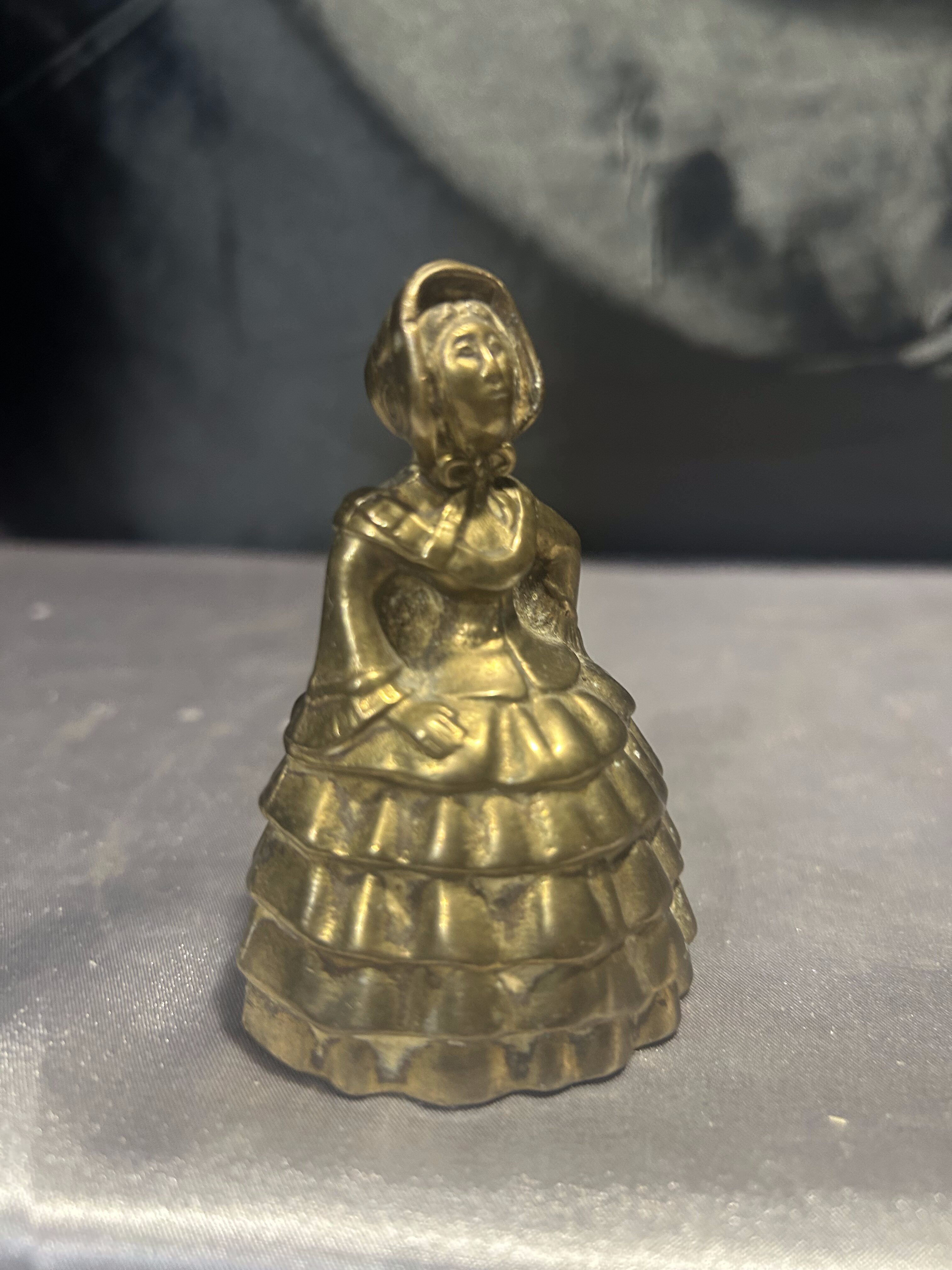 Mosiężny Dzwonek w Kształcie Damy – Sygnowany Made in England – Kolekcjonerski – 8,2 cm