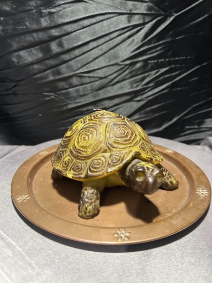 Świeca w kształcie żółwia na miedzianym talerzyku