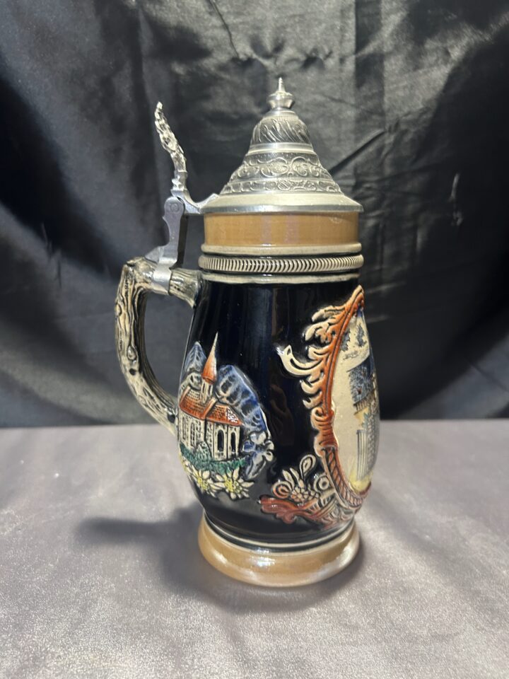 Kufel ceramiczny z pokrywką i rączką z cyny – stylowy i praktyczny!
