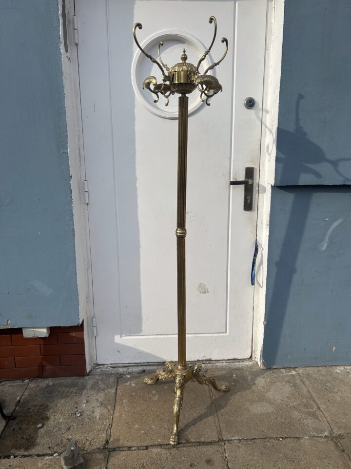 Stojak-Wieszak z Mosiądzu – Zdobiony na Trzech Lwich Nogach z 12 Haczykami