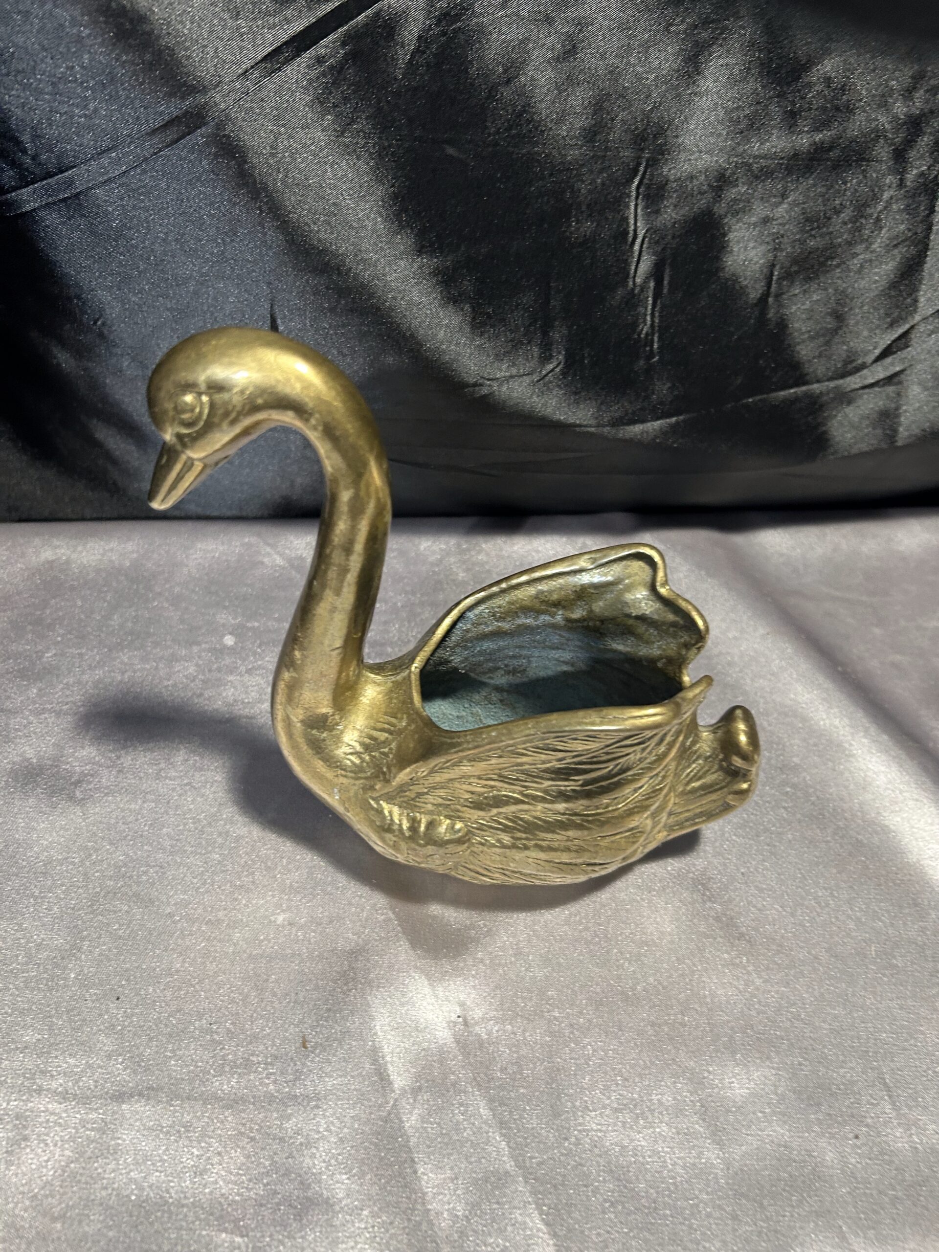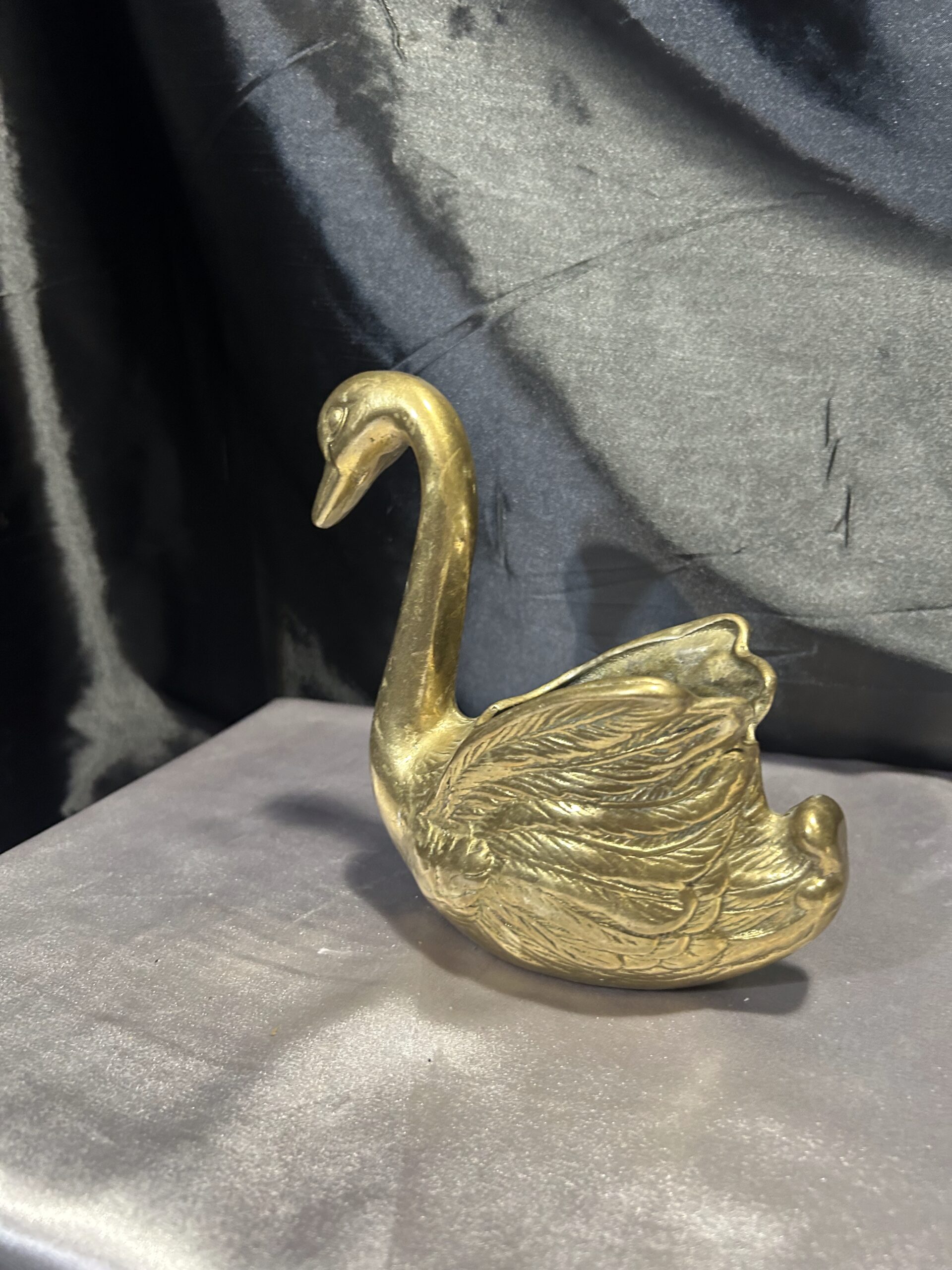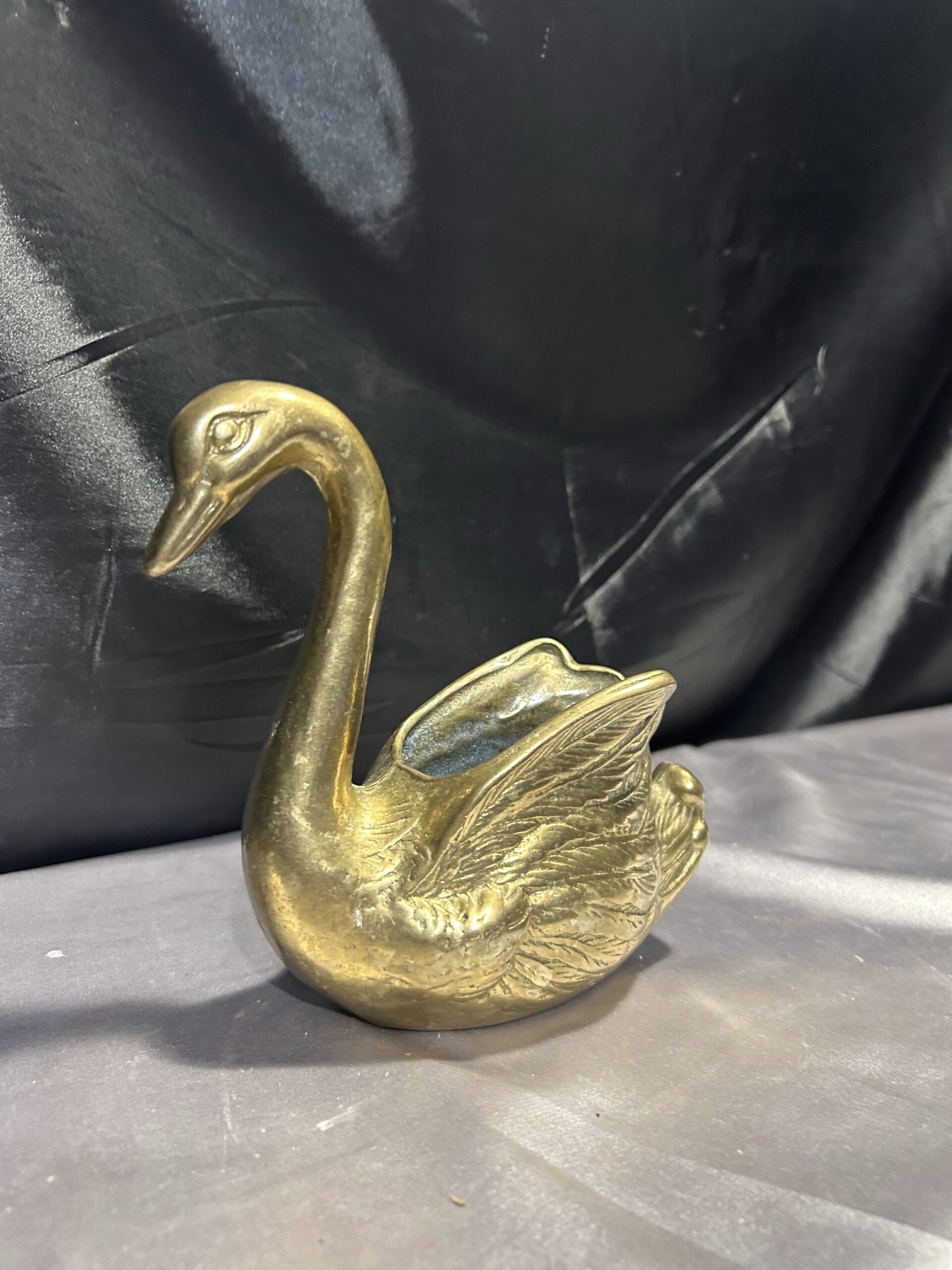 Mosiężny łabędź – elegancka figurka, kwietnik, misa