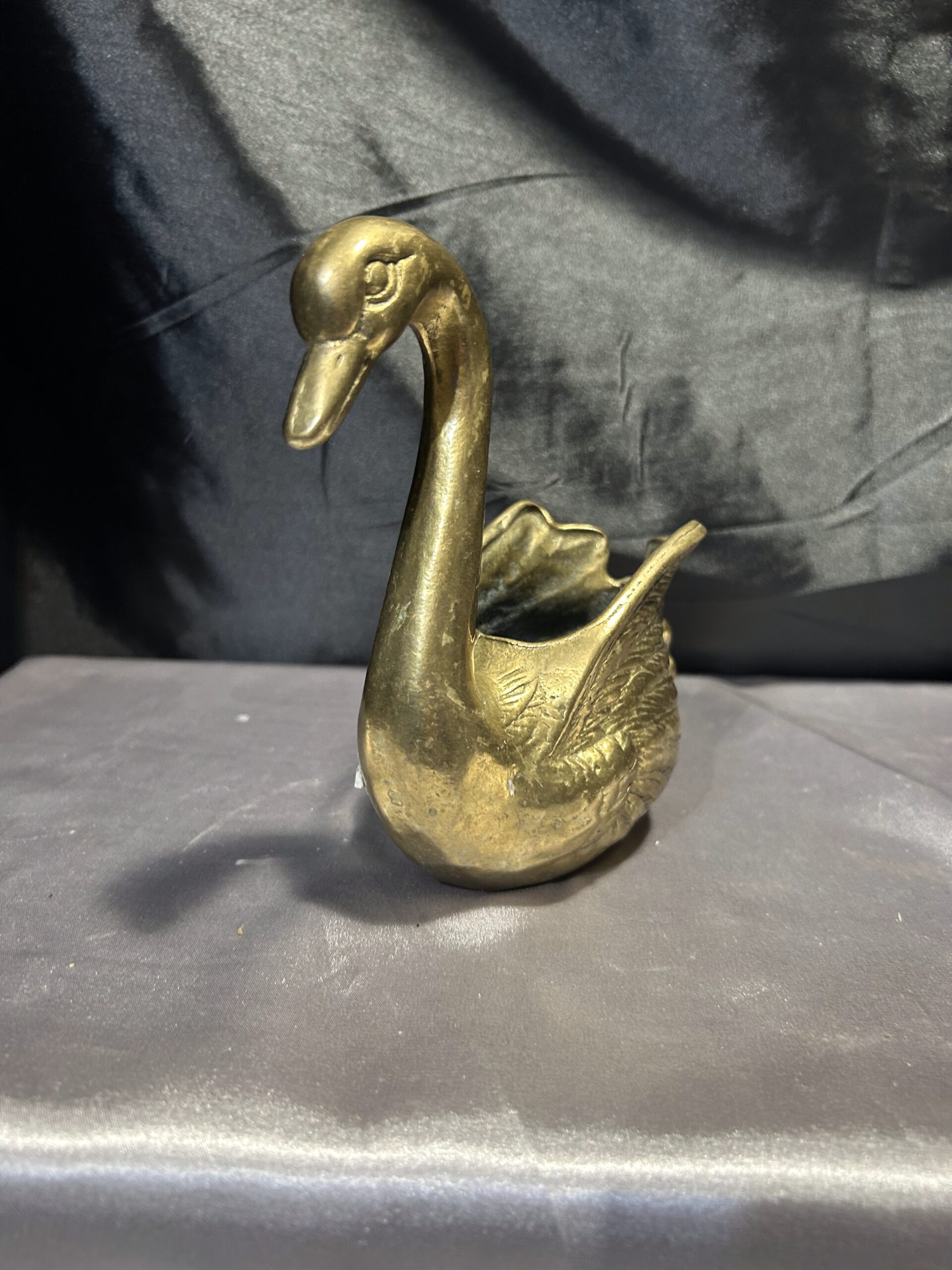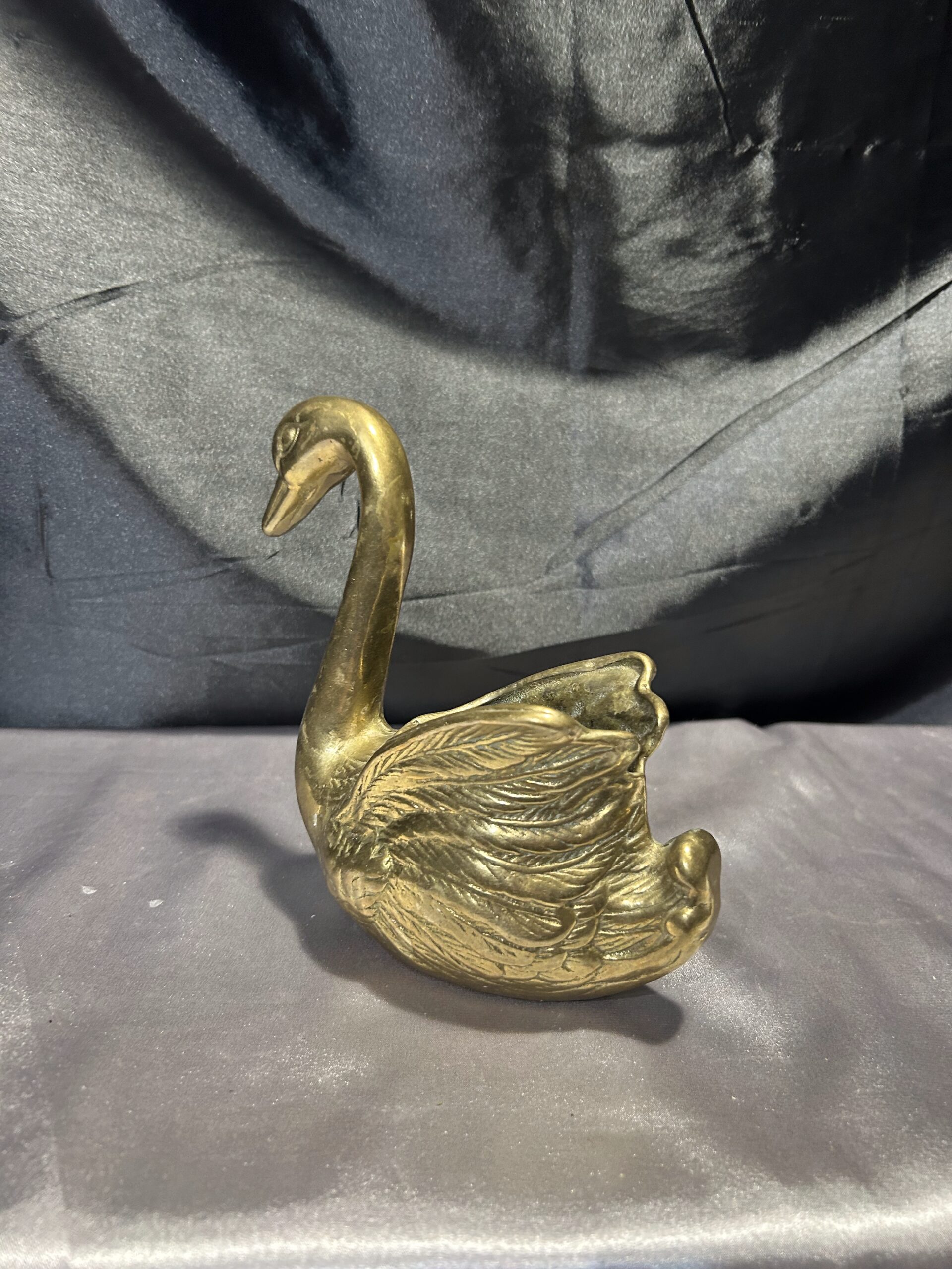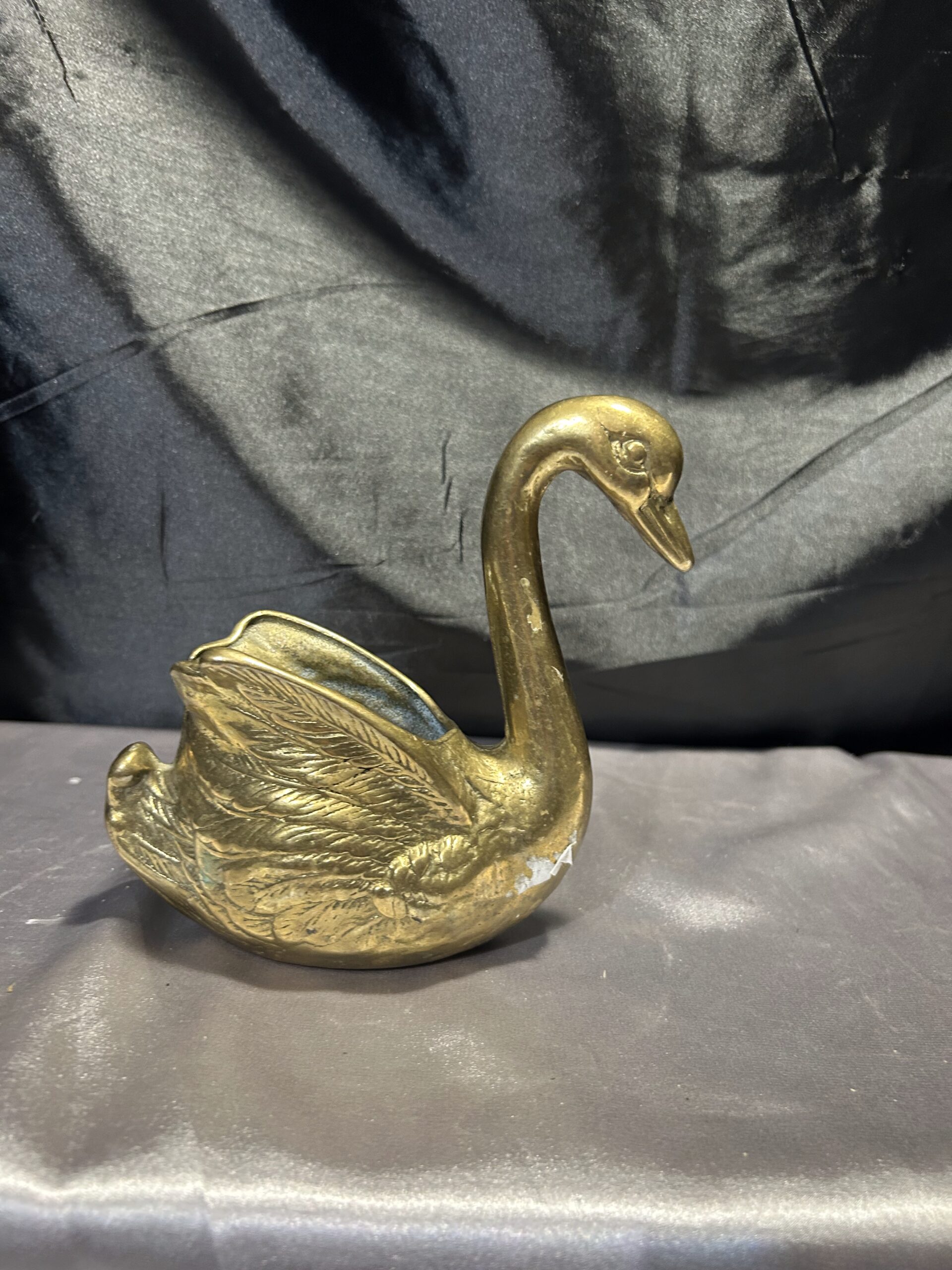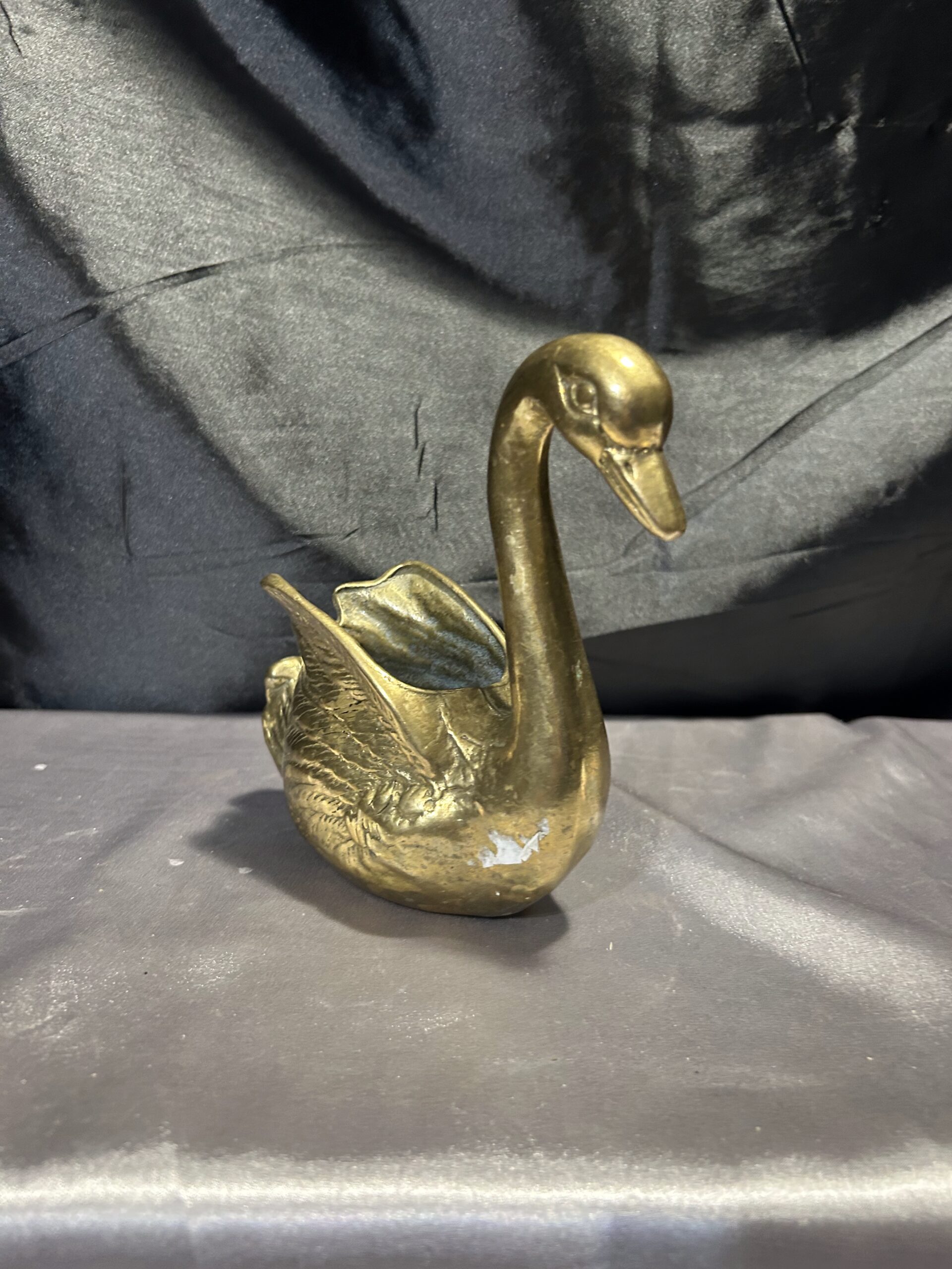 Mosiężny łabędź – elegancka figurka, kwietnik, misa