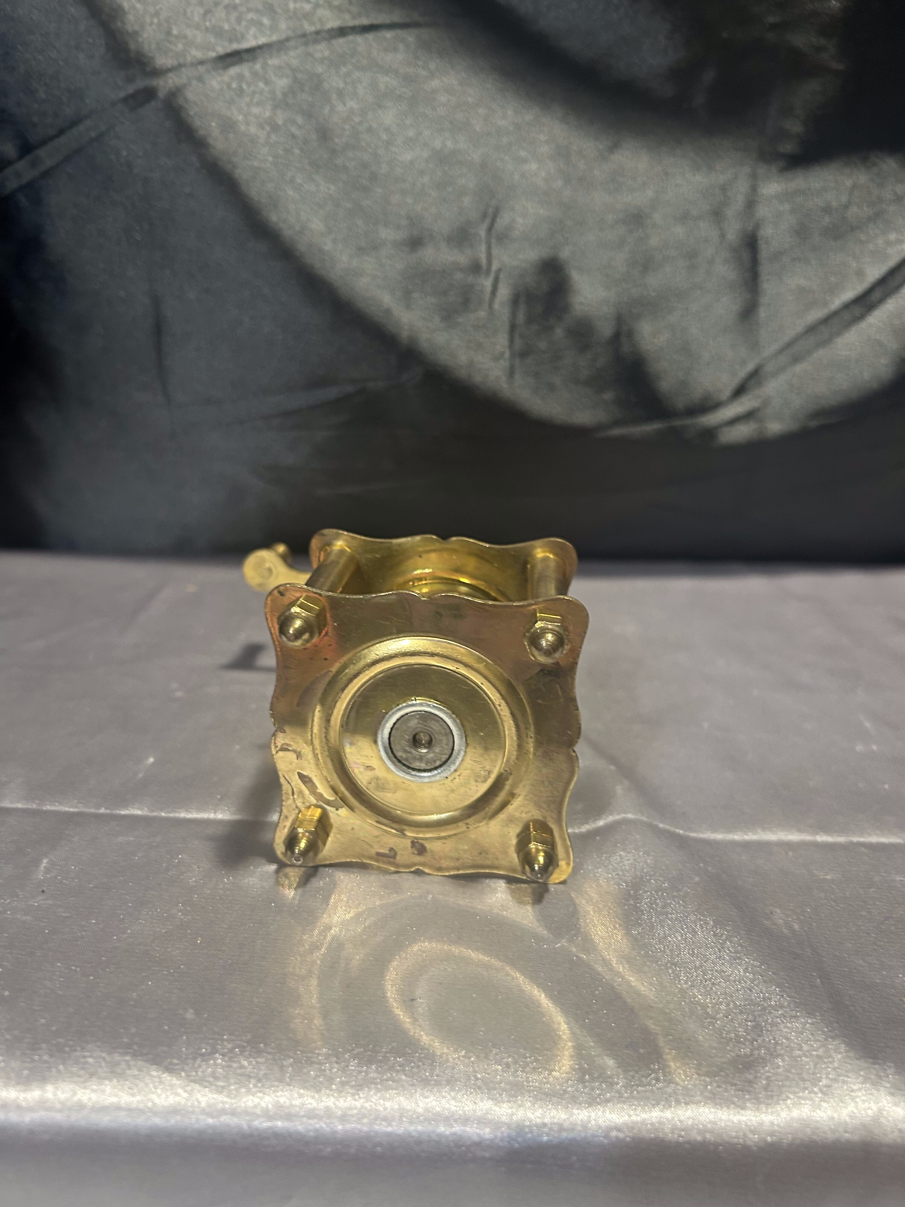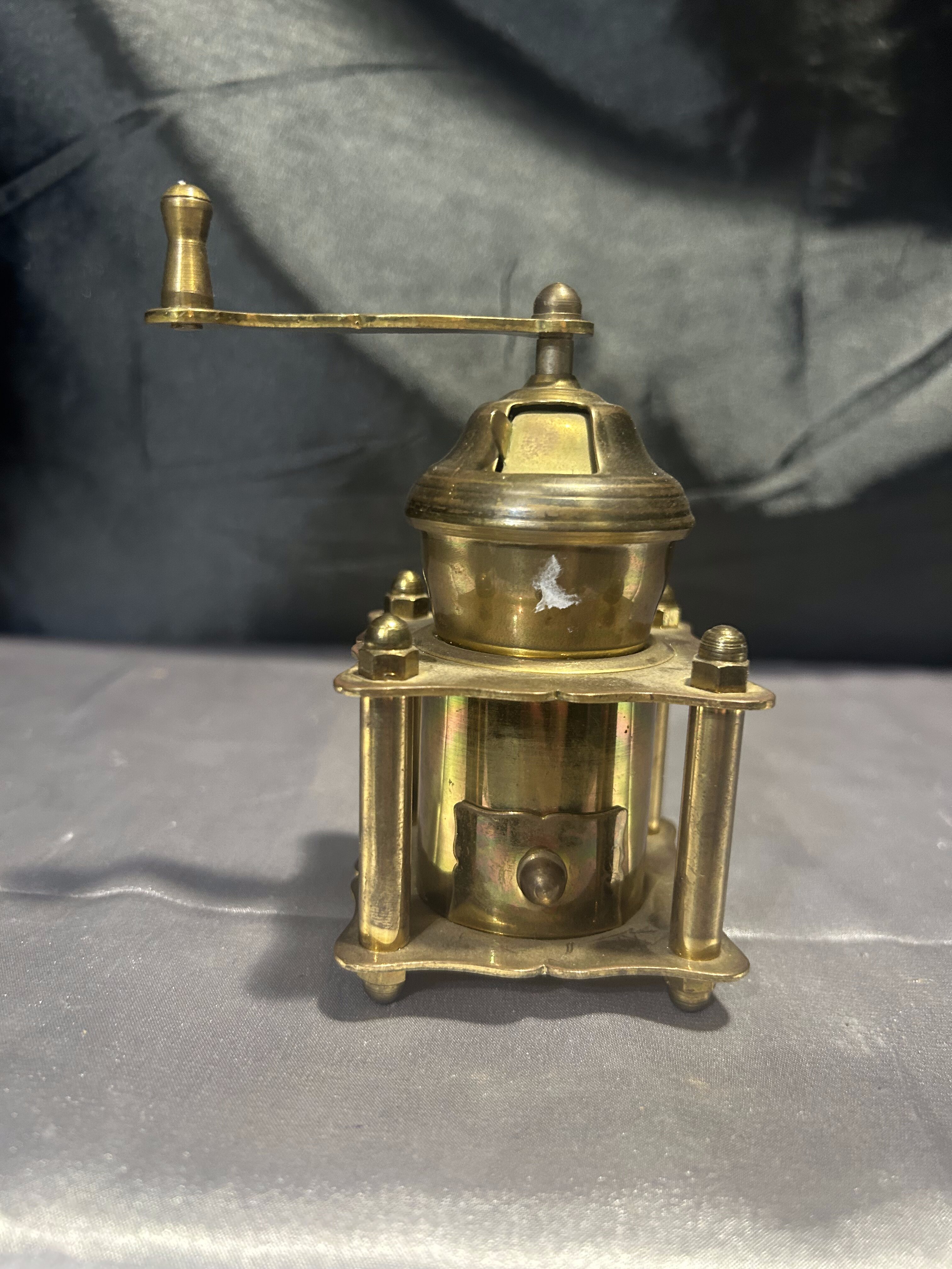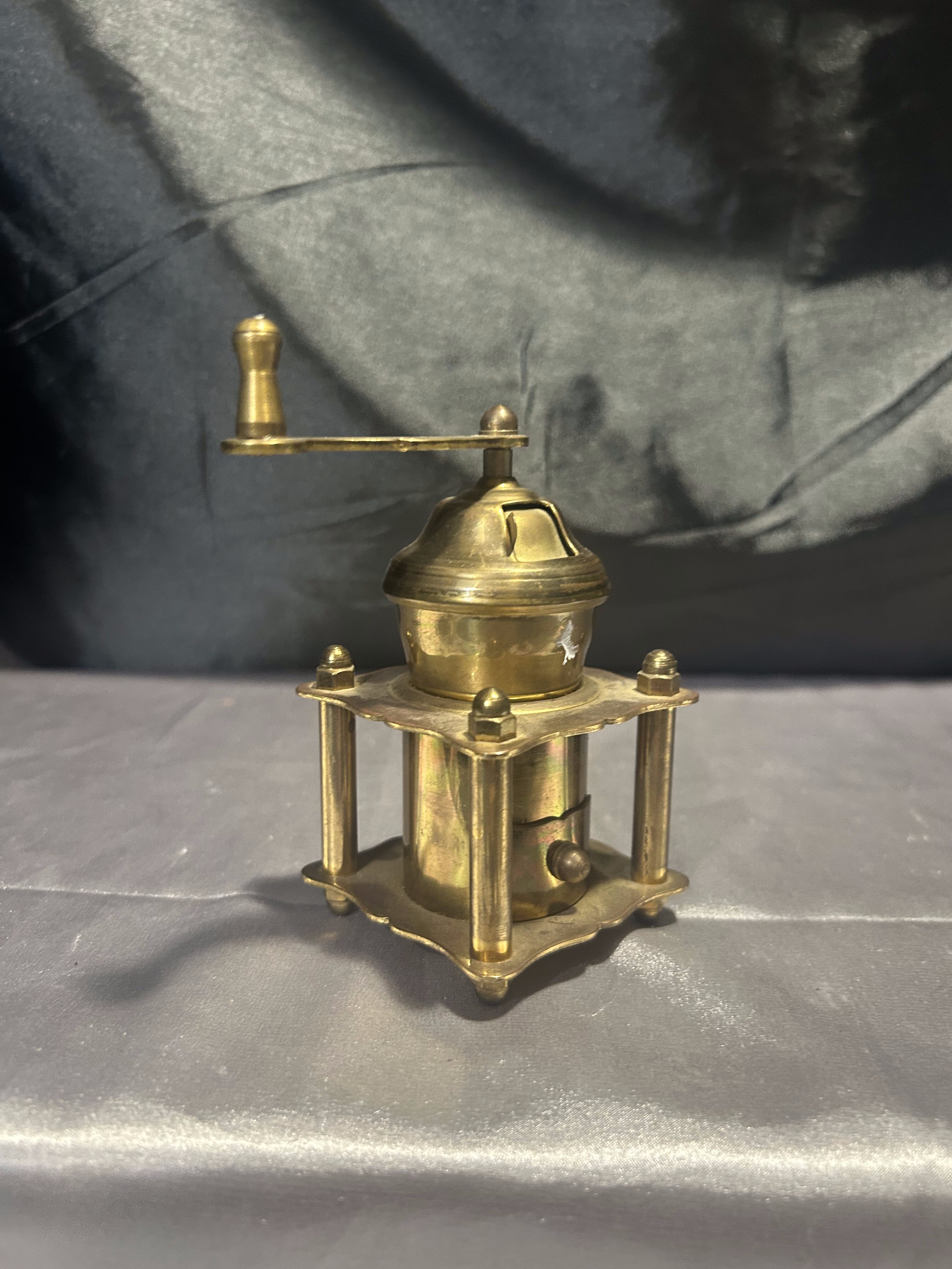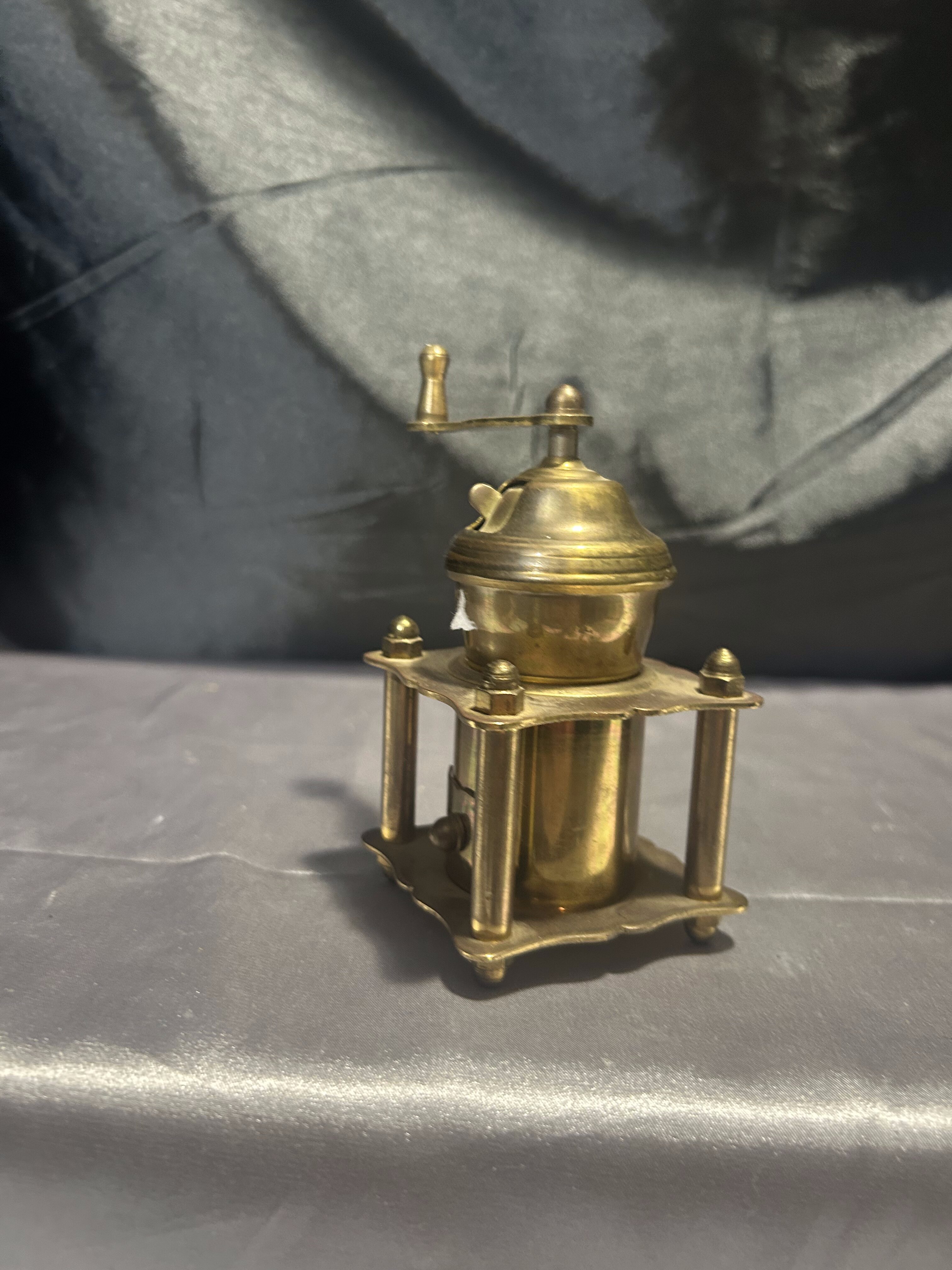 Na sprzedaż elegancki młynek do pieprzu wykonany z mosiądzu, ozdobiony dekoracyjnymi tłoczeniami. Solidna, kwadratowa podstawa i klasyczna konstrukcja nadają mu wyjątkowego charakteru. Idealny do codziennego użytku lub jako stylowy element kuchennej kolekcji w stylu vintage.