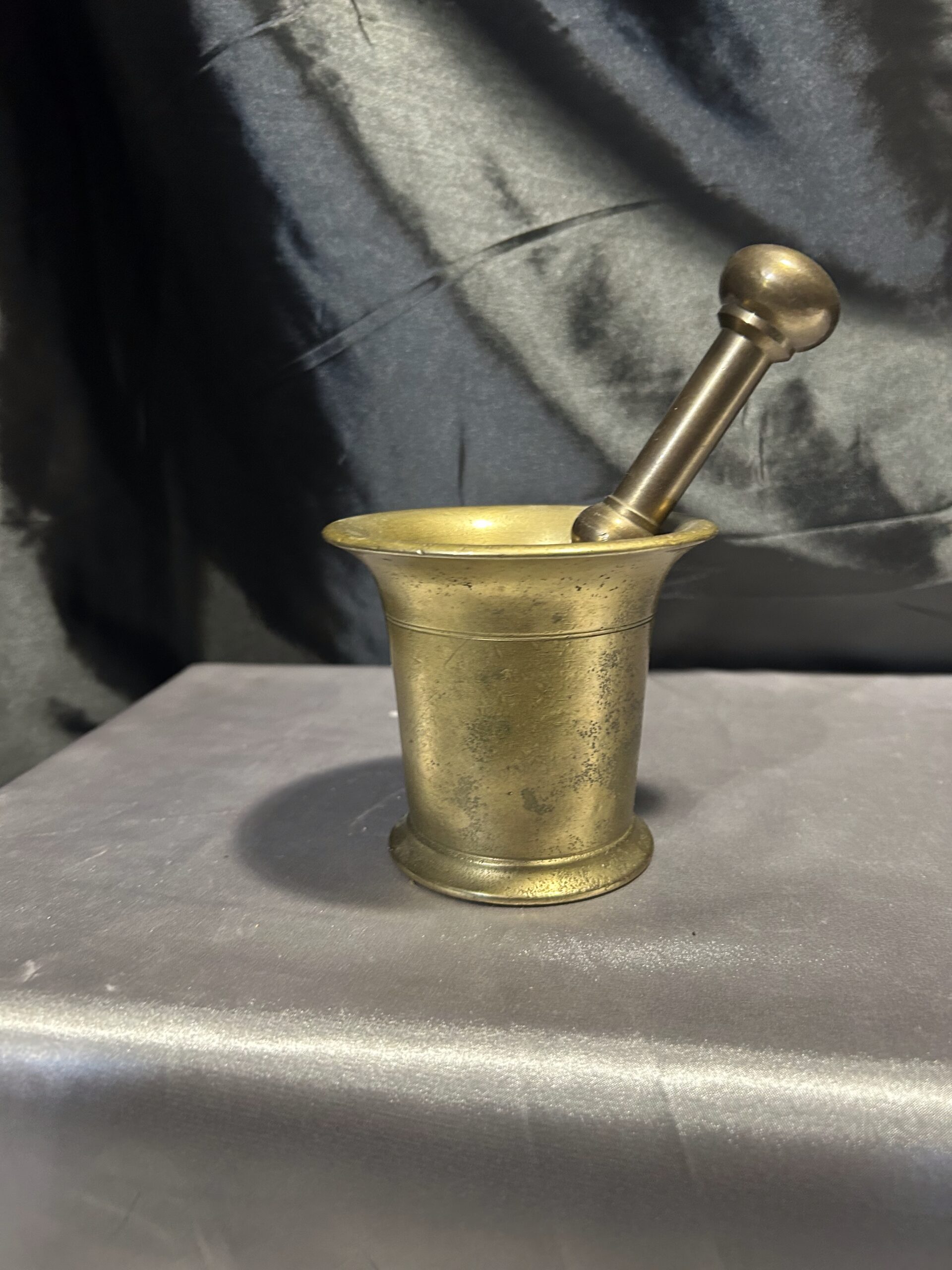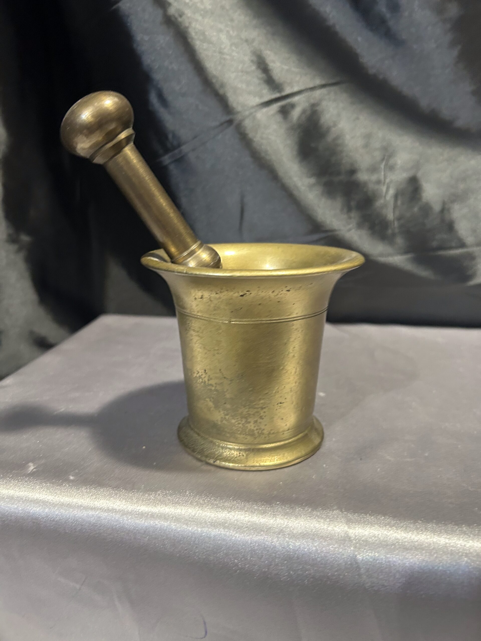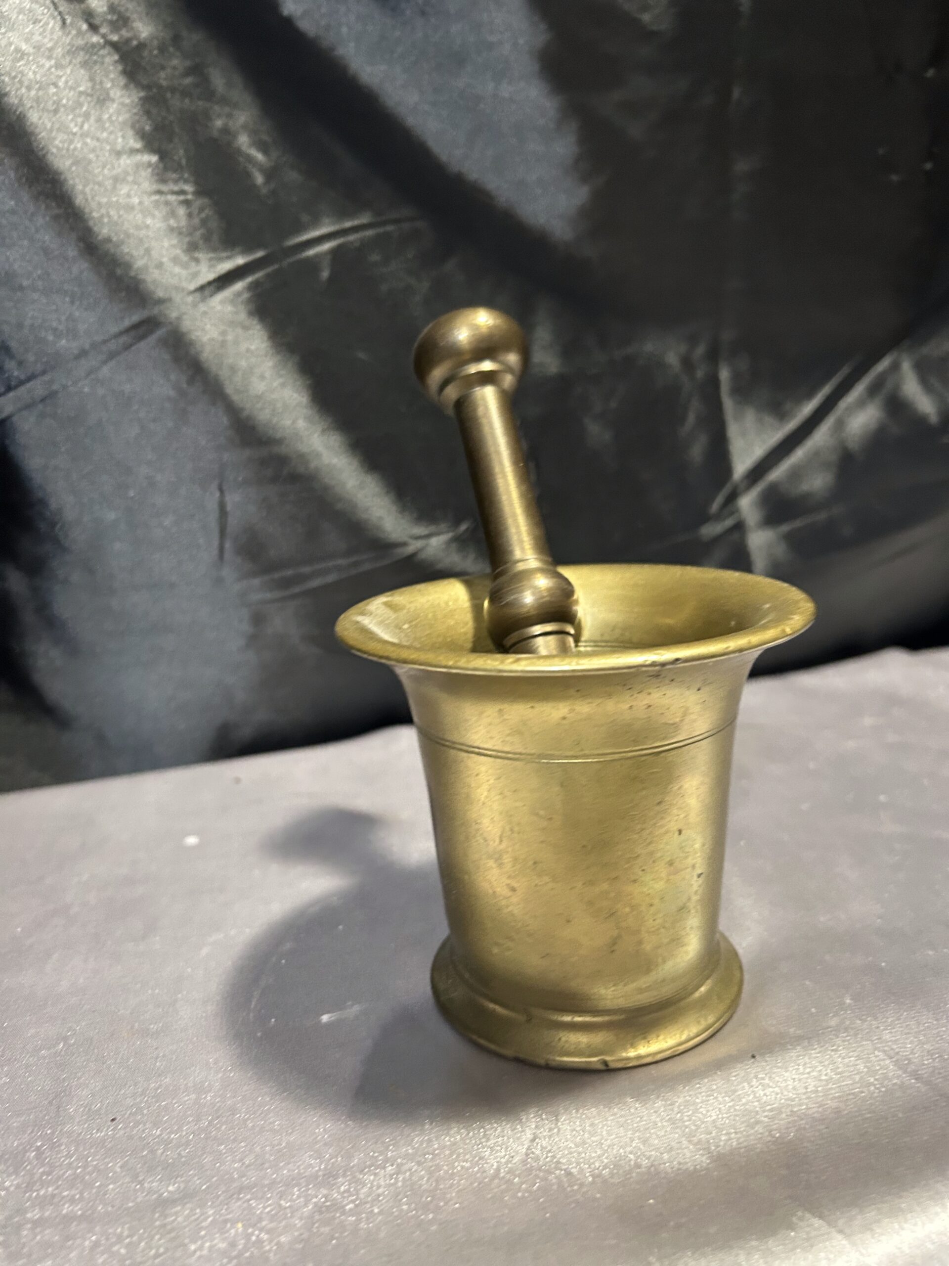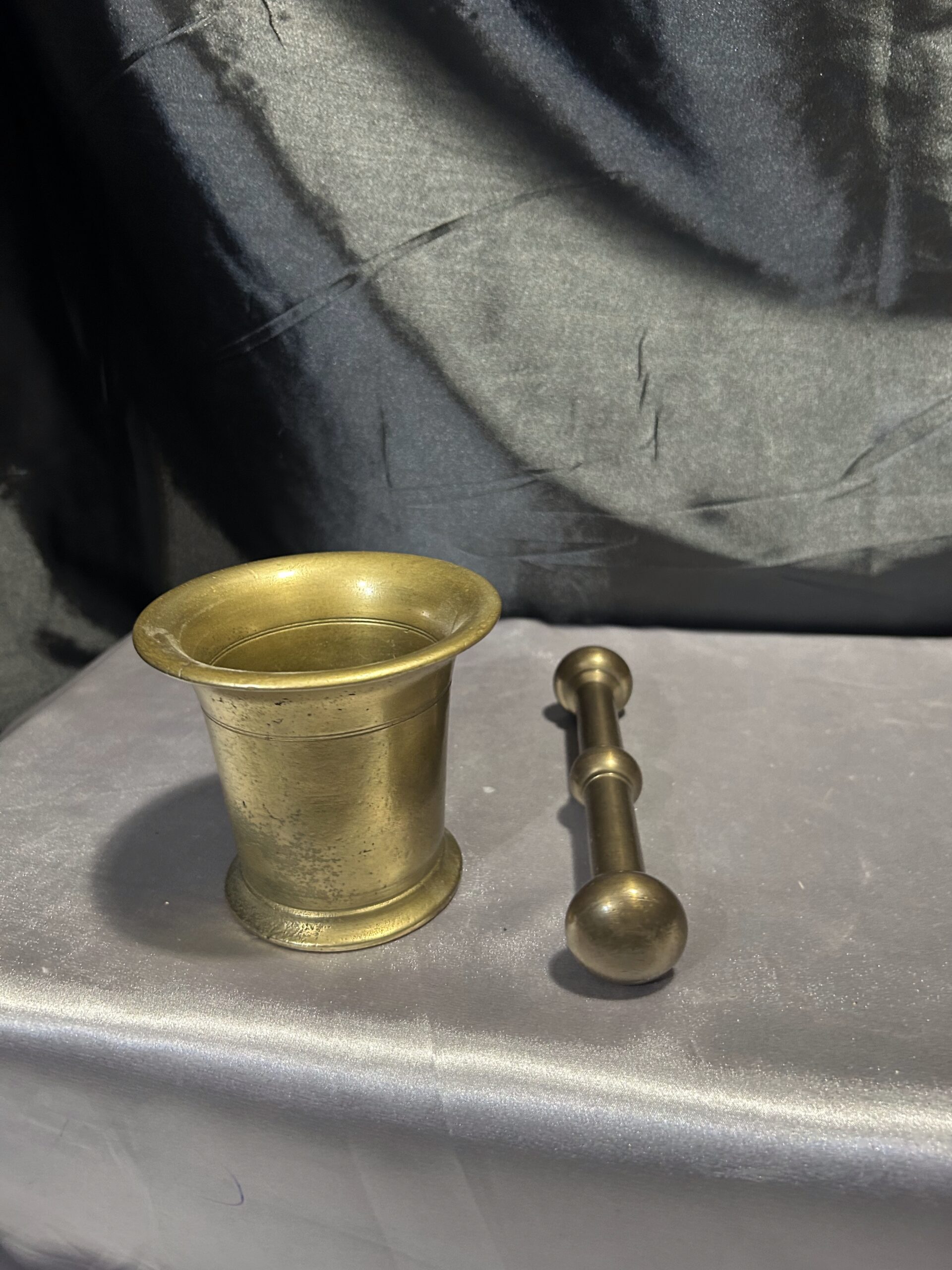 Moździerz mosiężny z 1851 roku – sygnowany – Antyk z tłuczkiem