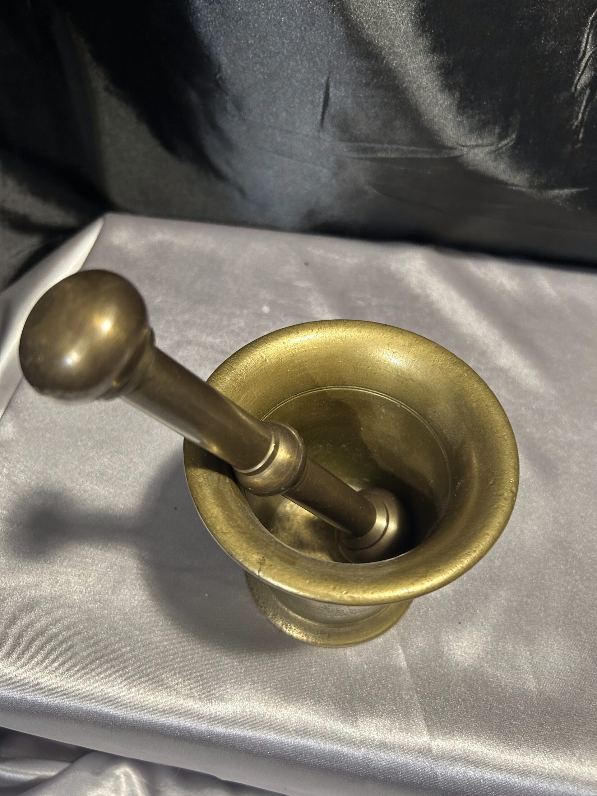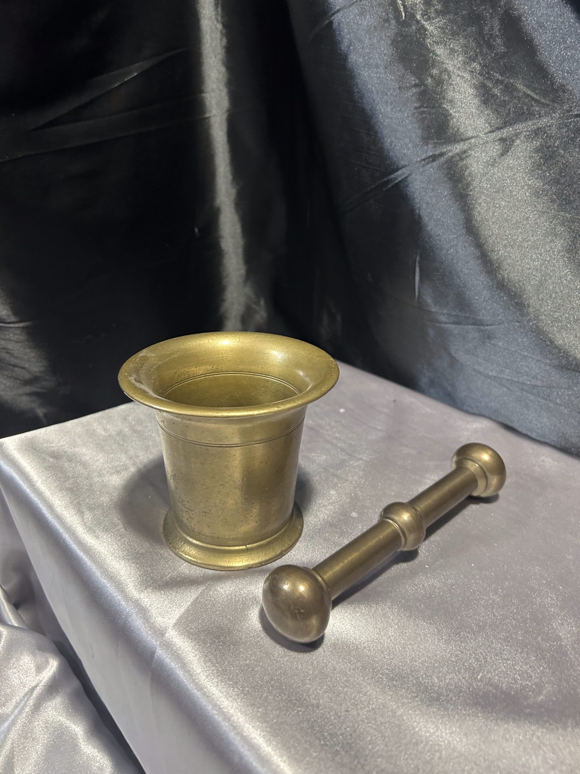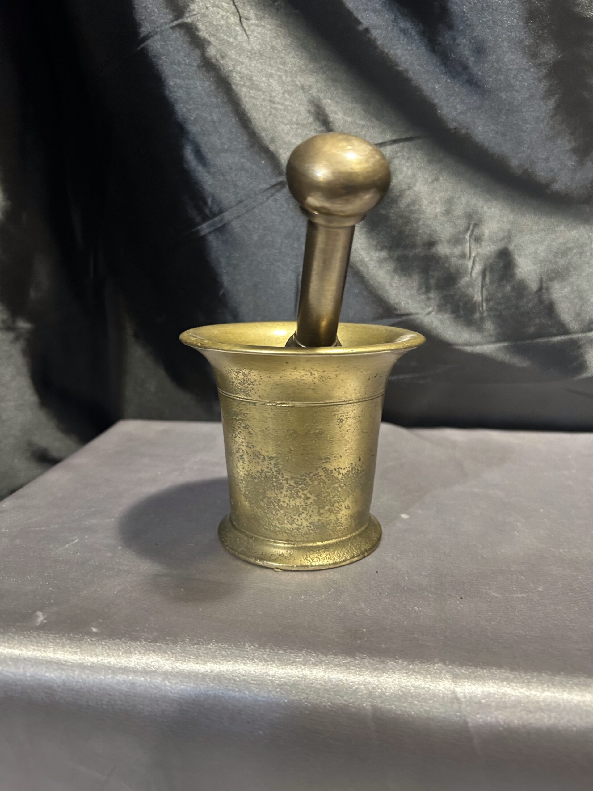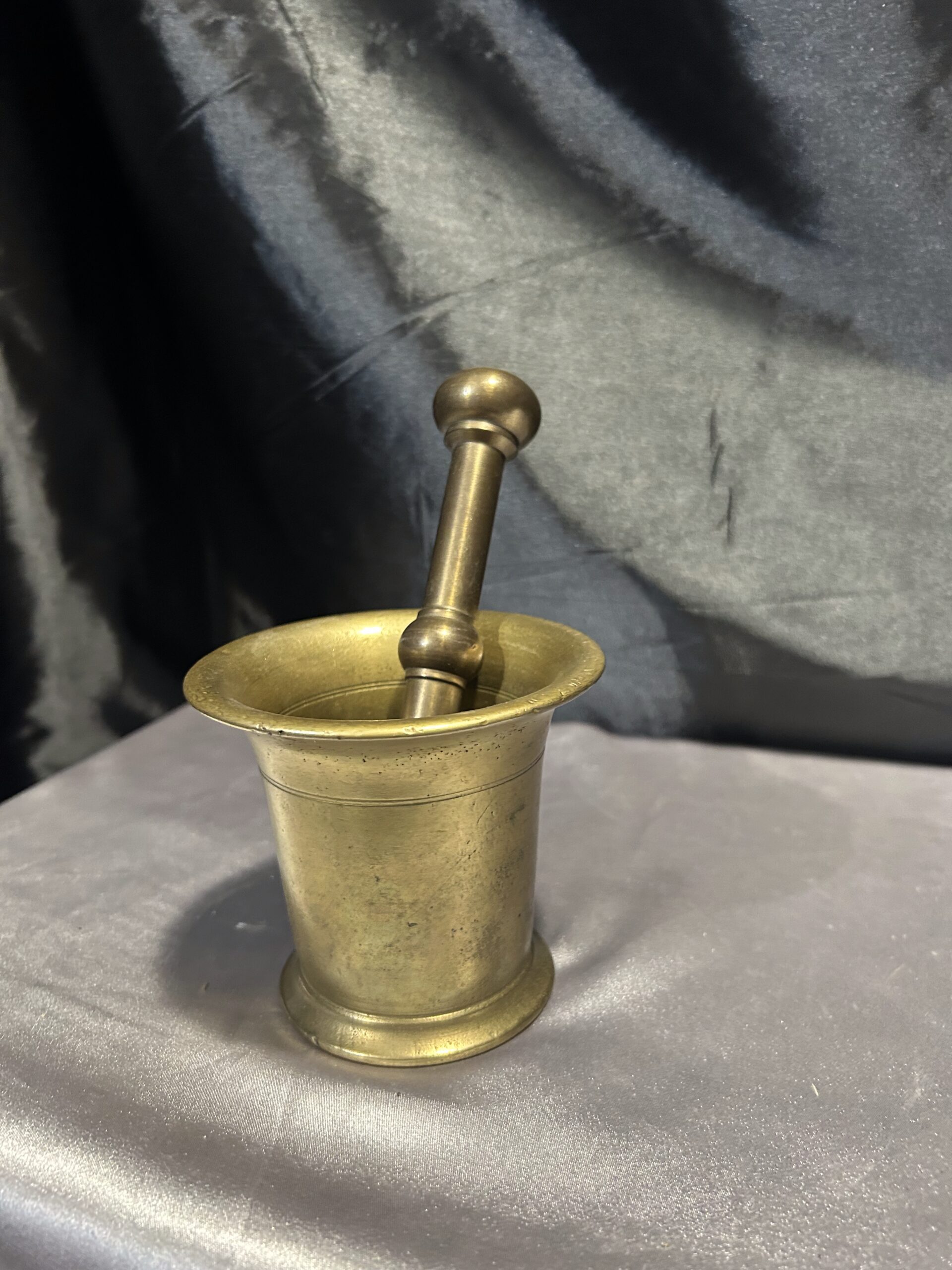 Moździerz mosiężny z 1851 roku – sygnowany – Antyk z tłuczkiem
