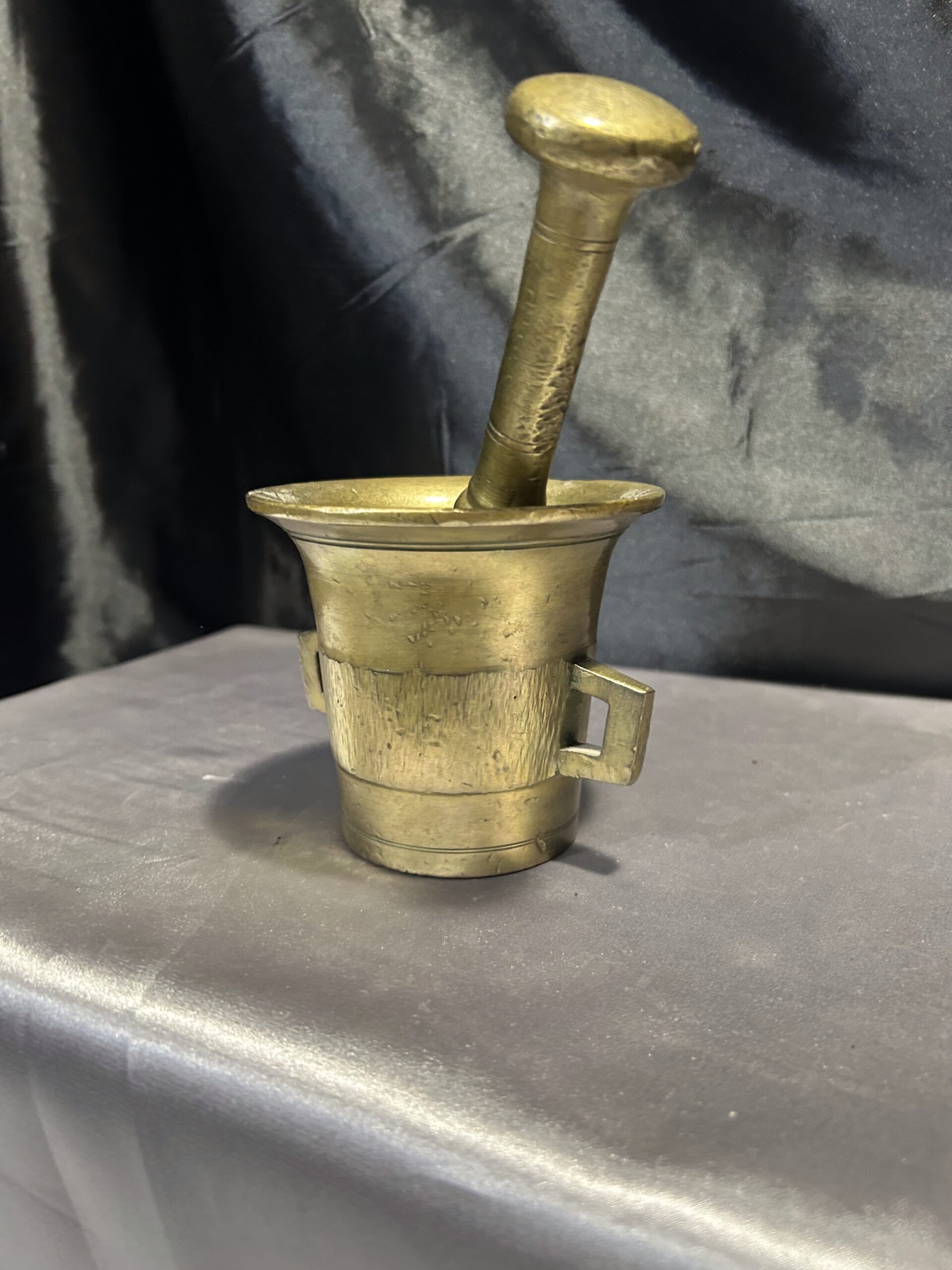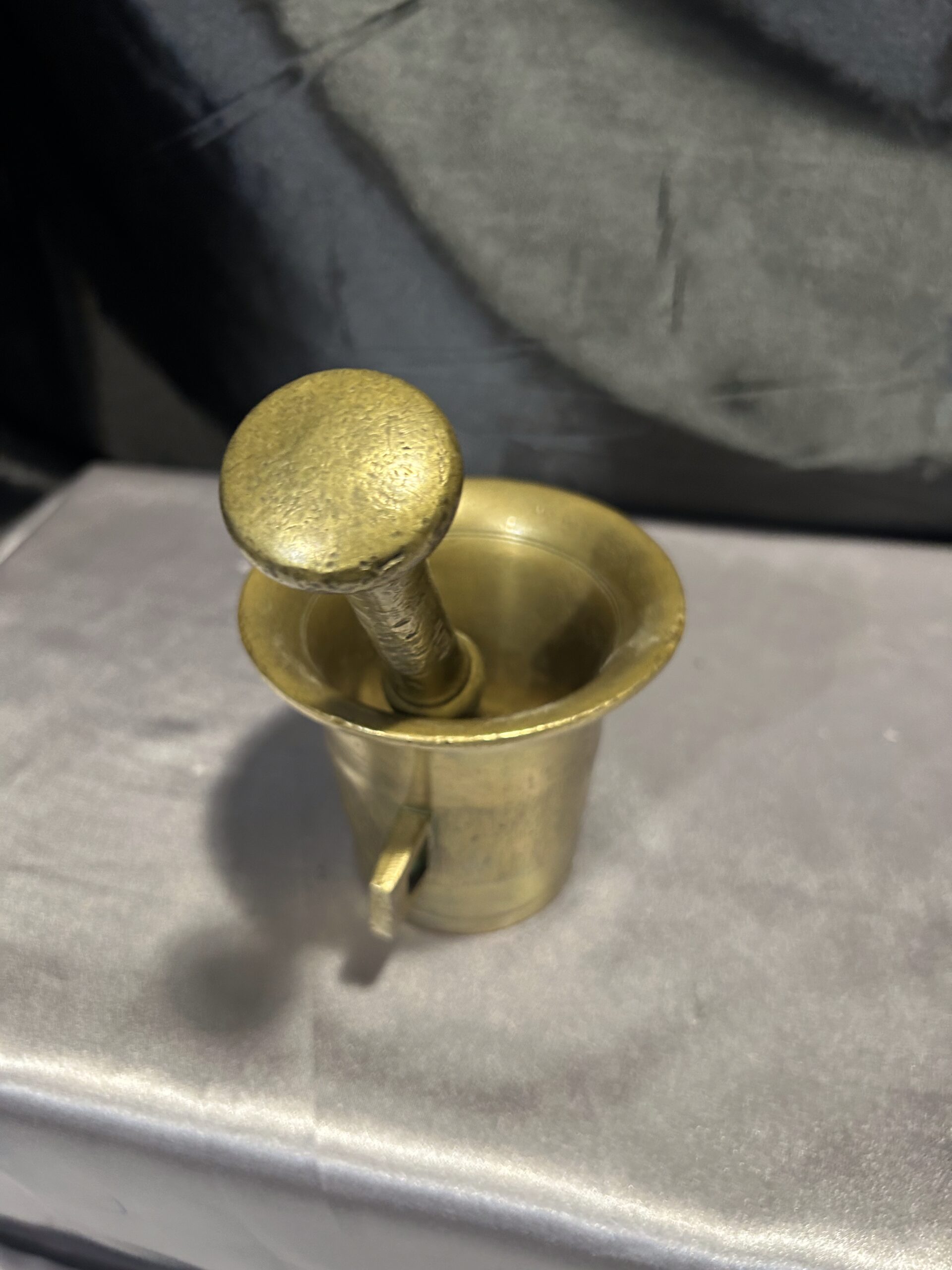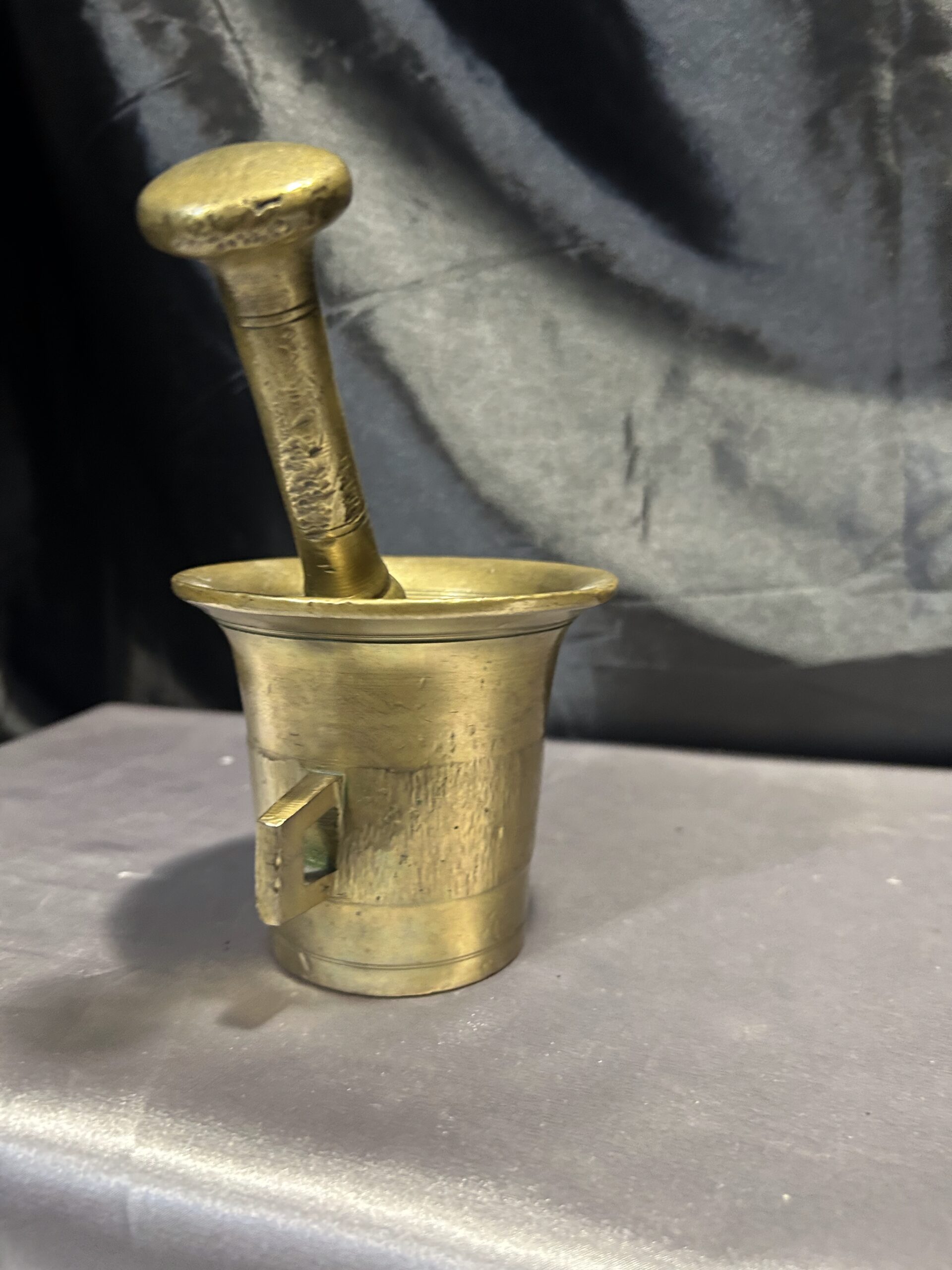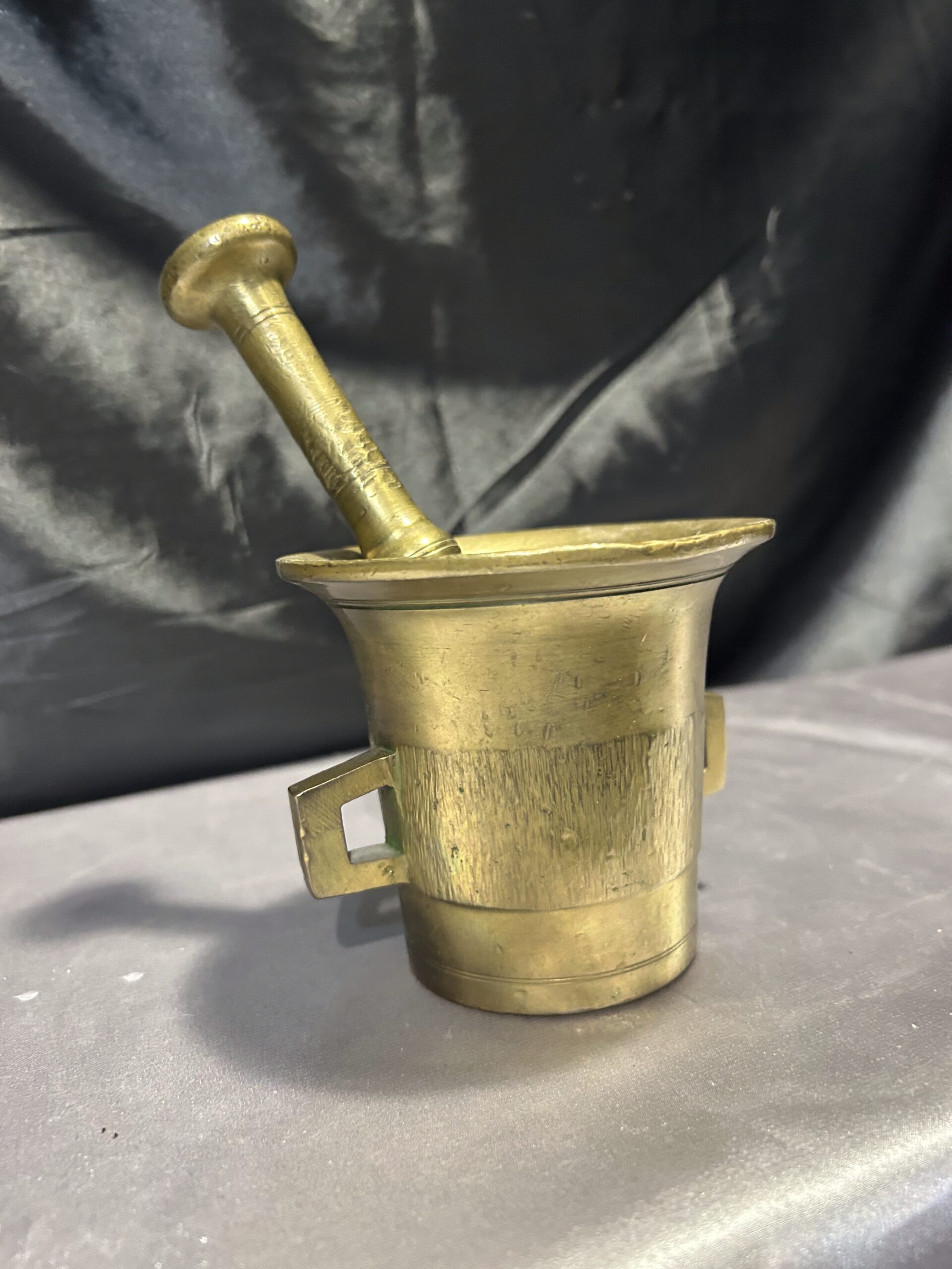 Mosiężny moździerz z tłuczkiem – klasyczny model z uszami