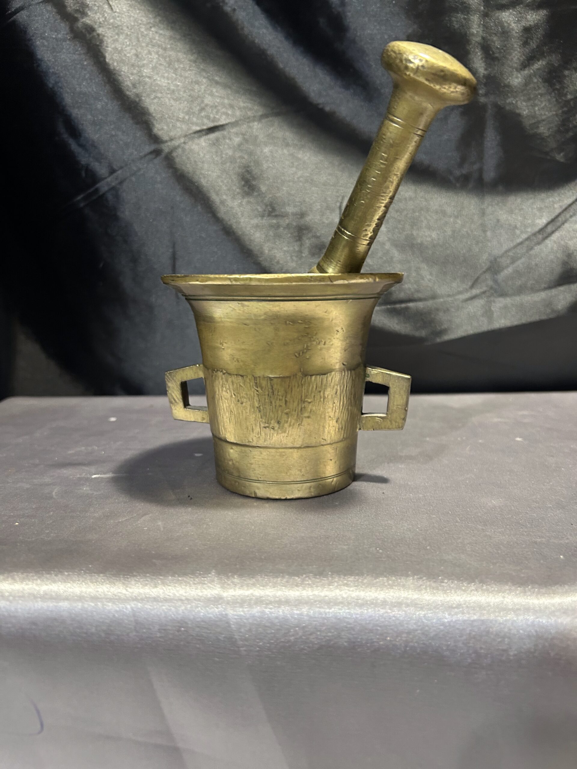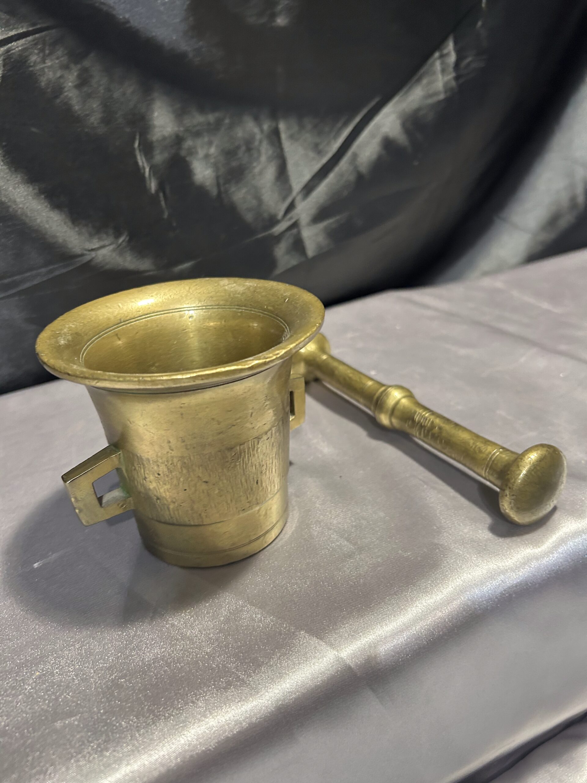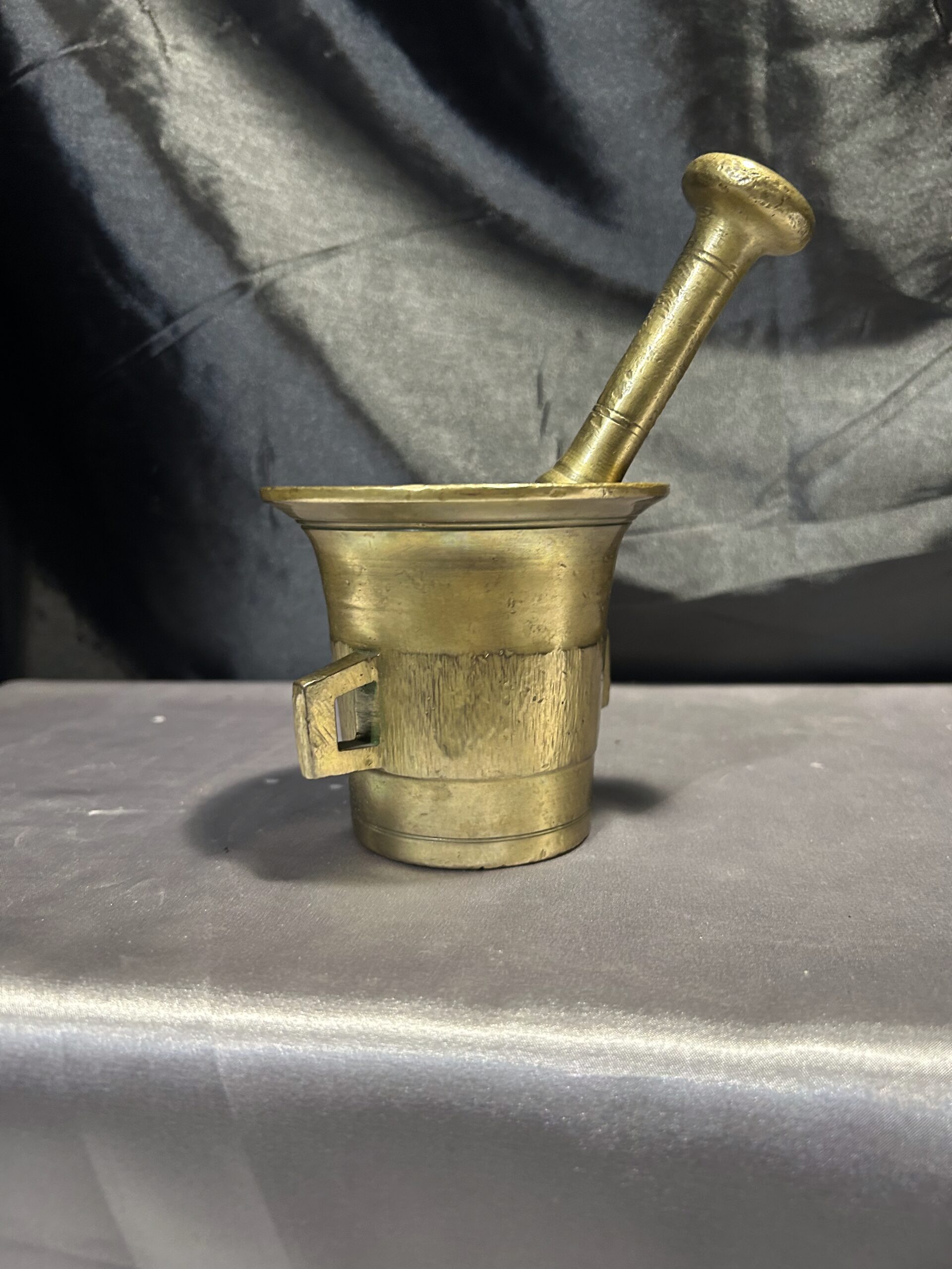 Mosiężny moździerz z tłuczkiem – klasyczny model z uszami