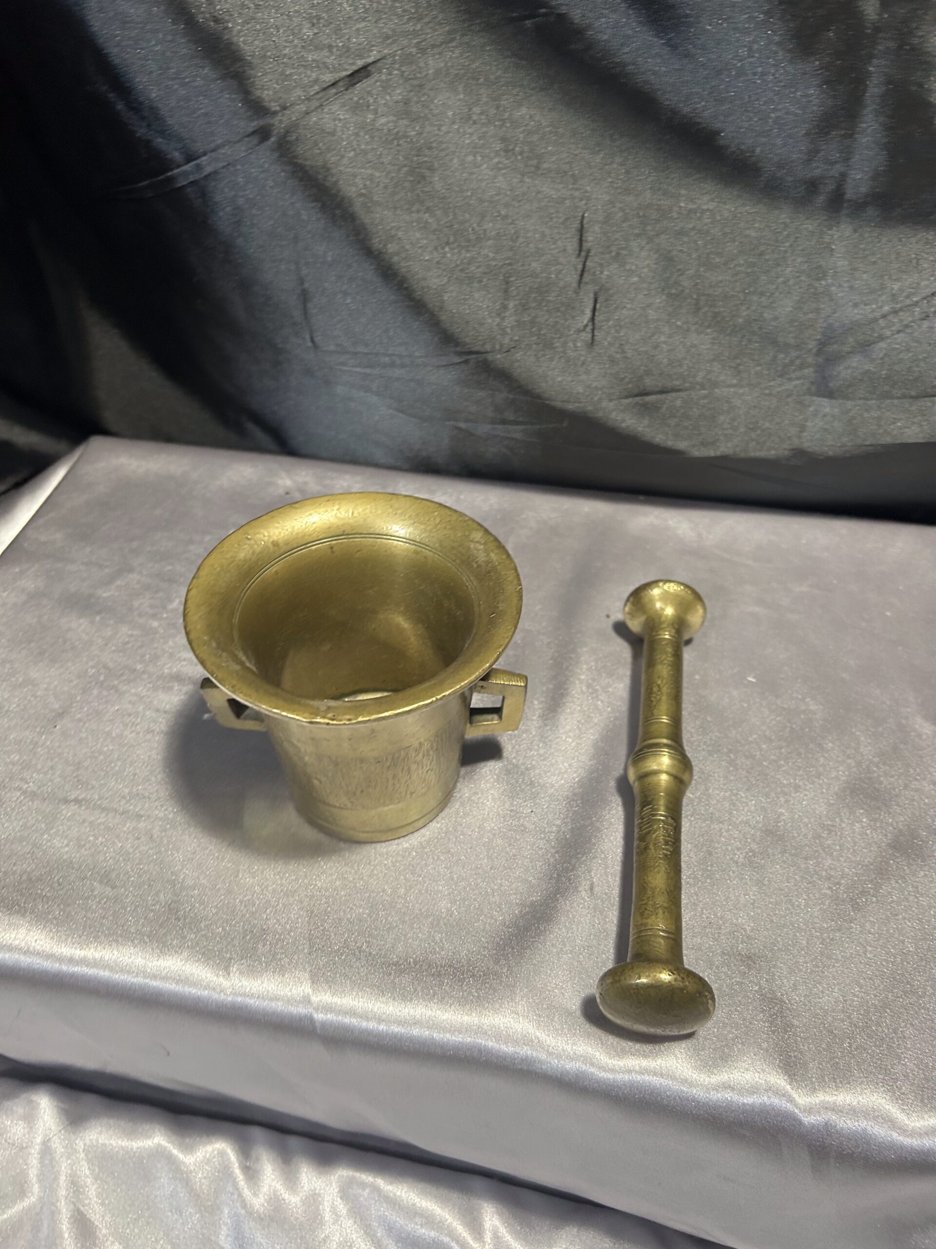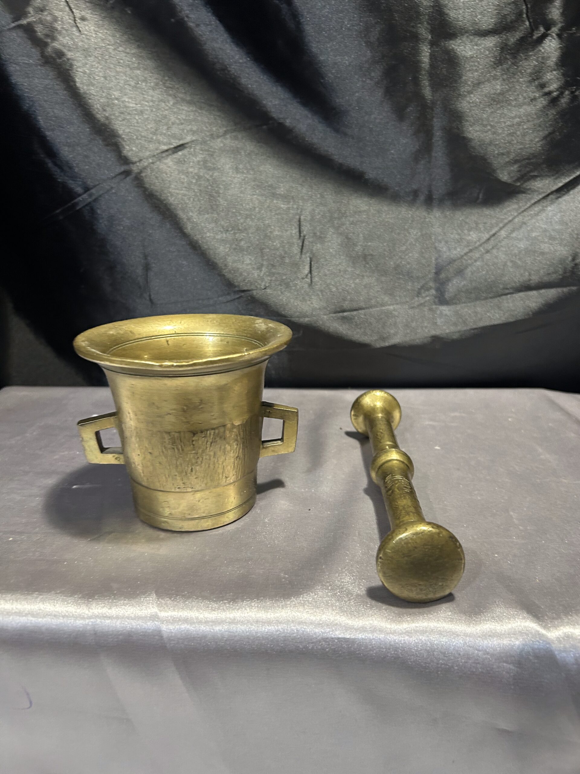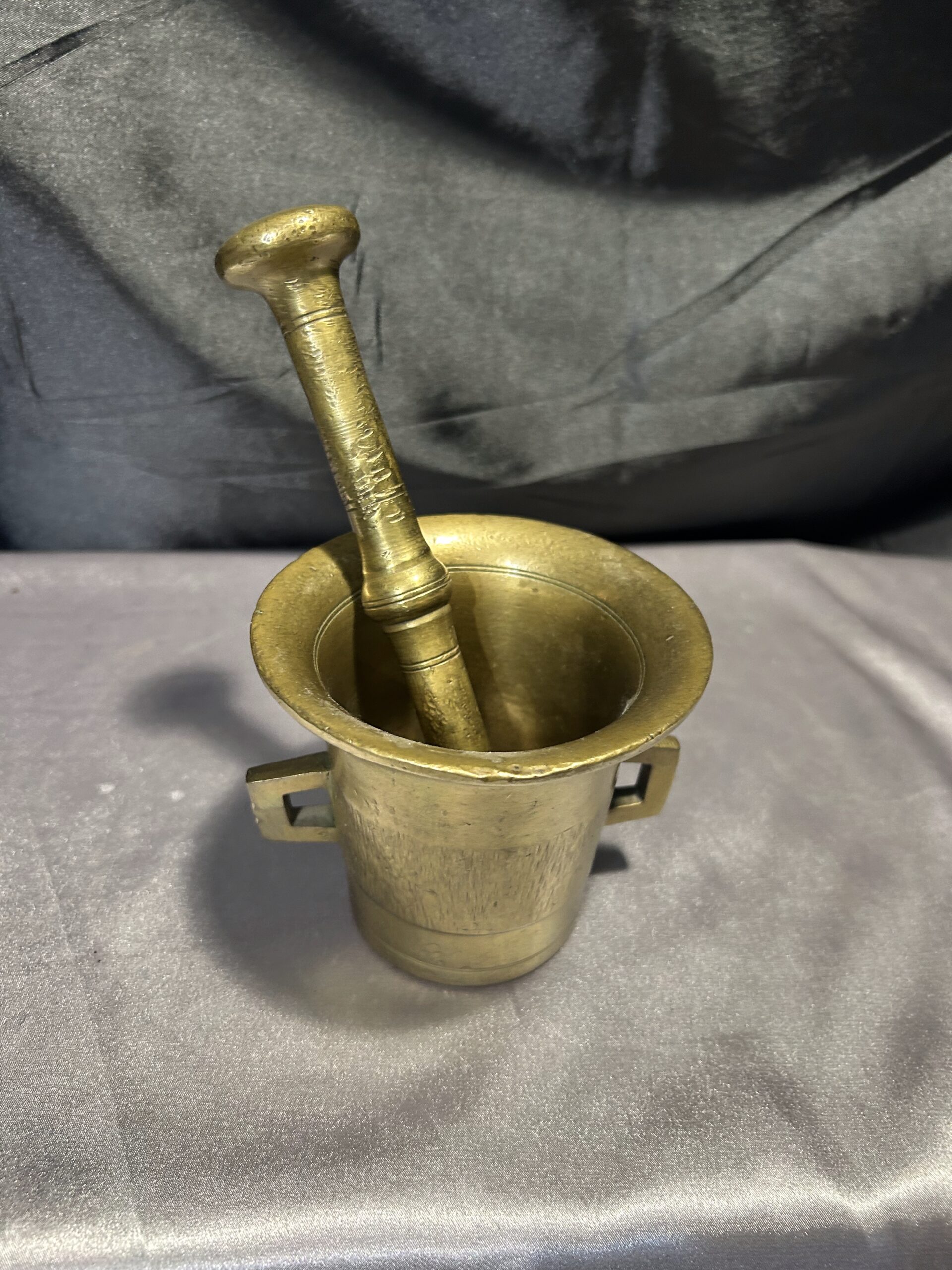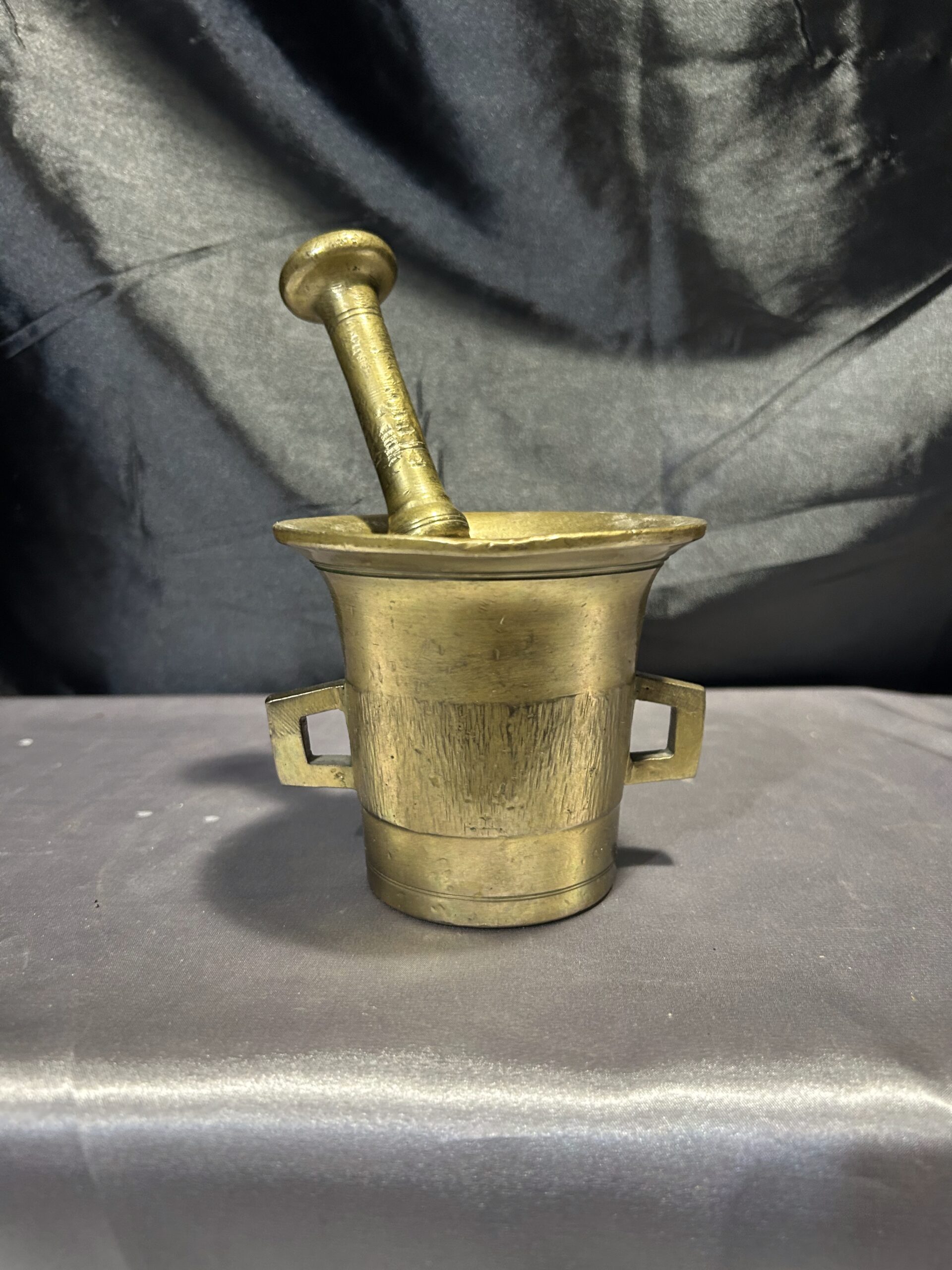 Mosiężny moździerz z tłuczkiem – klasyczny model z uszami