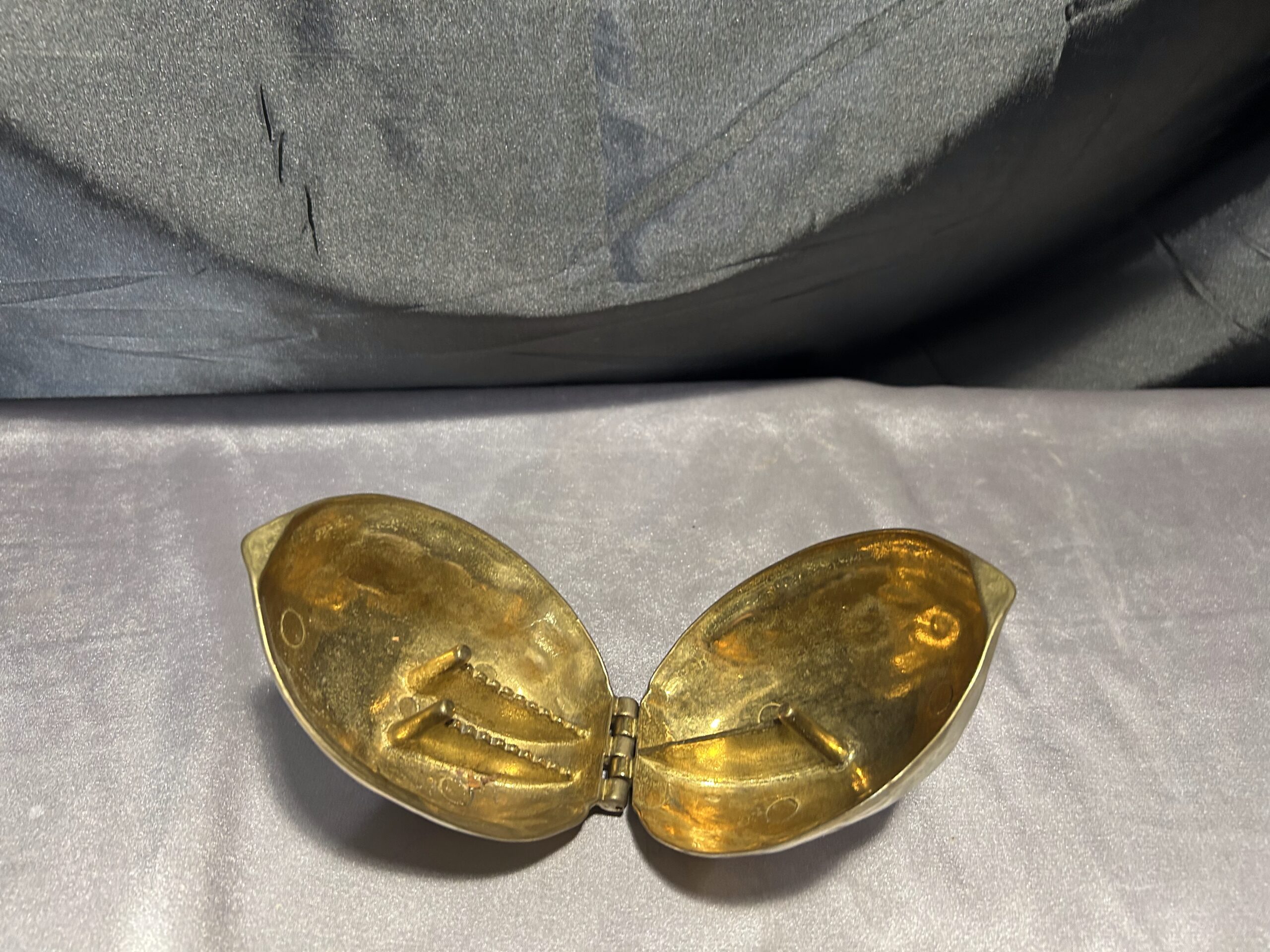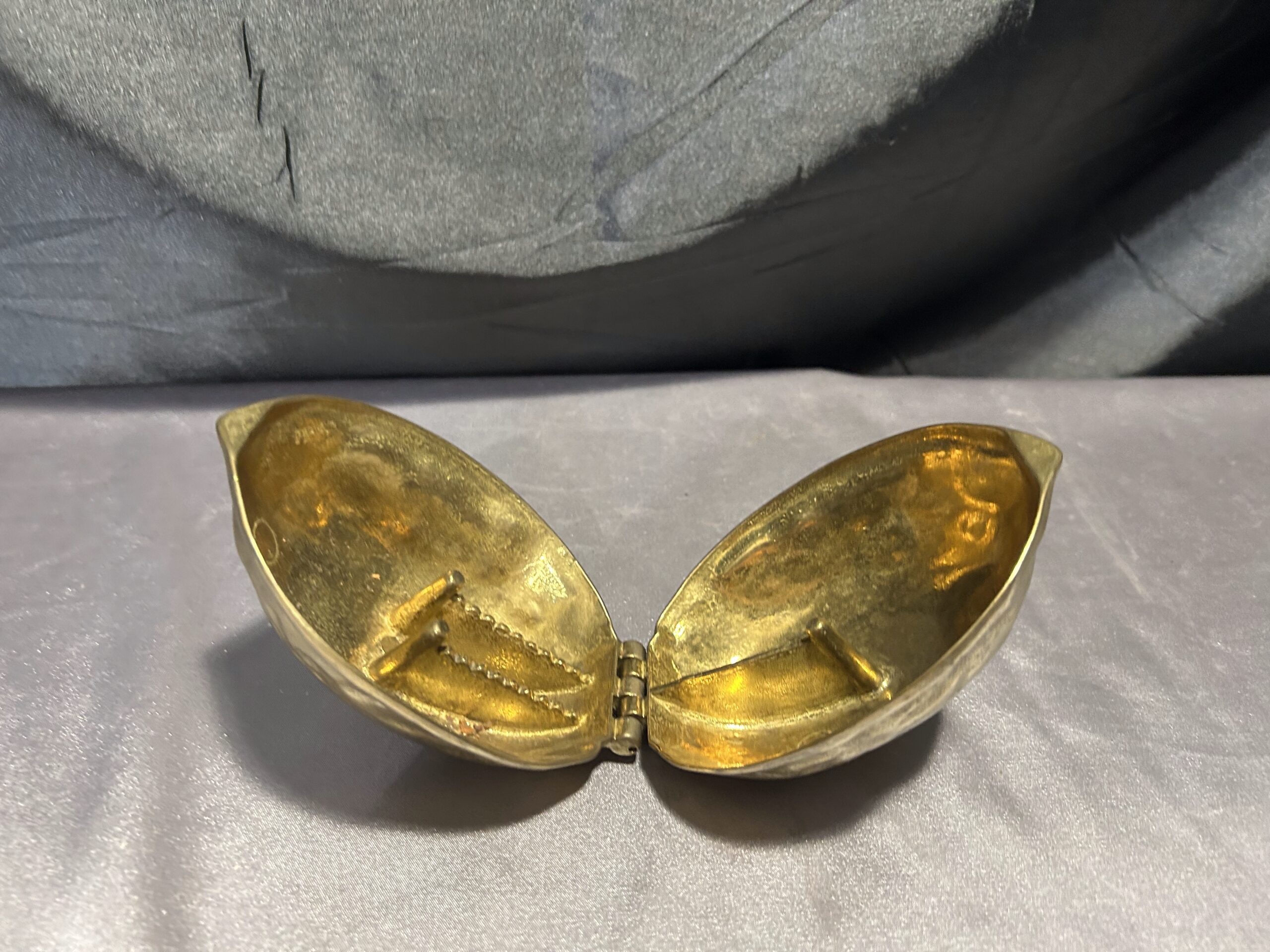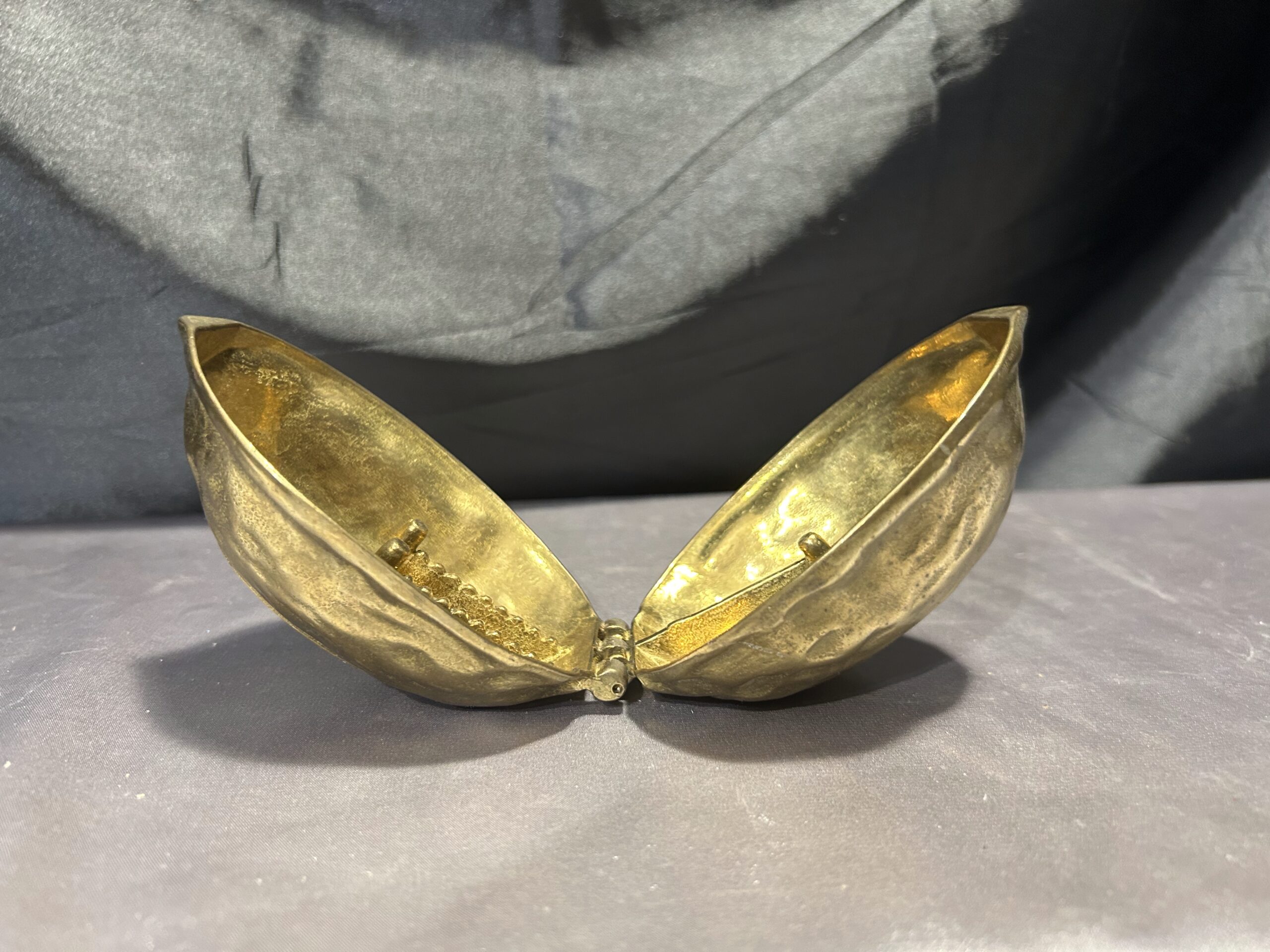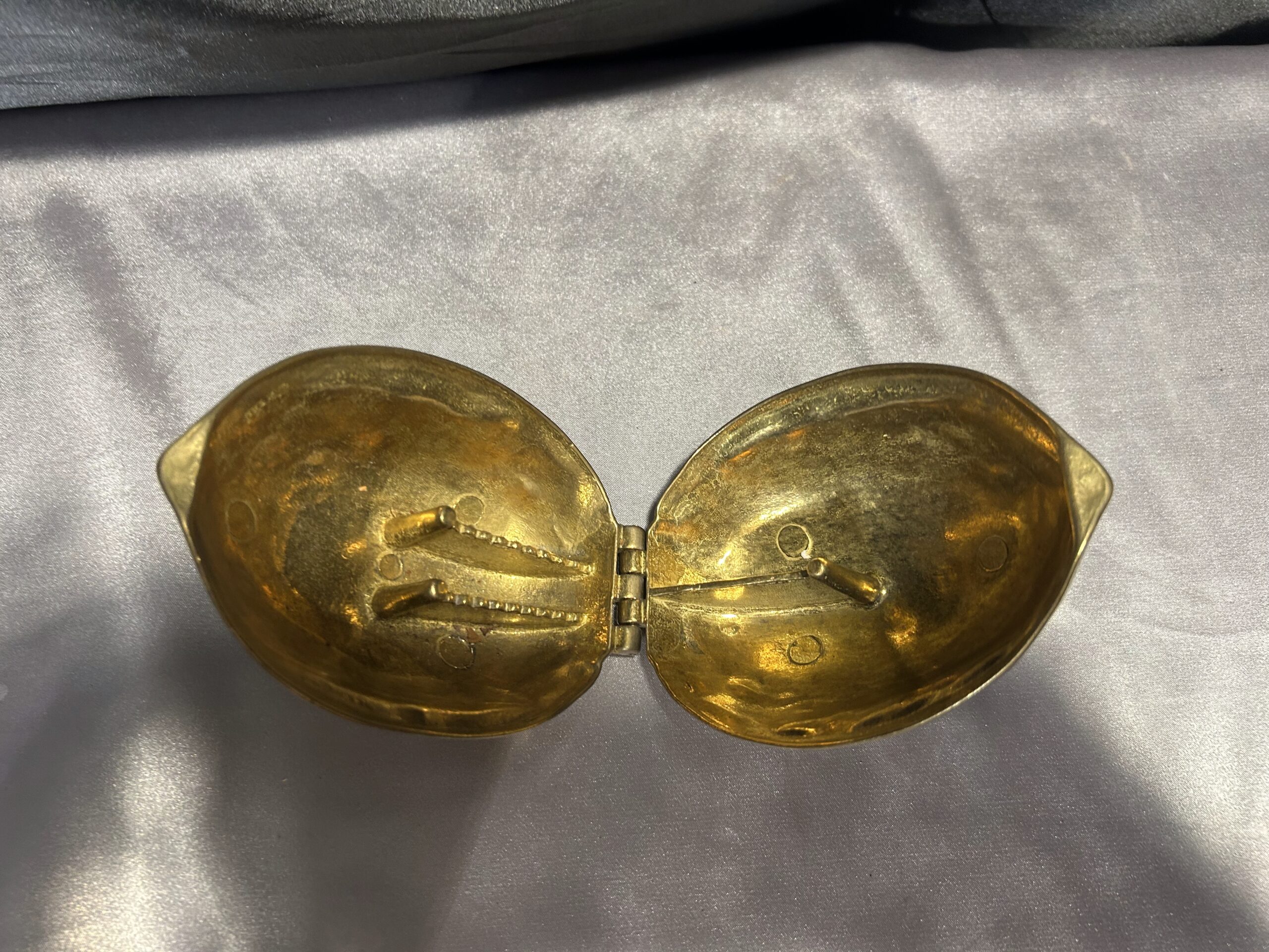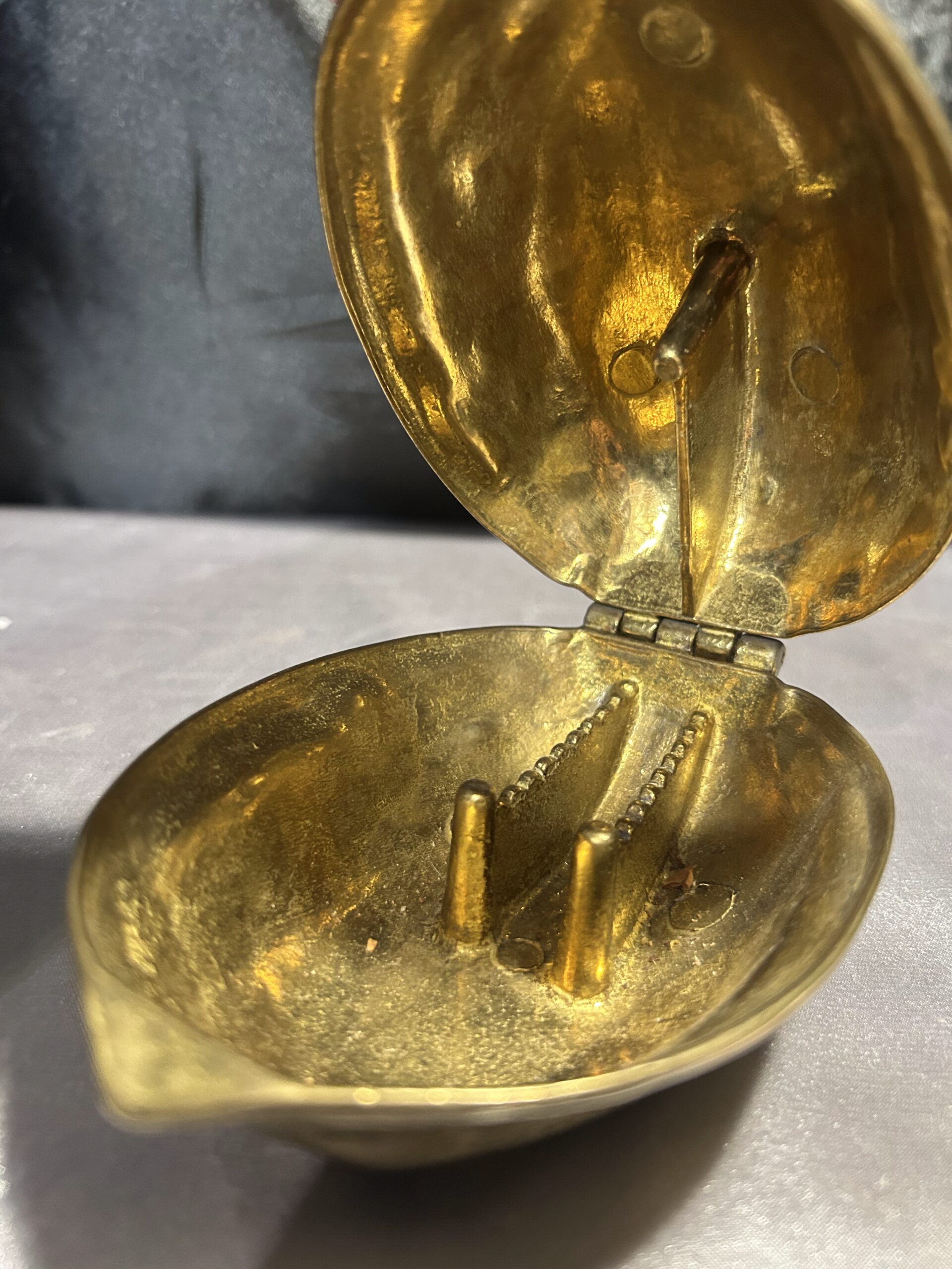 Przedmiotem oferty jest mosiężny dziadek do orzechów w kształcie orzecha, wykonany z solidnego metalu. To nie tylko funkcjonalne narzędzie do rozbijania orzechów, ale również elegancki element dekoracyjny w stylu vintage. Jego masywna konstrukcja zapewnia trwałość i wygodę użytkowania, a unikalny design sprawia, że jest to również ciekawy przedmiot kolekcjonerski.