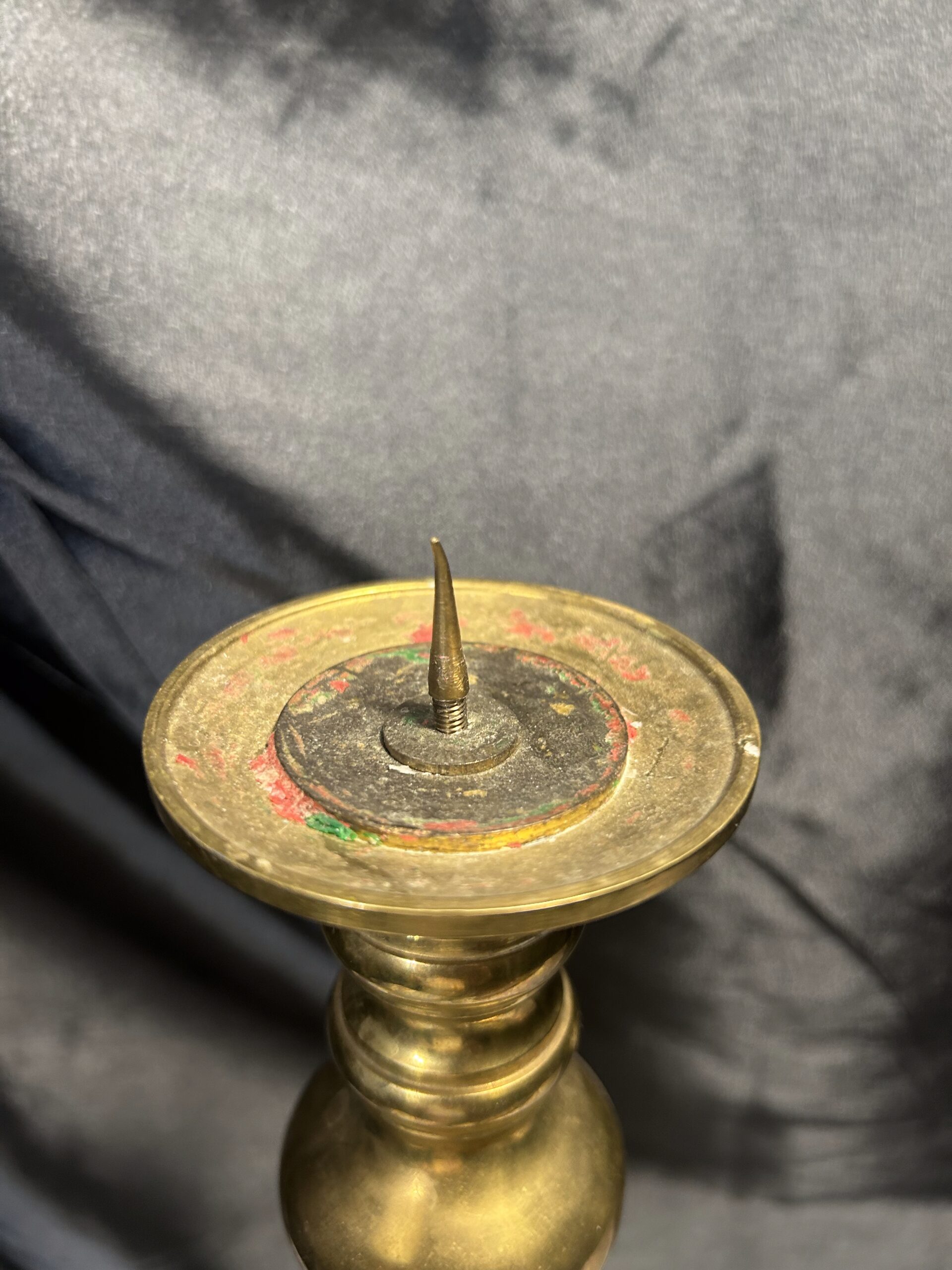 Mosiężny świecznik – lichtarz na gromnicę ze szpikulcem