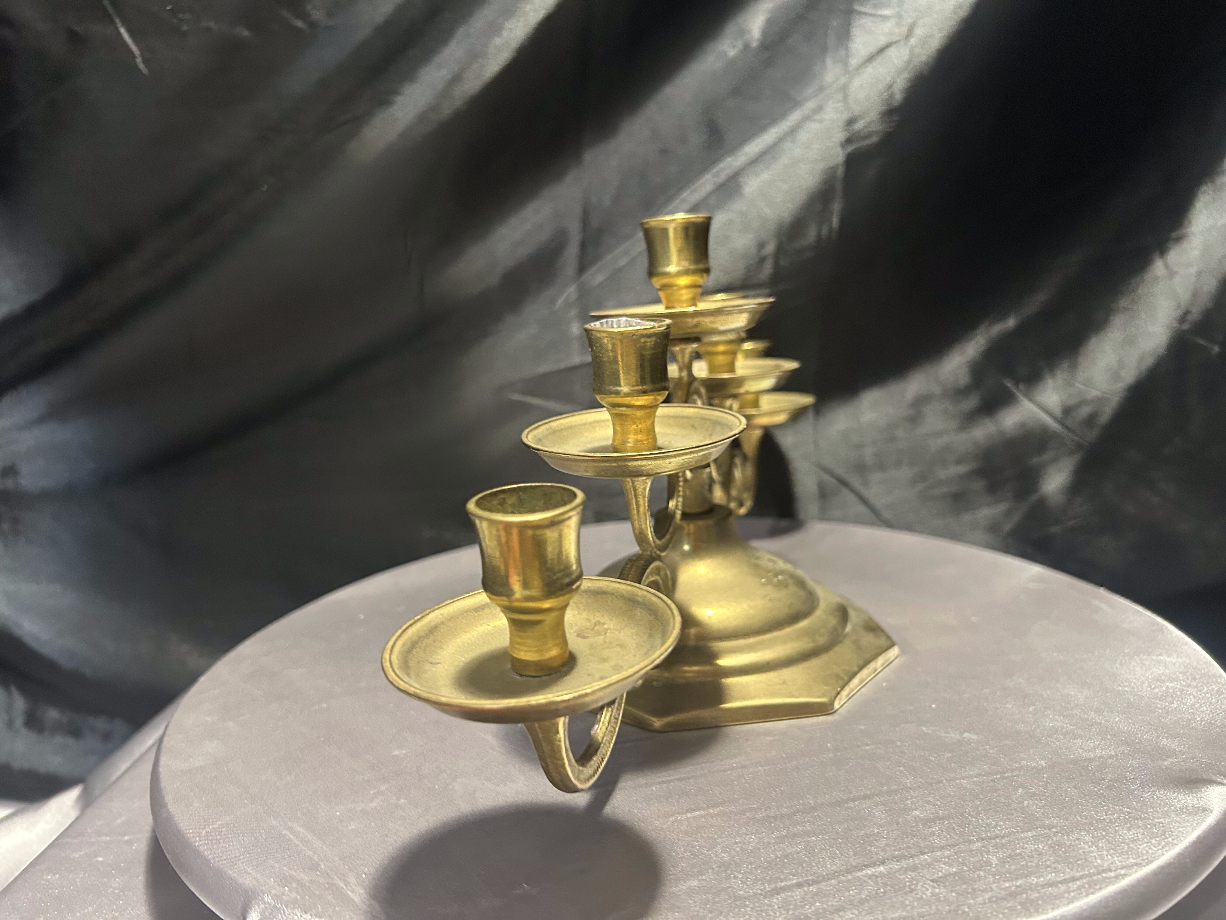 Efektowny świecznik wykonany z mosiądzu, przeznaczony na pięć świec. Jego klasyczna forma została wzbogacona dekoracyjnymi detalami, które podkreślają kunszt rzemiosła i nadają całości wytwornego charakteru. Solidna konstrukcja oraz szeroka podstawa zapewniają stabilność, a złocisty odcień mosiądzu pięknie odbija światło świec, tworząc nastrojową atmosferę. Idealny jako ozdoba stołu, komody lub kominka.