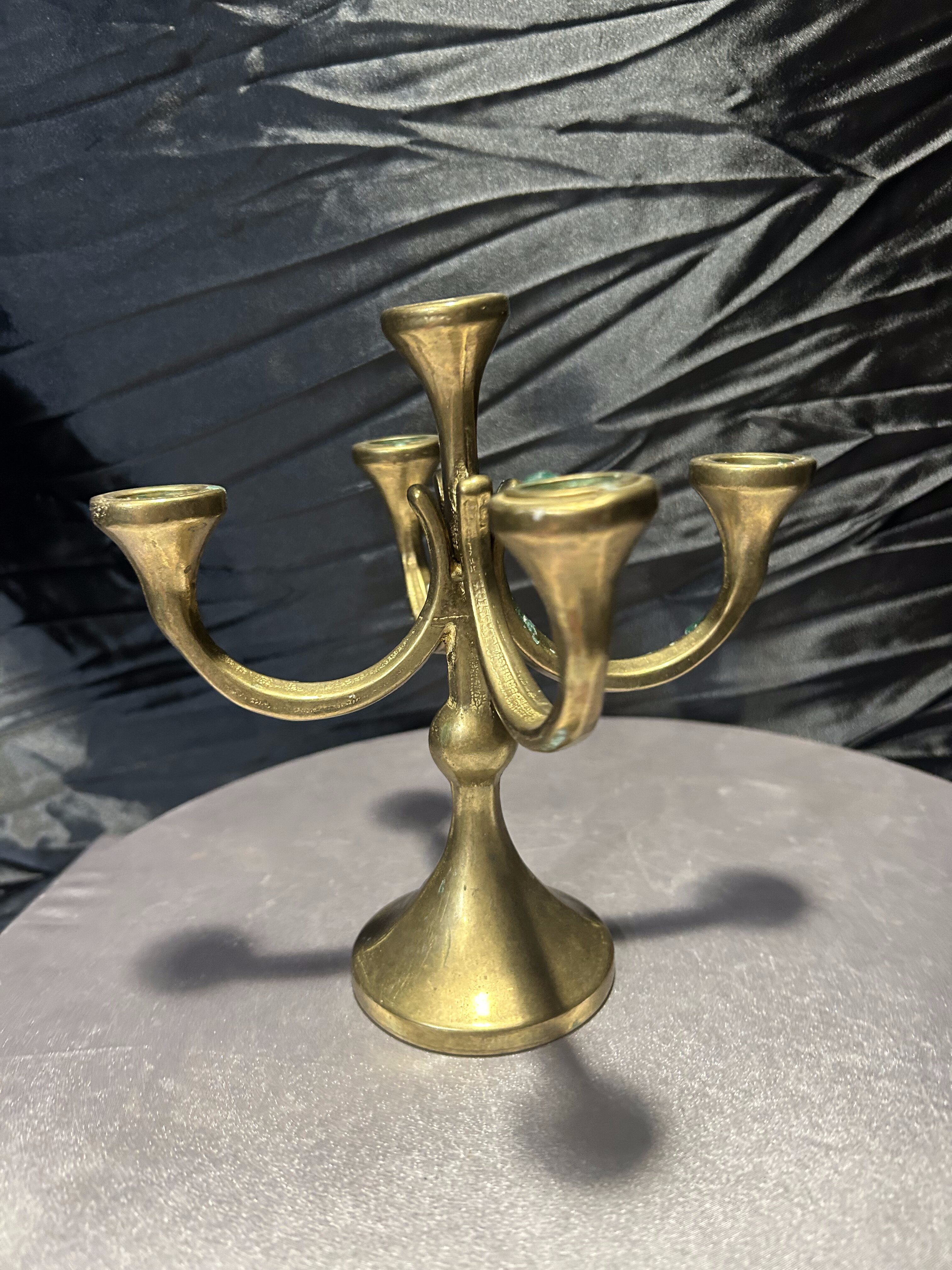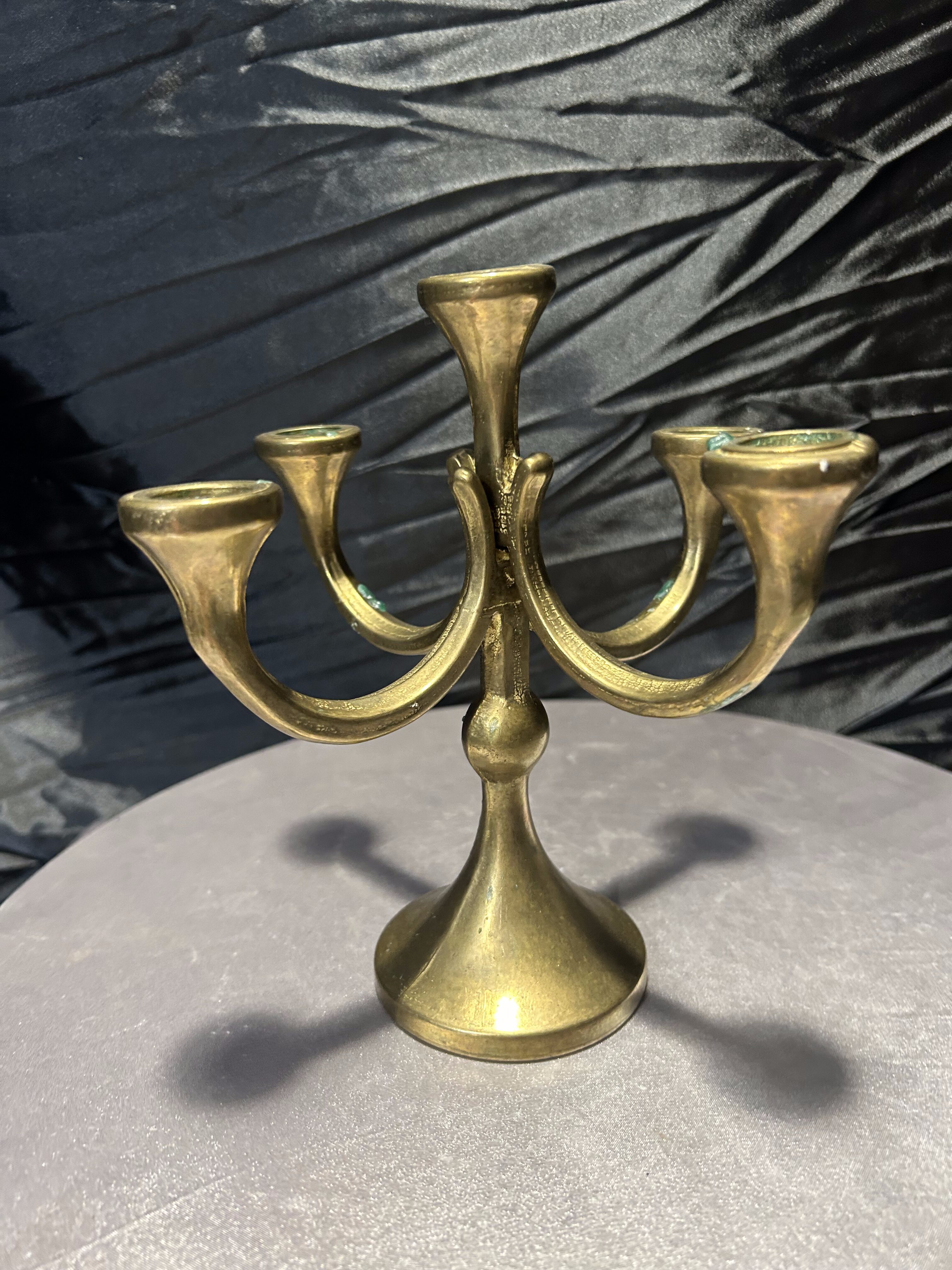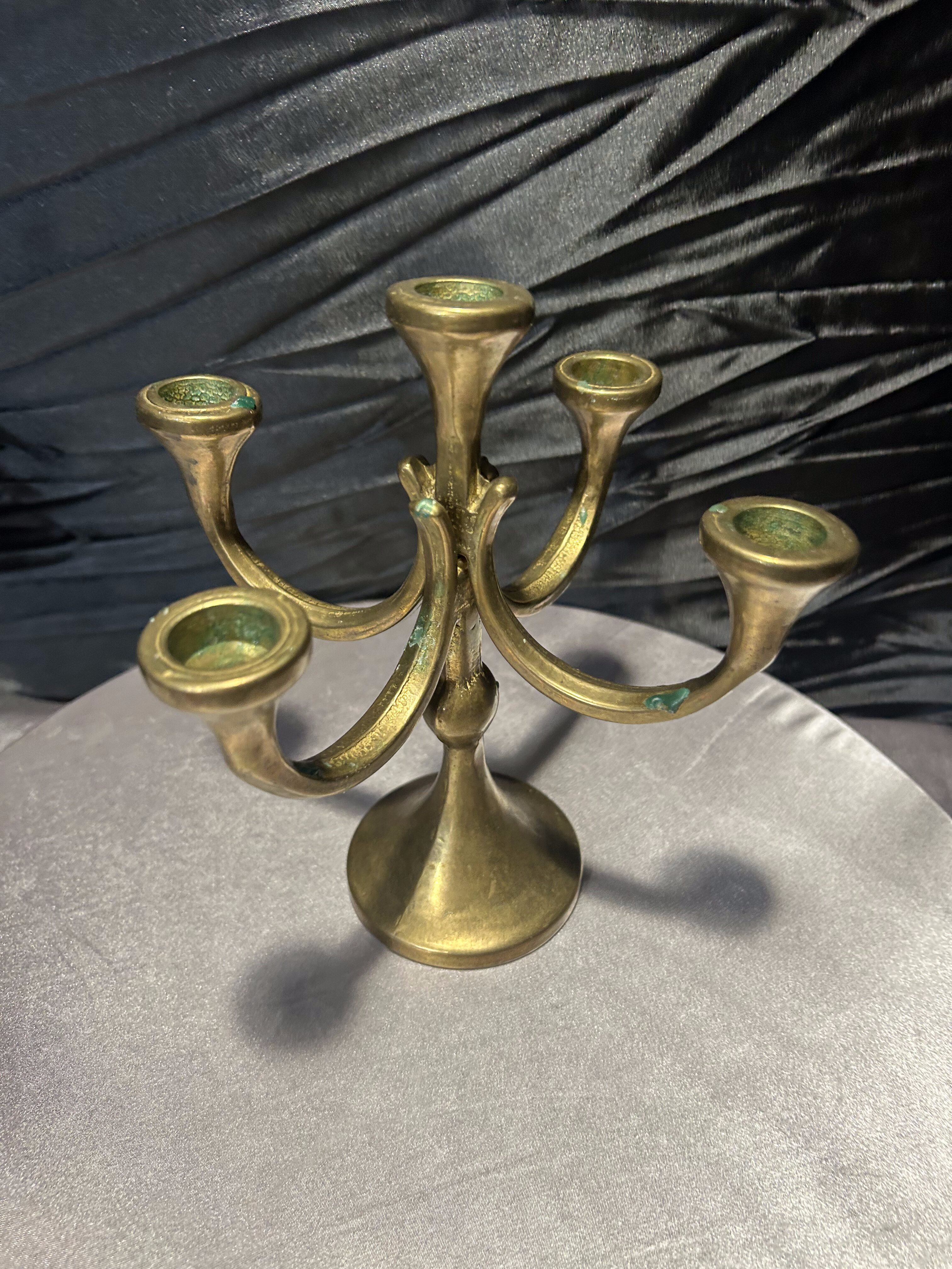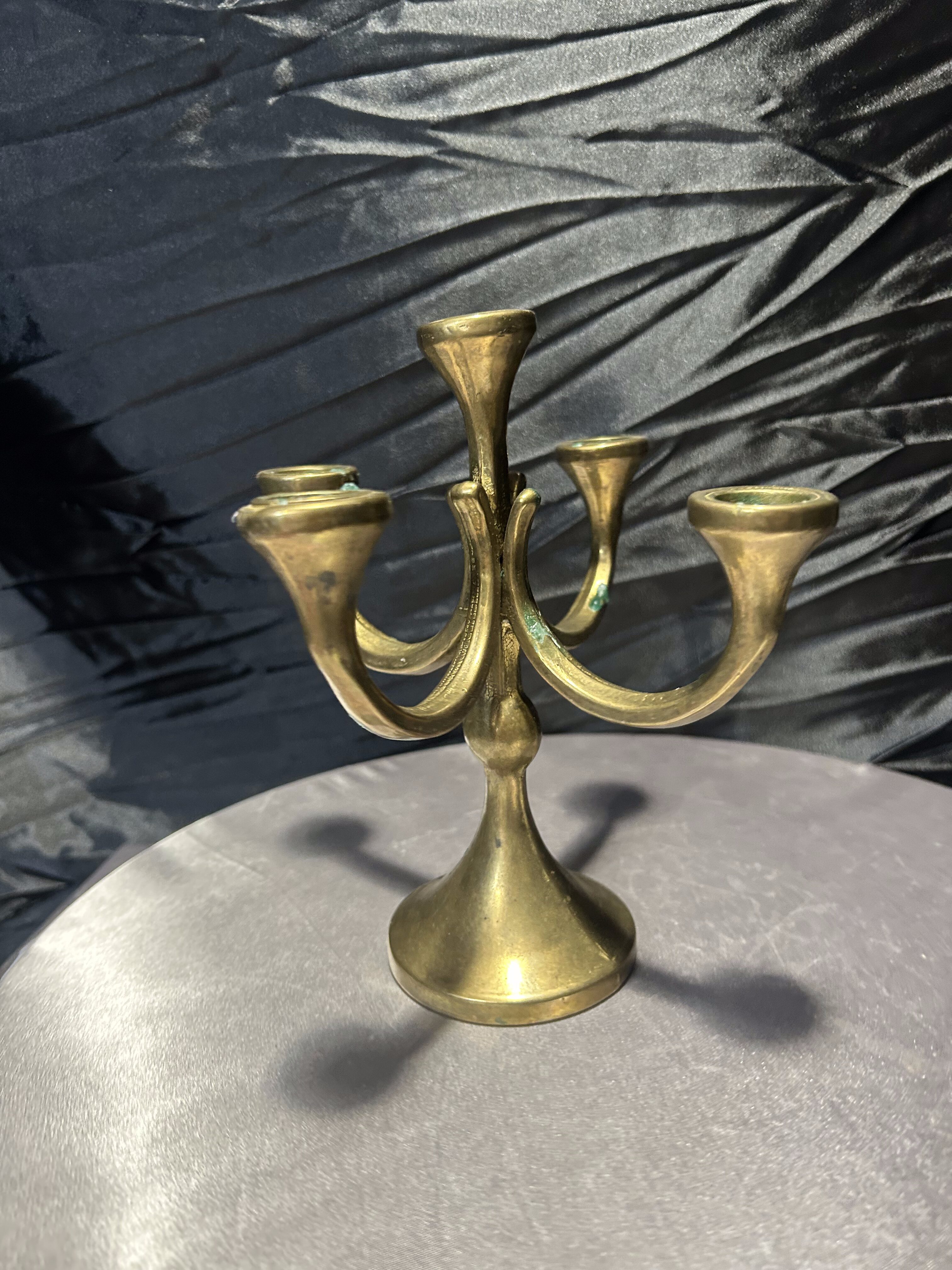 - Mosiężny świecznik na 5 świec – klasyczna forma – elegancka dekoracja