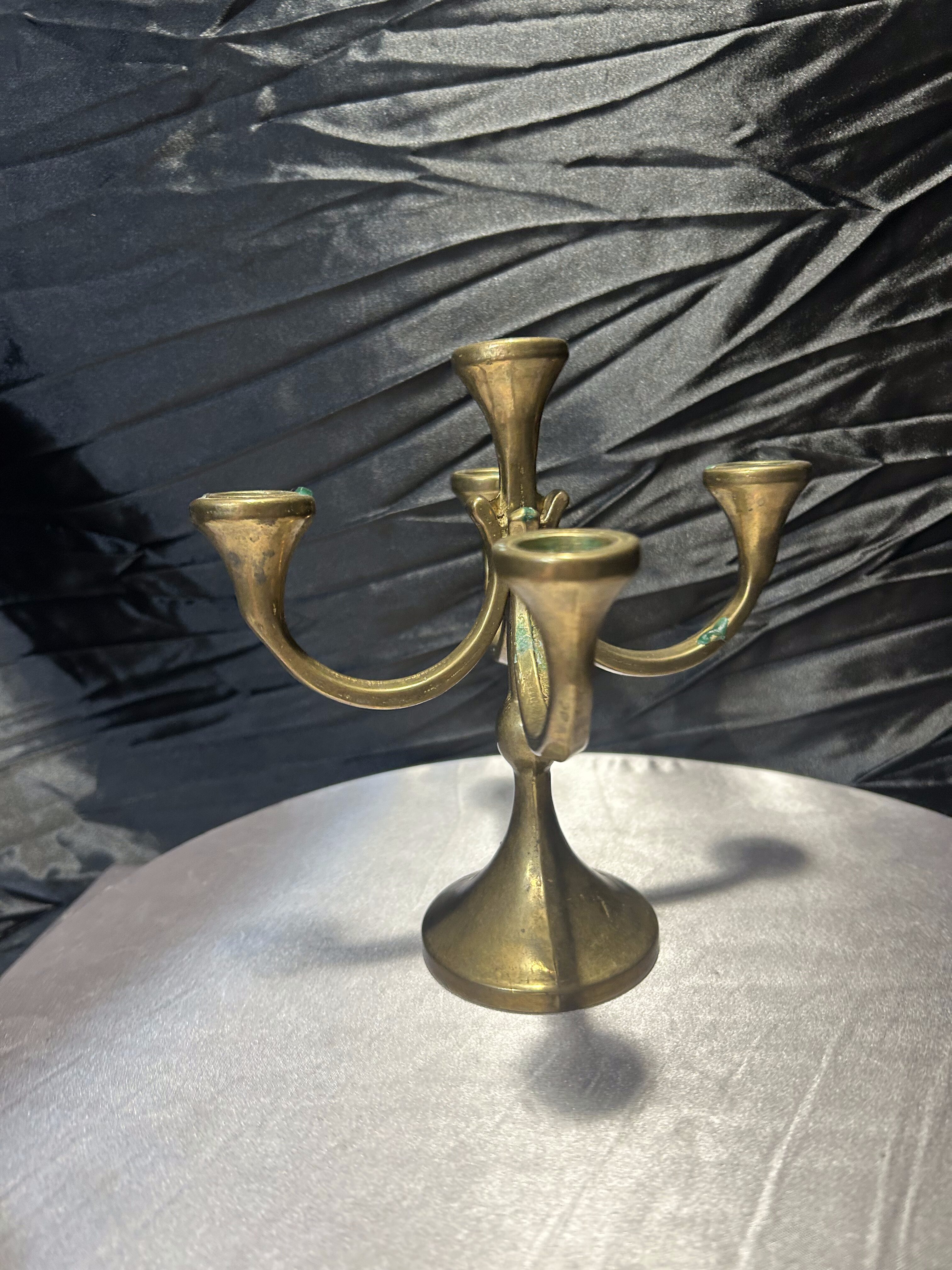 Solidny świecznik wykonany z mosiądzu, mieszczący pięć świec na czterech ramionach. Prosty, a zarazem elegancki design sprawia, że doskonale komponuje się zarówno z tradycyjnymi, jak i nowoczesnymi wnętrzami. Dzięki swojej stabilnej podstawie i pięknym proporcjom, świecznik nie tylko podkreśli uroczysty charakter stołu, ale także stanie się efektowną ozdobą komody czy witryny.
