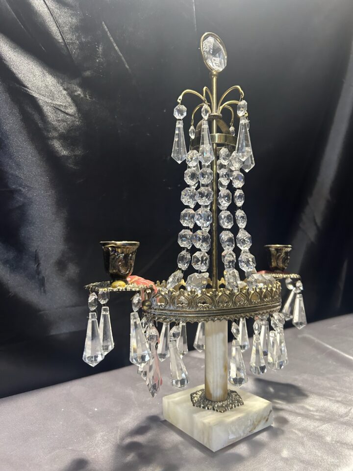 Świecznik kryształowy z mosiądzu i onyksu – elegancja i blask!