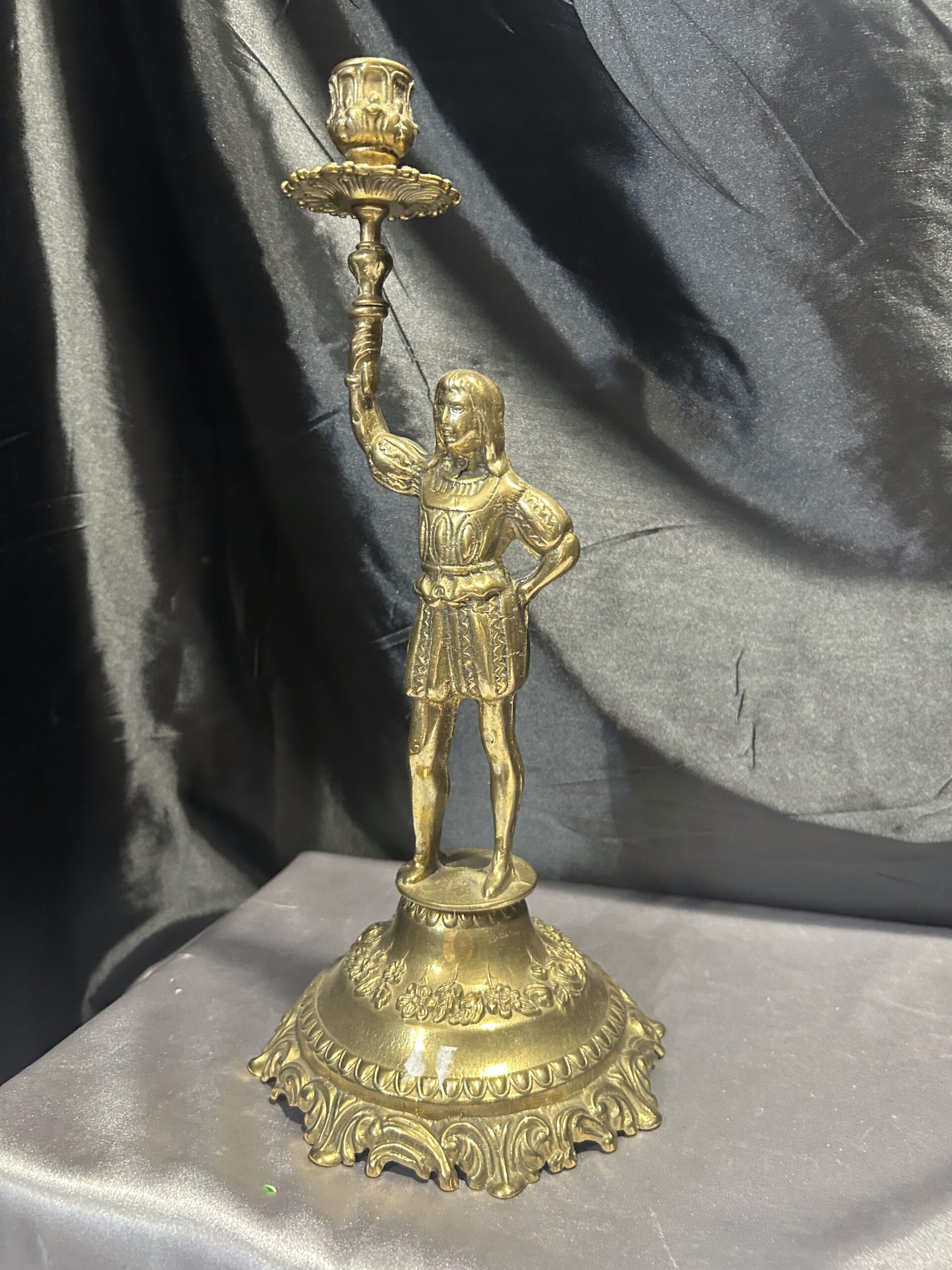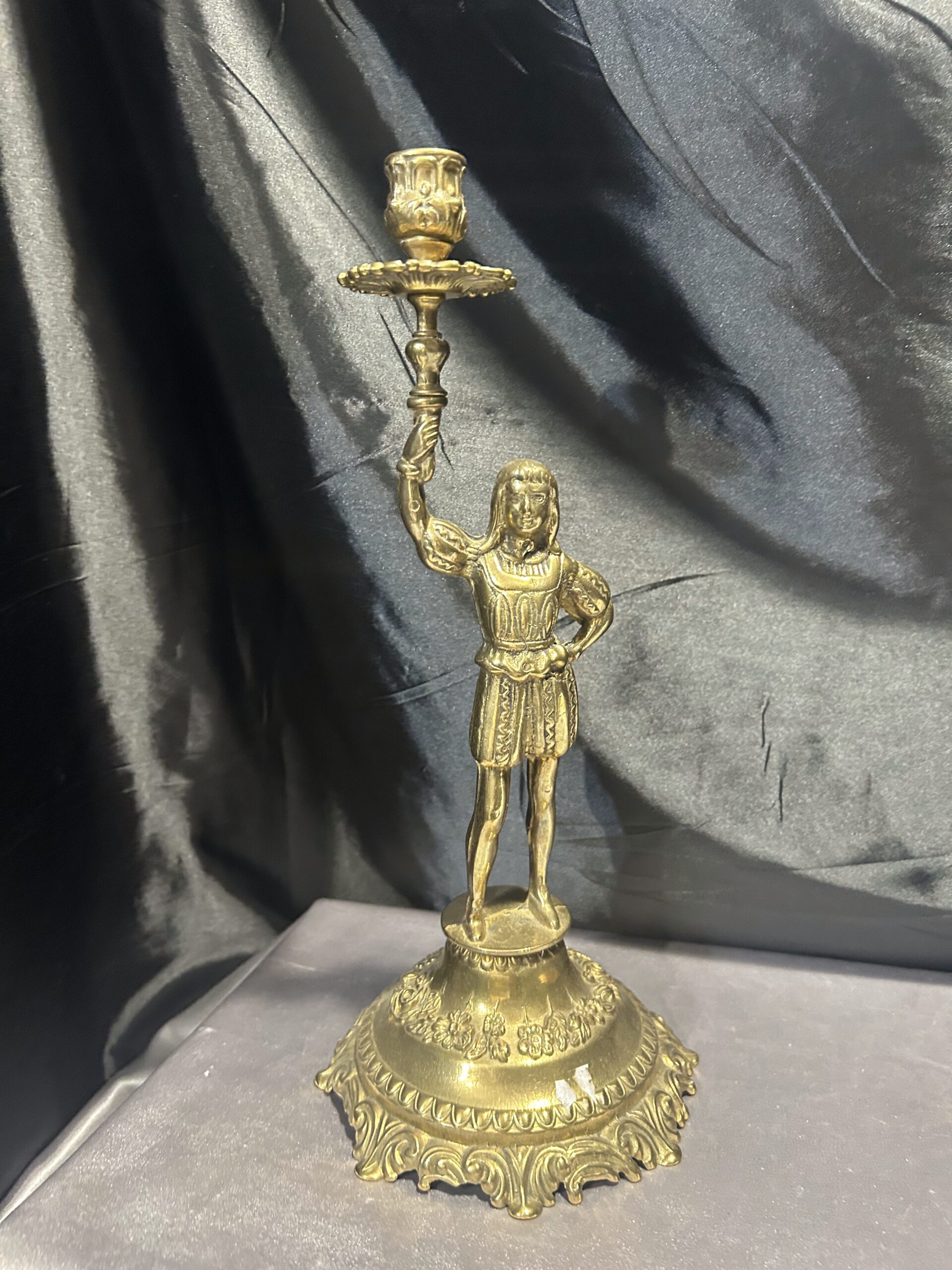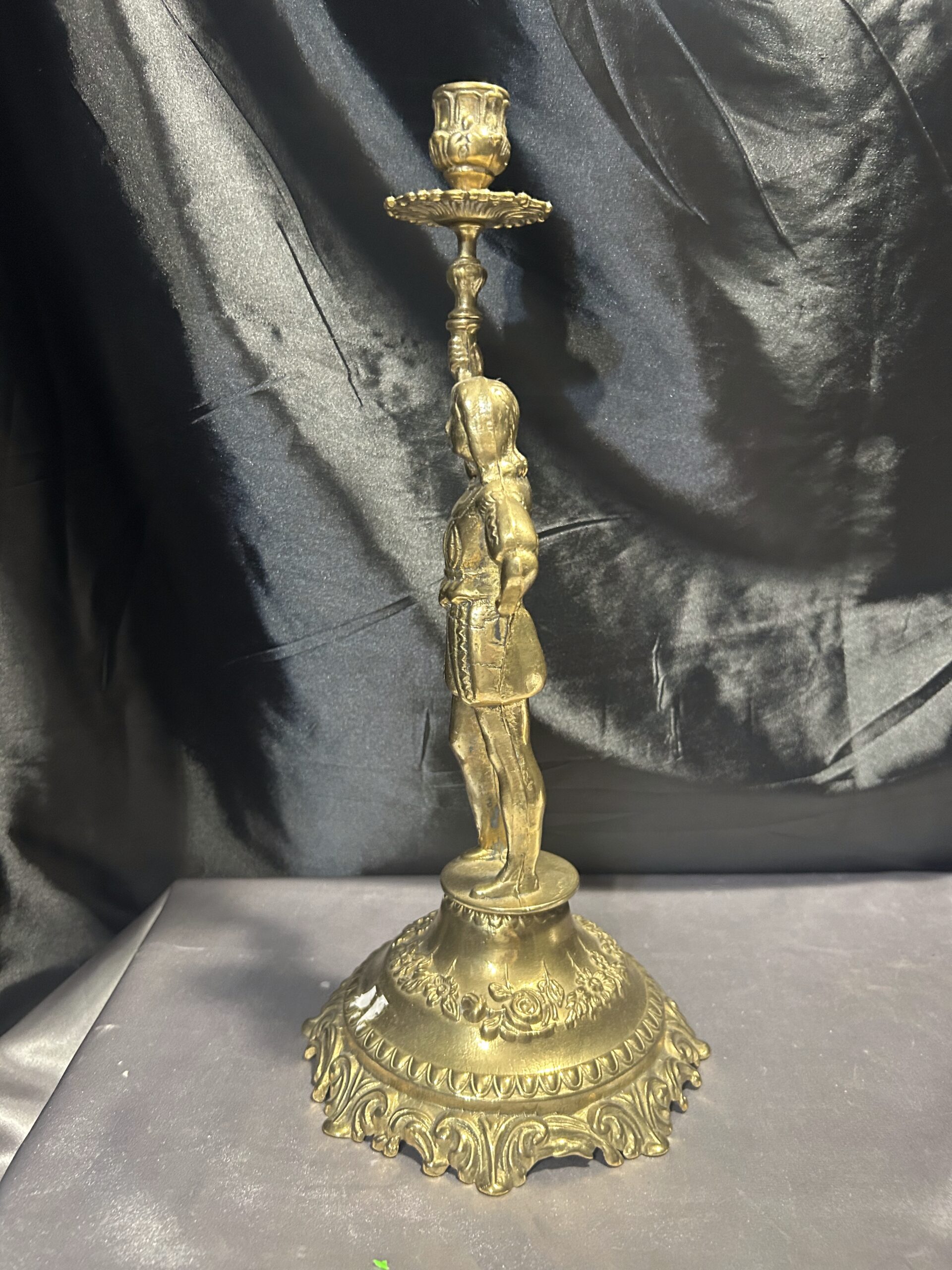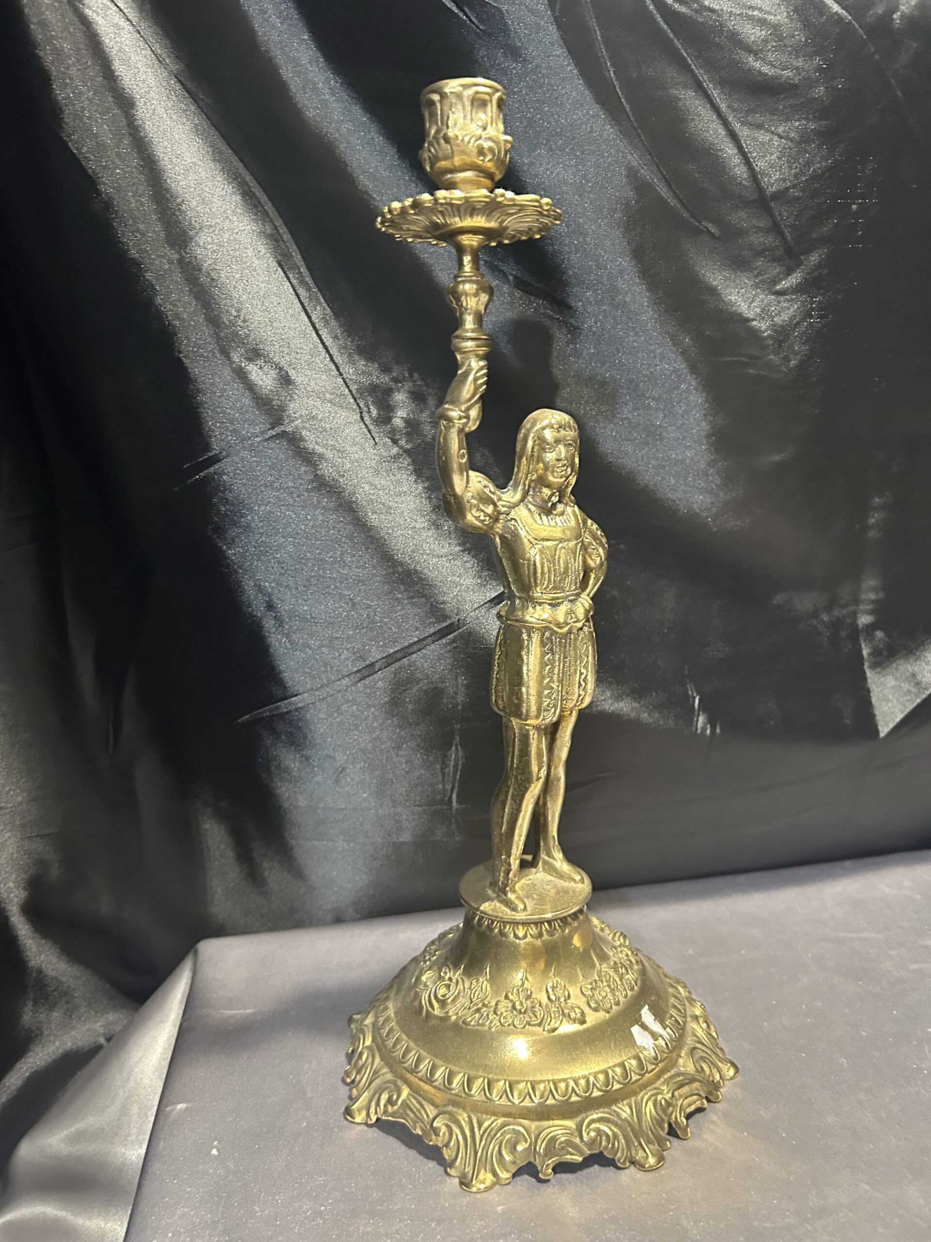 Mosiężny świecznik „Paź” – elegancka rzeźba z postumentem na świecę