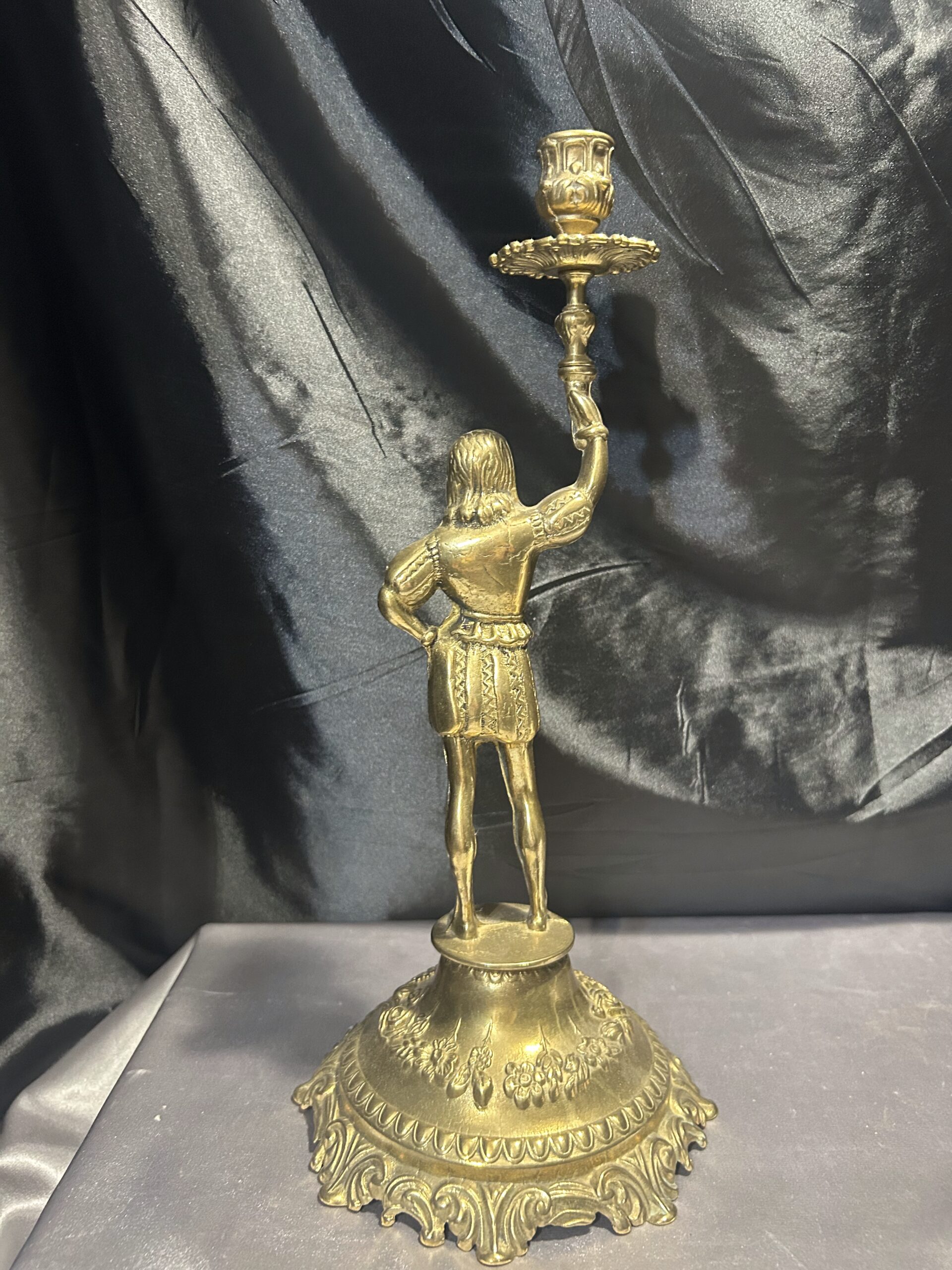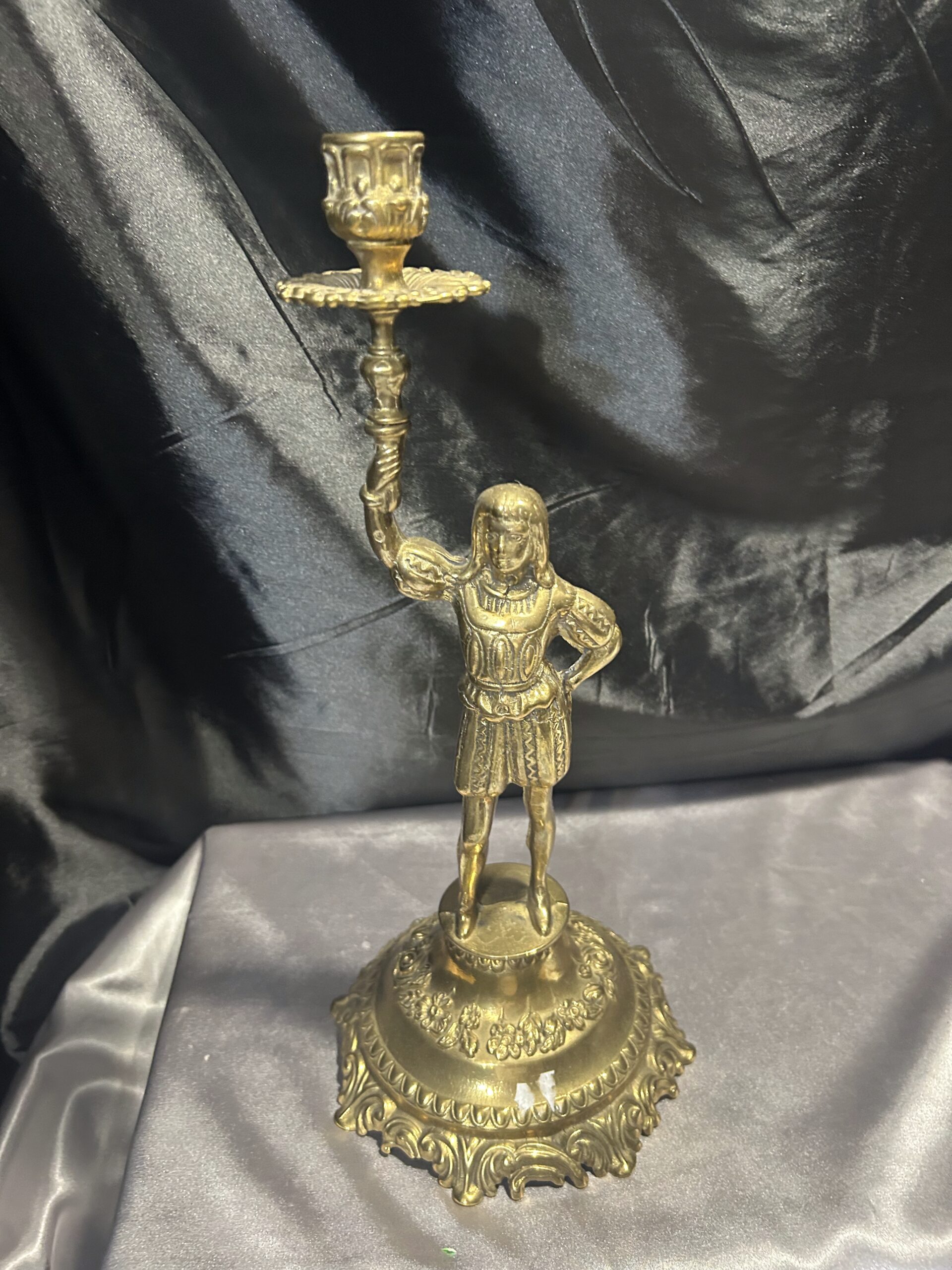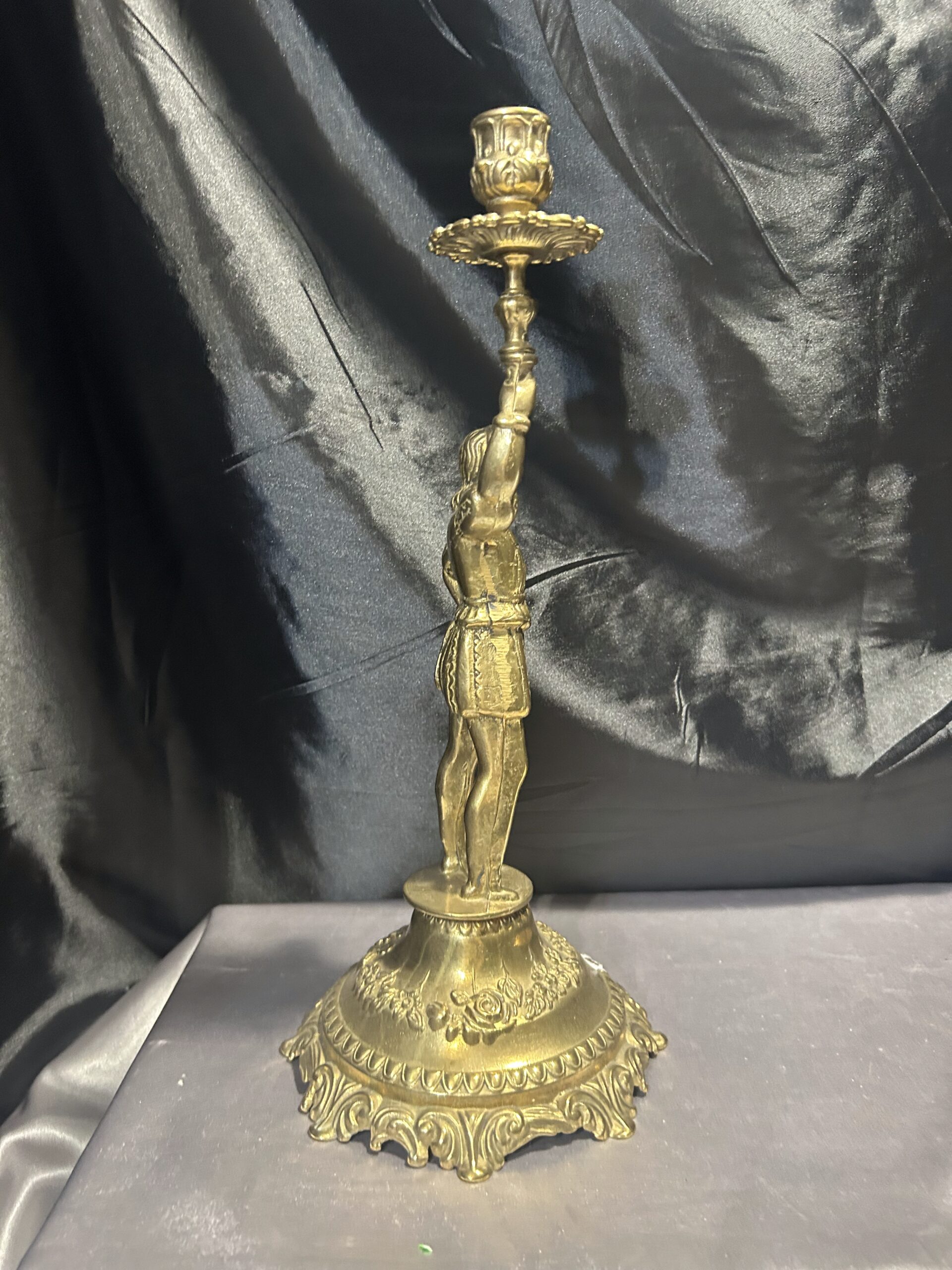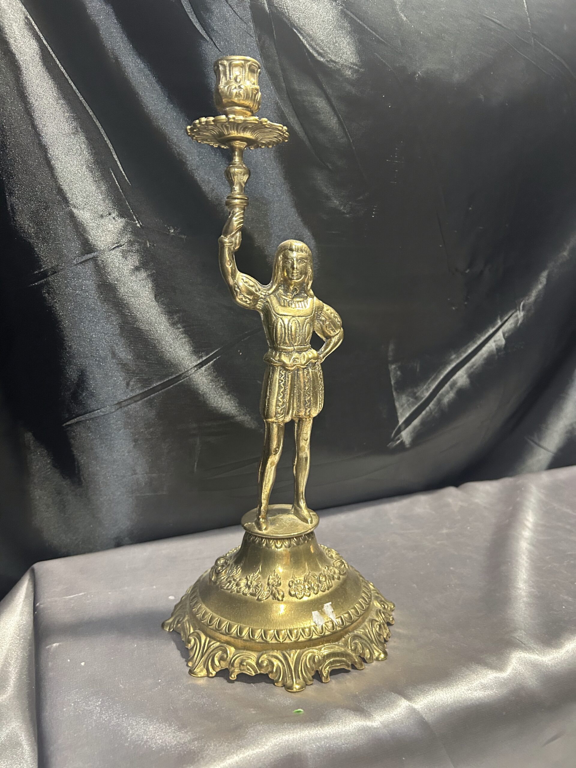 Mosiężny świecznik „Paź” – elegancka rzeźba z postumentem na świecę