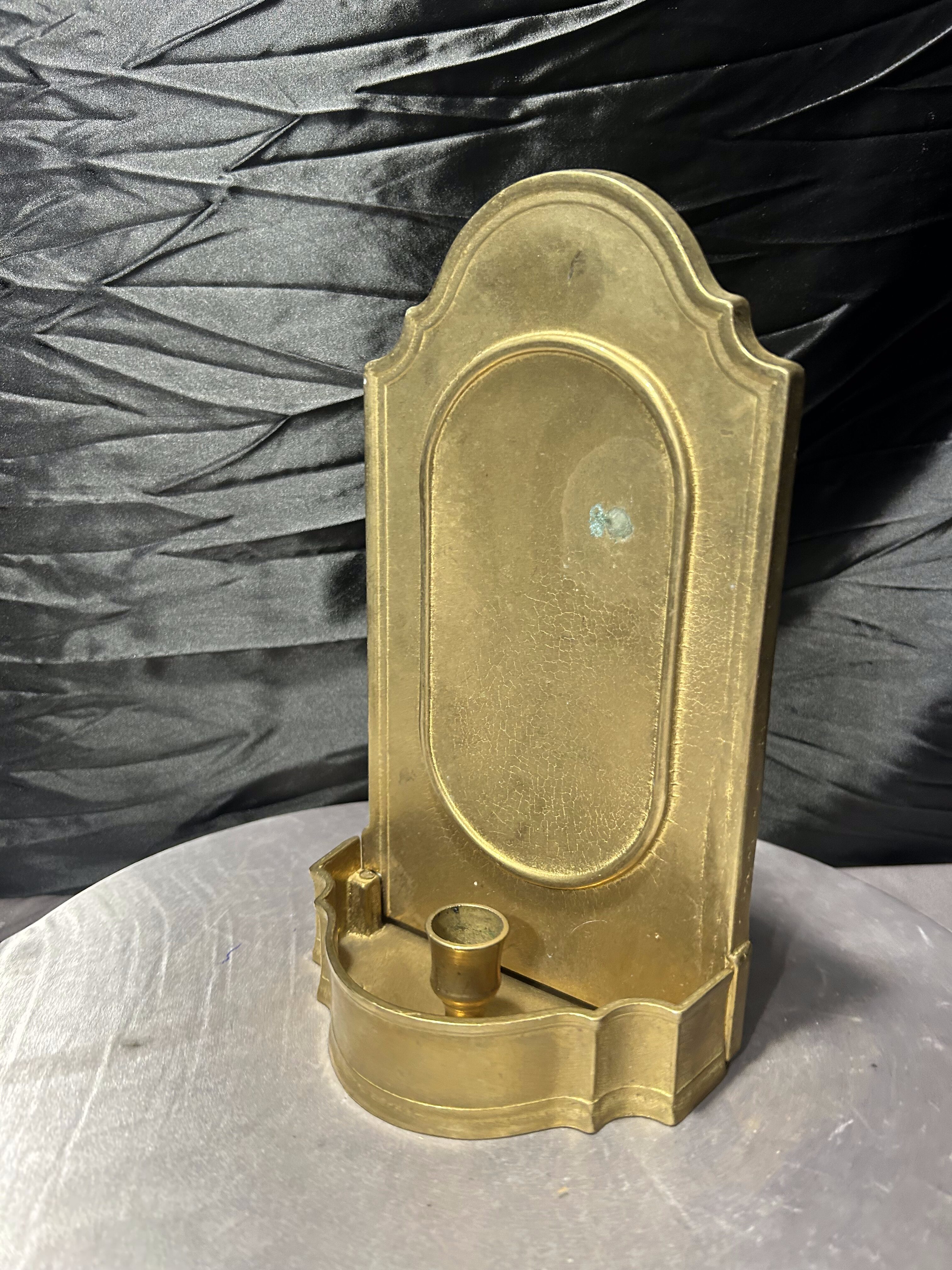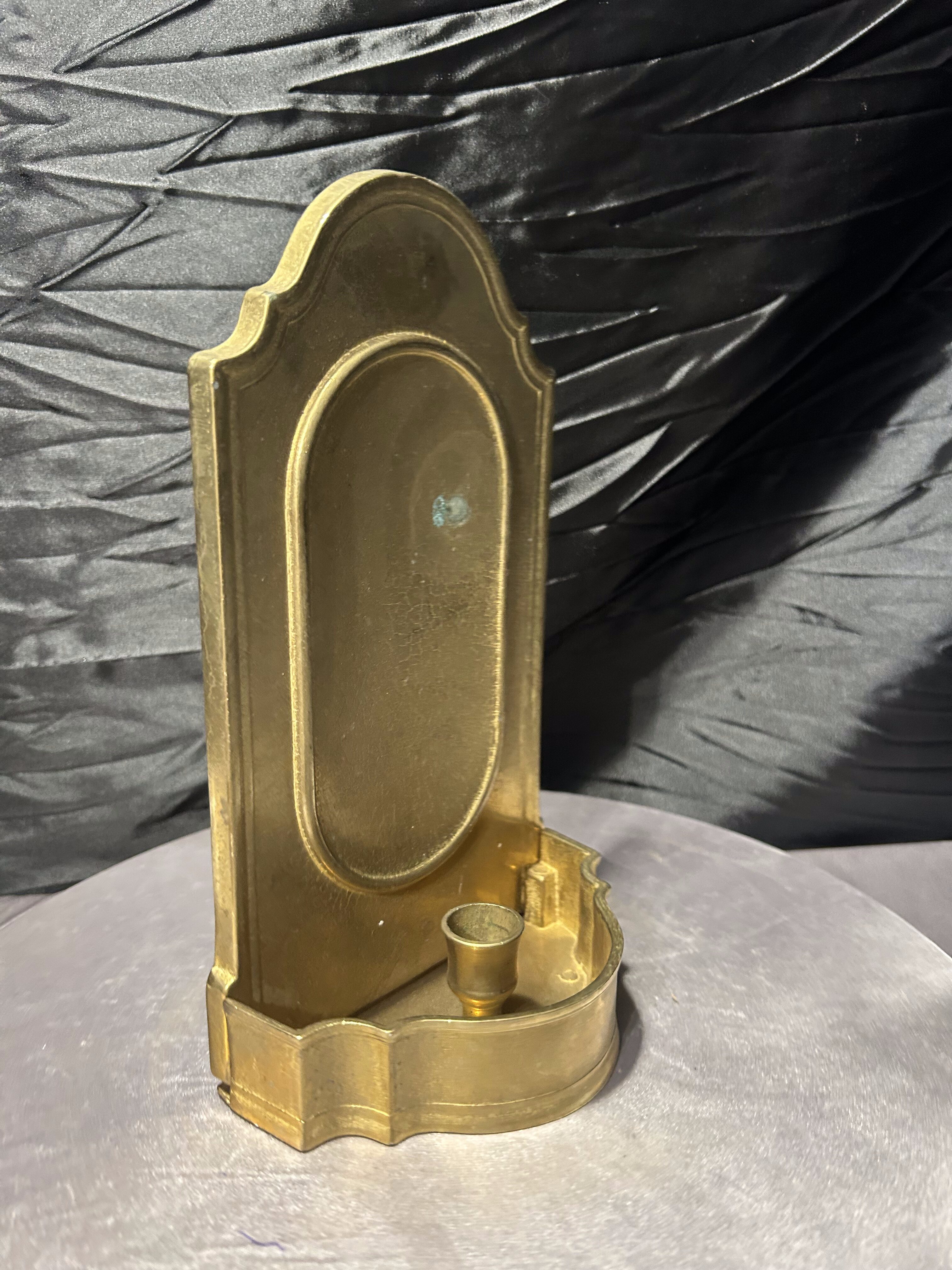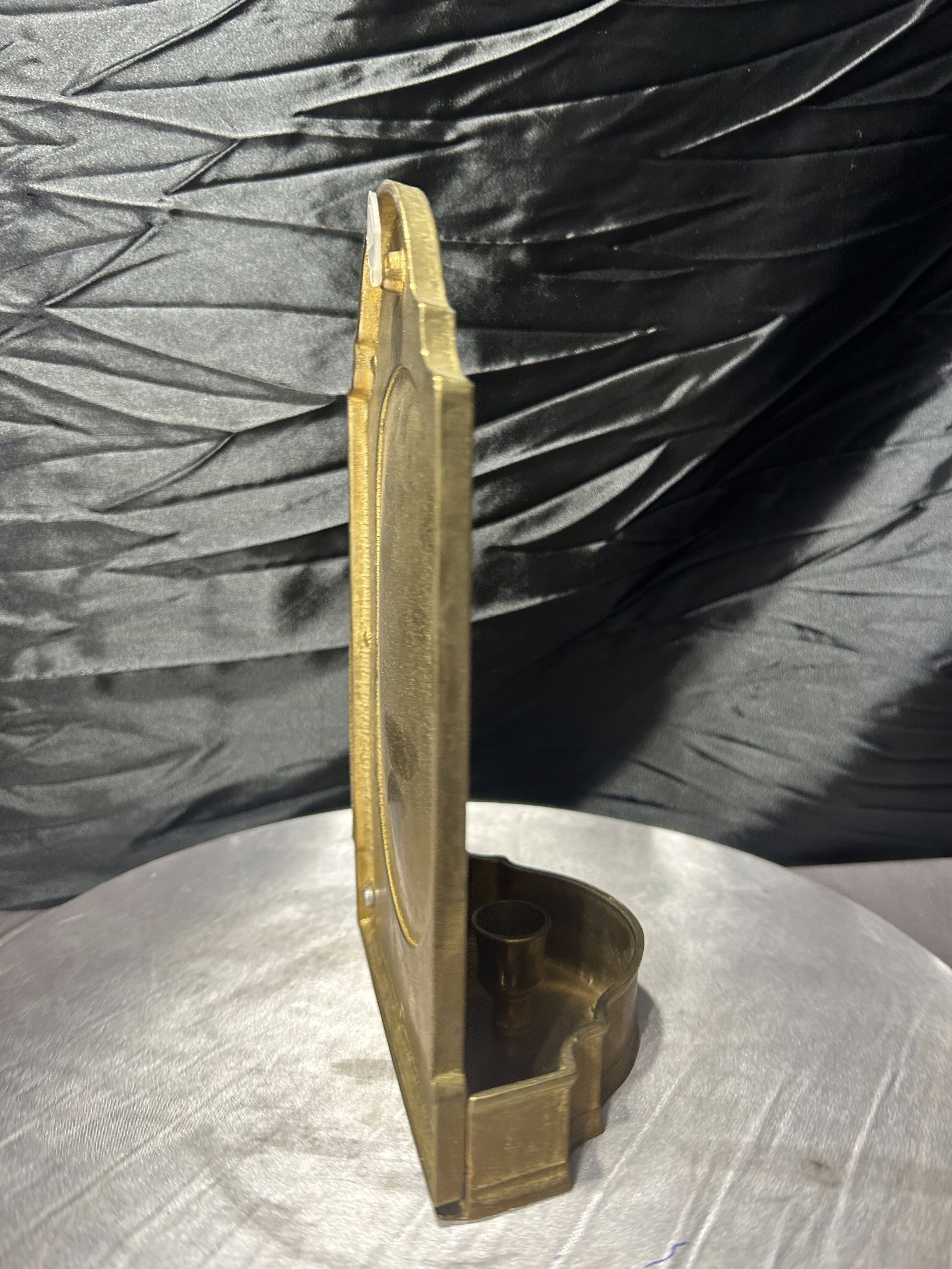 Solidny świecznik ścienny wykonany z mosiądzu, o dużej i masywnej formie, utrzymany w klasycznym stylu. Prosta, elegancka linia z delikatnie profilowanymi krawędziami nadaje mu ponadczasowy charakter. Dzięki stabilnej konstrukcji świecznik może być użytkowany nie tylko jako element ścienny, ale również ustawiony samodzielnie na komodzie, konsoli lub parapecie.