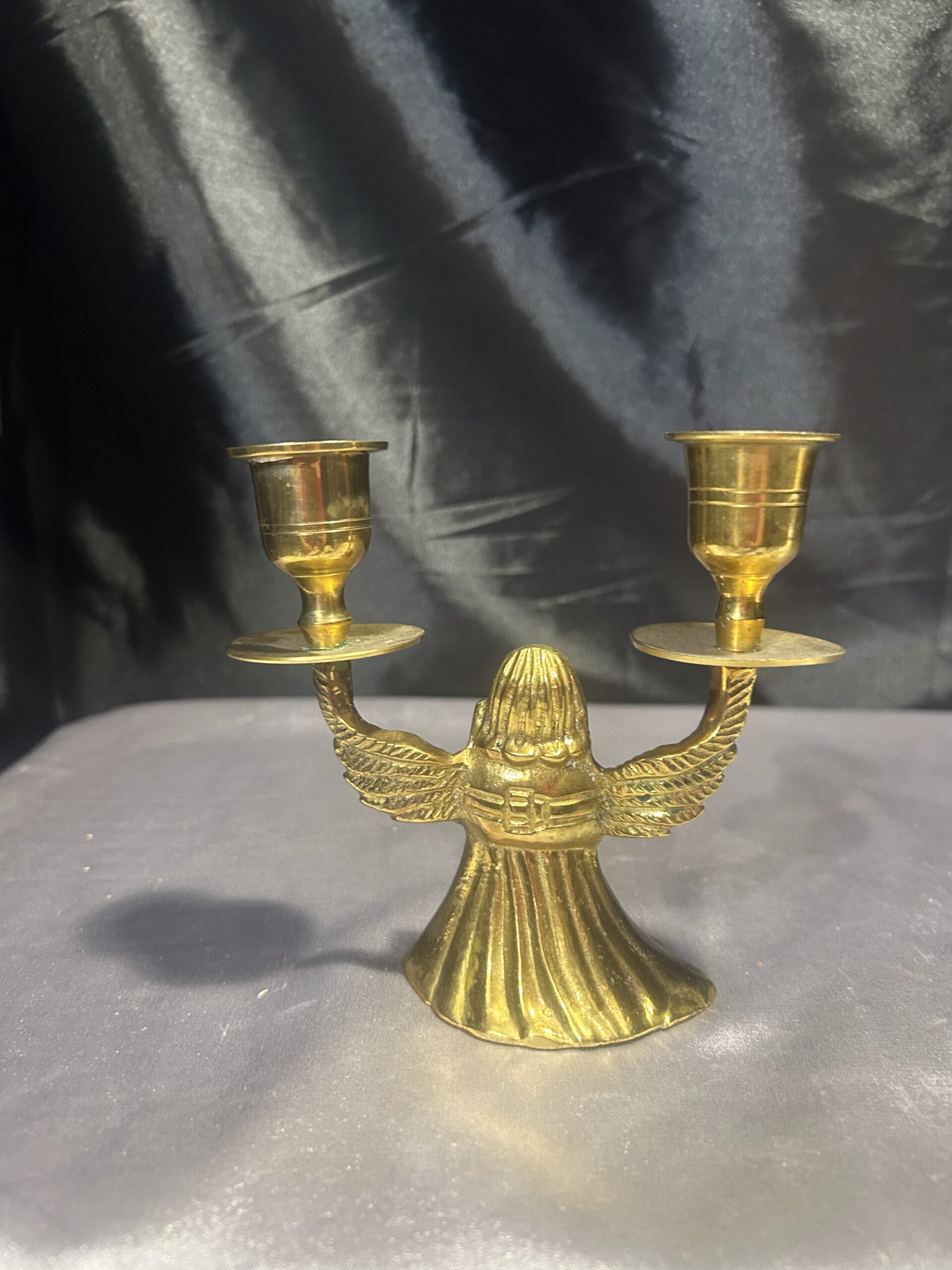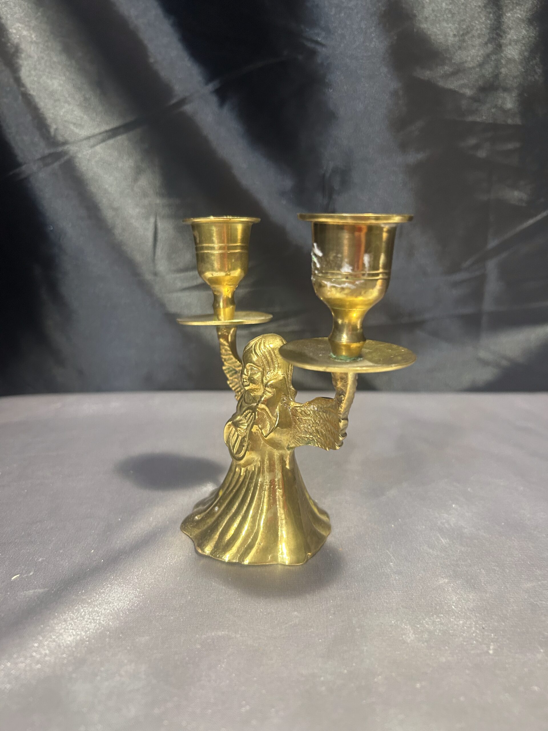- Mosiężny Świecznik w Kształcie Anioła – Dwuramienny, z Lutnią