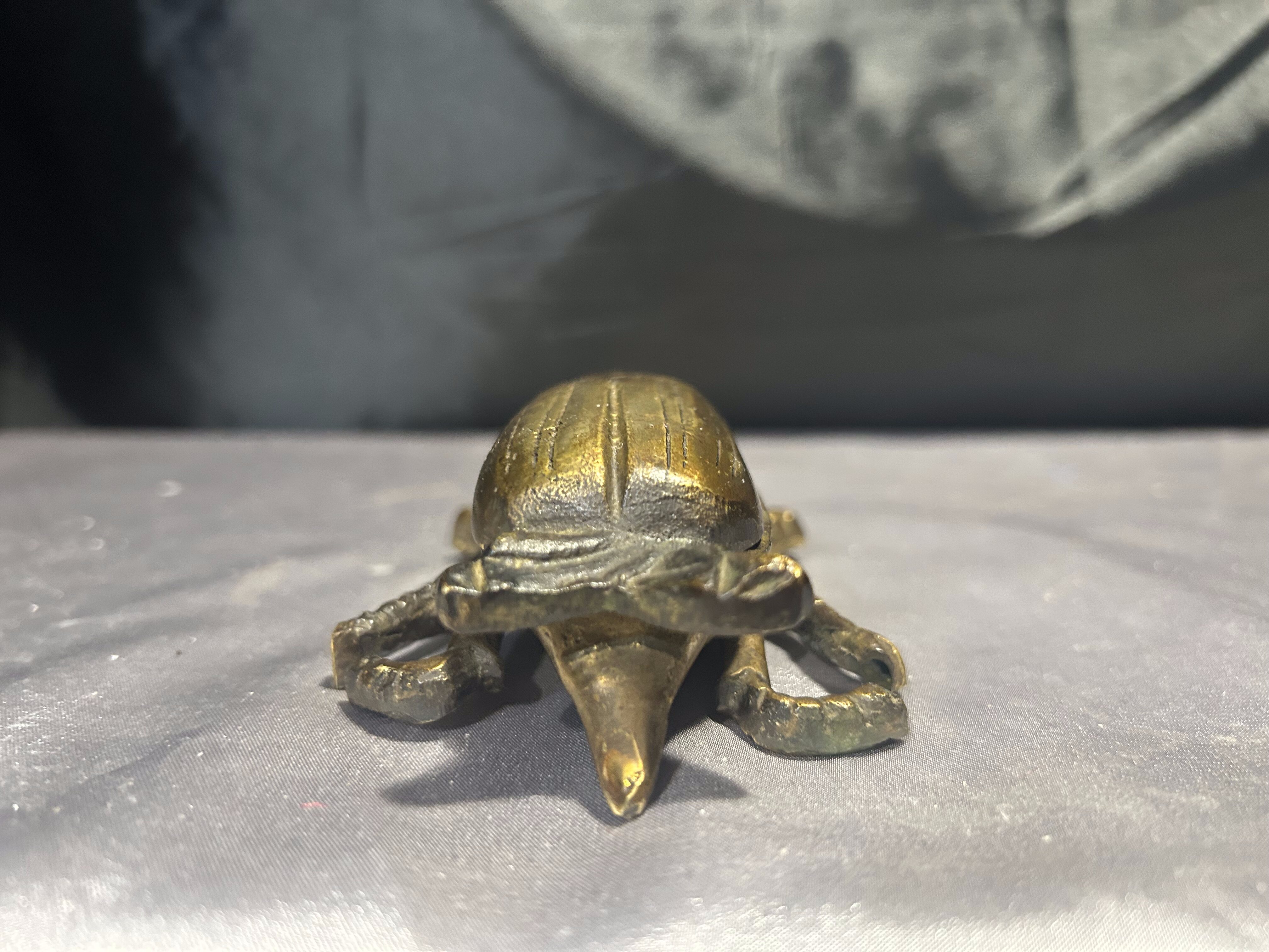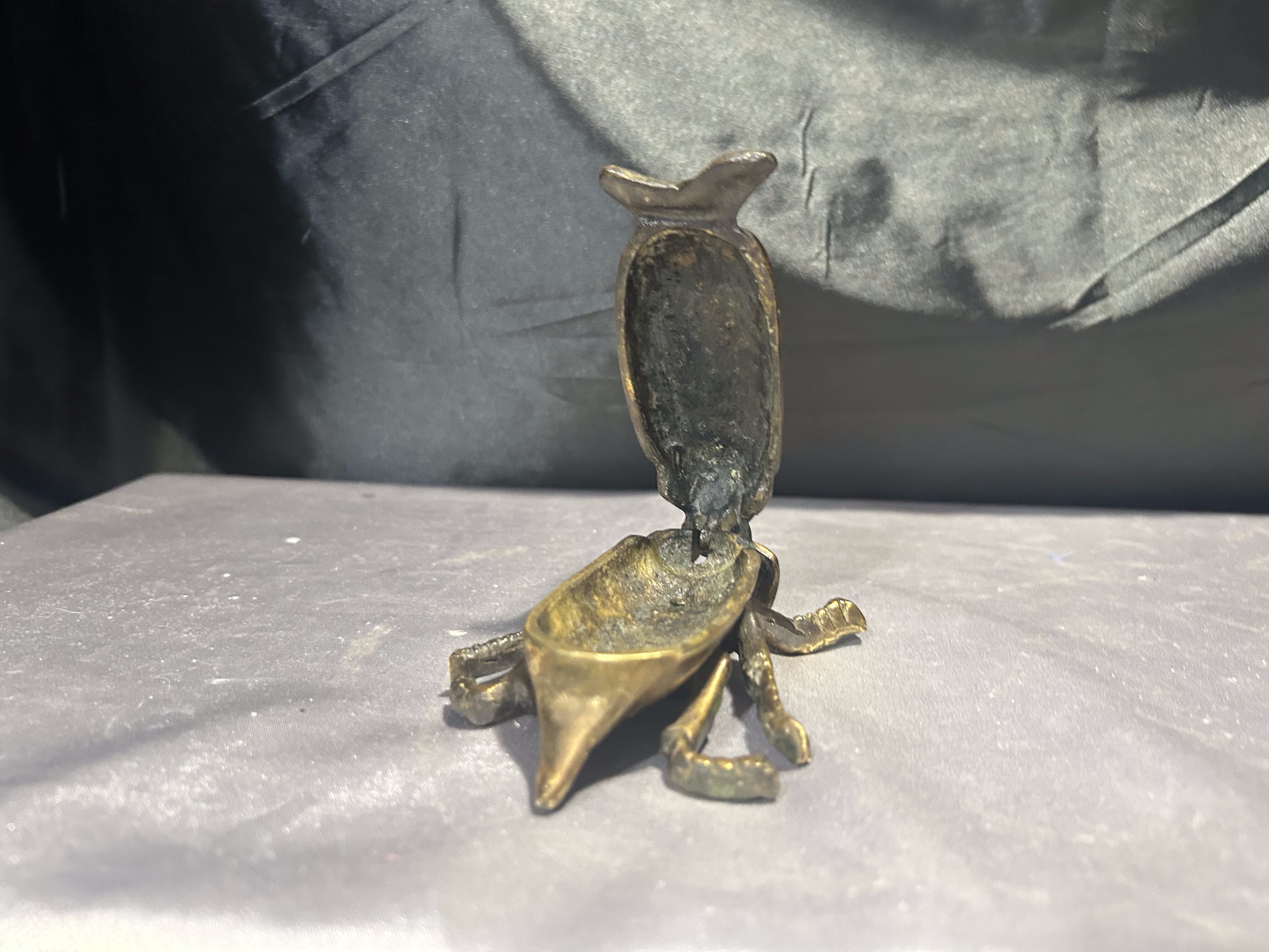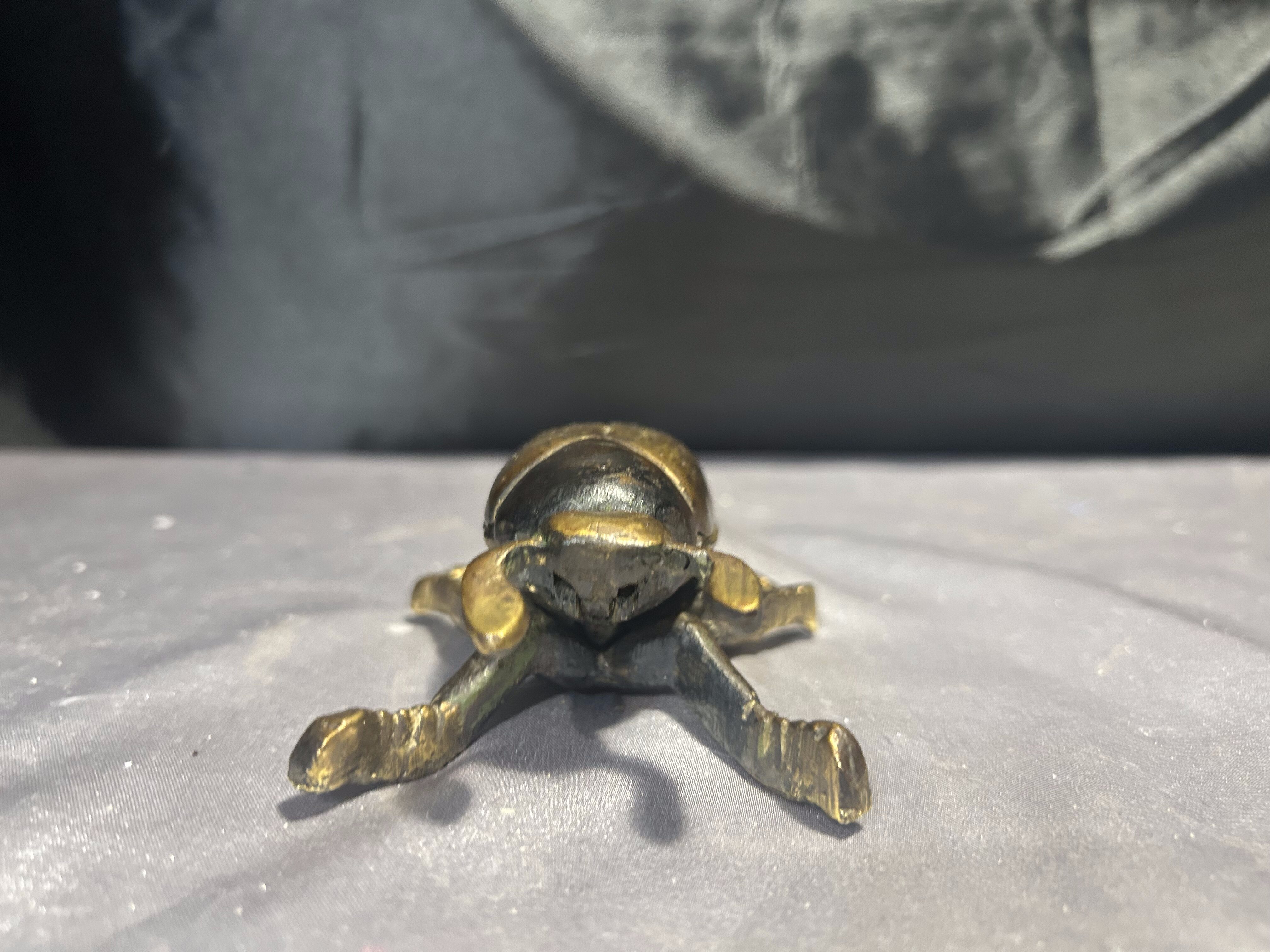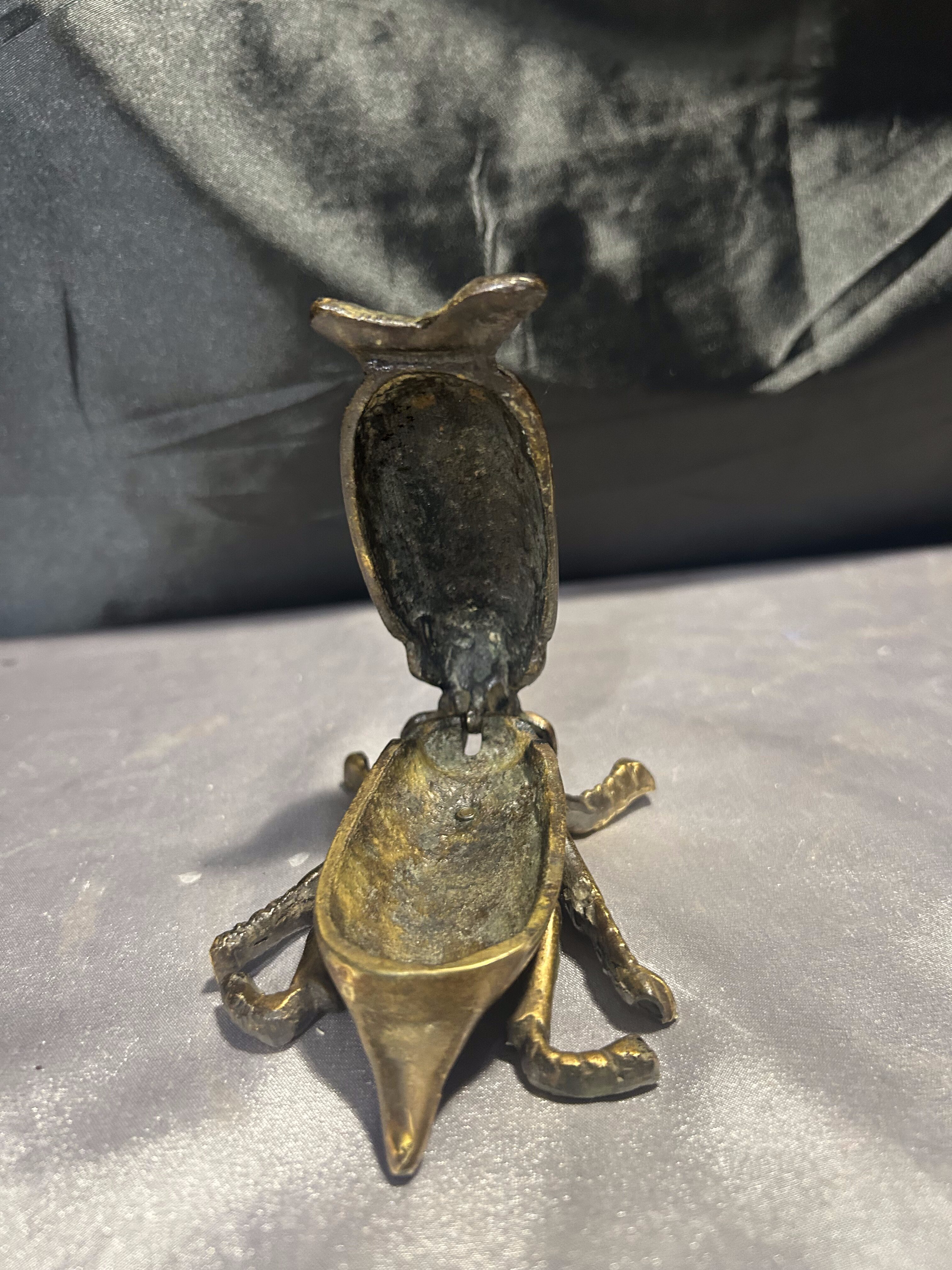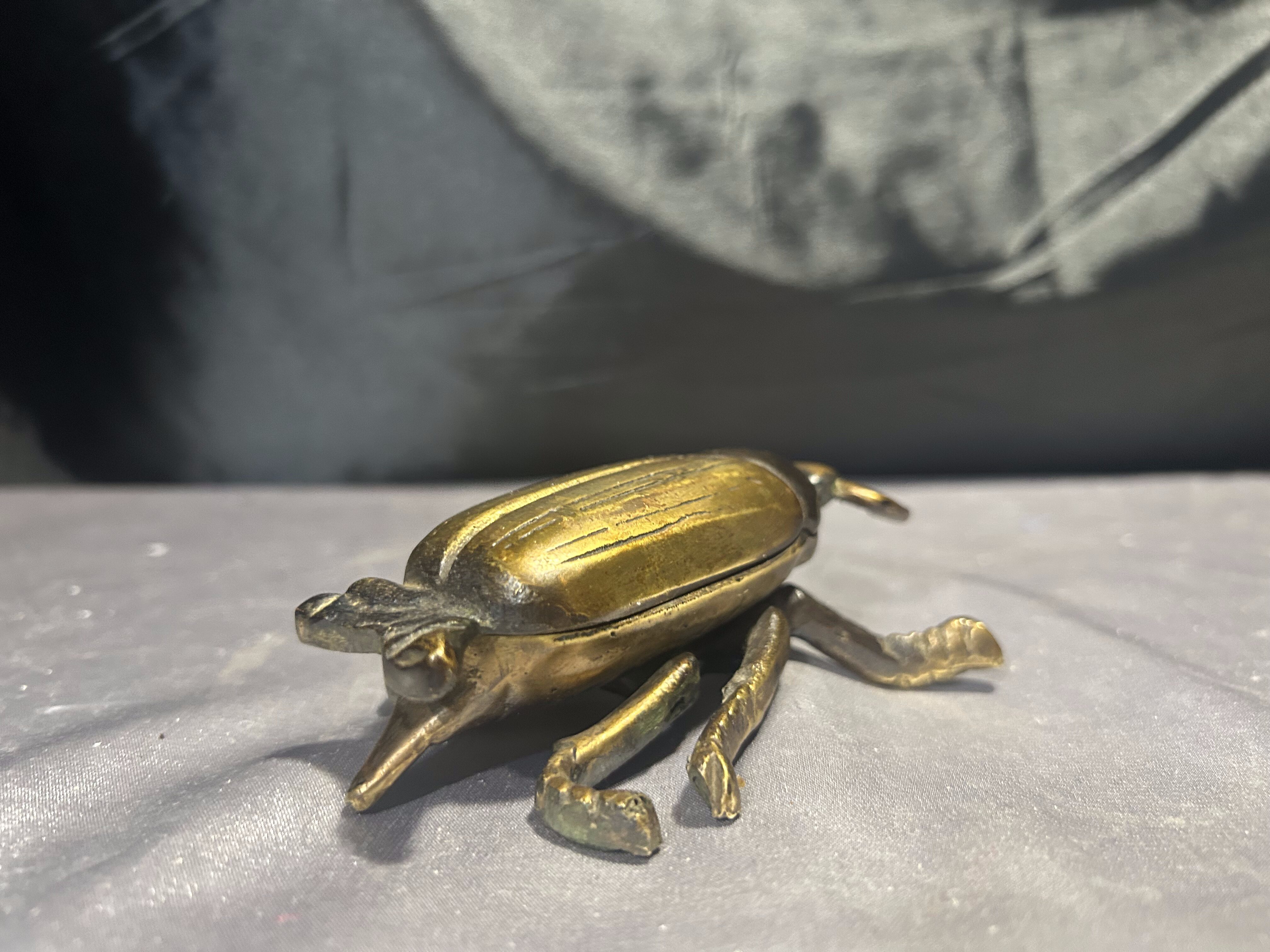 Unikatowy żuk z mosiądzu, pełniący funkcję zamykanej popielniczki lub puzderka. Starannie wykonany, z pięknie odwzorowanymi detalami, stanowi wyjątkową ozdobę o niebanalnym charakterze. Świetnie sprawdzi się zarówno jako praktyczne pudełeczko na drobiazgi, jak i efektowna dekoracja wnętrza.