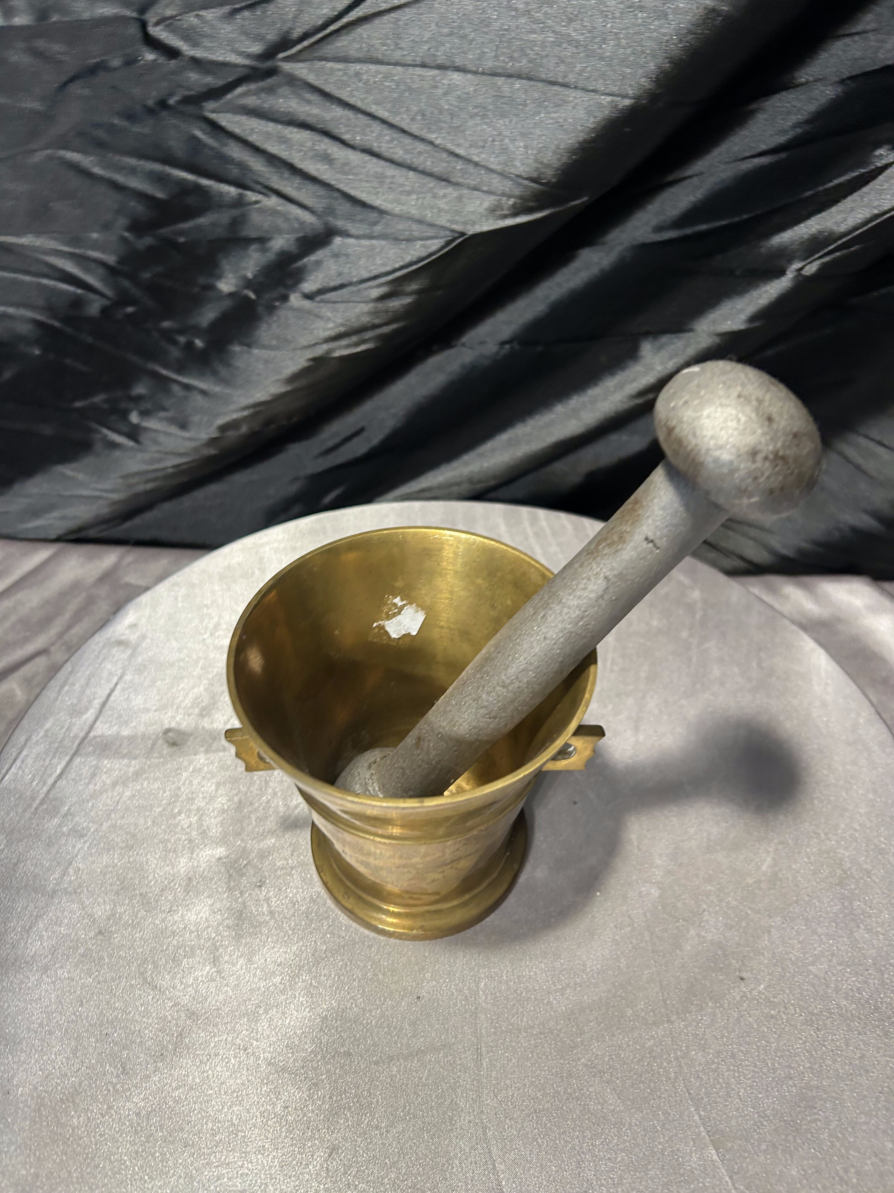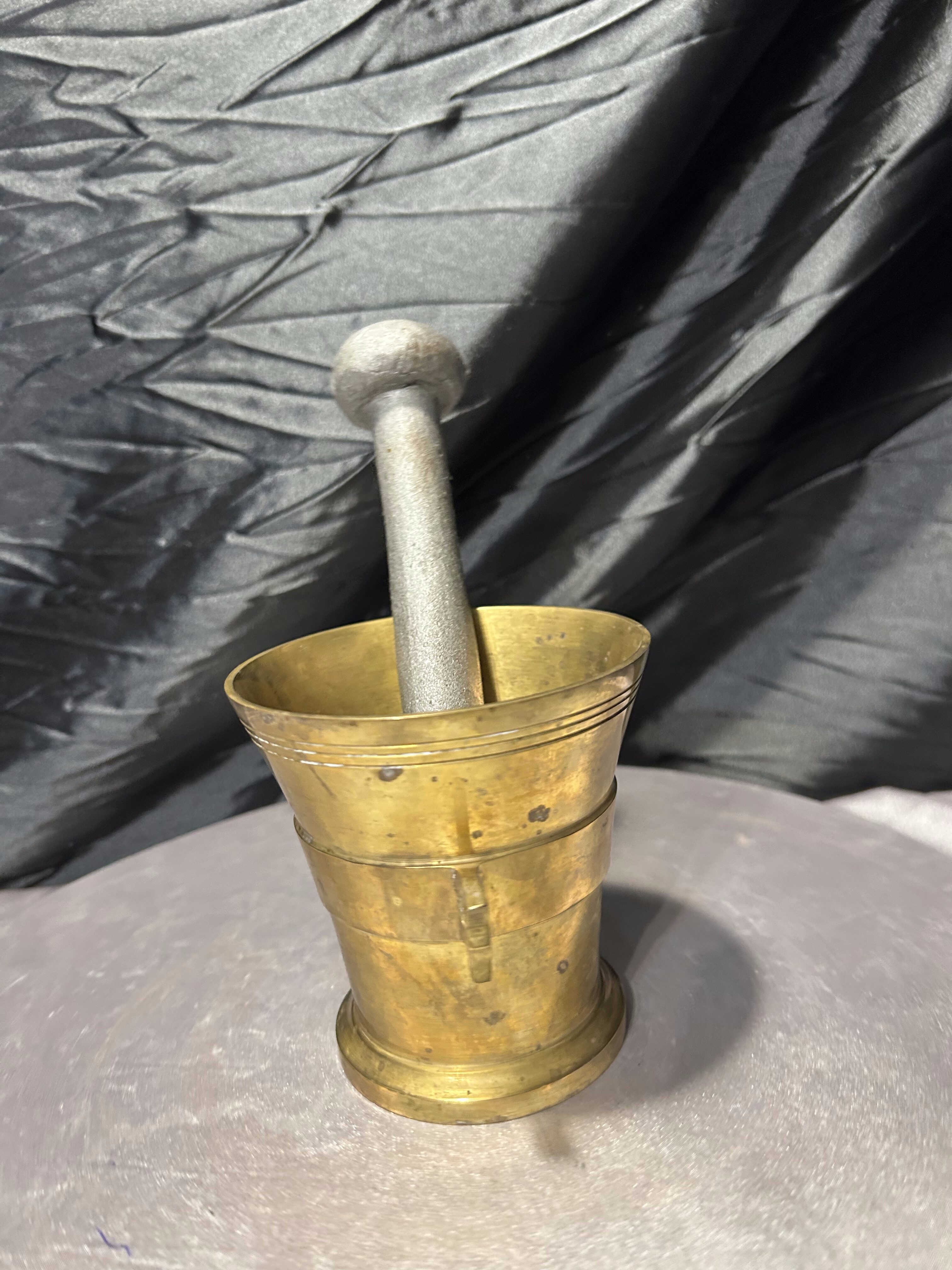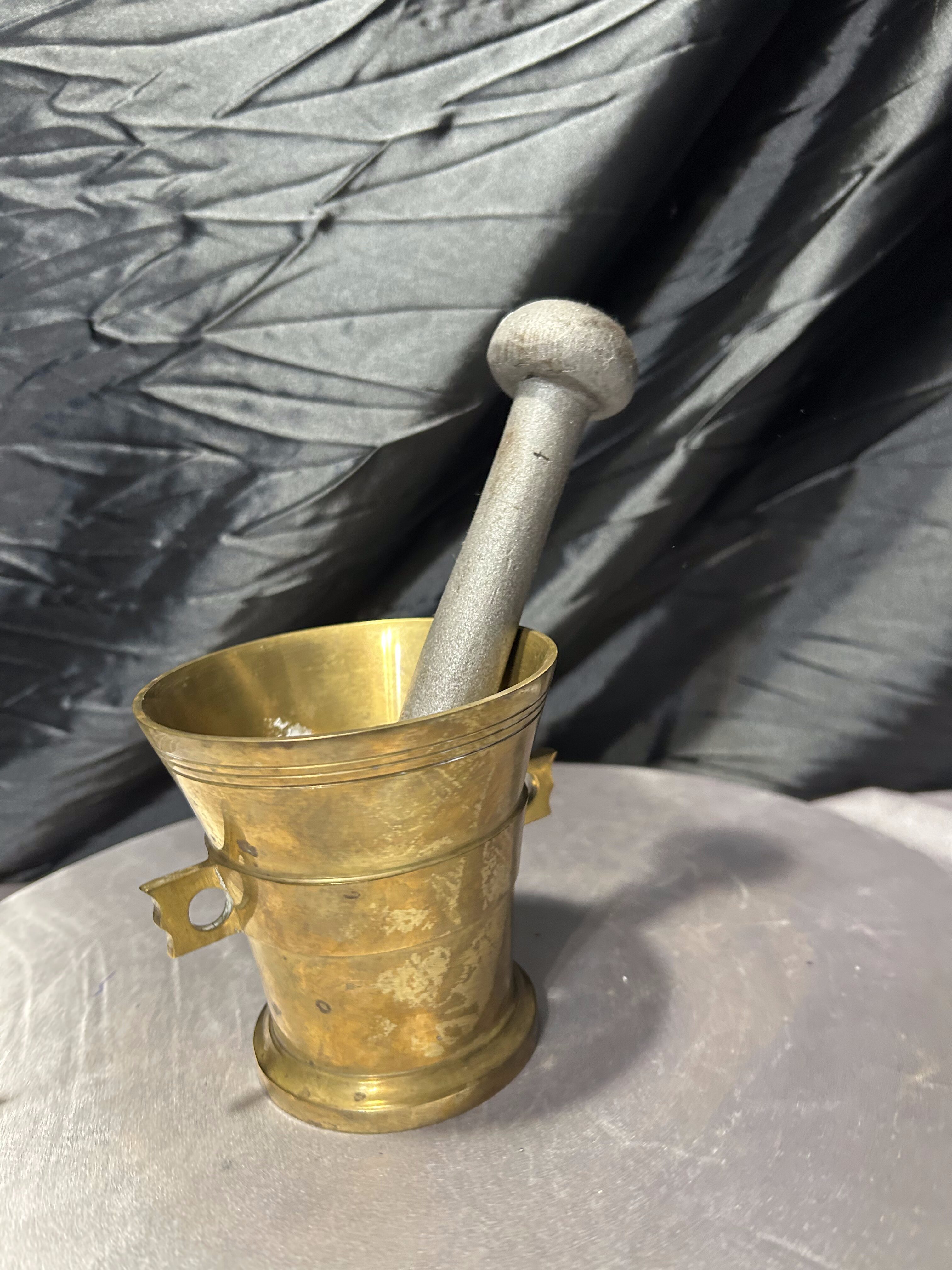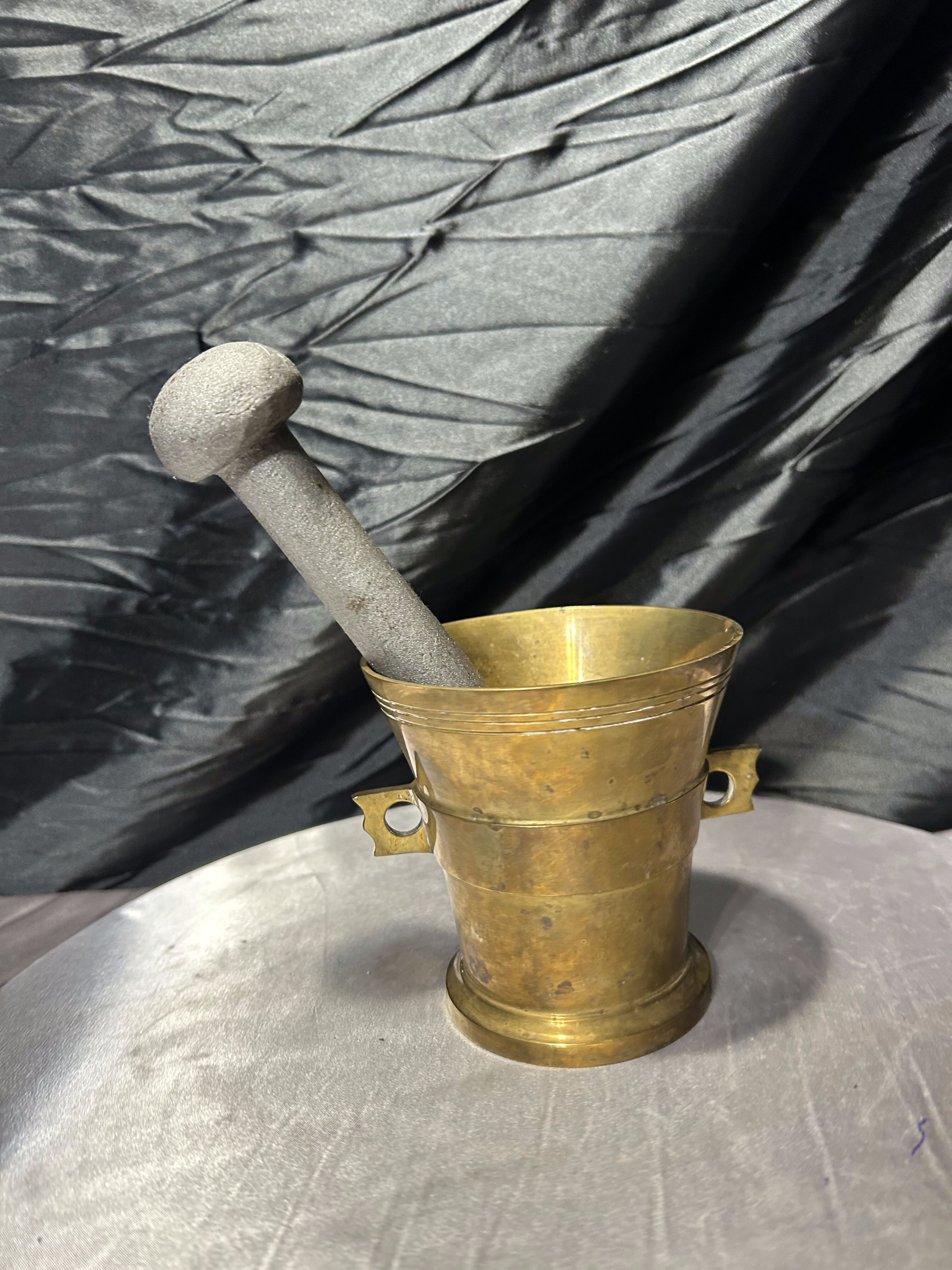 Moździerz mosiężny z 1851 roku – sygnowany – Antyk z tłuczkiem