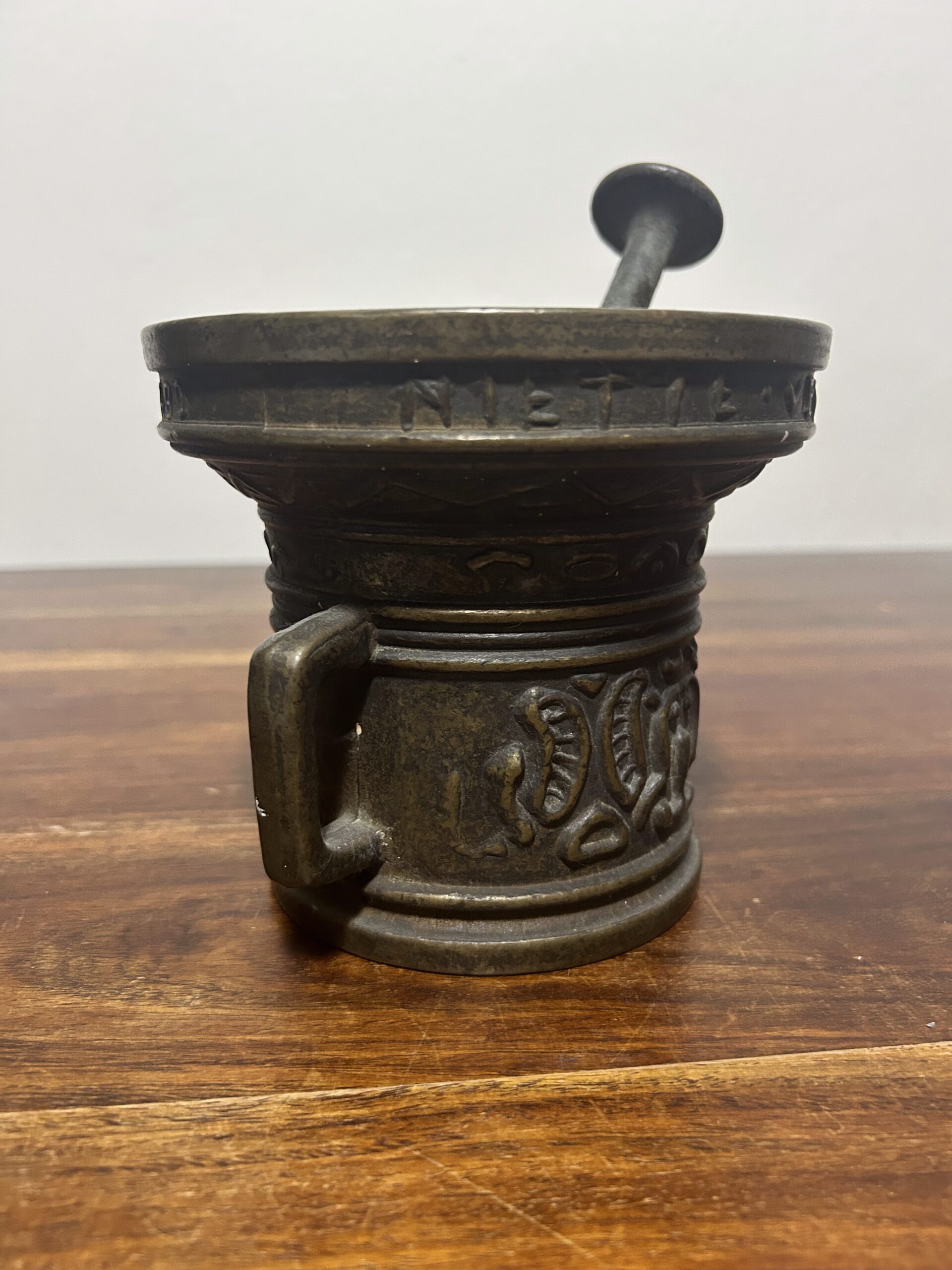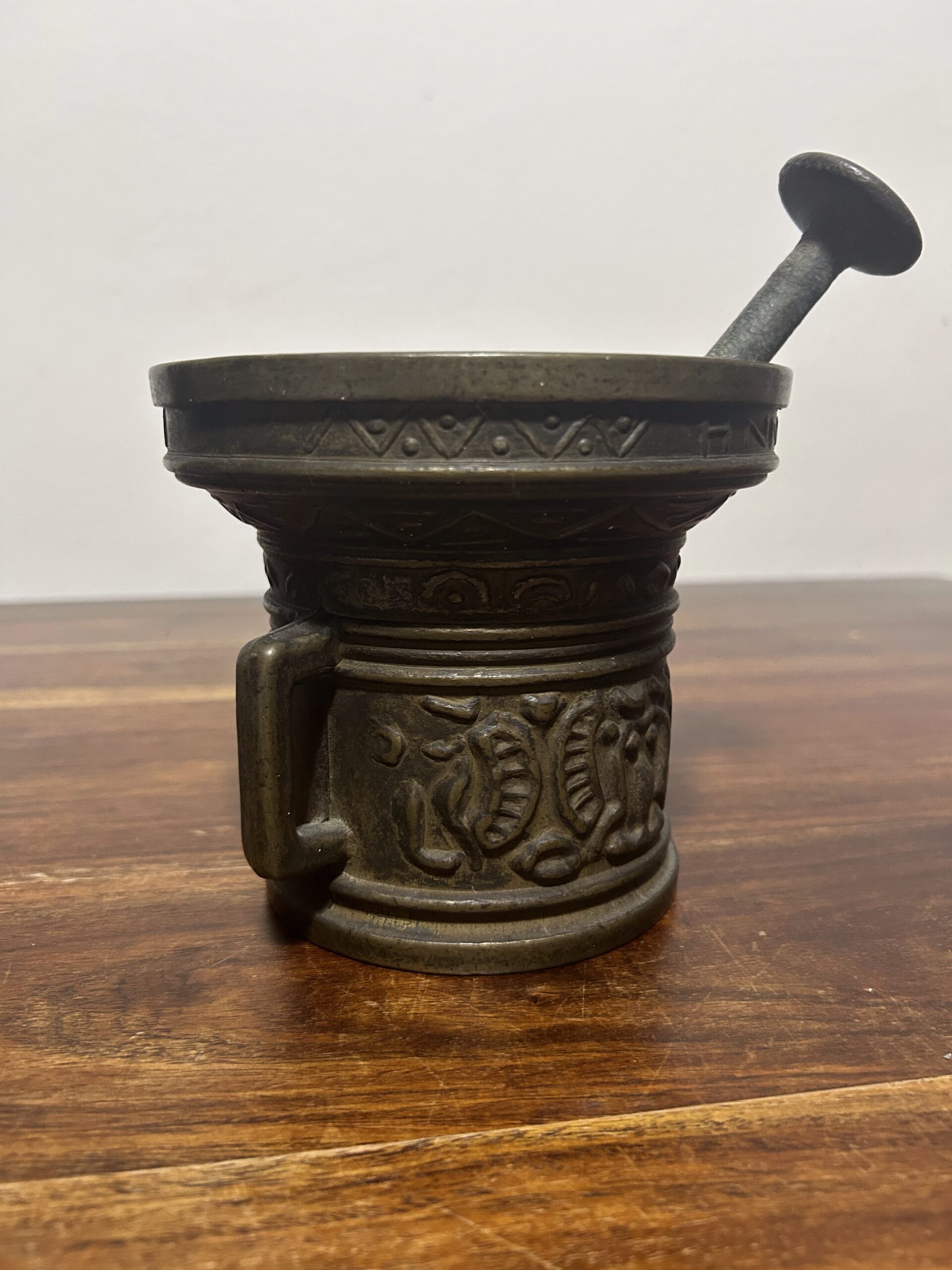 Moździerz z mocno tłoczonymi zdobieniami – Imponujący i wyrazisty