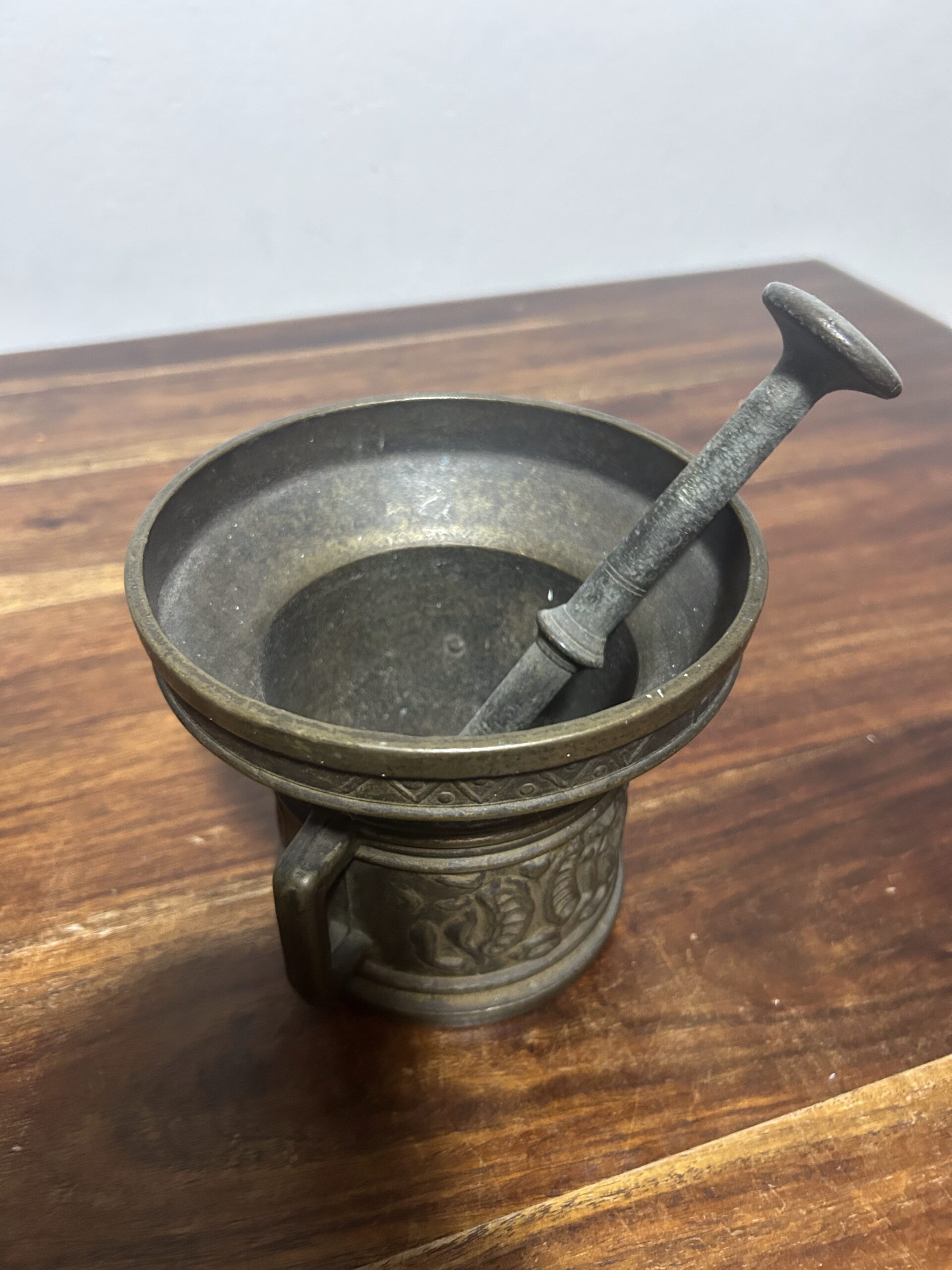 Mosiężny Moździerz z Tłuczkiem – Zdobiony, 197 g