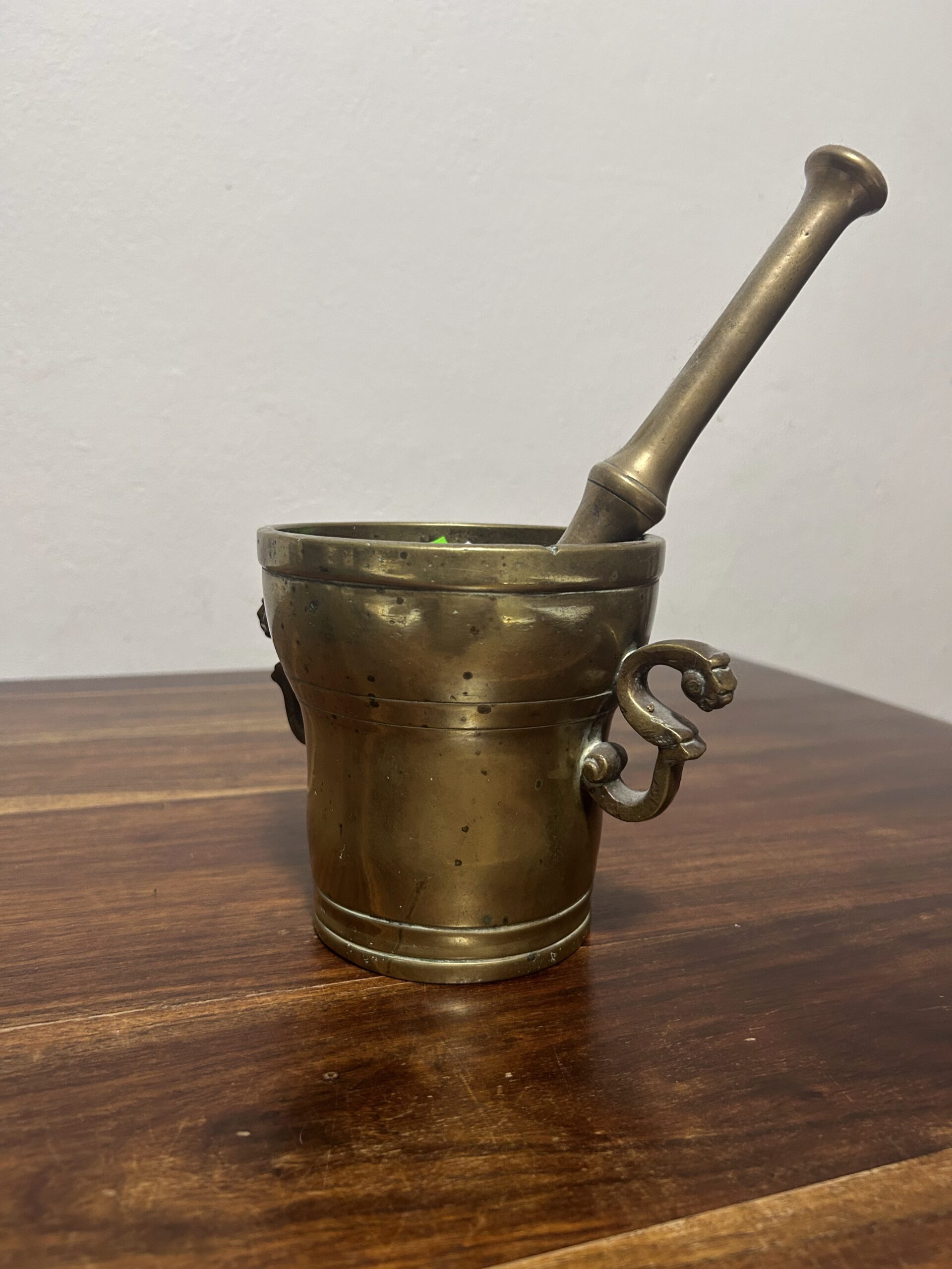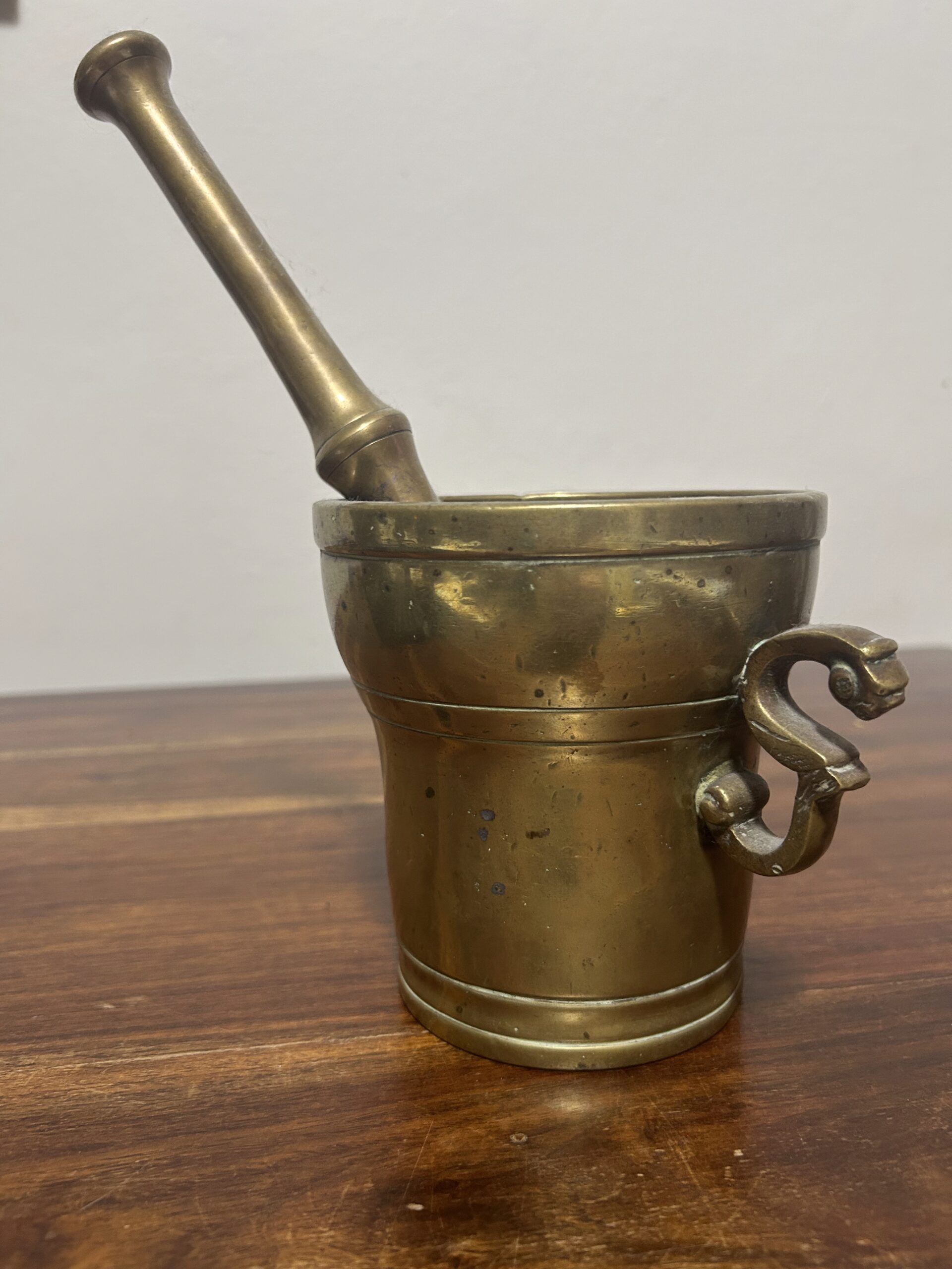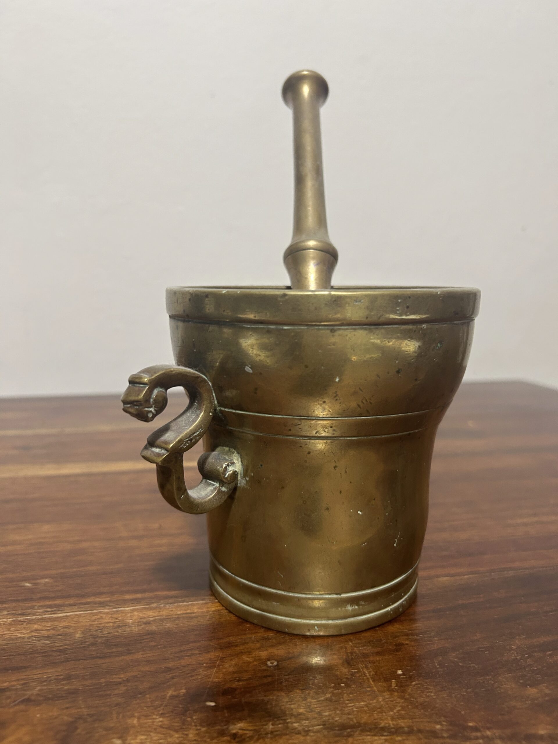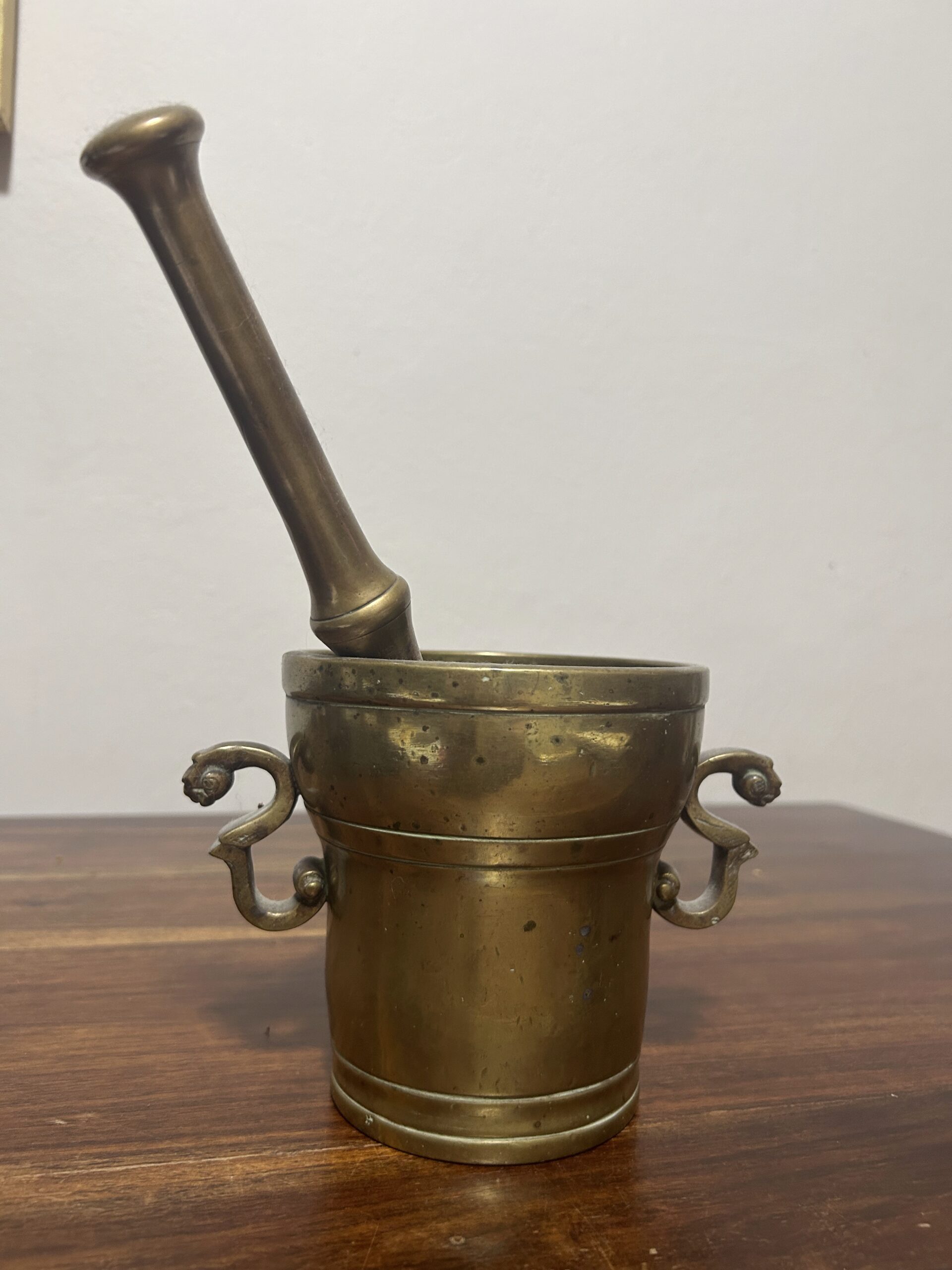 Mosiężny moździerz ze zdobionymi uchwytami – Elegancja i solidność