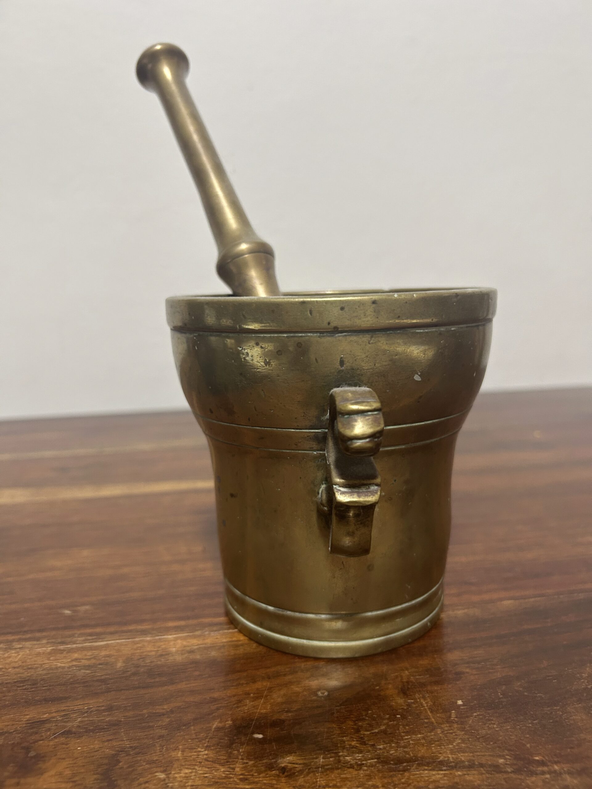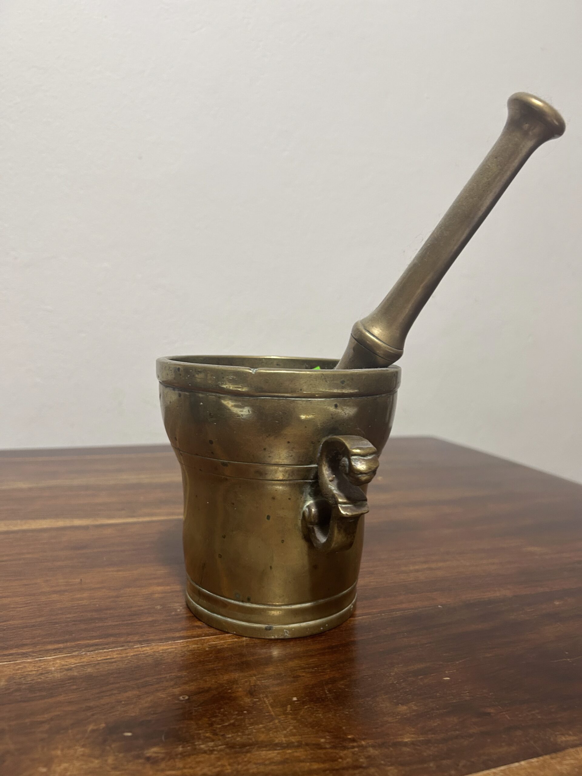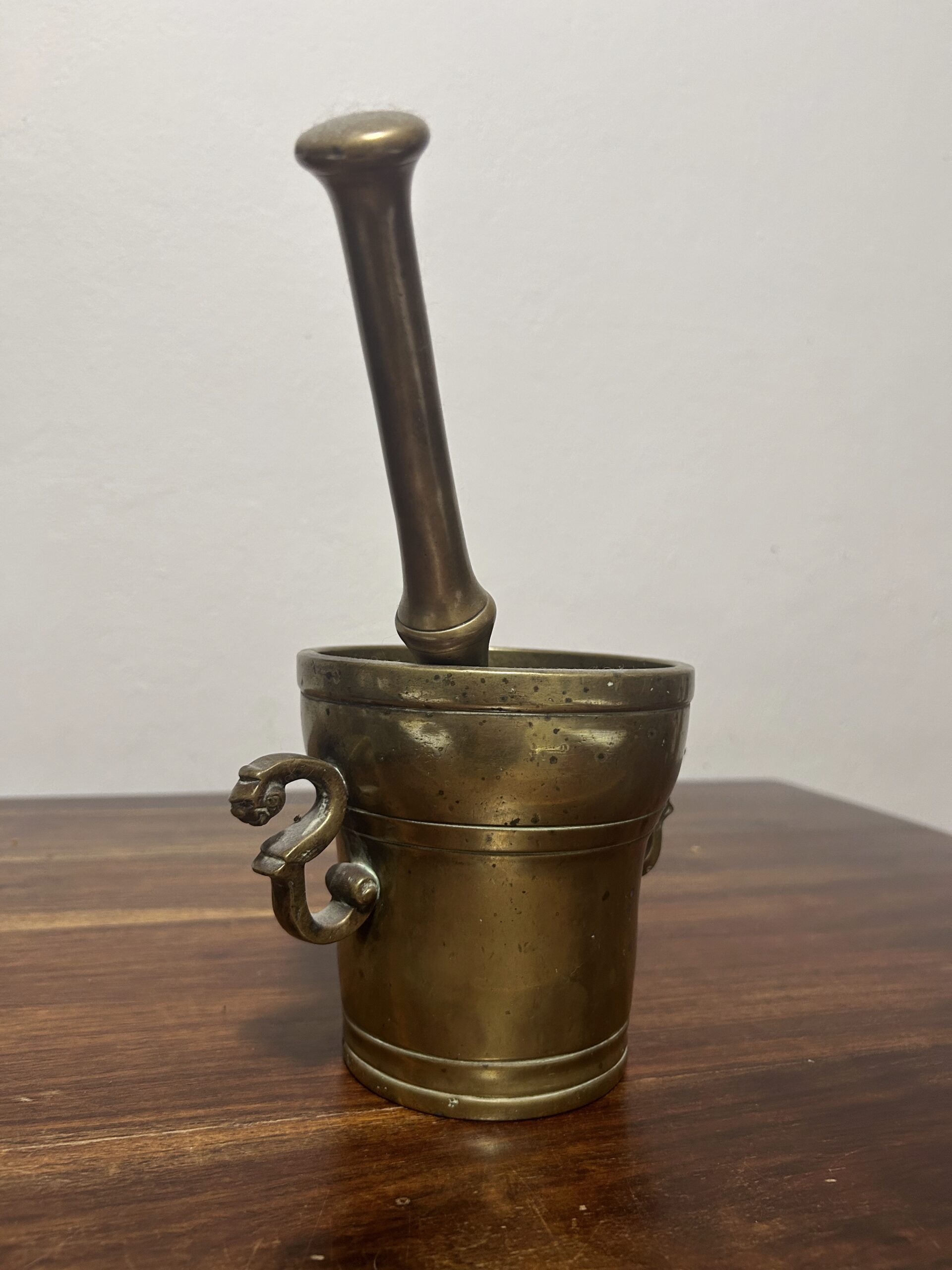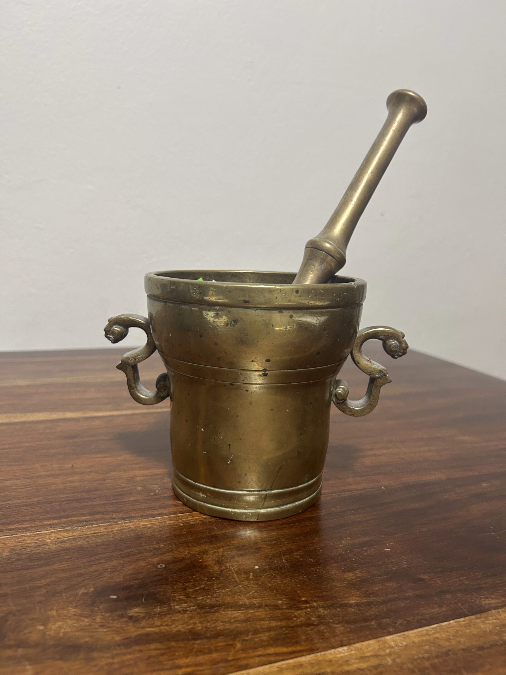 Mosiężny moździerz ze zdobionymi uchwytami – Elegancja i solidność